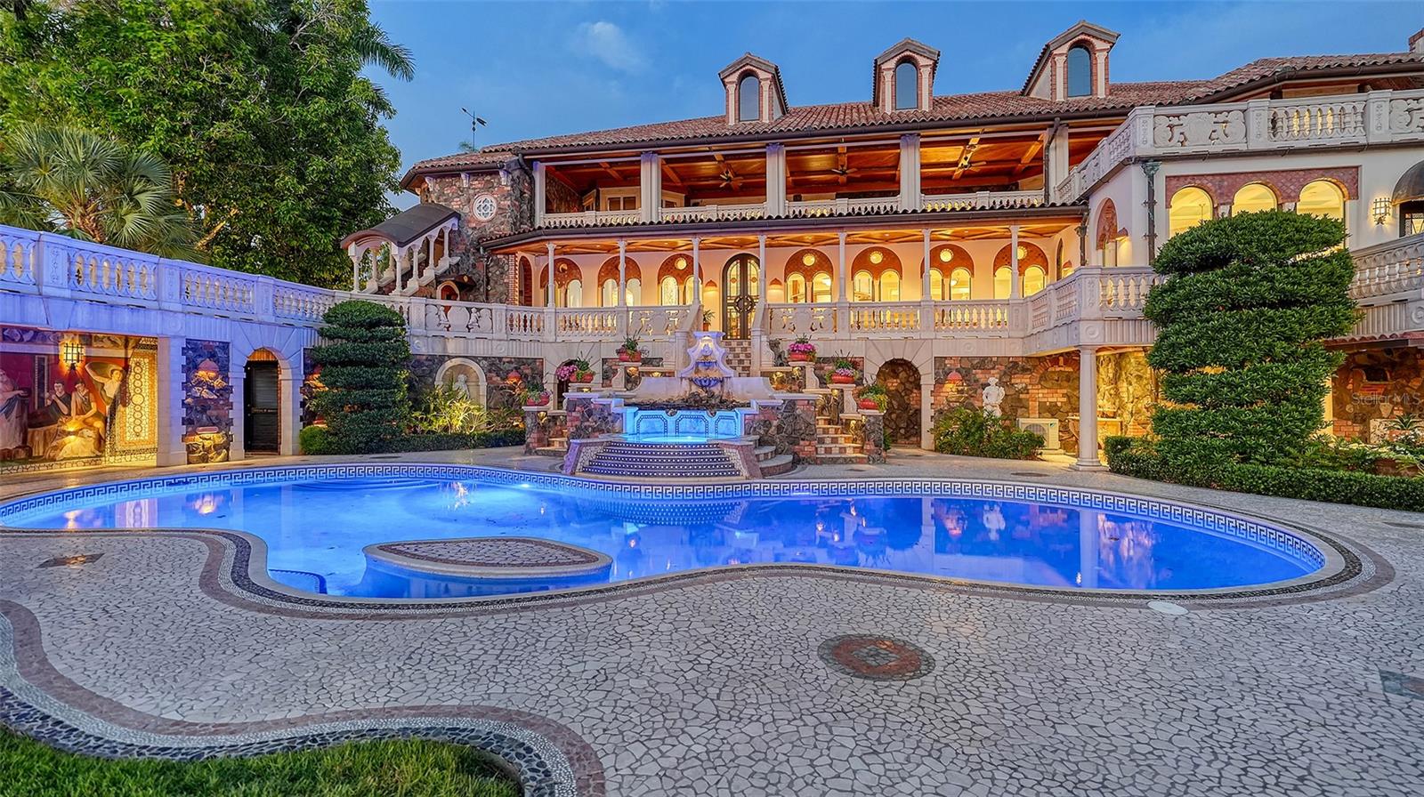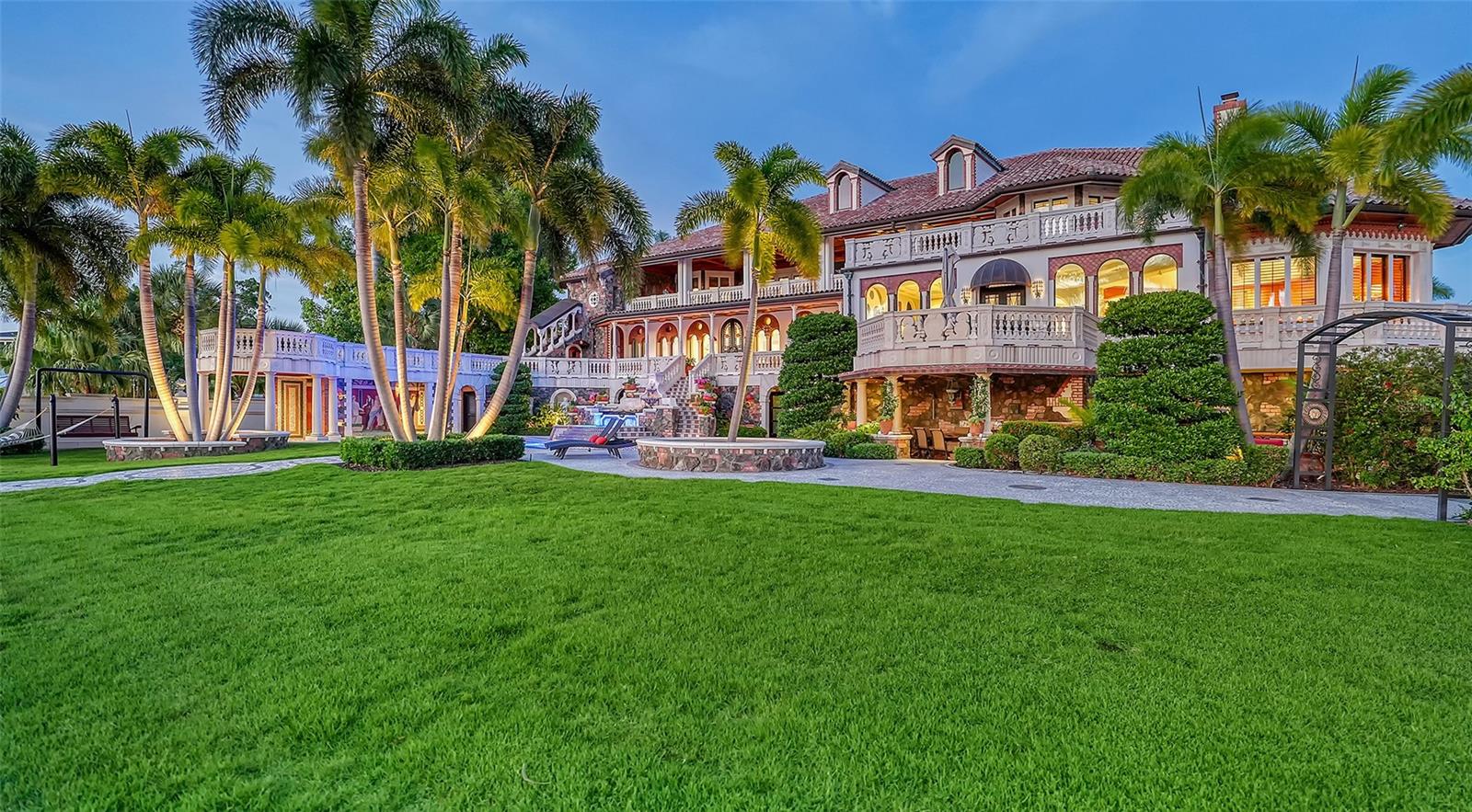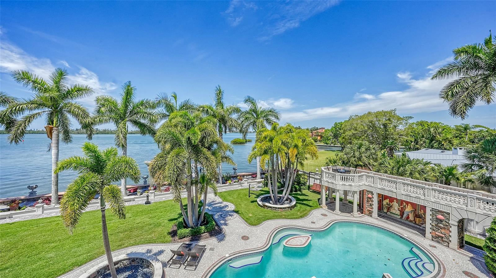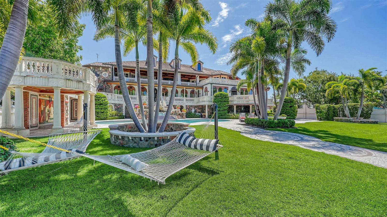 Welcome to 1310 South Lake Shore Drive. Picture yourself in this nearly 10,697 sq. ft. (plus 4,185 sq, ft. of air-conditioned garages and hobby/storage space) Neo-Classical Italian Renaissance Villa sitting on 1.21 Bayfront acres in Oyster Bay Estates. Featuring panoramic water views, this mainland residence, adjacent to The Field Club, is directly on Little Sarasota Bay (146' frontage). Enter this glamorous walled and gated estate and be instantly transported to a grand villa in Tuscany. The owners traveled extensively throughout Europe to capture the architectural details necessary to create a truly extraordinary "Old World" residence. Then calling upon design ques from Villa del Balbianello (Lake Como) and Casa Casuarina (Gianni Versace) the multiyear restoration and expansion of an already special home was completed in 2020 under the supervision of a classically trained Italian architect. Gracious "public" spaces, four bedrooms, four baths (2 half baths), and extensive outdoor spaces were intently curated to surround you with true Italian luxury. From the hand-wrought gate, highly detailed exterior, Venetian plaster walls, custom moldings with 23 carat gold leaf, hand-painted frescos, unique balustrades, pecky Cypress ceilings to the Clive Christian inspired Kitchen, and accompanying caterer's kitchen, every way your eyes travel brings a new surprise. The magnificent bay views are perfect complements to be enjoyed from inside, extensive terraces, beautiful gardens, or the dock with a 20,000-pound boat lift and accompanying jet ski lifts. This outrageous yet practical residence boasts breathtaking, panoramic views throughout the day and evening. The exterior employs roof tiles imported from Italy, 100-year-old reclaimed Chicago bricks, fallen Florida pecky Cypress wood, and 60 tons of Pennsylvania fieldstone. Unique exterior features include enclosed water sports storage areas, a separate enclosed mechanical room with handmade doors and bronze hardware, a propane-powered generator (separately enclosed with handmade doors and sufficient to run the entire home), an exterior shower area adjoined by a hand-painted Italian fresco, an octagonal covered sitting area and an outdoor bath adjacent to the pool area. The unusual 400 square foot outdoor kitchen is of a unique, submerged design with a 60-inch propane gas grill-concealed and operated by an appliance elevator. The decorative privacy wall spans 657 feet along a handmade adjacent lighted Amalfi-style decorative walkway with gold-leaf private entrance gate to The Club. A 146-foot sea wall discloses a hand-cast Corbels on the outside, a long, large seating area, and spans the entire width of the property for peace of mind. The home is overbuilt with concrete pilasters extending to solid granite and extending to the roof joists. Elements of the legendary mosaic pool by the genius Gianni Versace are displayed in the mosaics in the deck and pool area of the estate. Truly one of-a-kind residence offering gracious living now and for generations to come. Very private, but moments away from all the many cultural venues, restaurants, shopping, medical facilities, and attractions that Sarasota offers. Be prepared to be amazed!
