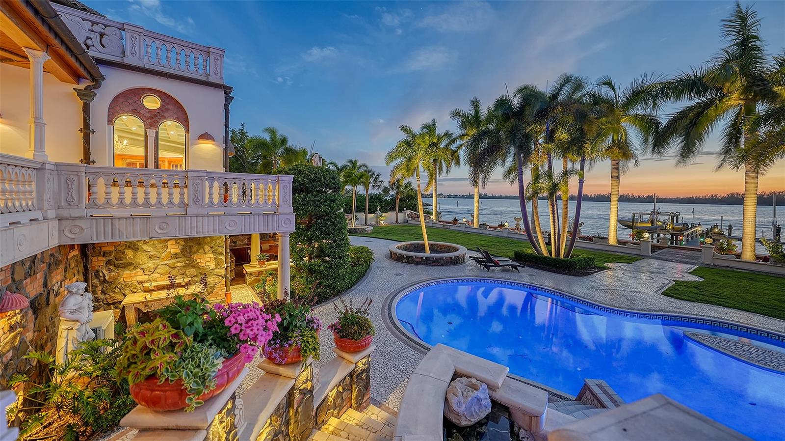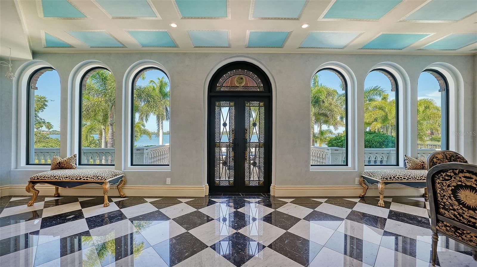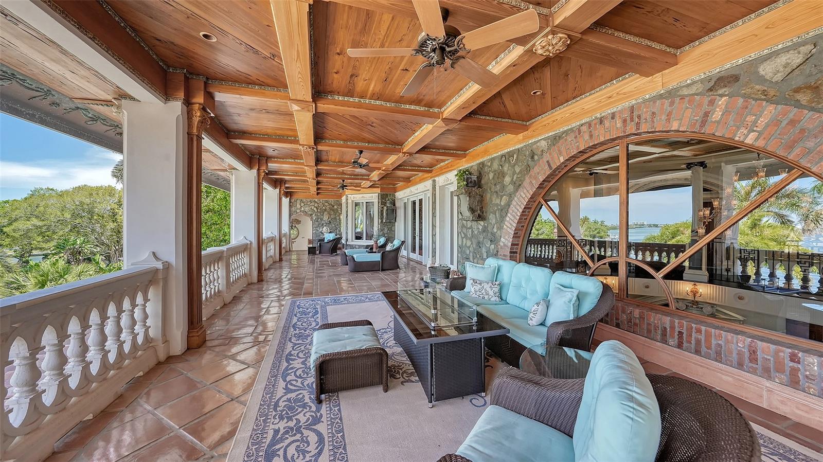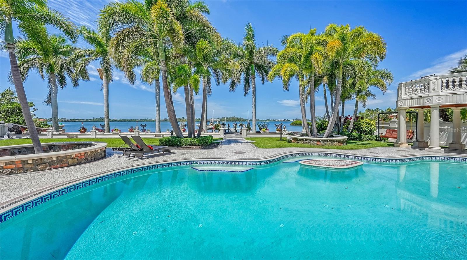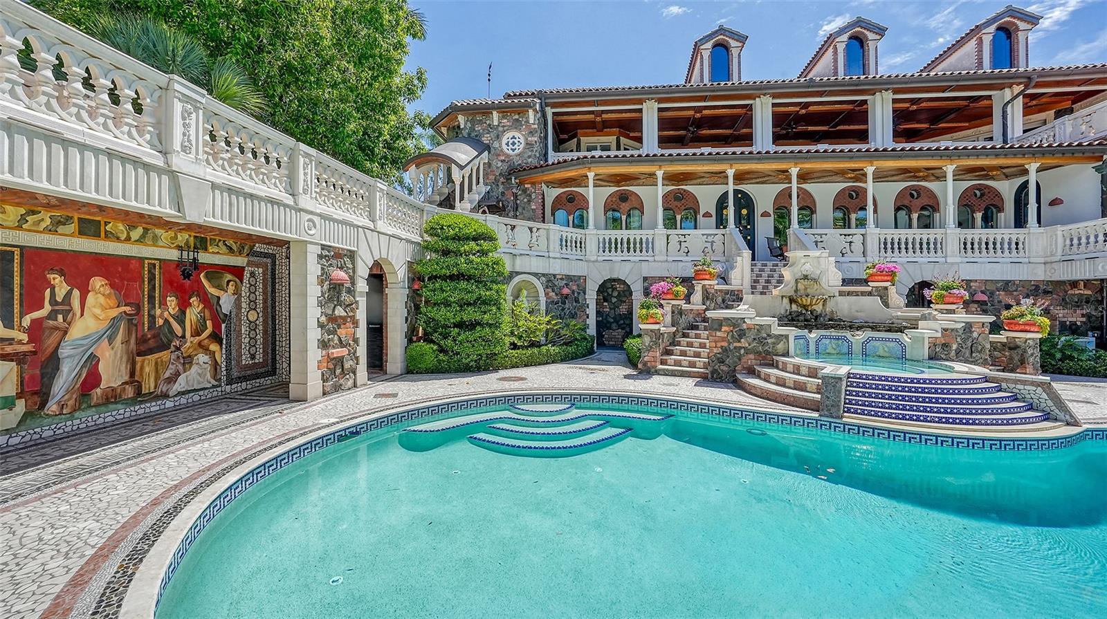 Welcome to 1310 South Lake Shore Drive. Picture yourself in this nearly 10,697 sq. ft. (plus 4,185 sq, ft. of air-conditioned garages and hobby/storage space) Neo-Classical Italian Renaissance Villa sitting on 1.21 Bayfront acres in Oyster Bay Estates. Featuring panoramic water views, this mainland residence, adjacent to The Field Club, is directly on Little Sarasota Bay (146' frontage). Enter this glamorous walled and gated estate and be instantly transported to a grand villa in Tuscany. The owners traveled extensively throughout Europe to capture the architectural details necessary to create a truly extraordinary "Old World" residence. Then calling upon design ques from Villa del Balbianello (Lake Como) and Casa Casuarina (Gianni Versace) the multiyear restoration and expansion of an already special home was completed in 2020 under the supervision of a classically trained Italian architect. Gracious "public" spaces, four bedrooms, four baths (2 half baths), and extensive outdoor spaces were intently curated to surround you with true Italian luxury. From the hand-wrought gate, highly detailed exterior, Venetian plaster walls, custom moldings with 23 carat gold leaf, hand-painted frescos, unique balustrades, pecky Cypress ceilings to the Clive Christian inspired Kitchen, and accompanying caterer's kitchen, every way your eyes travel brings a new surprise. The magnificent bay views are perfect complements to be enjoyed from inside, extensive terraces, beautiful gardens, or the dock with a 20,000-pound boat lift and accompanying jet ski lifts. This outrageous yet practical residence boasts breathtaking, panoramic views throughout the day and evening. The exterior employs roof tiles imported from Italy, 100-year-old reclaimed Chicago bricks, fallen Florida pecky Cypress wood, and 60 tons of Pennsylvania fieldstone. Unique exterior features include enclosed water sports storage areas, a separate enclosed mechanical room with handmade doors and bronze hardware, a propane-powered generator (separately enclosed with handmade doors and sufficient to run the entire home), an exterior shower area adjoined by a hand-painted Italian fresco, an octagonal covered sitting area and an outdoor bath adjacent to the pool area. The unusual 400 square foot outdoor kitchen is of a unique, submerged design with a 60-inch propane gas grill-concealed and operated by an appliance elevator. The decorative privacy wall spans 657 feet along a handmade adjacent lighted Amalfi-style decorative walkway with gold-leaf private entrance gate to The Club. A 146-foot sea wall discloses a hand-cast Corbels on the outside, a long, large seating area, and spans the entire width of the property for peace of mind. The home is overbuilt with concrete pilasters extending to solid granite and extending to the roof joists. Elements of the legendary mosaic pool by the genius Gianni Versace are displayed in the mosaics in the deck and pool area of the estate. Truly one of-a-kind residence offering gracious living now and for generations to come. Very private, but moments away from all the many cultural venues, restaurants, shopping, medical facilities, and attractions that Sarasota offers. Be prepared to be amazed!