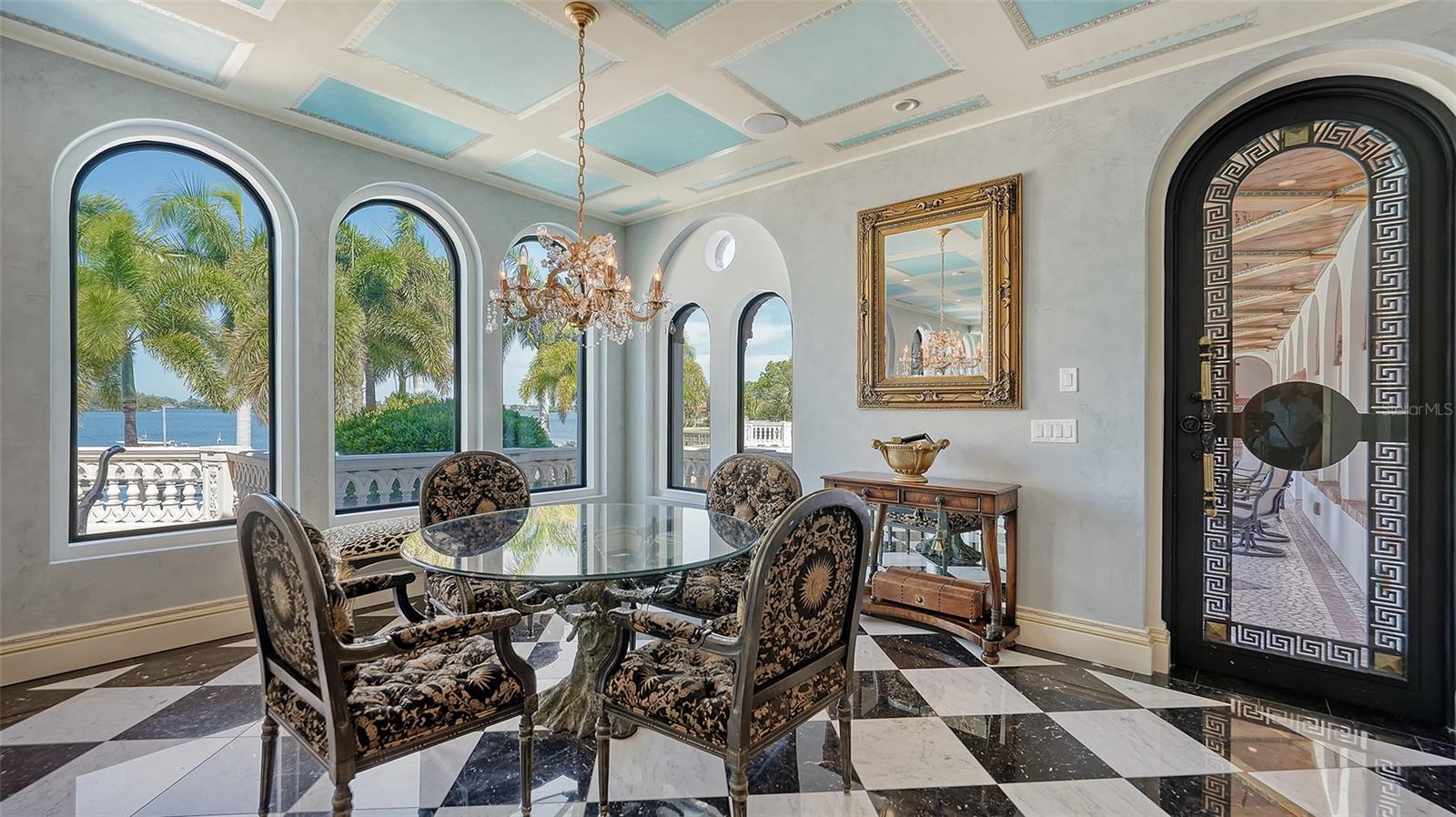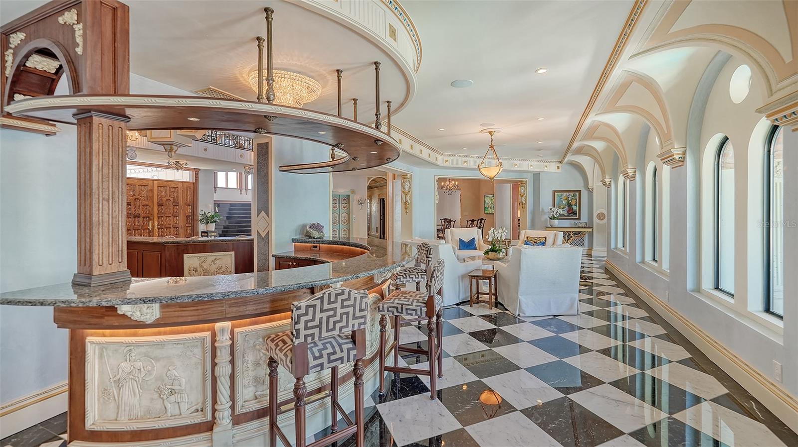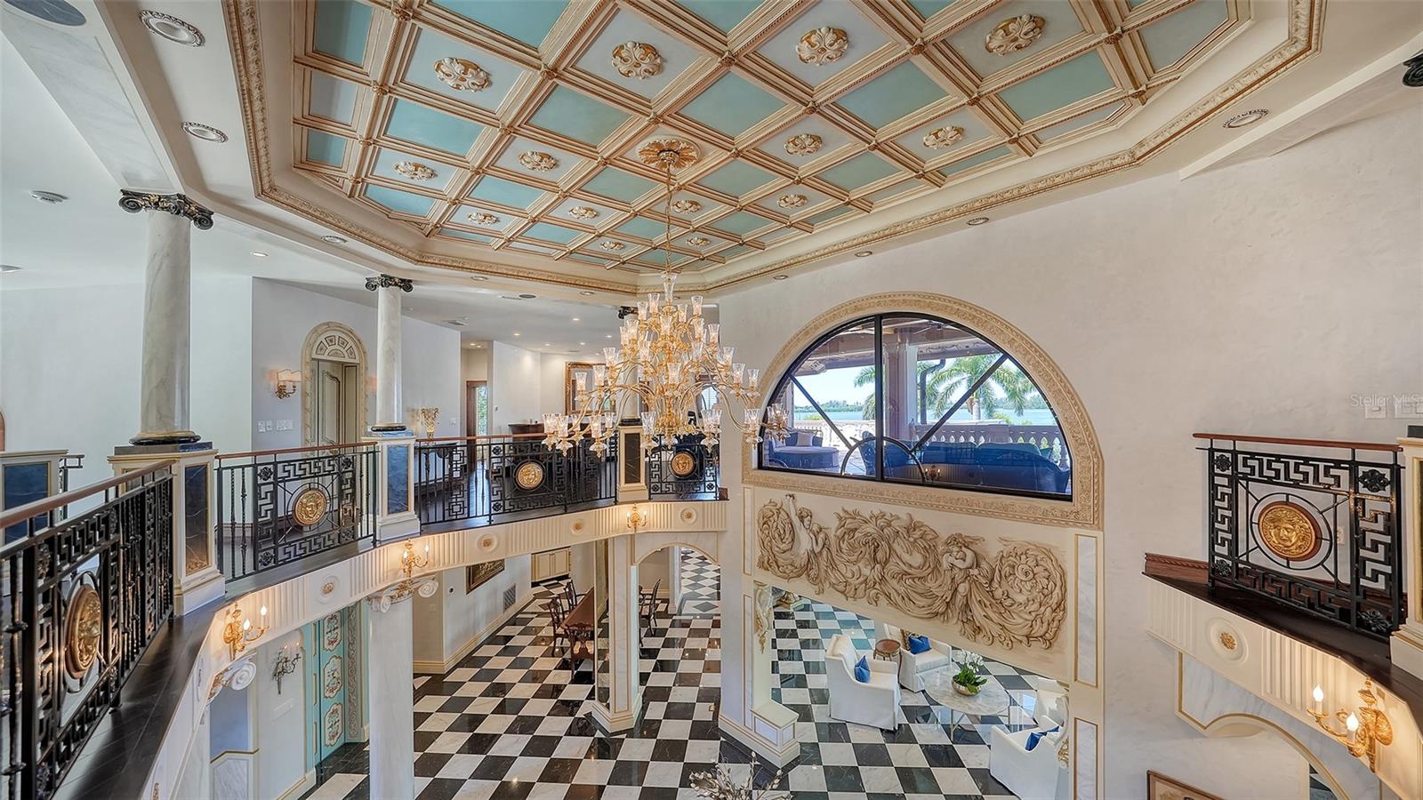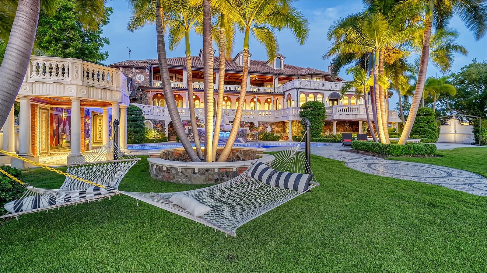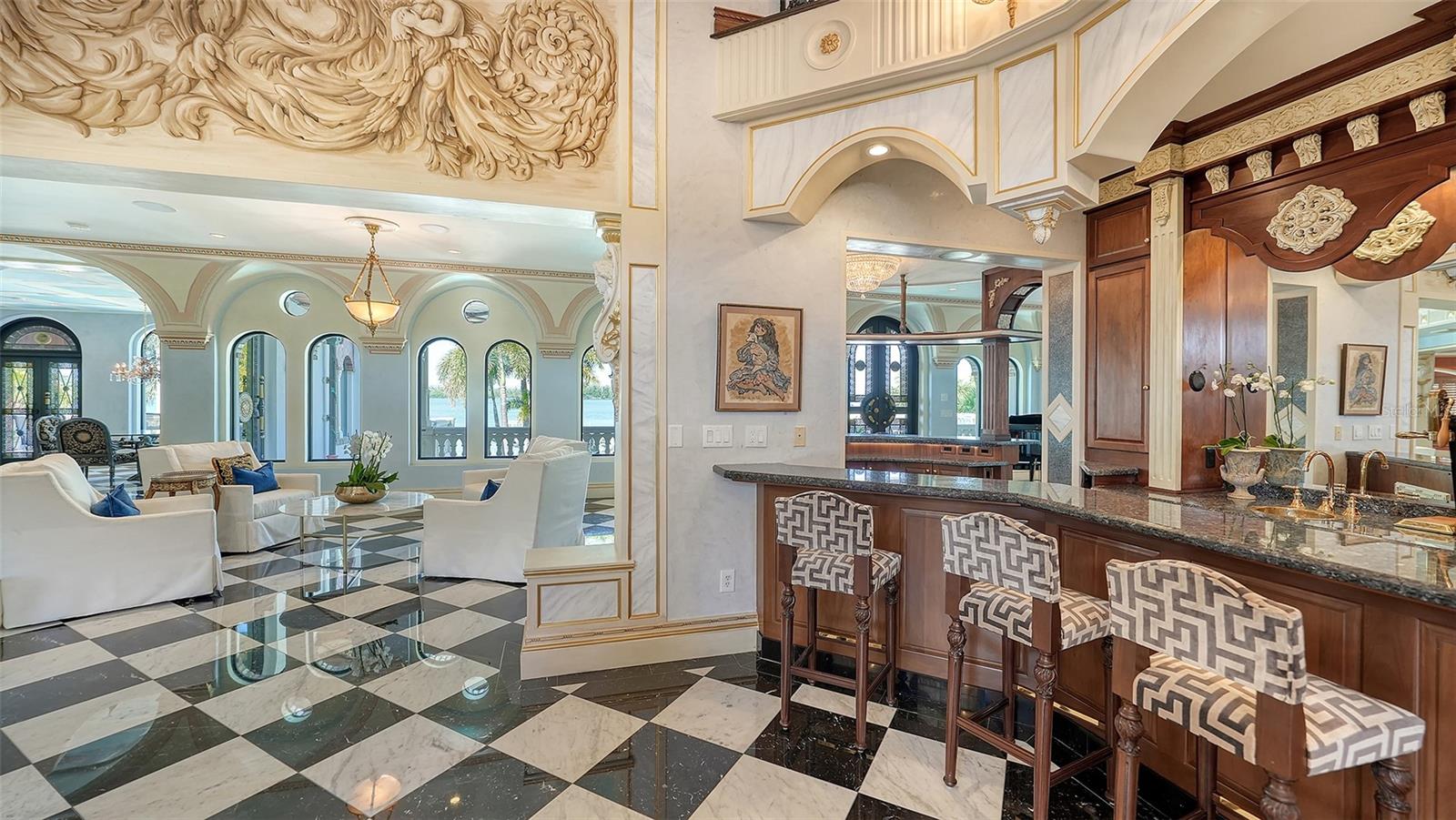 Welcome to 1310 South Lake Shore Drive. Picture yourself in this nearly 10,697 sq. ft. (plus 4,185 sq, ft. of air-conditioned garages and hobby/storage space) Neo-Classical Italian Renaissance Villa sitting on 1.21 Bayfront acres in Oyster Bay Estates. Featuring panoramic water views, this mainland residence, adjacent to The Field Club, is directly on Little Sarasota Bay (146' frontage). Enter this glamorous walled and gated estate and be instantly transported to a grand villa in Tuscany. The owners traveled extensively throughout Europe to capture the architectural details necessary to create a truly extraordinary "Old World" residence. Then calling upon design ques from Villa del Balbianello (Lake Como) and Casa Casuarina (Gianni Versace) the multiyear restoration and expansion of an already special home was completed in 2020 under the supervision of a classically trained Italian architect. Gracious "public" spaces, four bedrooms, four baths (2 half baths), and extensive outdoor spaces were intently curated to surround you with true Italian luxury. From the hand-wrought gate, highly detailed exterior, Venetian plaster walls, custom moldings with 23 carat gold leaf, hand-painted frescos, unique balustrades, pecky Cypress ceilings to the Clive Christian inspired Kitchen, and accompanying caterer's kitchen, every way your eyes travel brings a new surprise. The magnificent bay views are perfect complements to be enjoyed from inside, extensive terraces, beautiful gardens, or the dock with a 20,000-pound boat lift and accompanying jet ski lifts. This outrageous yet practical residence boasts breathtaking, panoramic views throughout the day and evening. The exterior employs roof tiles imported from Italy, 100-year-old reclaimed Chicago bricks, fallen Florida pecky Cypress wood, and 60 tons of Pennsylvania fieldstone. Unique exterior features include enclosed water sports storage areas, a separate enclosed mechanical room with handmade doors and bronze hardware, a propane-powered generator (separately enclosed with handmade doors and sufficient to run the entire home), an exterior shower area adjoined by a hand-painted Italian fresco, an octagonal covered sitting area and an outdoor bath adjacent to the pool area. The unusual 400 square foot outdoor kitchen is of a unique, submerged design with a 60-inch propane gas grill-concealed and operated by an appliance elevator. The decorative privacy wall spans 657 feet along a handmade adjacent lighted Amalfi-style decorative walkway with gold-leaf private entrance gate to The Club. A 146-foot sea wall discloses a hand-cast Corbels on the outside, a long, large seating area, and spans the entire width of the property for peace of mind. The home is overbuilt with concrete pilasters extending to solid granite and extending to the roof joists. Elements of the legendary mosaic pool by the genius Gianni Versace are displayed in the mosaics in the deck and pool area of the estate. Truly one of-a-kind residence offering gracious living now and for generations to come. Very private, but moments away from all the many cultural venues, restaurants, shopping, medical facilities, and attractions that Sarasota offers. Be prepared to be amazed!