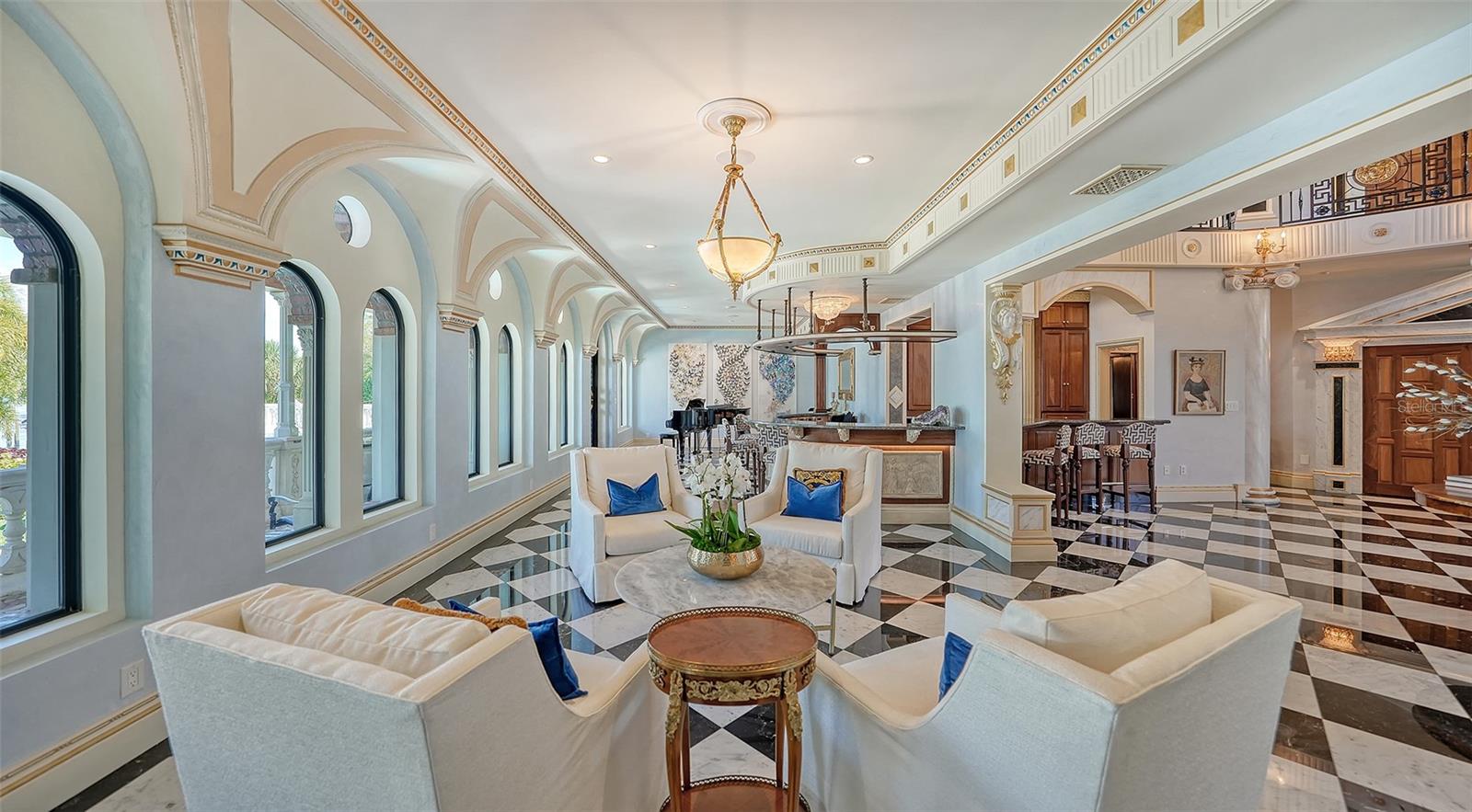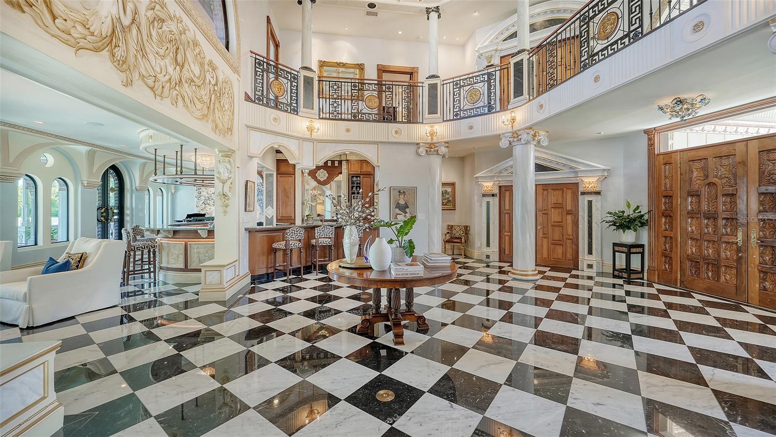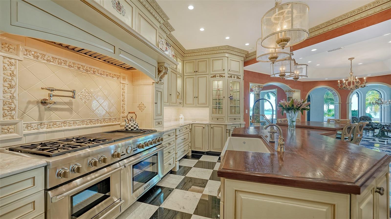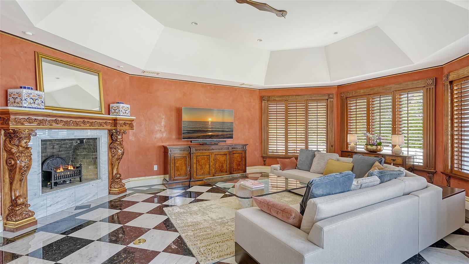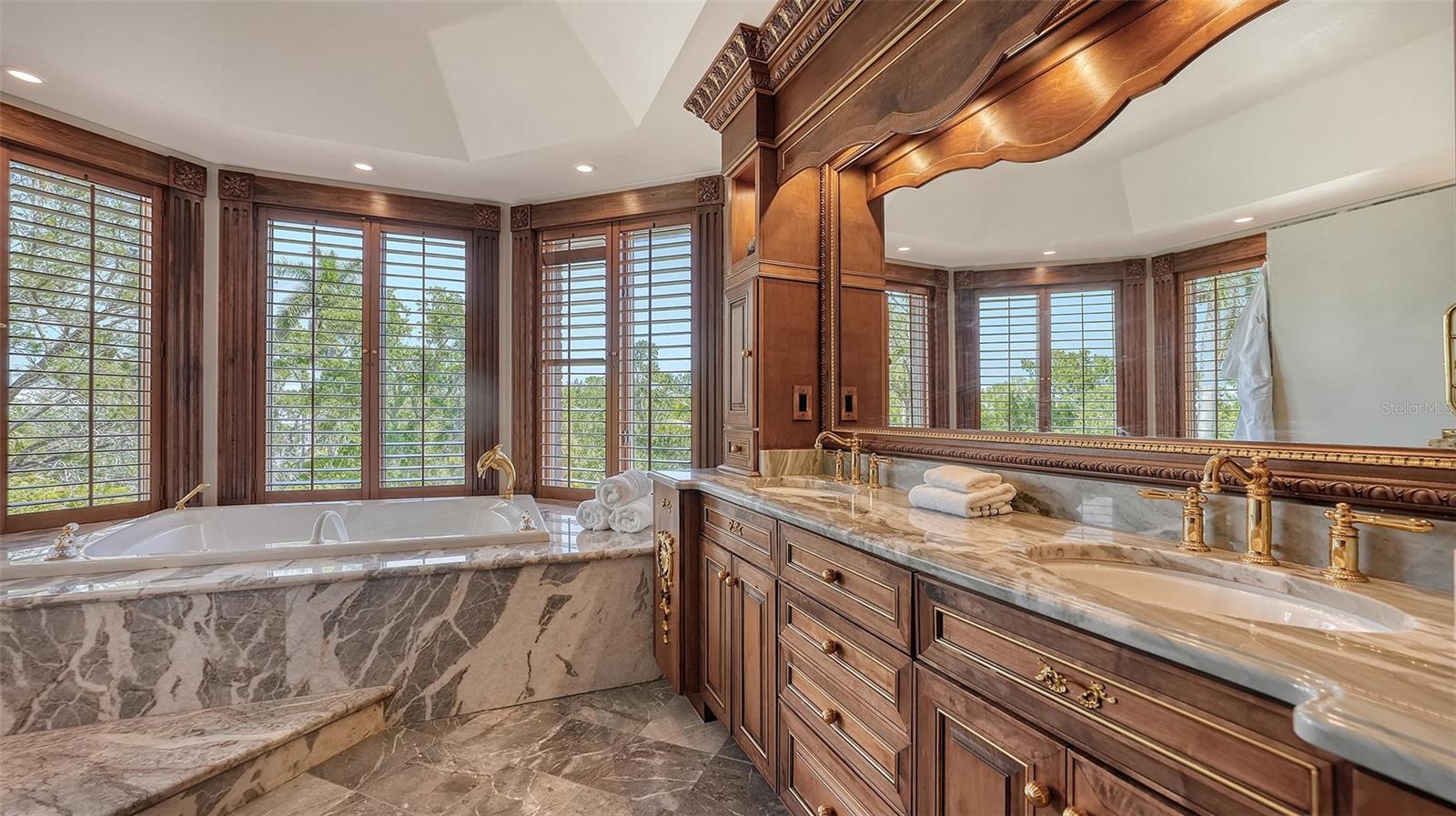 Welcome to 1310 South Lake Shore Drive. Picture yourself in this nearly 10,697 sq. ft. (plus 4,185 sq, ft. of air-conditioned garages and hobby/storage space) Neo-Classical Italian Renaissance Villa sitting on 1.21 Bayfront acres in Oyster Bay Estates. Featuring panoramic water views, this mainland residence, adjacent to The Field Club, is directly on Little Sarasota Bay (146' frontage). Enter this glamorous walled and gated estate and be instantly transported to a grand villa in Tuscany. The owners traveled extensively throughout Europe to capture the architectural details necessary to create a truly extraordinary "Old World" residence. Then calling upon design ques from Villa del Balbianello (Lake Como) and Casa Casuarina (Gianni Versace) the multiyear restoration and expansion of an already special home was completed in 2020 under the supervision of a classically trained Italian architect. Gracious "public" spaces, four bedrooms, four baths (2 half baths), and extensive outdoor spaces were intently curated to surround you with true Italian luxury. From the hand-wrought gate, highly detailed exterior, Venetian plaster walls, custom moldings with 23 carat gold leaf, hand-painted frescos, unique balustrades, pecky Cypress ceilings to the Clive Christian inspired Kitchen, and accompanying caterer's kitchen, every way your eyes travel brings a new surprise. The magnificent bay views are perfect complements to be enjoyed from inside, extensive terraces, beautiful gardens, or the dock with a 20,000-pound boat lift and accompanying jet ski lifts. This outrageous yet practical residence boasts breathtaking, panoramic views throughout the day and evening. The exterior employs roof tiles imported from Italy, 100-year-old reclaimed Chicago bricks, fallen Florida pecky Cypress wood, and 60 tons of Pennsylvania fieldstone. Unique exterior features include enclosed water sports storage areas, a separate enclosed mechanical room with handmade doors and bronze hardware, a propane-powered generator (separately enclosed with handmade doors and sufficient to run the entire home), an exterior shower area adjoined by a hand-painted Italian fresco, an octagonal covered sitting area and an outdoor bath adjacent to the pool area. The unusual 400 square foot outdoor kitchen is of a unique, submerged design with a 60-inch propane gas grill-concealed and operated by an appliance elevator. The decorative privacy wall spans 657 feet along a handmade adjacent lighted Amalfi-style decorative walkway with gold-leaf private entrance gate to The Club. A 146-foot sea wall discloses a hand-cast Corbels on the outside, a long, large seating area, and spans the entire width of the property for peace of mind. The home is overbuilt with concrete pilasters extending to solid granite and extending to the roof joists. Elements of the legendary mosaic pool by the genius Gianni Versace are displayed in the mosaics in the deck and pool area of the estate. Truly one of-a-kind residence offering gracious living now and for generations to come. Very private, but moments away from all the many cultural venues, restaurants, shopping, medical facilities, and attractions that Sarasota offers. Be prepared to be amazed!