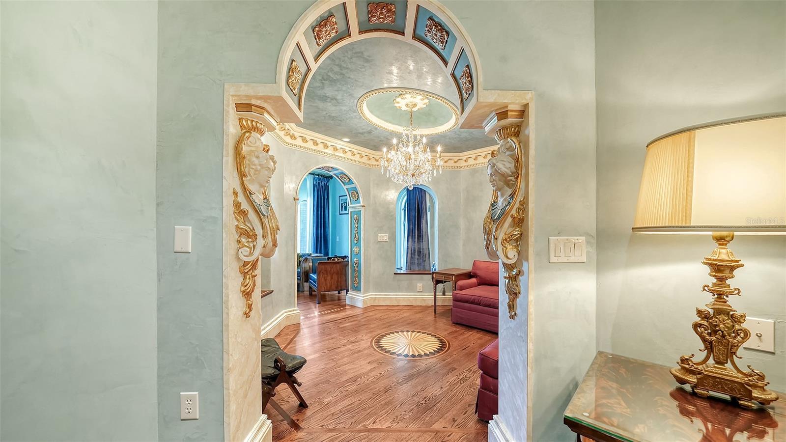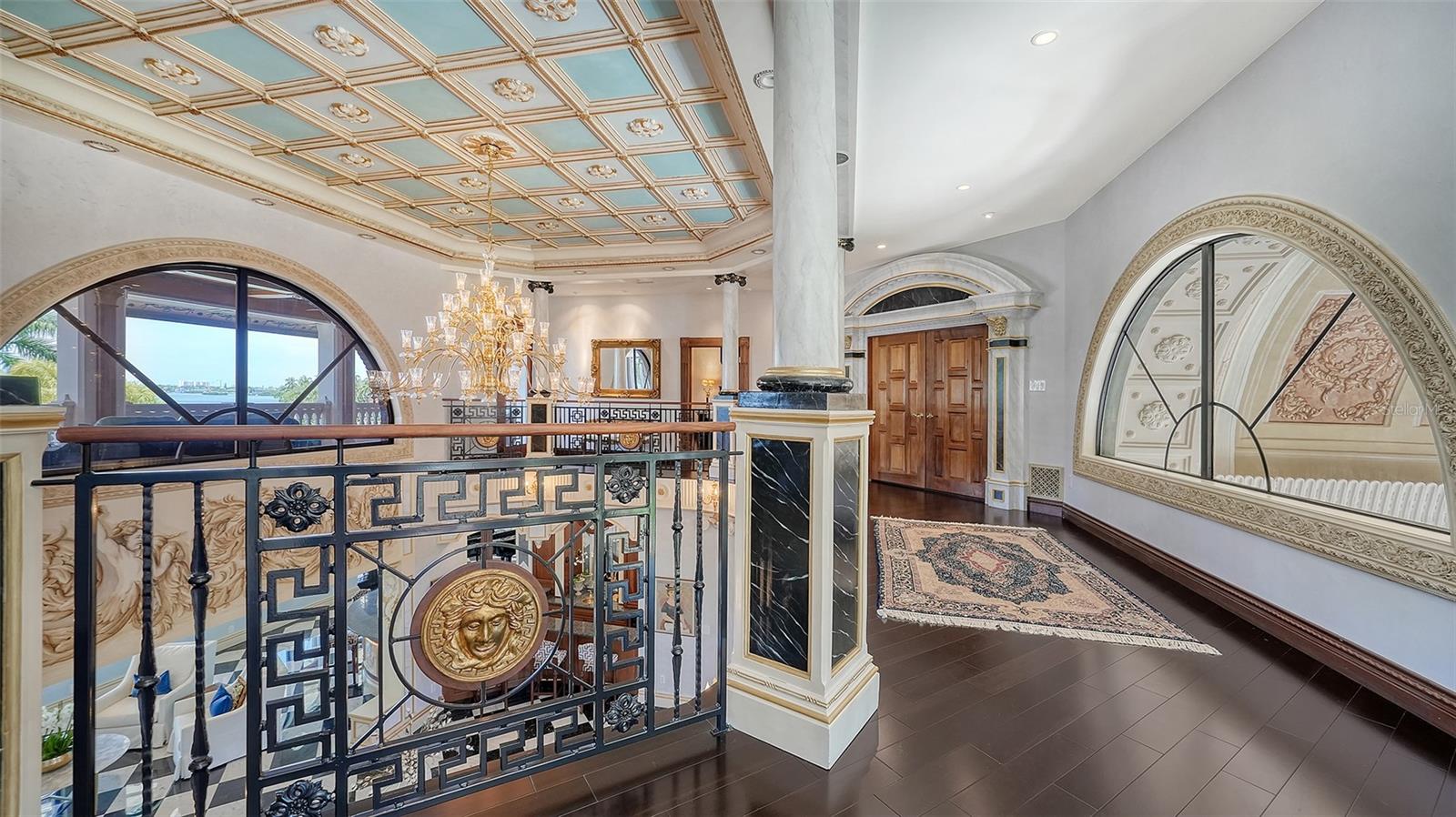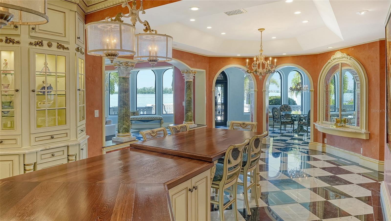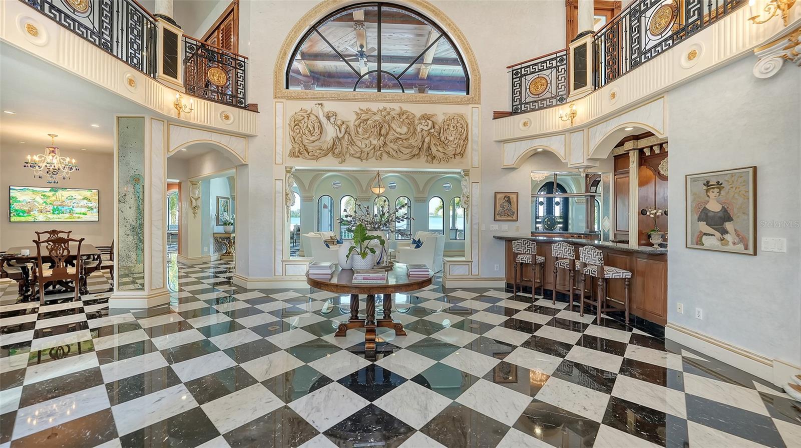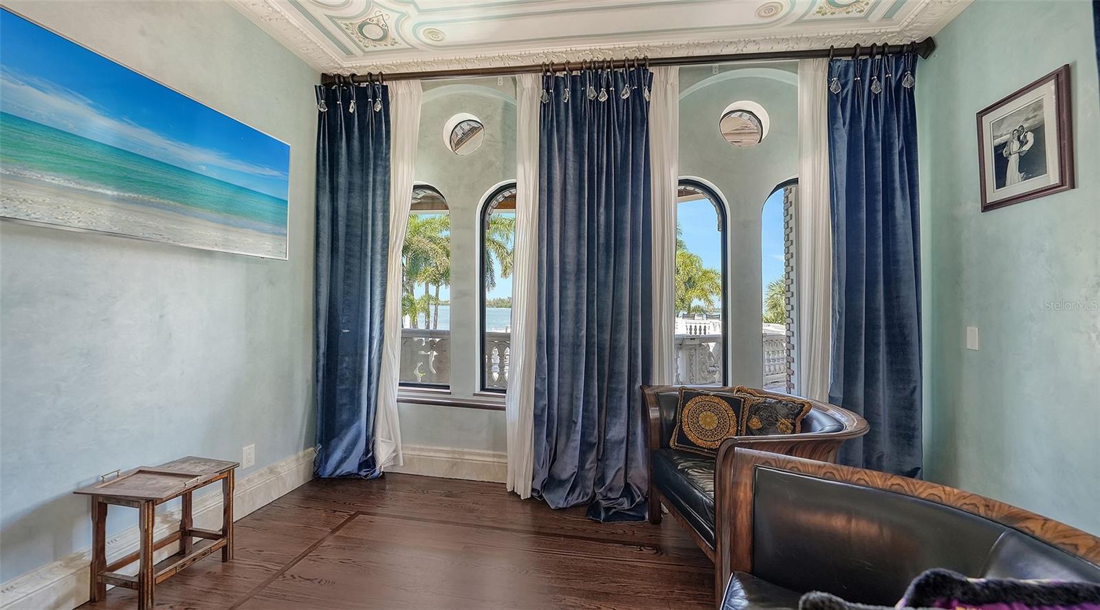 Welcome to 1310 South Lake Shore Drive. Picture yourself in this nearly 10,697 sq. ft. (plus 4,185 sq, ft. of air-conditioned garages and hobby/storage space) Neo-Classical Italian Renaissance Villa sitting on 1.21 Bayfront acres in Oyster Bay Estates. Featuring panoramic water views, this mainland residence, adjacent to The Field Club, is directly on Little Sarasota Bay (146' frontage). Enter this glamorous walled and gated estate and be instantly transported to a grand villa in Tuscany. The owners traveled extensively throughout Europe to capture the architectural details necessary to create a truly extraordinary "Old World" residence. Then calling upon design ques from Villa del Balbianello (Lake Como) and Casa Casuarina (Gianni Versace) the multiyear restoration and expansion of an already special home was completed in 2020 under the supervision of a classically trained Italian architect. Gracious "public" spaces, four bedrooms, four baths (2 half baths), and extensive outdoor spaces were intently curated to surround you with true Italian luxury. From the hand-wrought gate, highly detailed exterior, Venetian plaster walls, custom moldings with 23 carat gold leaf, hand-painted frescos, unique balustrades, pecky Cypress ceilings to the Clive Christian inspired Kitchen, and accompanying caterer's kitchen, every way your eyes travel brings a new surprise. The magnificent bay views are perfect complements to be enjoyed from inside, extensive terraces, beautiful gardens, or the dock with a 20,000-pound boat lift and accompanying jet ski lifts. This outrageous yet practical residence boasts breathtaking, panoramic views throughout the day and evening. The exterior employs roof tiles imported from Italy, 100-year-old reclaimed Chicago bricks, fallen Florida pecky Cypress wood, and 60 tons of Pennsylvania fieldstone. Unique exterior features include enclosed water sports storage areas, a separate enclosed mechanical room with handmade doors and bronze hardware, a propane-powered generator (separately enclosed with handmade doors and sufficient to run the entire home), an exterior shower area adjoined by a hand-painted Italian fresco, an octagonal covered sitting area and an outdoor bath adjacent to the pool area. The unusual 400 square foot outdoor kitchen is of a unique, submerged design with a 60-inch propane gas grill-concealed and operated by an appliance elevator. The decorative privacy wall spans 657 feet along a handmade adjacent lighted Amalfi-style decorative walkway with gold-leaf private entrance gate to The Club. A 146-foot sea wall discloses a hand-cast Corbels on the outside, a long, large seating area, and spans the entire width of the property for peace of mind. The home is overbuilt with concrete pilasters extending to solid granite and extending to the roof joists. Elements of the legendary mosaic pool by the genius Gianni Versace are displayed in the mosaics in the deck and pool area of the estate. Truly one of-a-kind residence offering gracious living now and for generations to come. Very private, but moments away from all the many cultural venues, restaurants, shopping, medical facilities, and attractions that Sarasota offers. Be prepared to be amazed!