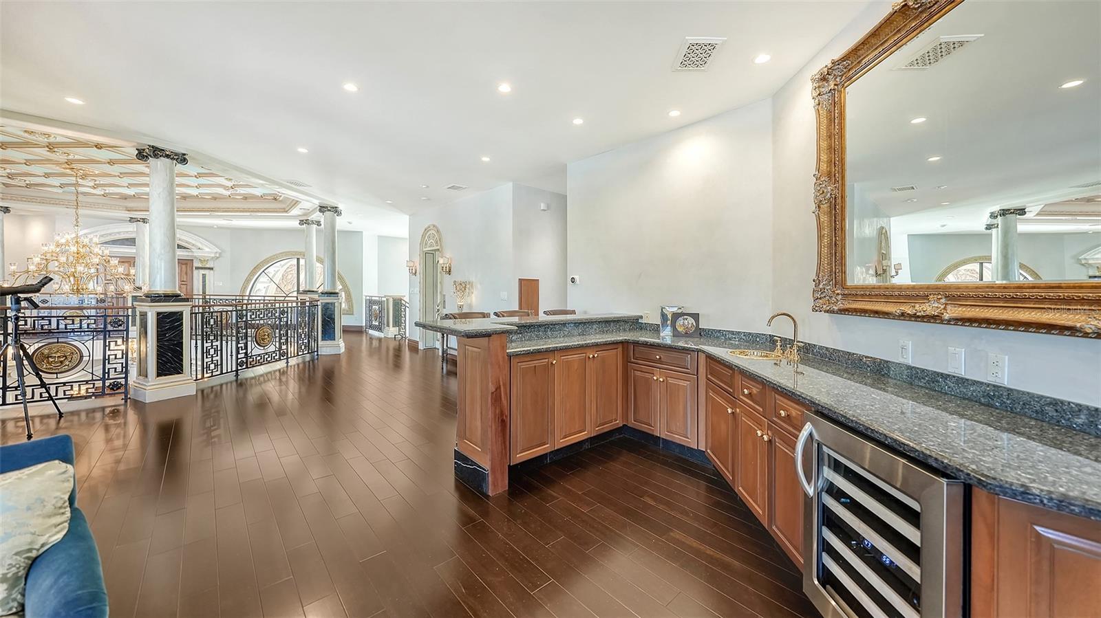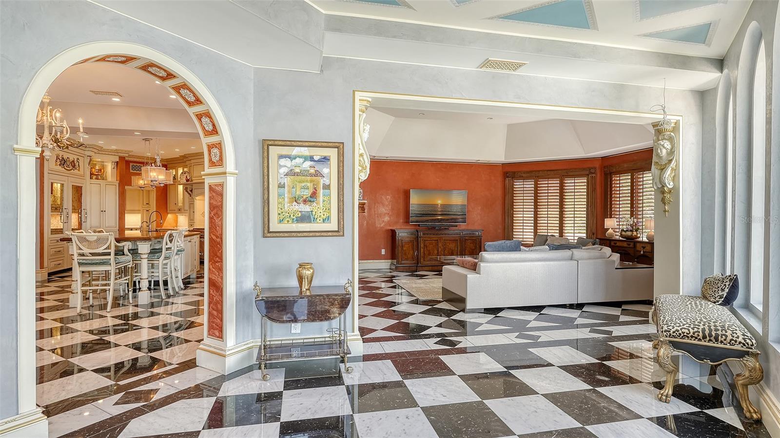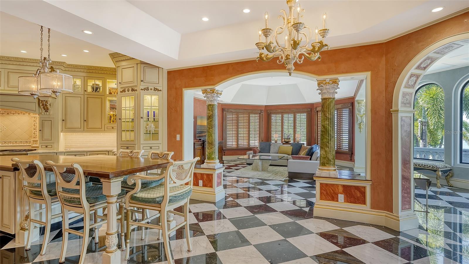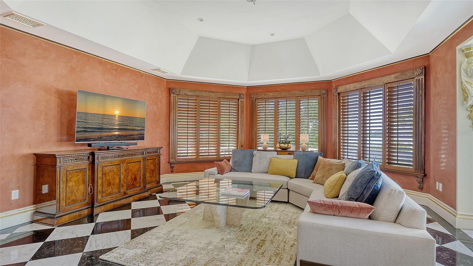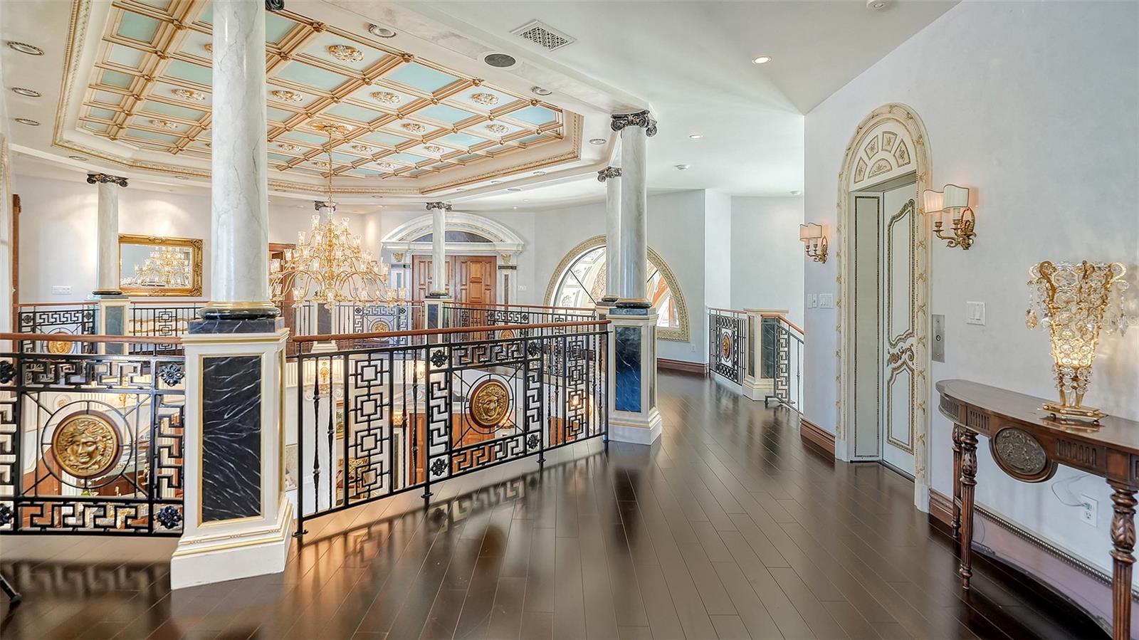 Welcome to 1310 South Lake Shore Drive. Picture yourself in this nearly 10,697 sq. ft. (plus 4,185 sq, ft. of air-conditioned garages and hobby/storage space) Neo-Classical Italian Renaissance Villa sitting on 1.21 Bayfront acres in Oyster Bay Estates. Featuring panoramic water views, this mainland residence, adjacent to The Field Club, is directly on Little Sarasota Bay (146' frontage). Enter this glamorous walled and gated estate and be instantly transported to a grand villa in Tuscany. The owners traveled extensively throughout Europe to capture the architectural details necessary to create a truly extraordinary "Old World" residence. Then calling upon design ques from Villa del Balbianello (Lake Como) and Casa Casuarina (Gianni Versace) the multiyear restoration and expansion of an already special home was completed in 2020 under the supervision of a classically trained Italian architect. Gracious "public" spaces, four bedrooms, four baths (2 half baths), and extensive outdoor spaces were intently curated to surround you with true Italian luxury. From the hand-wrought gate, highly detailed exterior, Venetian plaster walls, custom moldings with 23 carat gold leaf, hand-painted frescos, unique balustrades, pecky Cypress ceilings to the Clive Christian inspired Kitchen, and accompanying caterer's kitchen, every way your eyes travel brings a new surprise. The magnificent bay views are perfect complements to be enjoyed from inside, extensive terraces, beautiful gardens, or the dock with a 20,000-pound boat lift and accompanying jet ski lifts. This outrageous yet practical residence boasts breathtaking, panoramic views throughout the day and evening. The exterior employs roof tiles imported from Italy, 100-year-old reclaimed Chicago bricks, fallen Florida pecky Cypress wood, and 60 tons of Pennsylvania fieldstone. Unique exterior features include enclosed water sports storage areas, a separate enclosed mechanical room with handmade doors and bronze hardware, a propane-powered generator (separately enclosed with handmade doors and sufficient to run the entire home), an exterior shower area adjoined by a hand-painted Italian fresco, an octagonal covered sitting area and an outdoor bath adjacent to the pool area. The unusual 400 square foot outdoor kitchen is of a unique, submerged design with a 60-inch propane gas grill-concealed and operated by an appliance elevator. The decorative privacy wall spans 657 feet along a handmade adjacent lighted Amalfi-style decorative walkway with gold-leaf private entrance gate to The Club. A 146-foot sea wall discloses a hand-cast Corbels on the outside, a long, large seating area, and spans the entire width of the property for peace of mind. The home is overbuilt with concrete pilasters extending to solid granite and extending to the roof joists. Elements of the legendary mosaic pool by the genius Gianni Versace are displayed in the mosaics in the deck and pool area of the estate. Truly one of-a-kind residence offering gracious living now and for generations to come. Very private, but moments away from all the many cultural venues, restaurants, shopping, medical facilities, and attractions that Sarasota offers. Be prepared to be amazed!