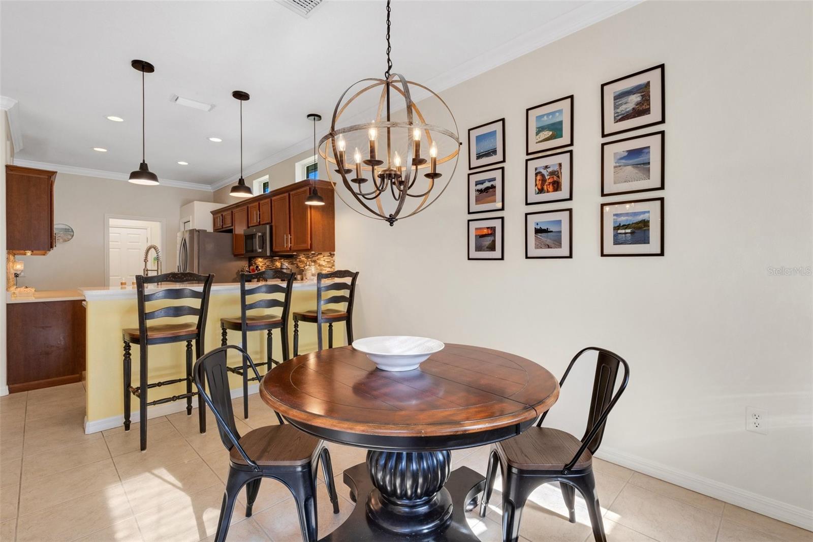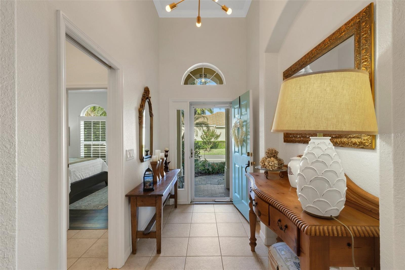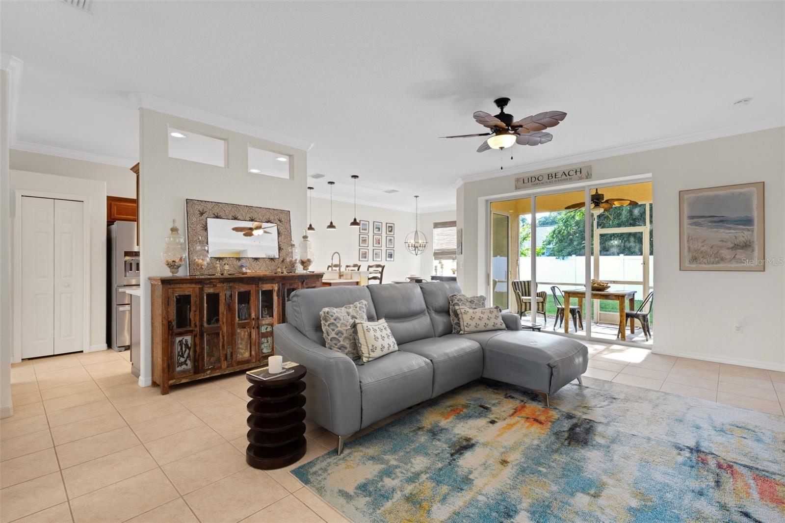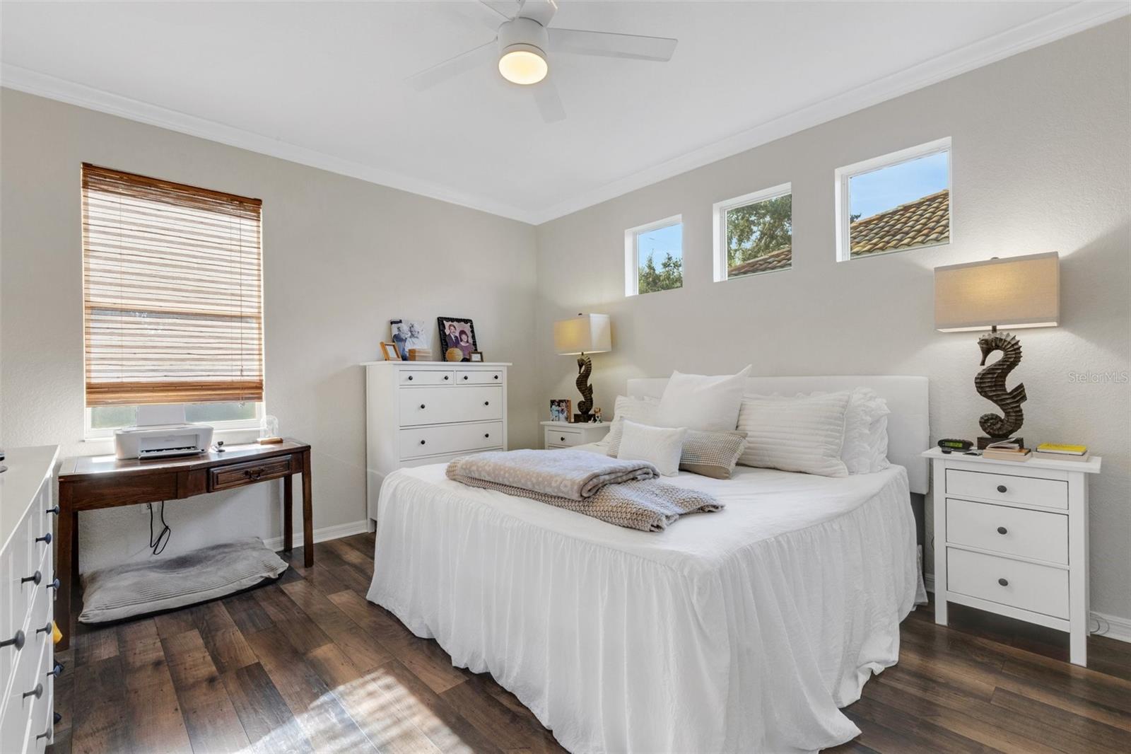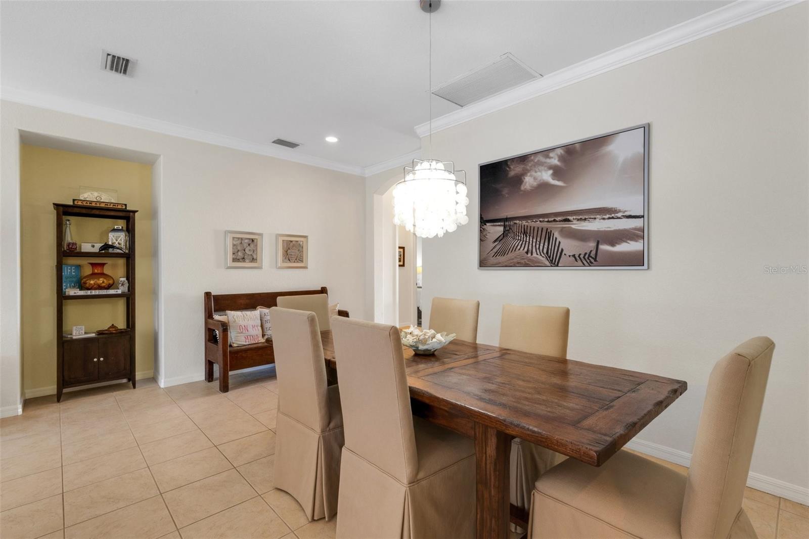 Nestled in a pet-friendly neighborhood, this charming residence offers a serene environment with sidewalks, a community pool, a clubhouse, and a playground. The interior boasts a split bedroom floor plan, welcoming foyer entry, and high ceilings. The open-concept great room flows into a separate dining area and a screened-covered porch, ideal for relaxing or entertaining near the fire pit. The home features tiled floors in the living areas and wood laminate in the bedrooms. The kitchen is a chef's delight with stainless steel appliances, a stainless steel sink, and quartz countertops, complemented by crown molding throughout the master suite and living spaces. The bathrooms are updated with all-new lighting and quartz countertops. Freshly painted both inside and out, this home also showcases a tile roof, brick paver driveway, and walkway, adding to its curb appeal. Whether you're seeking year-round comfort or a vacation retreat, this home is perfect for you. Enjoy low monthly maintenance fees and a welcoming community atmosphere. Ideally located, you're just minutes from downtown, top-rated schools, shopping, the airport, Sarasota, and Bradenton. Don’t miss out on this exceptional opportunity!