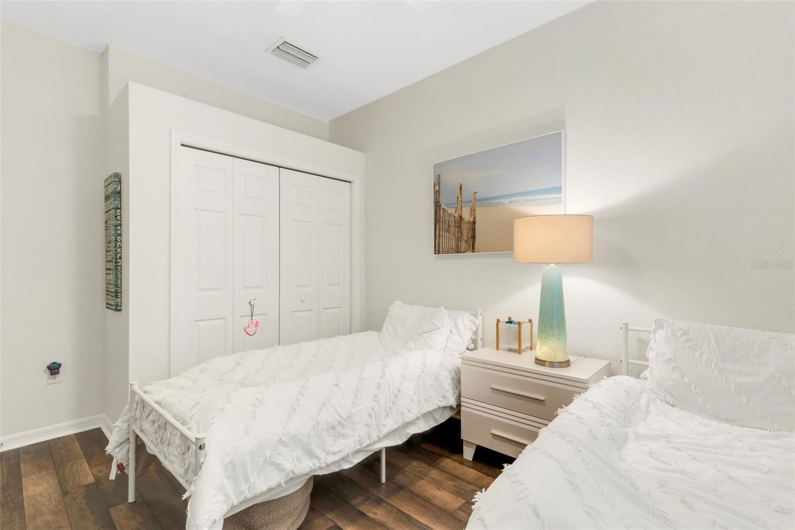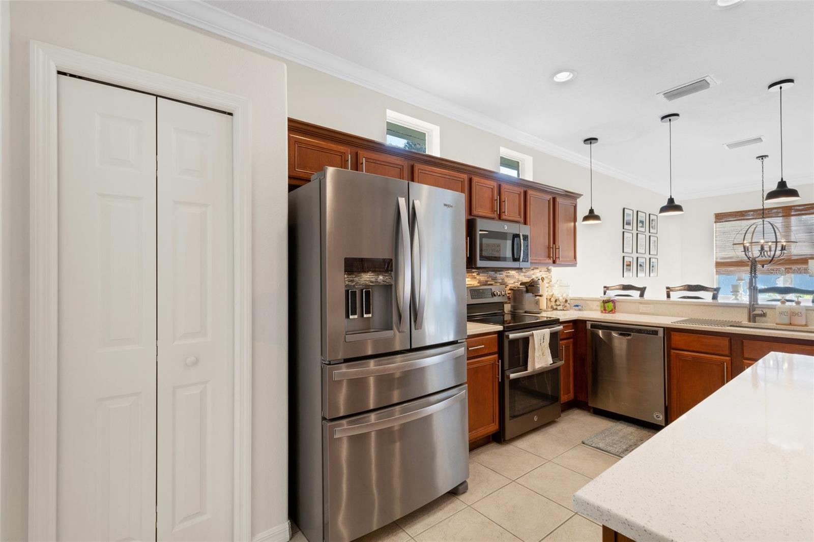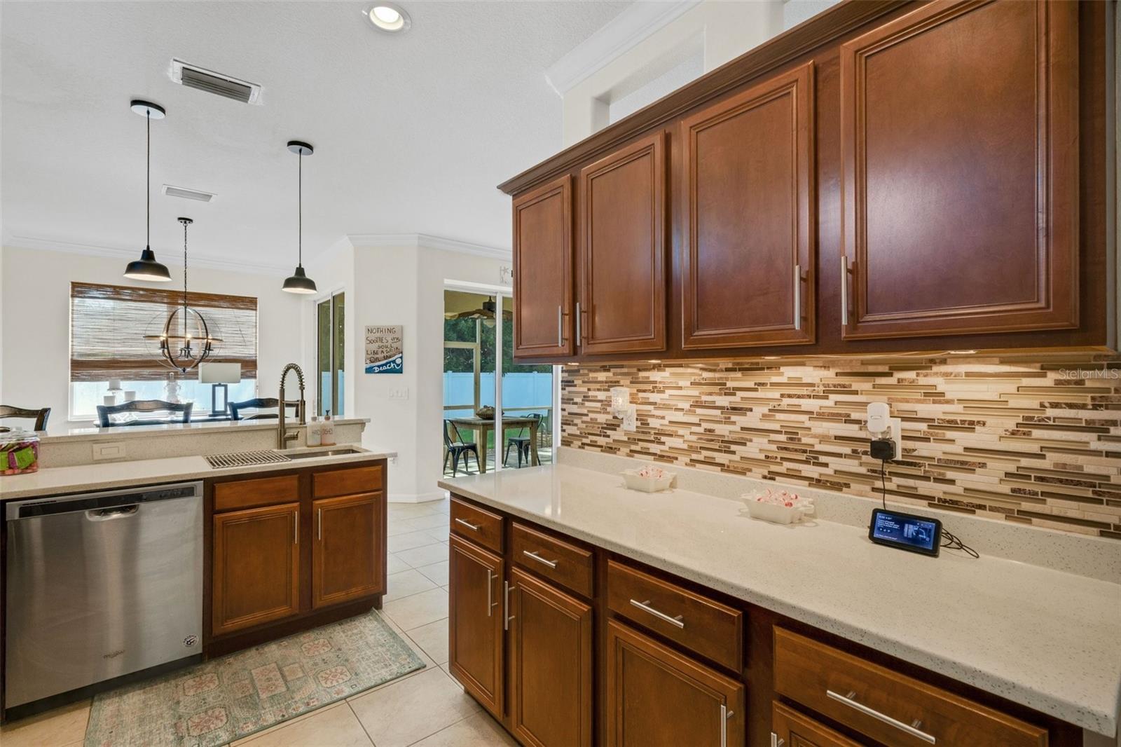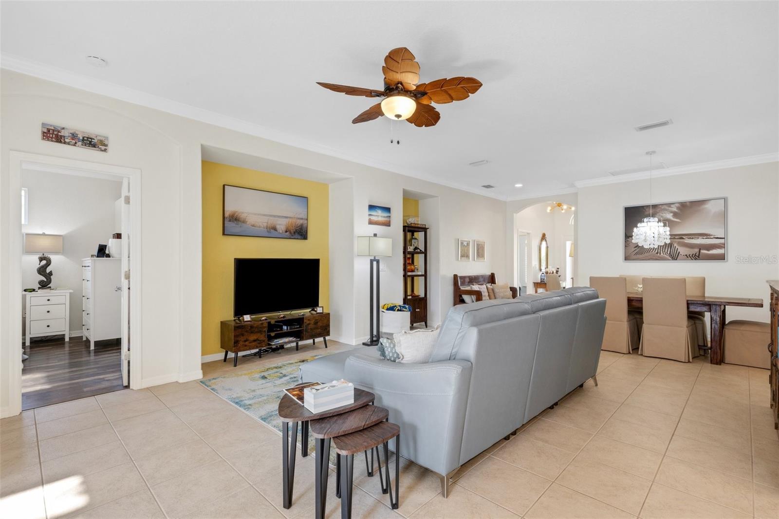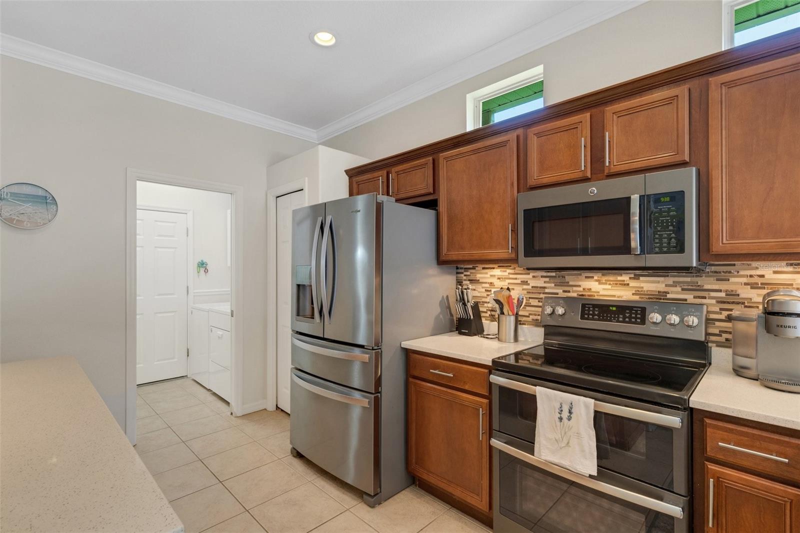 Nestled in a pet-friendly neighborhood, this charming residence offers a serene environment with sidewalks, a community pool, a clubhouse, and a playground. The interior boasts a split bedroom floor plan, welcoming foyer entry, and high ceilings. The open-concept great room flows into a separate dining area and a screened-covered porch, ideal for relaxing or entertaining near the fire pit. The home features tiled floors in the living areas and wood laminate in the bedrooms. The kitchen is a chef's delight with stainless steel appliances, a stainless steel sink, and quartz countertops, complemented by crown molding throughout the master suite and living spaces. The bathrooms are updated with all-new lighting and quartz countertops. Freshly painted both inside and out, this home also showcases a tile roof, brick paver driveway, and walkway, adding to its curb appeal. Whether you're seeking year-round comfort or a vacation retreat, this home is perfect for you. Enjoy low monthly maintenance fees and a welcoming community atmosphere. Ideally located, you're just minutes from downtown, top-rated schools, shopping, the airport, Sarasota, and Bradenton. Don’t miss out on this exceptional opportunity!