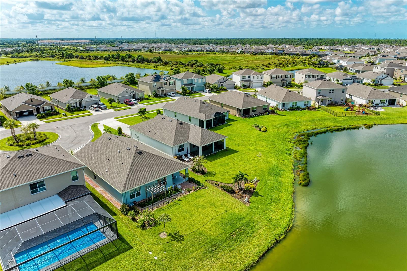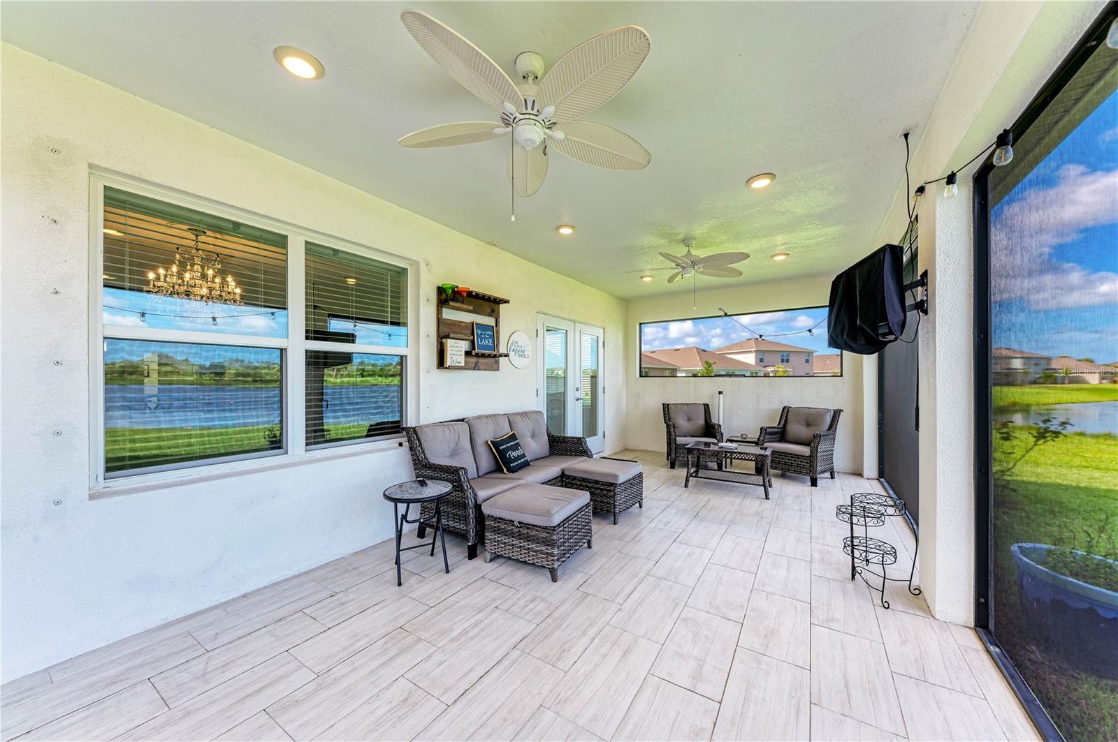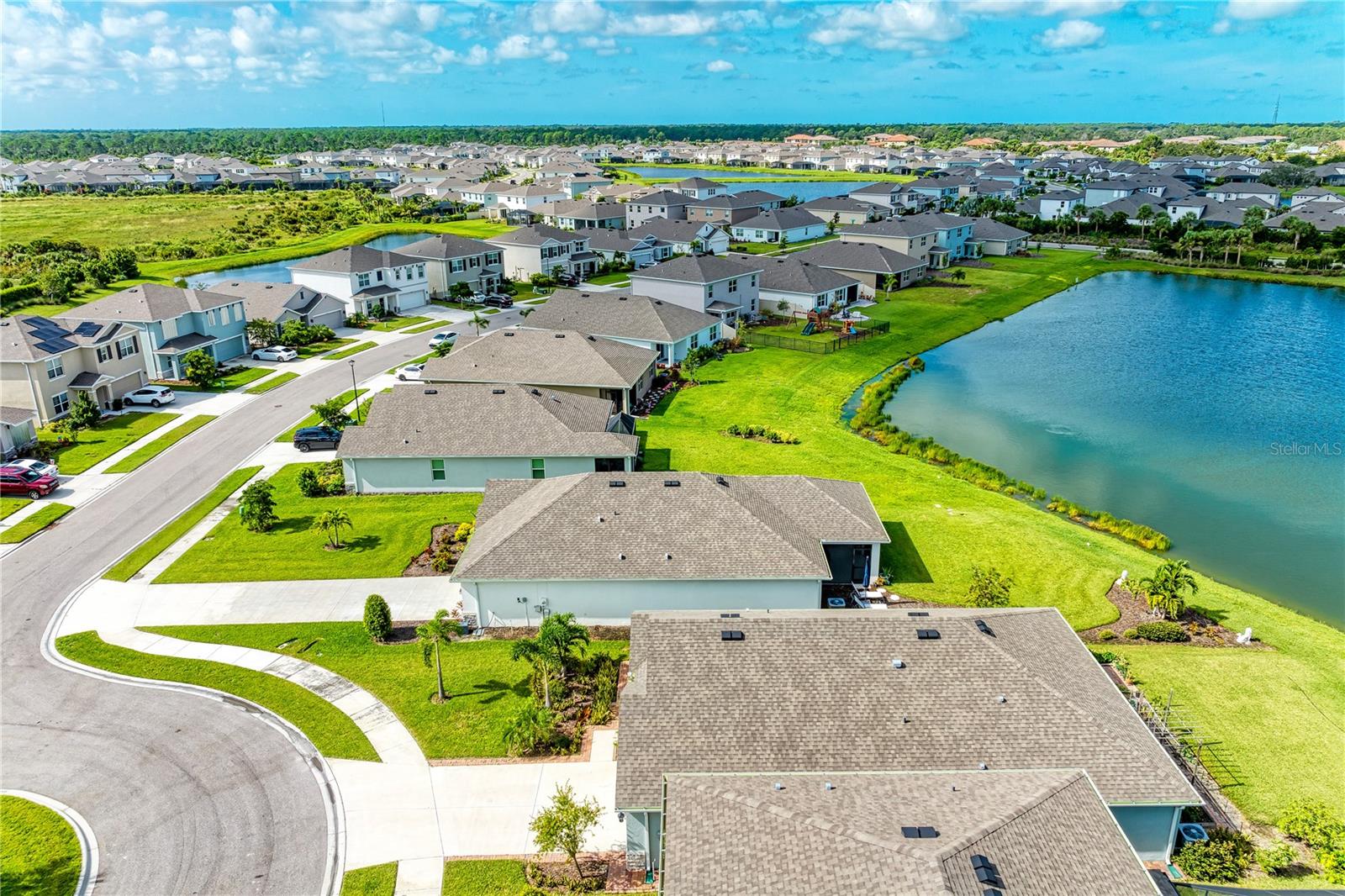 Why wait for new construction? You can soon own this beautiful almost new home in Promenade Estates and coveted Palmer Ranch. The gated community has a pool, splash pad, gym, playground, and dog park and is located West of I-75 only steps from Legacy Trail in Osprey. As you drive up, you will love the extra long driveway and landscaped, oversized lot. When you walk through the arched entrance into this open floor plan, you will love the ceramic tile in every room (no carpeting), and enjoy the view of the pond. Kitchen has stone countertop and pantry with extra shelving. The owner's suite has a view of the pond, a walk-in closet with barn door entrance. The En Suite bathroom has dual sinks, a water closet, linen closet and shower. Two additional bedrooms share a second bathroom. The inside laundry room has extra shelving. Smart home features throughout. In 2021, a permitted upgrade expanded living area by 110sf and added a structural 26ft. X 12ft. screened-in, covered lanai with impact resistant French doors, prepped with pre-plumbing for outdoor Kitchen.