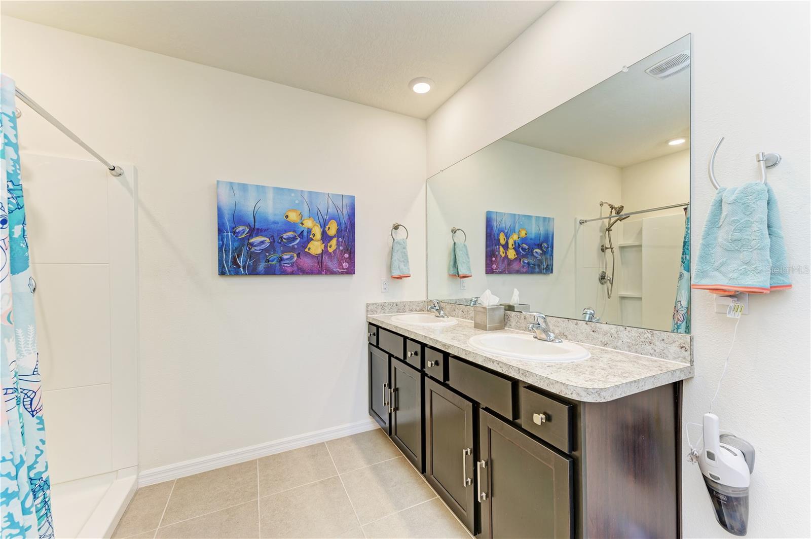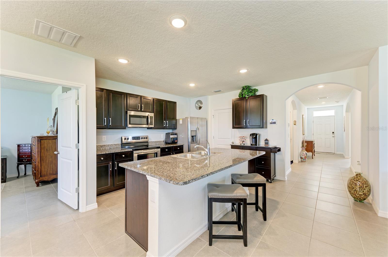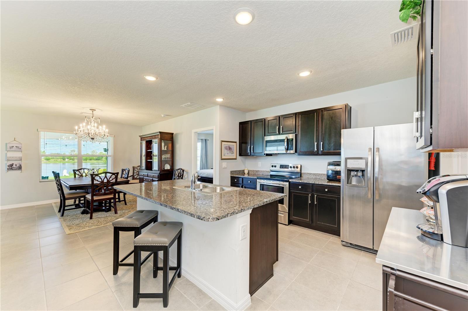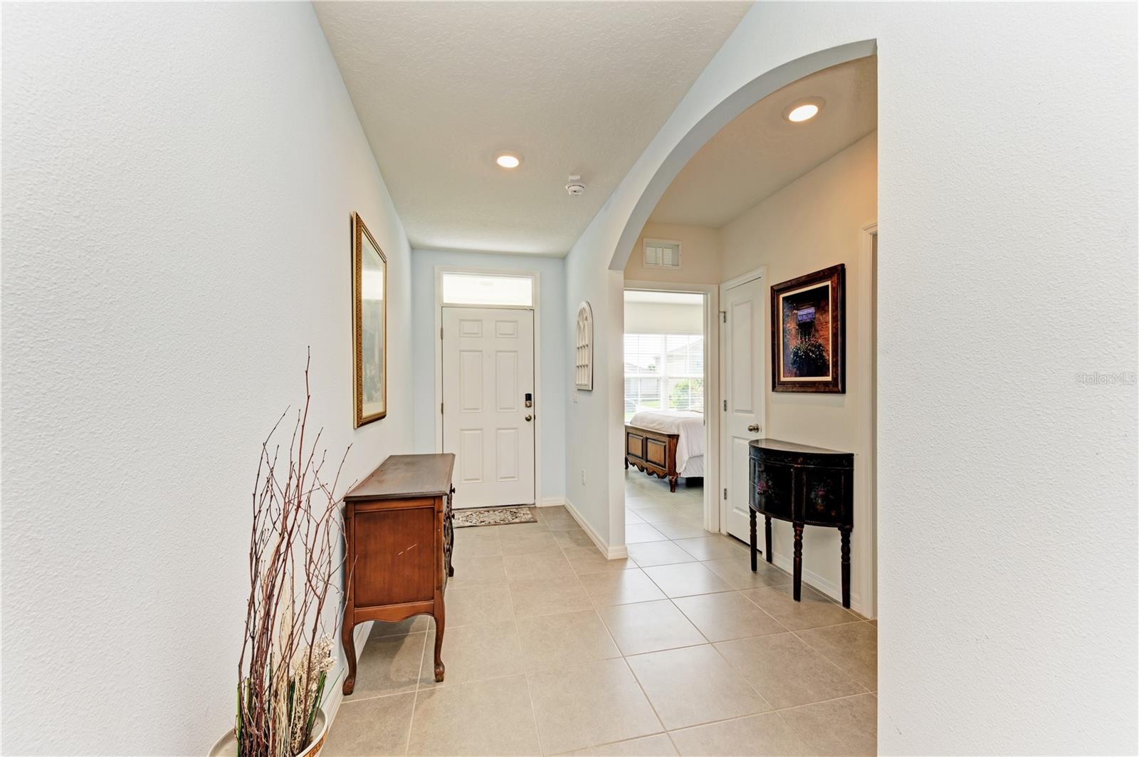 Why wait for new construction? You can soon own this beautiful almost new home in Promenade Estates and coveted Palmer Ranch. The gated community has a pool, splash pad, gym, playground, and dog park and is located West of I-75 only steps from Legacy Trail in Osprey. As you drive up, you will love the extra long driveway and landscaped, oversized lot. When you walk through the arched entrance into this open floor plan, you will love the ceramic tile in every room (no carpeting), and enjoy the view of the pond. Kitchen has stone countertop and pantry with extra shelving. The owner's suite has a view of the pond, a walk-in closet with barn door entrance. The En Suite bathroom has dual sinks, a water closet, linen closet and shower. Two additional bedrooms share a second bathroom. The inside laundry room has extra shelving. Smart home features throughout. In 2021, a permitted upgrade expanded living area by 110sf and added a structural 26ft. X 12ft. screened-in, covered lanai with impact resistant French doors, prepped with pre-plumbing for outdoor Kitchen.
