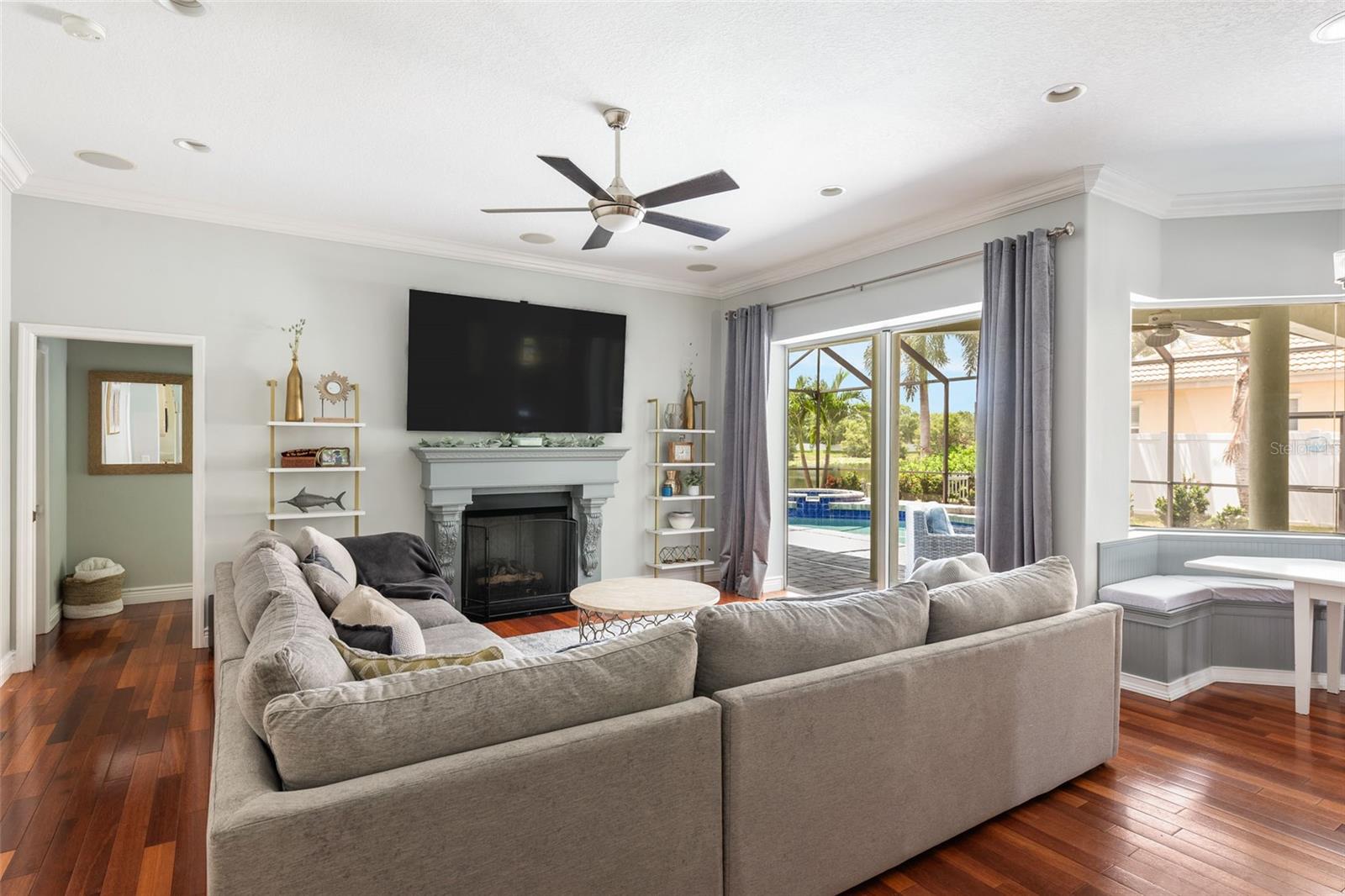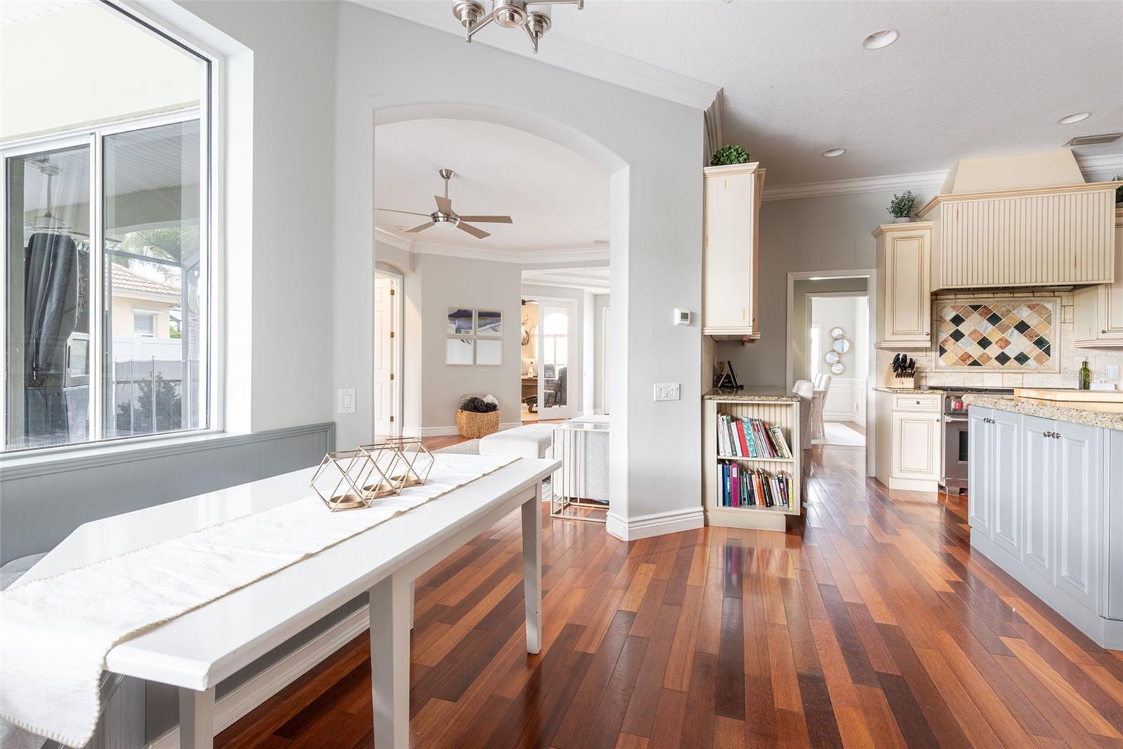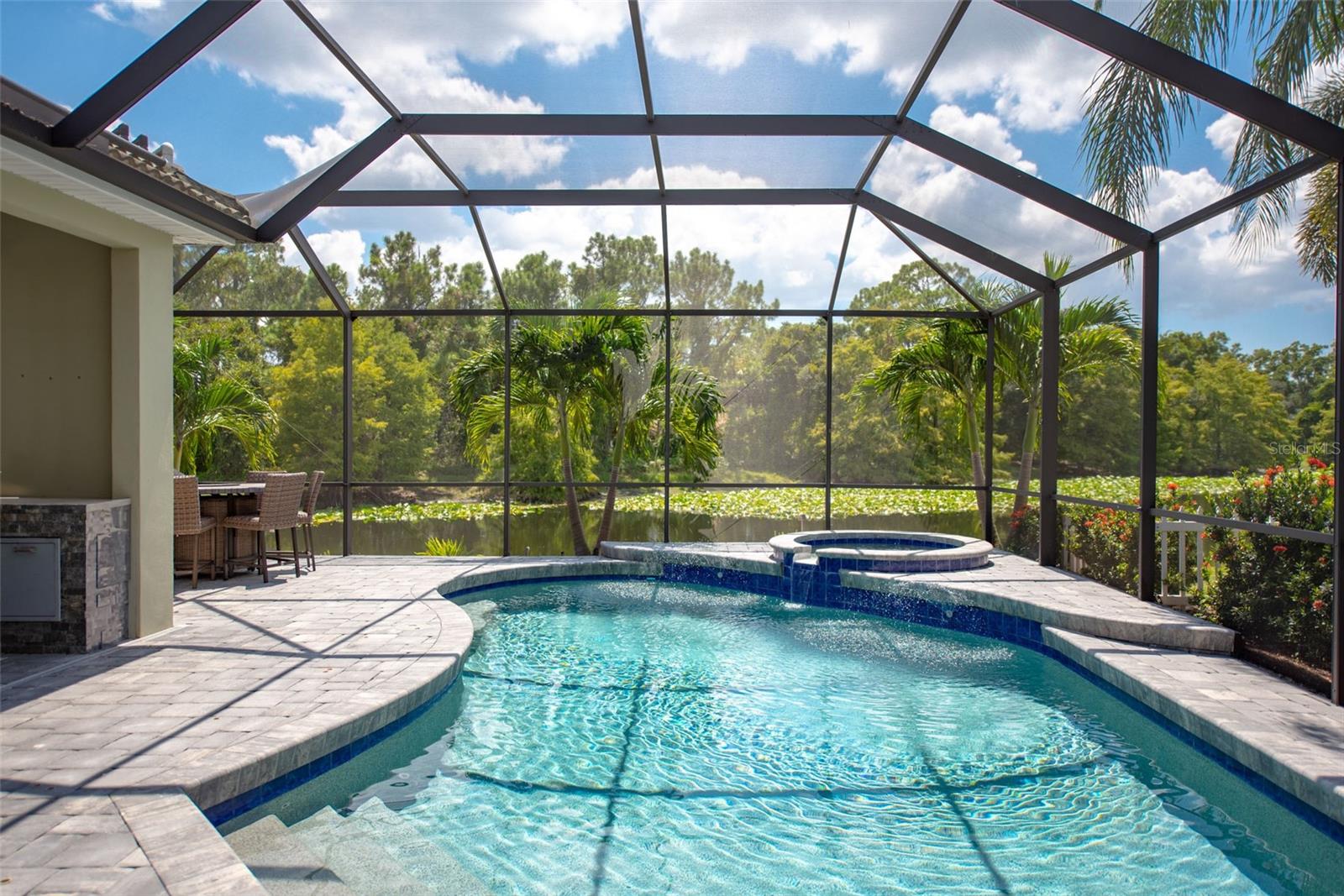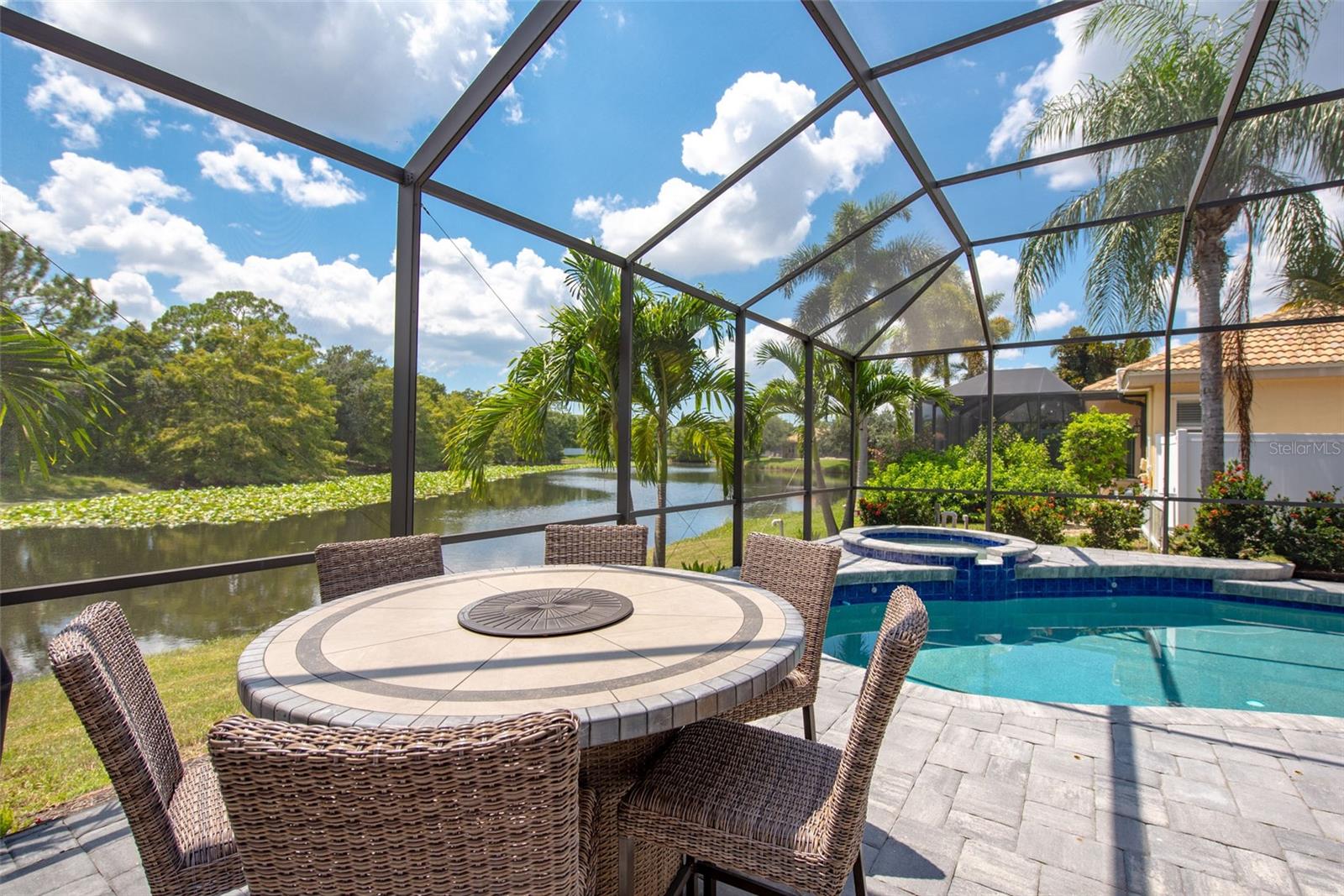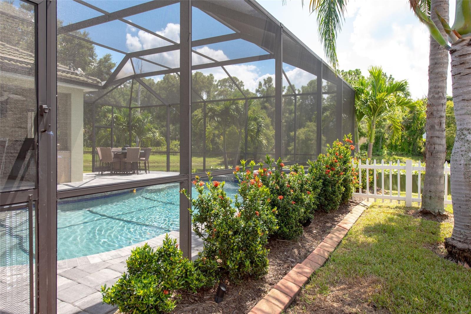 Your private paradise awaits in this stunning four-bedroom, three-bathroom Palmer Glen home, where luxury and comfort come together seamlessly. Step into this stunning residence and be greeted by an expansive open living space bathed in natural light. The elegant design features sweeping views of the sparkling pool, creating a serene and inviting atmosphere. The formal dining area is perfect for hosting memorable gatherings and special occasions, while the large bonus room offers endless possibilities, whether you envision it as a home office, playroom, or personal retreat. This home combines style, comfort, and functionality, providing a perfect backdrop for both relaxation and entertainment. The gourmet kitchen boasts a six burner Wolf Gas Range, Sub-Zero Refrigerator, a new Bosch dishwasher, custom cabinets, undermount cabinet lighting, an oversized island, built-in desk area, and charming breakfast nook with a built-in bench. Adjacent to the kitchen, a spacious butler's pantry provides additional storage and prep space, making entertaining a breeze. The inviting living room features a cozy fireplace, elegant crown molding, and beautiful cherry wood flooring. The home’s layout includes an exquisite primary suite, complete with his and her walk-in closets and an ensuite bathroom that offers the ultimate in luxury, providing ample space and privacy. Each additional bedroom offers comfort and easy access to the two full bathrooms, ensuring convenience for family and guests alike. Sliding glass doors lead to a screened lanai, complete with a heated pool and spa, perfect for relaxing while observing the wildlife in the serene pond behind the house. The sparkling pool, which is heated for year-round enjoyment, and the upgraded outdoor kitchen, are just a few of the many features that make this home exceptional. Recent enhancements include new pool pavers and drains, a new pool pump and a new electric pool heater. The property also boasts updated interior lighting, fresh paint, and a newly re-screened and painted pool cage. Located just across from the picturesque Celery Fields, this home offers the perfect blend of tranquil surroundings and convenient access to all of Sarasota's amenities. Enjoy serene, quiet living while being just minutes away from everything you desire!
