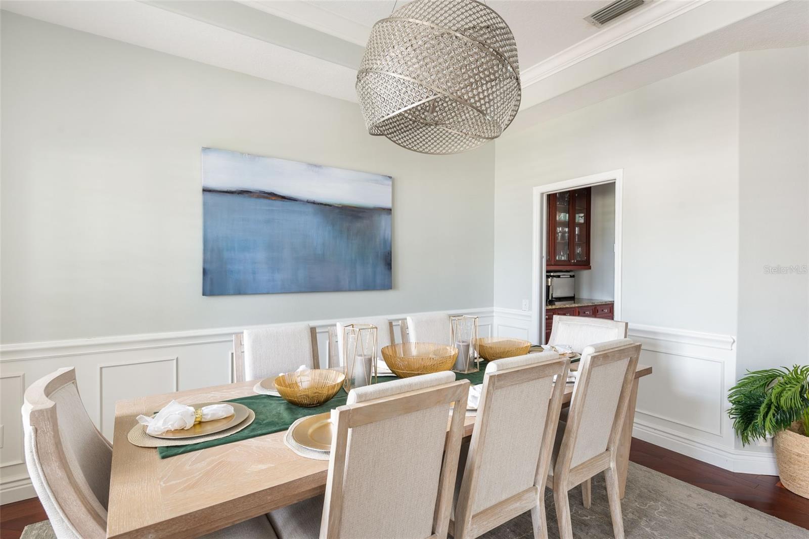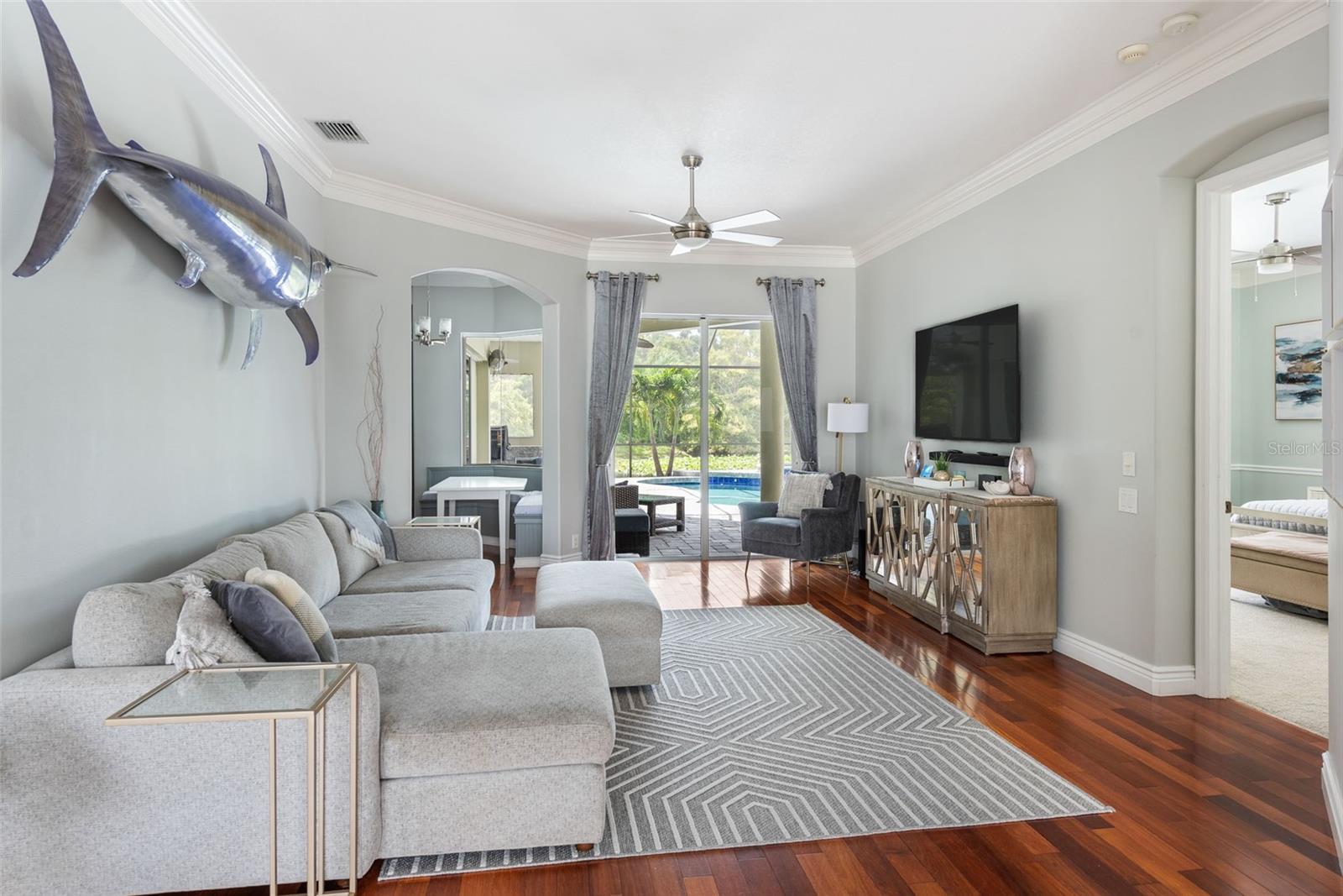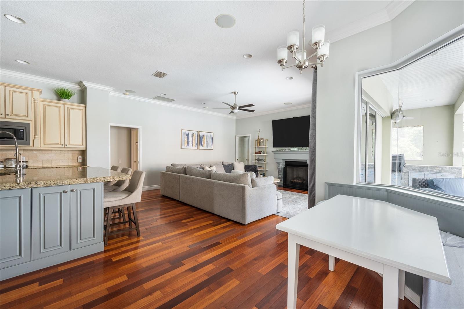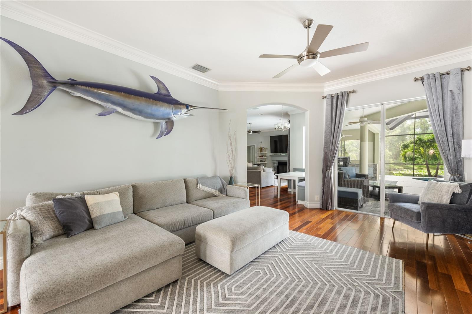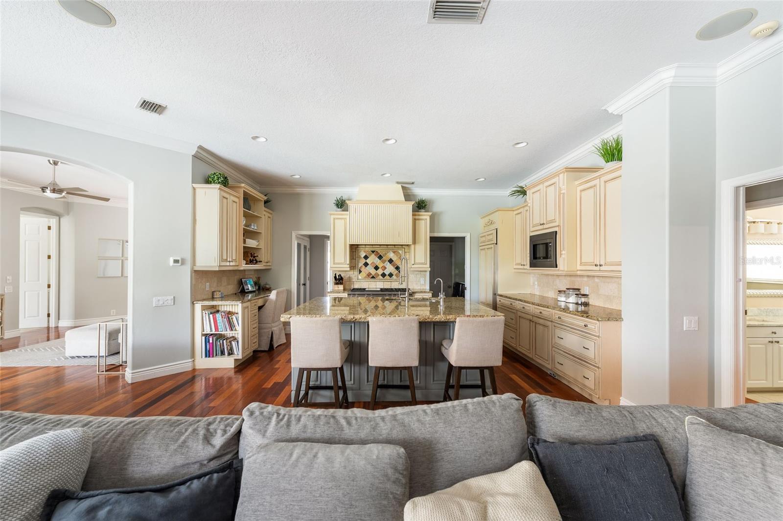 Your private paradise awaits in this stunning four-bedroom, three-bathroom Palmer Glen home, where luxury and comfort come together seamlessly. Step into this stunning residence and be greeted by an expansive open living space bathed in natural light. The elegant design features sweeping views of the sparkling pool, creating a serene and inviting atmosphere. The formal dining area is perfect for hosting memorable gatherings and special occasions, while the large bonus room offers endless possibilities, whether you envision it as a home office, playroom, or personal retreat. This home combines style, comfort, and functionality, providing a perfect backdrop for both relaxation and entertainment. The gourmet kitchen boasts a six burner Wolf Gas Range, Sub-Zero Refrigerator, a new Bosch dishwasher, custom cabinets, undermount cabinet lighting, an oversized island, built-in desk area, and charming breakfast nook with a built-in bench. Adjacent to the kitchen, a spacious butler's pantry provides additional storage and prep space, making entertaining a breeze. The inviting living room features a cozy fireplace, elegant crown molding, and beautiful cherry wood flooring. The home’s layout includes an exquisite primary suite, complete with his and her walk-in closets and an ensuite bathroom that offers the ultimate in luxury, providing ample space and privacy. Each additional bedroom offers comfort and easy access to the two full bathrooms, ensuring convenience for family and guests alike. Sliding glass doors lead to a screened lanai, complete with a heated pool and spa, perfect for relaxing while observing the wildlife in the serene pond behind the house. The sparkling pool, which is heated for year-round enjoyment, and the upgraded outdoor kitchen, are just a few of the many features that make this home exceptional. Recent enhancements include new pool pavers and drains, a new pool pump and a new electric pool heater. The property also boasts updated interior lighting, fresh paint, and a newly re-screened and painted pool cage. Located just across from the picturesque Celery Fields, this home offers the perfect blend of tranquil surroundings and convenient access to all of Sarasota's amenities. Enjoy serene, quiet living while being just minutes away from everything you desire!
