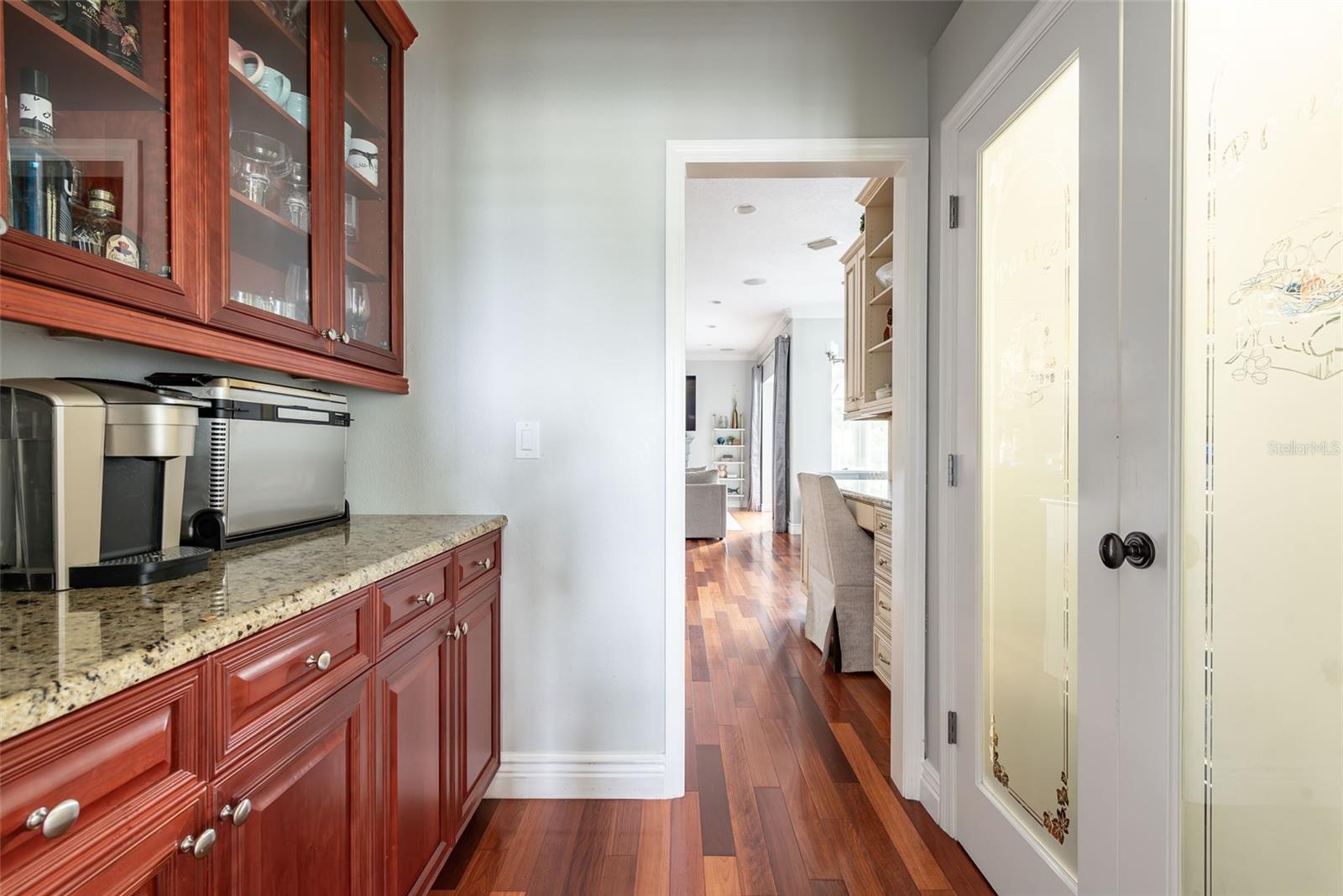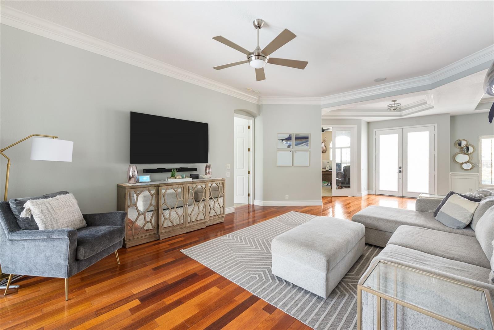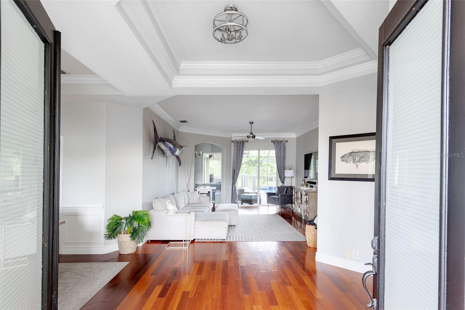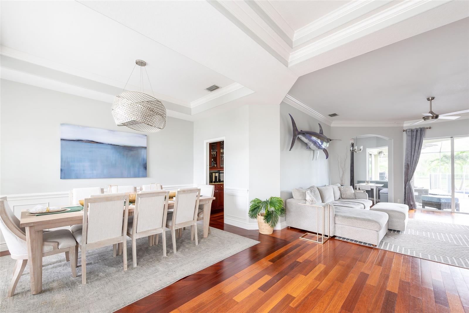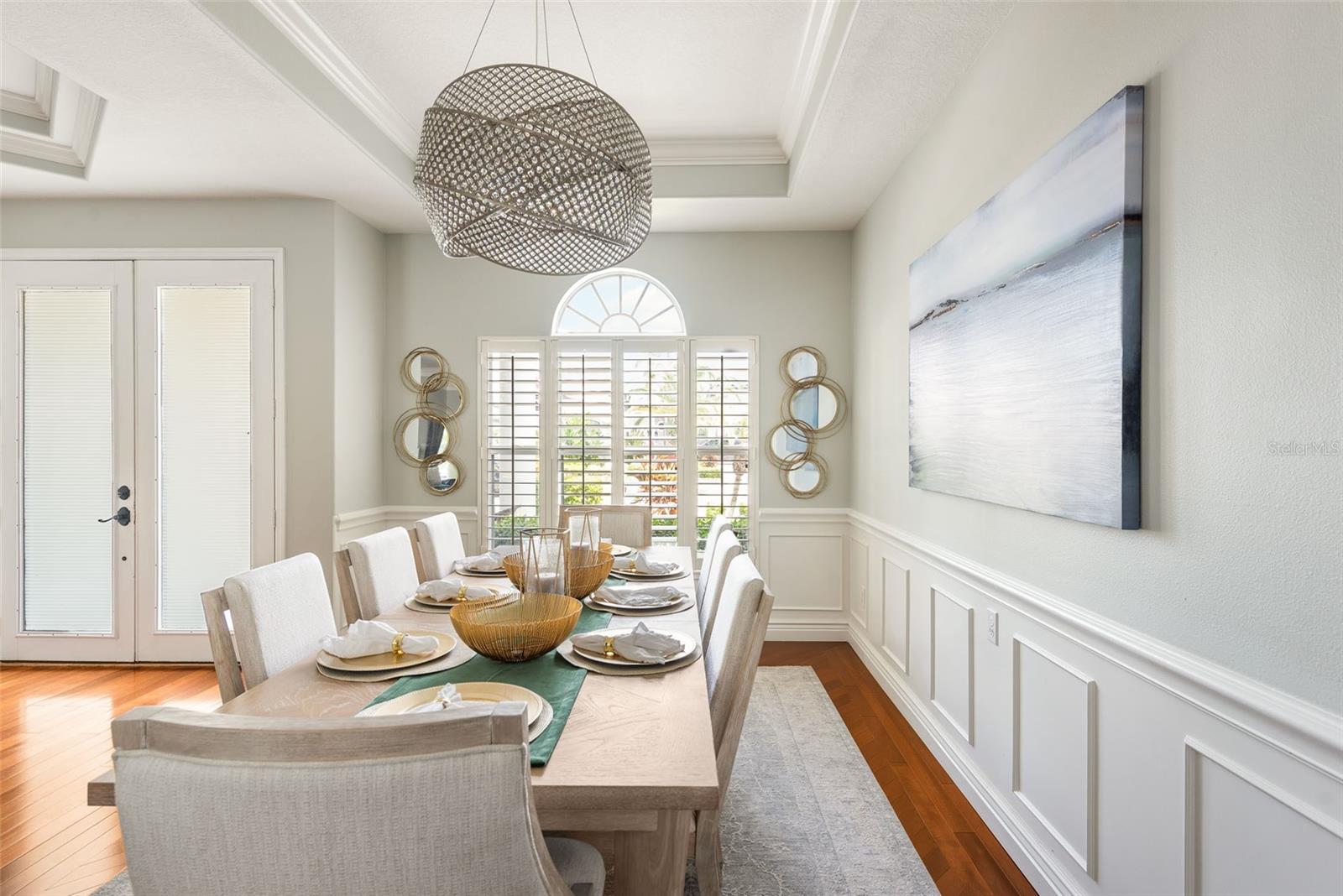 Your private paradise awaits in this stunning four-bedroom, three-bathroom Palmer Glen home, where luxury and comfort come together seamlessly. Step into this stunning residence and be greeted by an expansive open living space bathed in natural light. The elegant design features sweeping views of the sparkling pool, creating a serene and inviting atmosphere. The formal dining area is perfect for hosting memorable gatherings and special occasions, while the large bonus room offers endless possibilities, whether you envision it as a home office, playroom, or personal retreat. This home combines style, comfort, and functionality, providing a perfect backdrop for both relaxation and entertainment. The gourmet kitchen boasts a six burner Wolf Gas Range, Sub-Zero Refrigerator, a new Bosch dishwasher, custom cabinets, undermount cabinet lighting, an oversized island, built-in desk area, and charming breakfast nook with a built-in bench. Adjacent to the kitchen, a spacious butler's pantry provides additional storage and prep space, making entertaining a breeze. The inviting living room features a cozy fireplace, elegant crown molding, and beautiful cherry wood flooring. The home’s layout includes an exquisite primary suite, complete with his and her walk-in closets and an ensuite bathroom that offers the ultimate in luxury, providing ample space and privacy. Each additional bedroom offers comfort and easy access to the two full bathrooms, ensuring convenience for family and guests alike. Sliding glass doors lead to a screened lanai, complete with a heated pool and spa, perfect for relaxing while observing the wildlife in the serene pond behind the house. The sparkling pool, which is heated for year-round enjoyment, and the upgraded outdoor kitchen, are just a few of the many features that make this home exceptional. Recent enhancements include new pool pavers and drains, a new pool pump and a new electric pool heater. The property also boasts updated interior lighting, fresh paint, and a newly re-screened and painted pool cage. Located just across from the picturesque Celery Fields, this home offers the perfect blend of tranquil surroundings and convenient access to all of Sarasota's amenities. Enjoy serene, quiet living while being just minutes away from everything you desire!