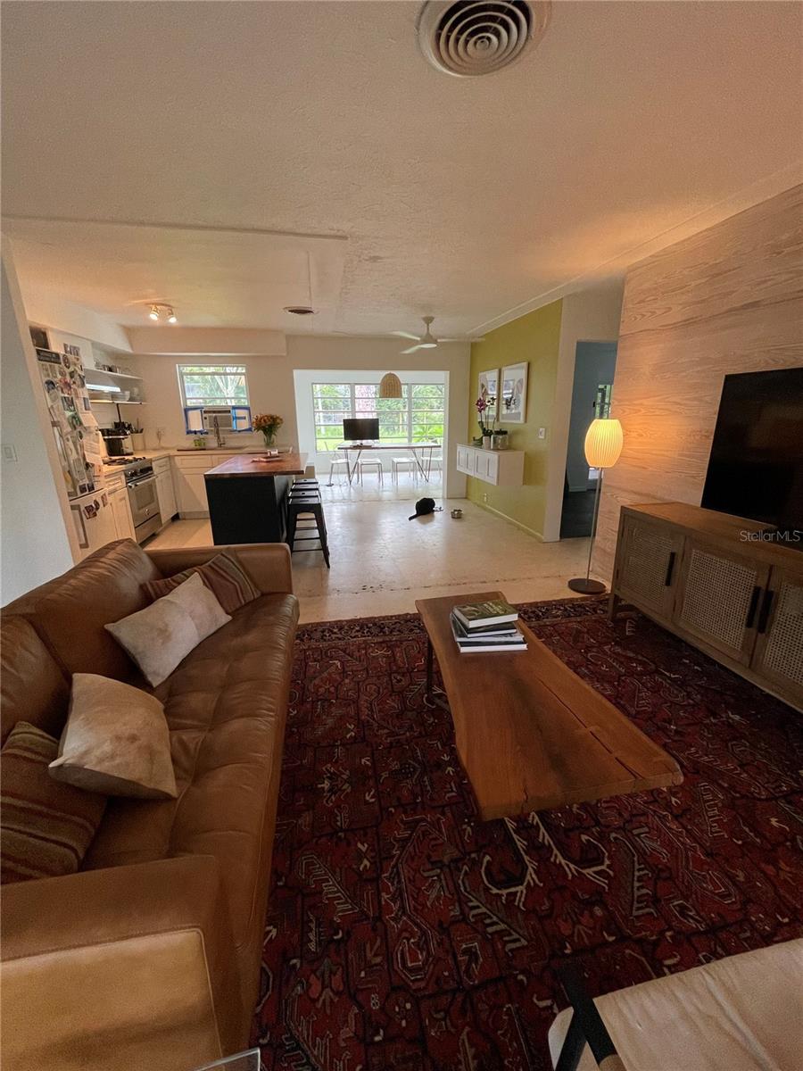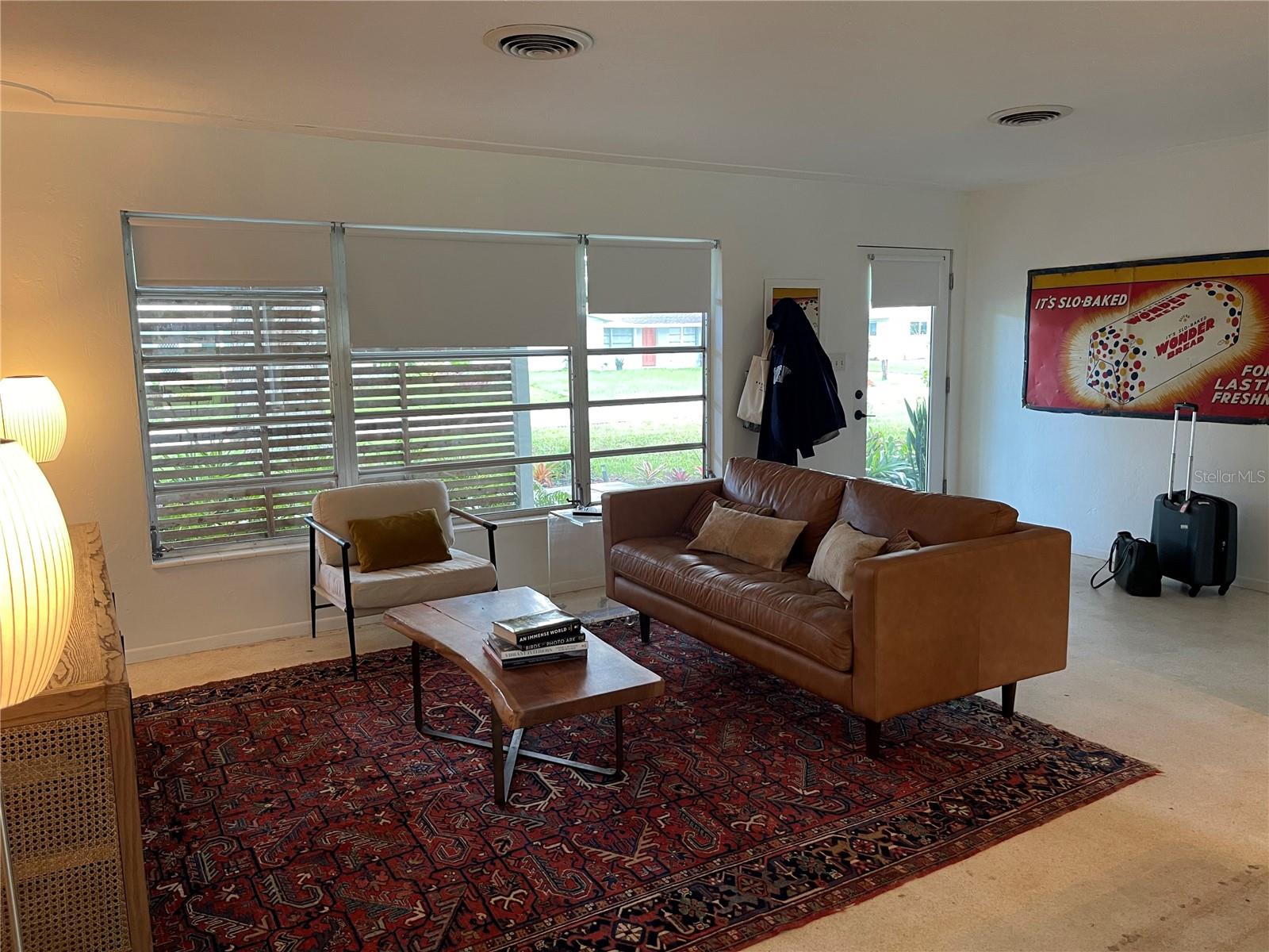 This charming mid-century home, situated on a spacious 15,400 sq ft lot, is located in the original blocks 2 & 4 of the Ridgewood subdivision. While it may need some finishing touches to reach its full potential, the property offers immense possibilities. The double sized lot allows for it to be divided into two, as similar sized lots in the area have done, though this should be confirmed with the zoning department. Nestled in a trendy neighborhood just blocks from Trader Joe’s and Walt’s Fish Market, and near the upcoming Bath & Racquet Club, the location is ideal. The lot features seven large trees and ample space for an urban compound, including room for a pool and guest house. The house itself is a solid block structure with an open layout. The terrazzo floors have been exposed and are ready for restoration or a new flooring application. Recent updates include new interior doors, a new water heater, a new metal roof, a new washer and dryer, and a new AC motor. Although the tax records list it as a 3/2, it is currently a 2/2, as the front room lacks AC, which can be easily added.