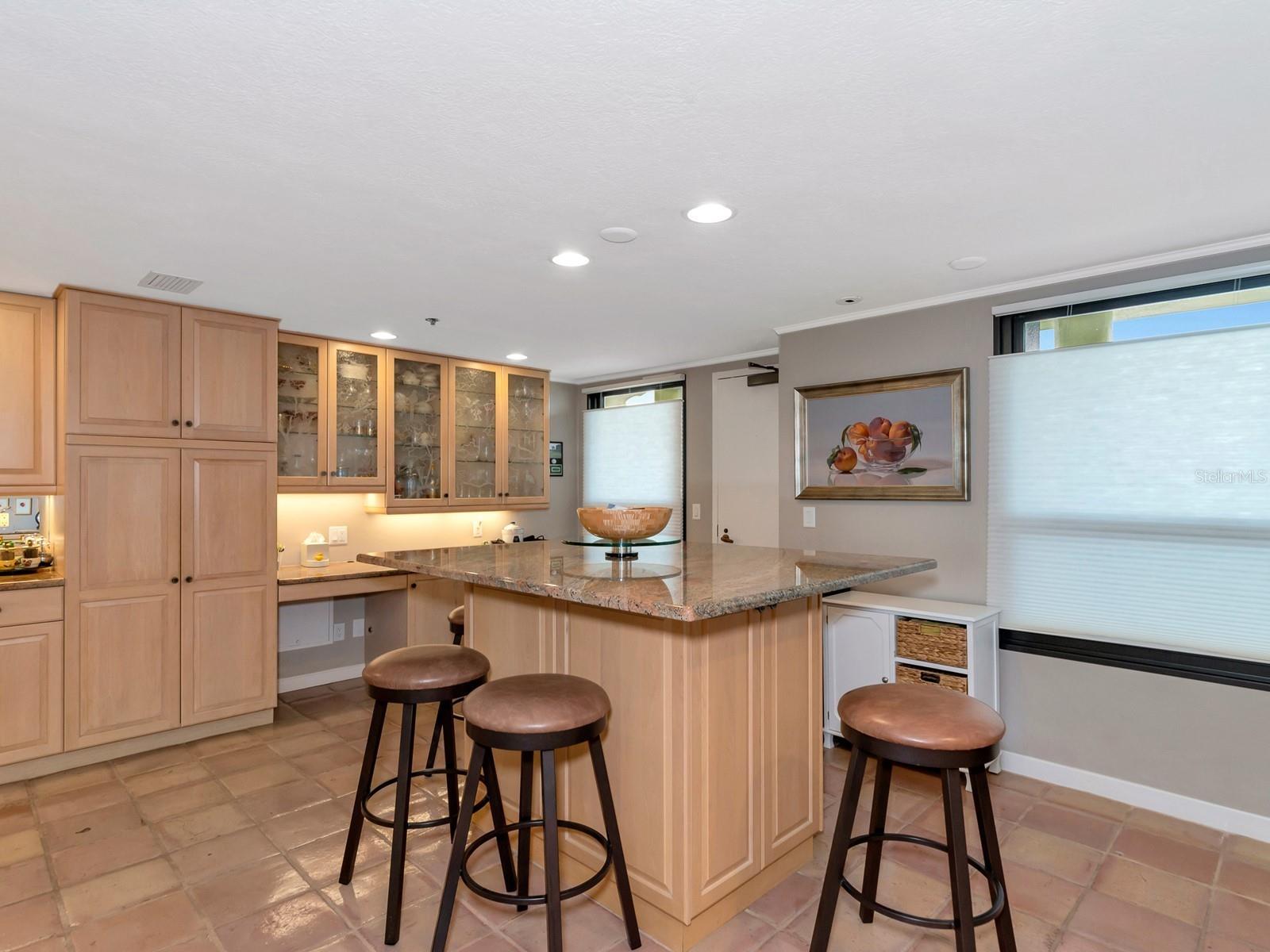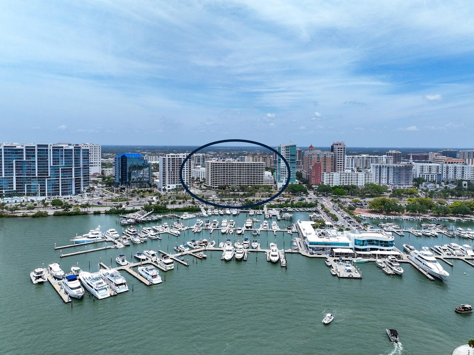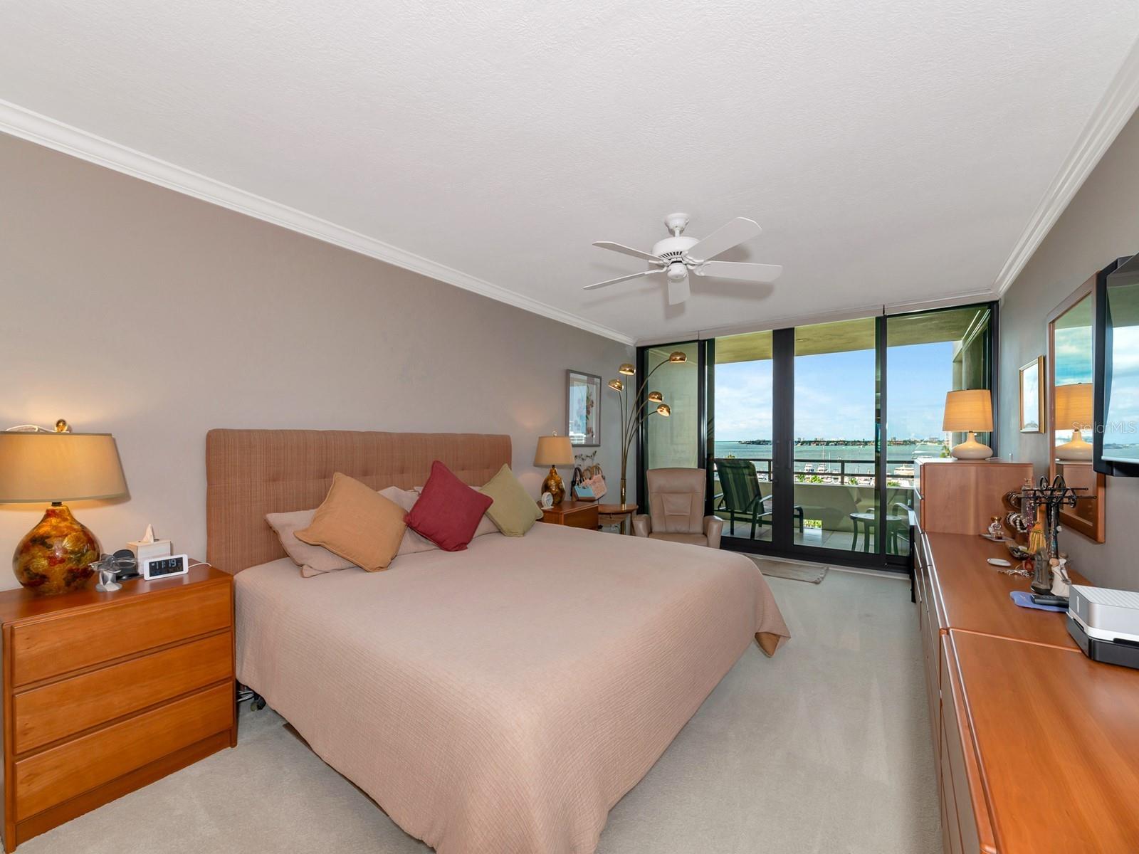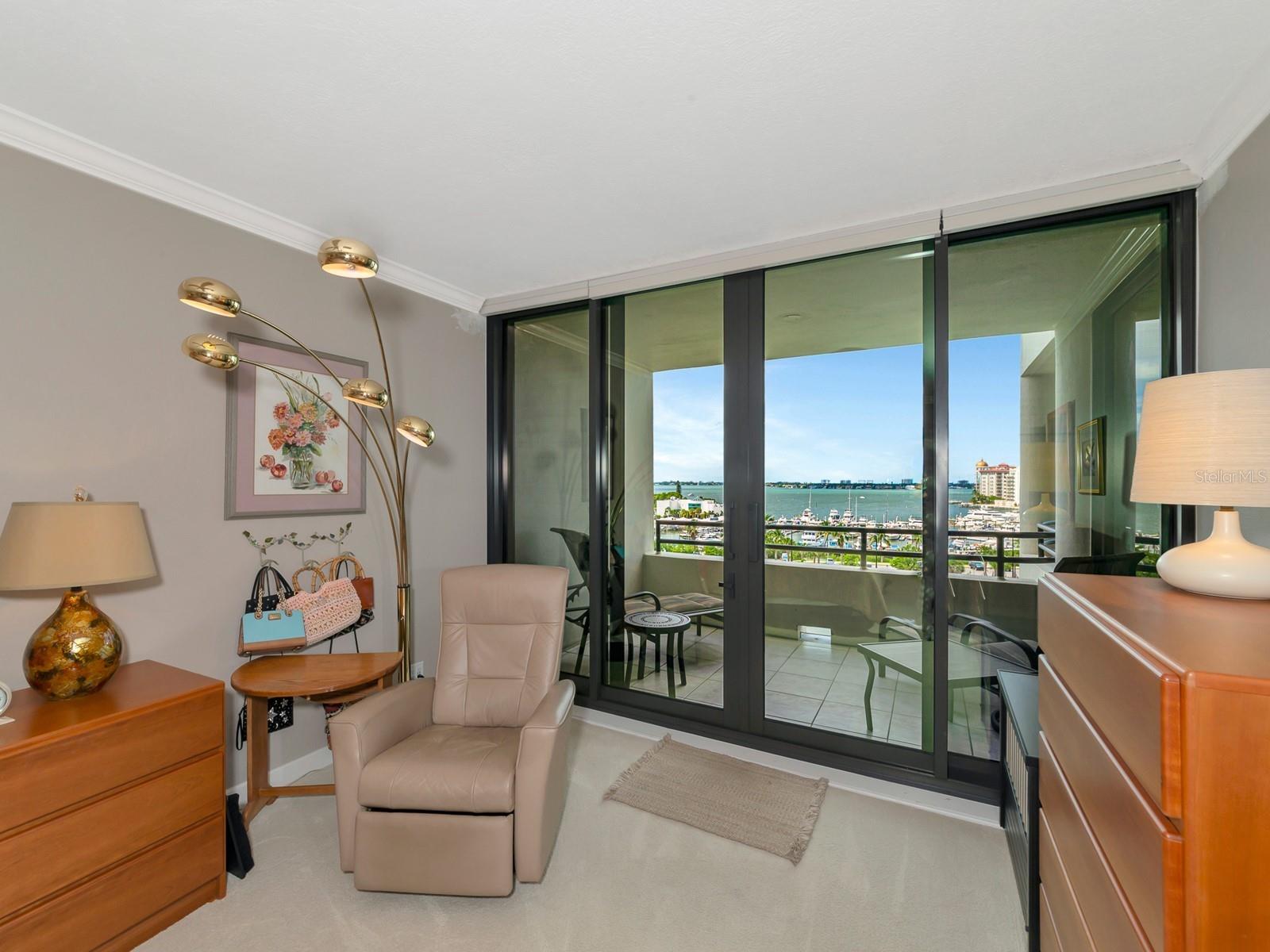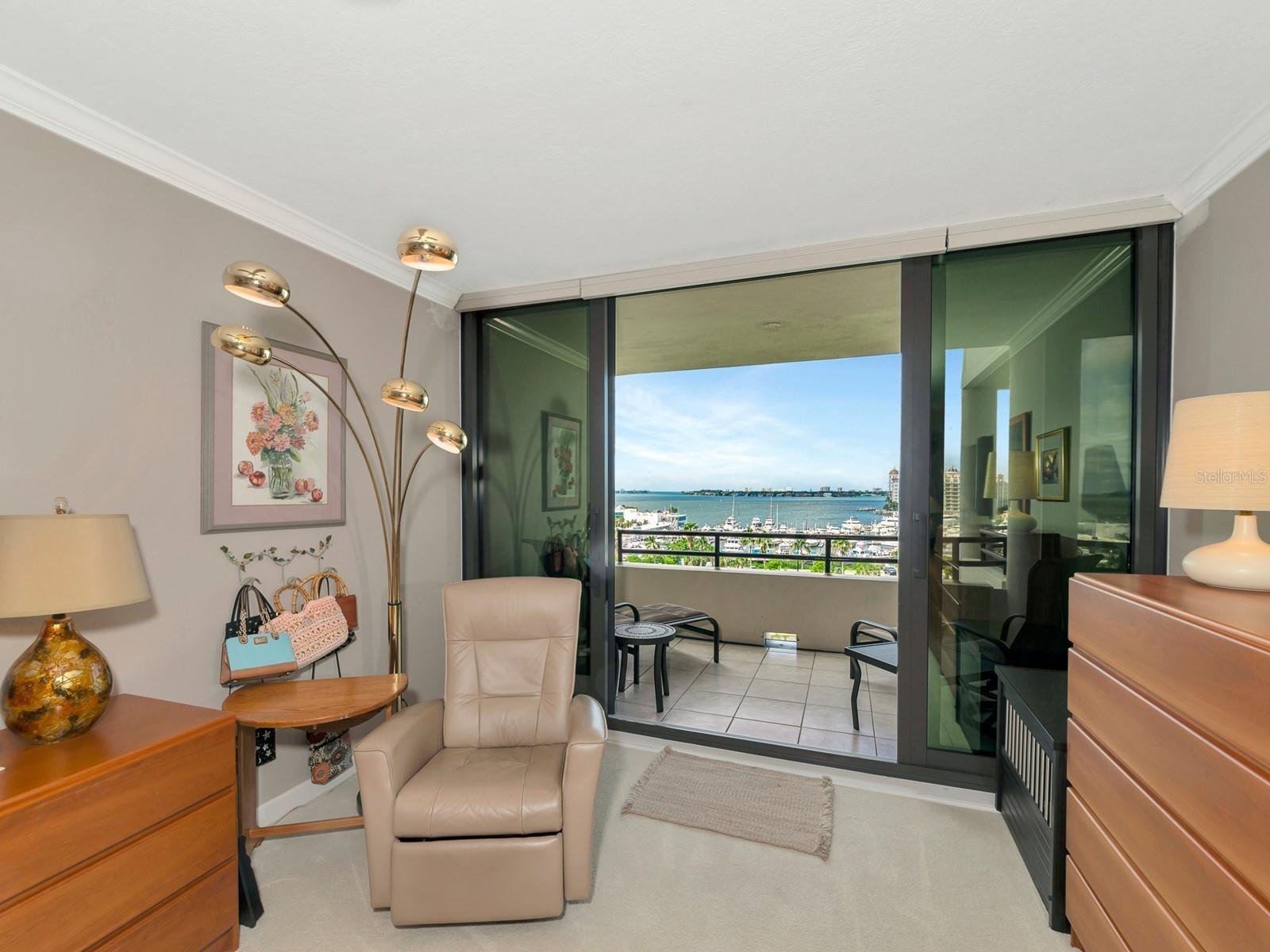 Upgrade complete! New hurricane-rated windows are installed throughout the entire building. This is a redesigned Bay Plaza residence with full bay views! A modern and bright renovation on the 7th floor has two primary suites, each including a personal bath. Both have access to one of two bayside balconies. The formal foyer has storage closets, mirrored French doors, and a clever invisibly hinged access closet. A gallery wall provides separation as terracotta flooring continues into the expanded kitchen. With approximately 500 square feet, it is a culinary connoisseur’s ideal space. Boasting granite, light maple cabinetry with a built-in pantry, custom etched glass uppers, recessed lighting, and a service entrance. Two individual buffets have serving space, wall cabinets, and planning centers—a large island seats four to six. The customary appliances remain, along with a beverage refrigerator. Matching etched glass French doors close for privacy from the main living area. The great room offers living and dining space with built-ins. Sliding glass doors overlook sensational views of Sarasota Bay and the Gulf of Mexico through Big Pass. One of the two en suite bedrooms incorporates a stacked full-sized washer and dryer and a convenient utility room with a sink. Its updated bathroom has granite, furniture-quality cabinets, and a walk-in shower with glass doors. The second bedroom or flex space has views and access to the primary balcony. The Owner’s Suite looks out over water vistas from its private balcony with sliding glass doors. A pocket door hides the walk-in closet with an incredible built-in function. The primary bath has dual sinks, granite, a soaking tub, and a separate glass-enclosed walk-in shower with subway tile. Additional architectural elements are crown moldings, recessed lighting, electronic window treatments, and large 2x2 tile floors. Bonus features include newly completed building windows and new sliding glass doors. In addition, assigned garage parking for two cars and plenty of extra spots. Known as one of the most esteemed, secure, and architecturally significant downtown buildings in Sarasota, you can enjoy 24-hour concierge, 24-hour valet services, EV charging stations, an elegant lobby, fitness center, hot tub, swimming pool, media room, outdoor grill, storage, hurricane impact glass, and more! Immerse yourself in the active social lifestyle of downtown Sarasota. Bay Plaza is ideally situated for personal viewing of the 4th of July fireworks at Marina Jacks from the comfort of your balcony. Whole Foods, the Theatre and Opera, and your choice of excellent restaurants are close by. This prime location is close to virtually every cultural event the city offers and only minutes to St. Armand’s Circle, Longboat Key, and your choice of any of Sarasota's attractive beaches.