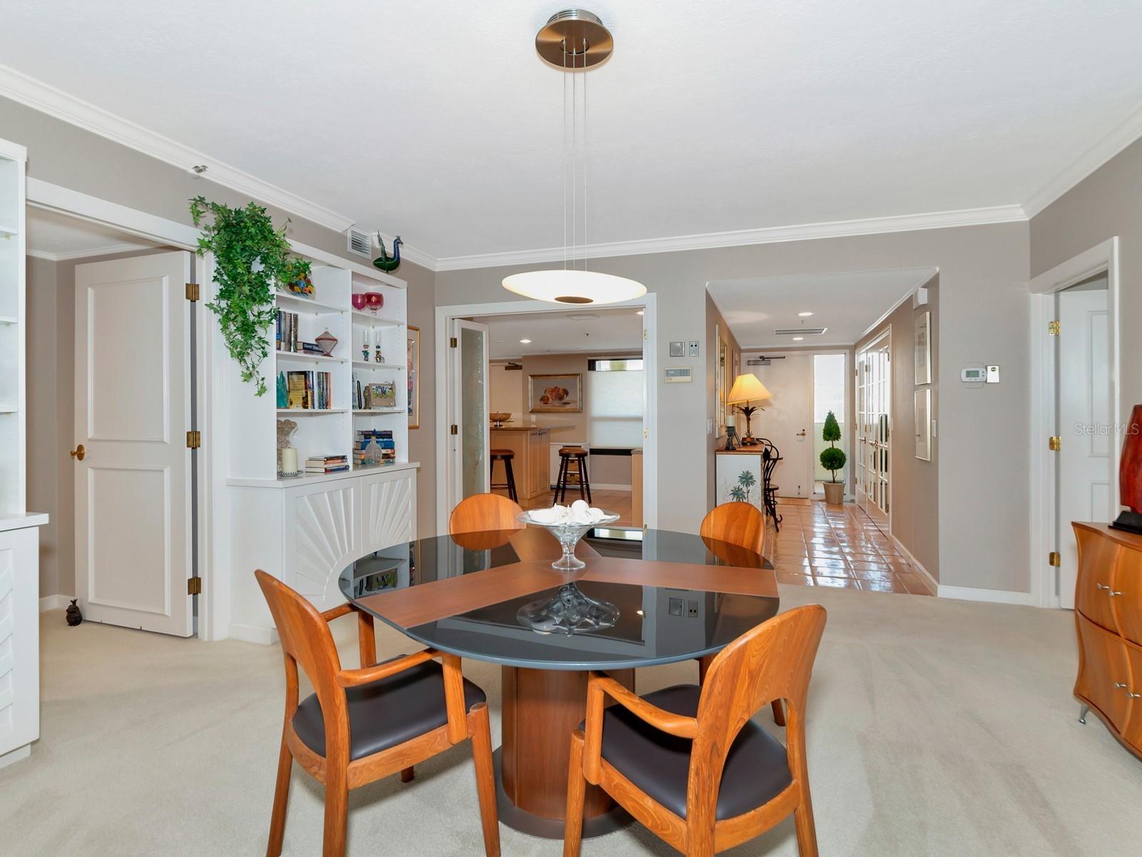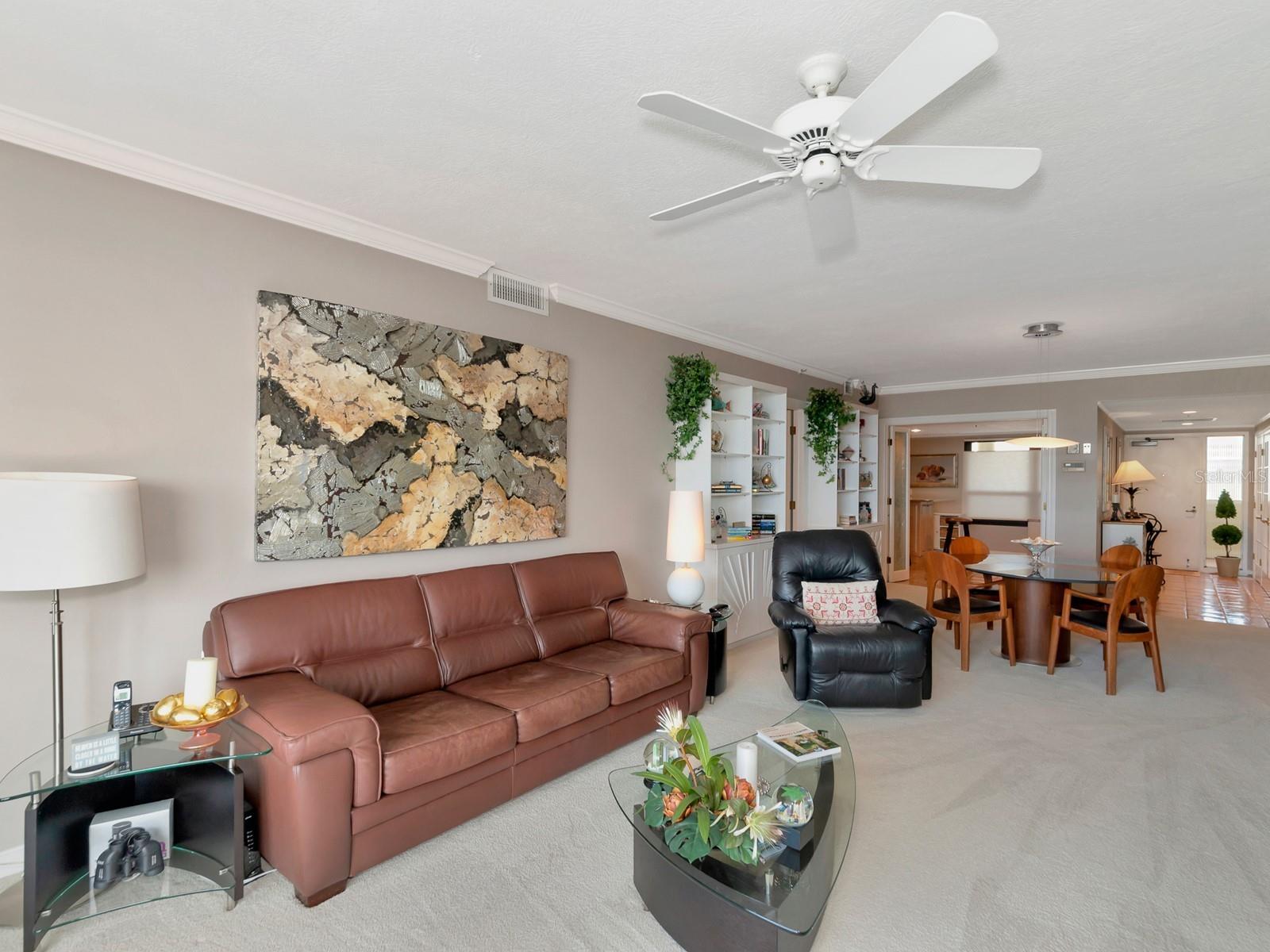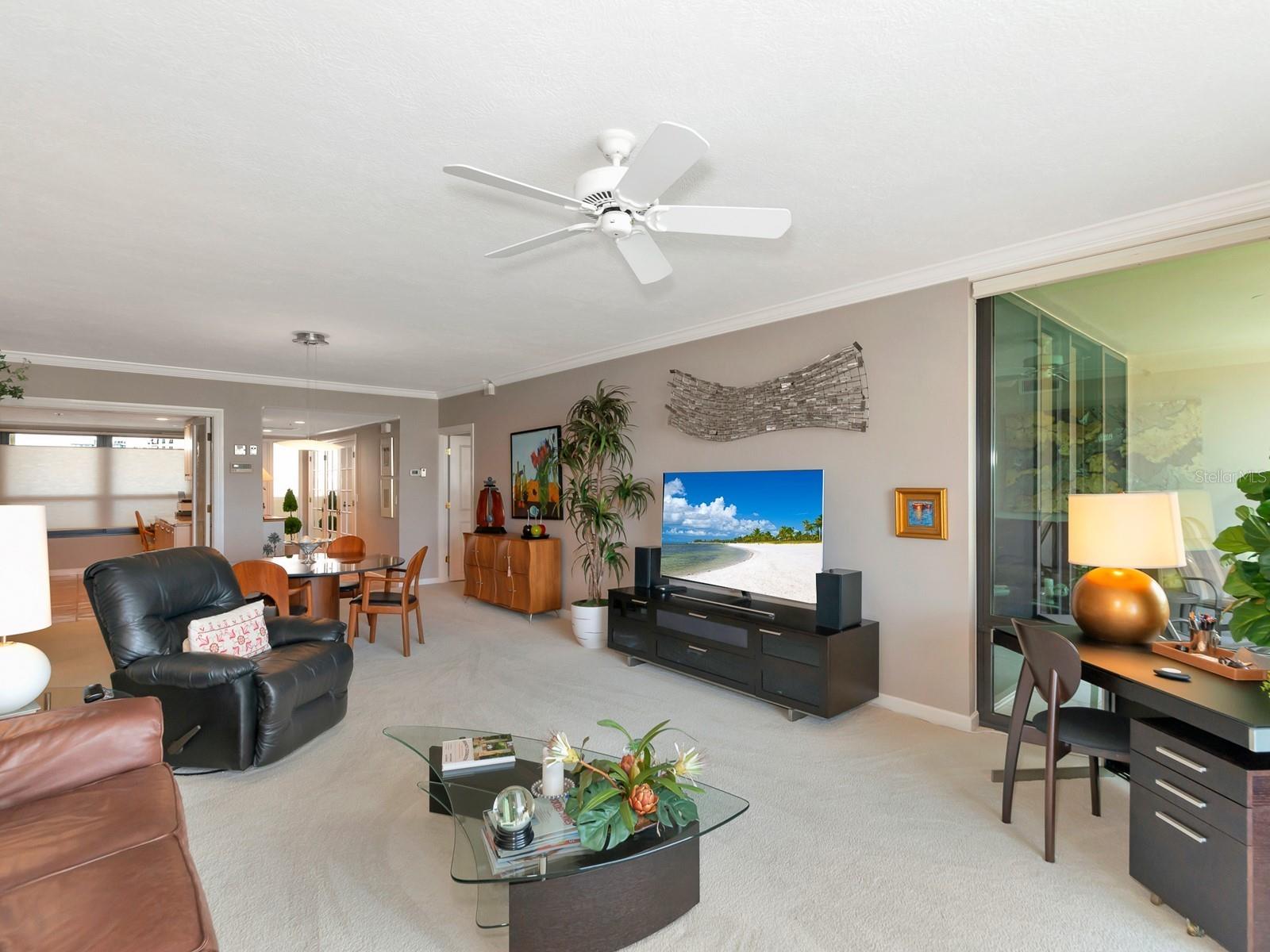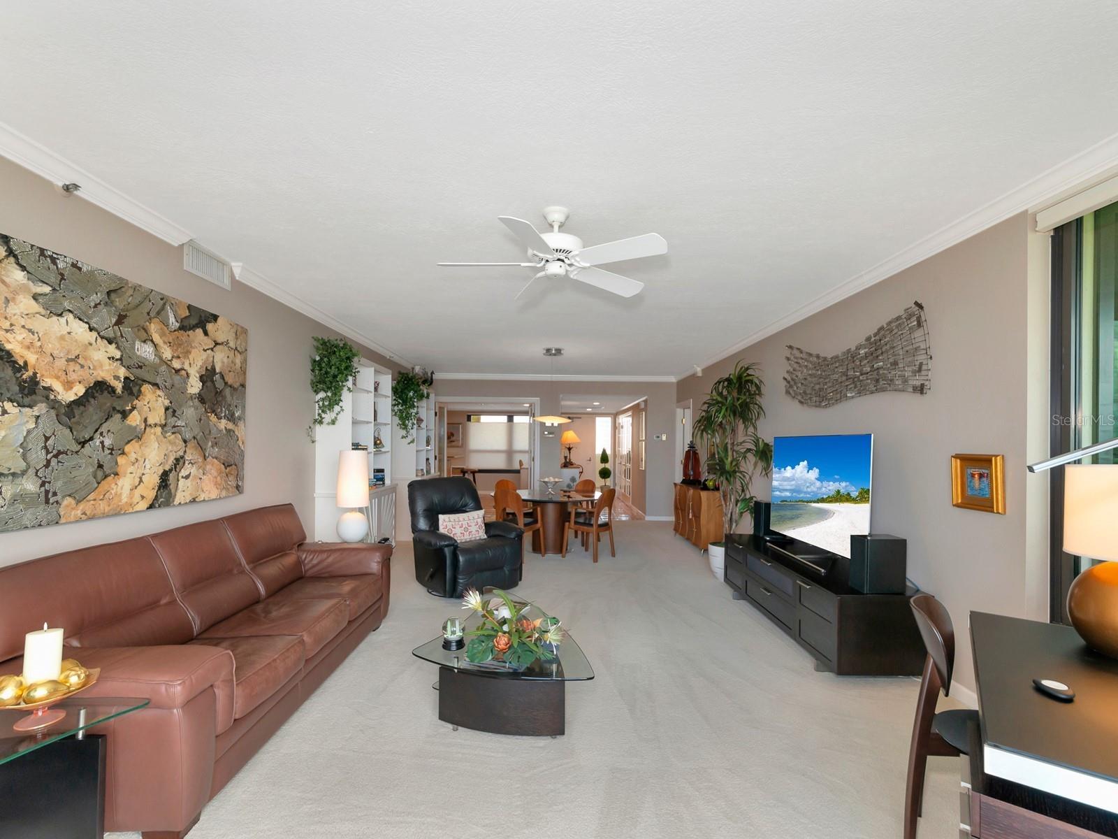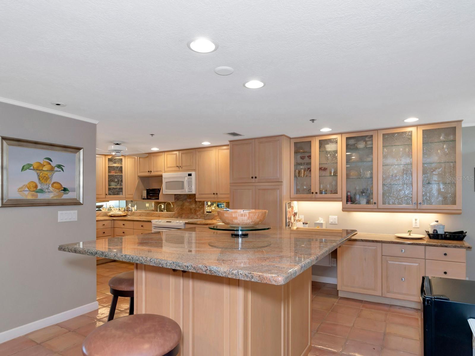 Upgrade complete! New hurricane-rated windows are installed throughout the entire building. This is a redesigned Bay Plaza residence with full bay views! A modern and bright renovation on the 7th floor has two primary suites, each including a personal bath. Both have access to one of two bayside balconies. The formal foyer has storage closets, mirrored French doors, and a clever invisibly hinged access closet. A gallery wall provides separation as terracotta flooring continues into the expanded kitchen. With approximately 500 square feet, it is a culinary connoisseur’s ideal space. Boasting granite, light maple cabinetry with a built-in pantry, custom etched glass uppers, recessed lighting, and a service entrance. Two individual buffets have serving space, wall cabinets, and planning centers—a large island seats four to six. The customary appliances remain, along with a beverage refrigerator. Matching etched glass French doors close for privacy from the main living area. The great room offers living and dining space with built-ins. Sliding glass doors overlook sensational views of Sarasota Bay and the Gulf of Mexico through Big Pass. One of the two en suite bedrooms incorporates a stacked full-sized washer and dryer and a convenient utility room with a sink. Its updated bathroom has granite, furniture-quality cabinets, and a walk-in shower with glass doors. The second bedroom or flex space has views and access to the primary balcony. The Owner’s Suite looks out over water vistas from its private balcony with sliding glass doors. A pocket door hides the walk-in closet with an incredible built-in function. The primary bath has dual sinks, granite, a soaking tub, and a separate glass-enclosed walk-in shower with subway tile. Additional architectural elements are crown moldings, recessed lighting, electronic window treatments, and large 2x2 tile floors. Bonus features include newly completed building windows and new sliding glass doors. In addition, assigned garage parking for two cars and plenty of extra spots. Known as one of the most esteemed, secure, and architecturally significant downtown buildings in Sarasota, you can enjoy 24-hour concierge, 24-hour valet services, EV charging stations, an elegant lobby, fitness center, hot tub, swimming pool, media room, outdoor grill, storage, hurricane impact glass, and more! Immerse yourself in the active social lifestyle of downtown Sarasota. Bay Plaza is ideally situated for personal viewing of the 4th of July fireworks at Marina Jacks from the comfort of your balcony. Whole Foods, the Theatre and Opera, and your choice of excellent restaurants are close by. This prime location is close to virtually every cultural event the city offers and only minutes to St. Armand’s Circle, Longboat Key, and your choice of any of Sarasota's attractive beaches.