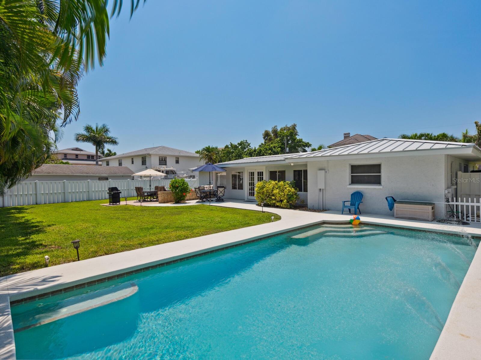 Location. Location. Location. West of the Trail and within a few minutes to Siesta Key and crescent beaches, you will find this updated three-bedroom, two-bath pool home with 1,810 square feet under air. The features include newer seamless metal roof and water heater in 2019, heated saltwater lap pool, spacious fenced backyard, open floor plan with tile and bamboo flooring, granite kitchen countertops, fresh exterior paint, oversized two-car garage with finished floor and more to mention. This home is closer to the beach than some Siesta Key homes. Must-see.