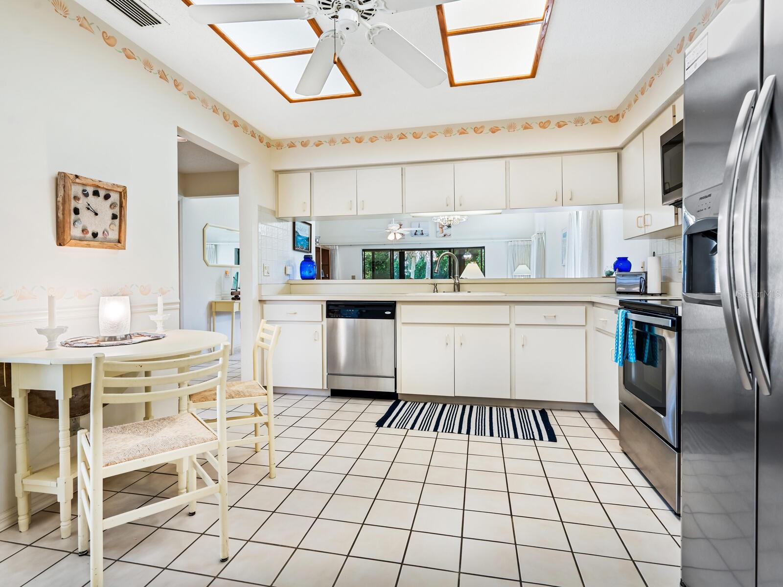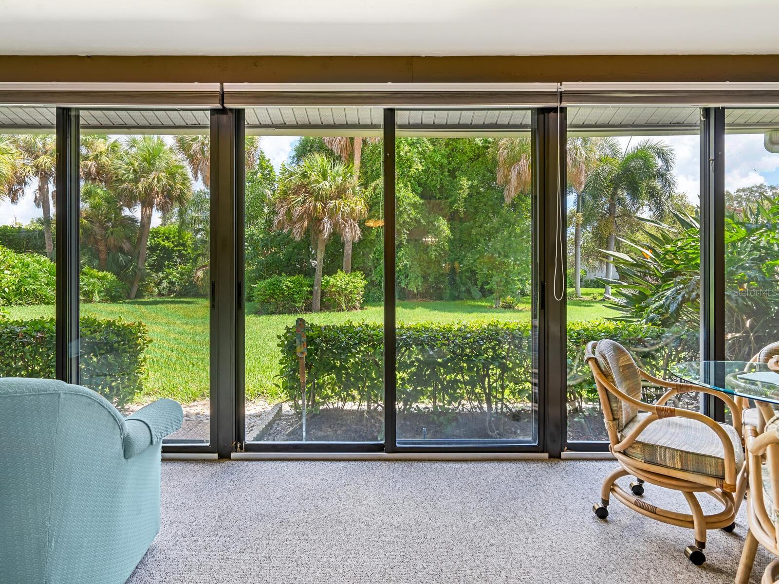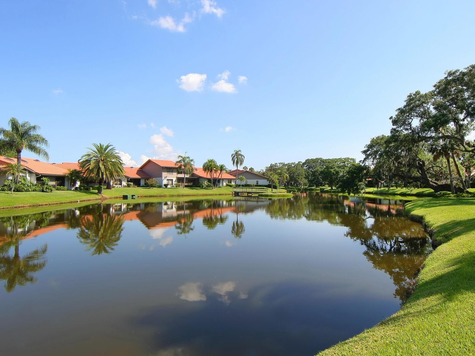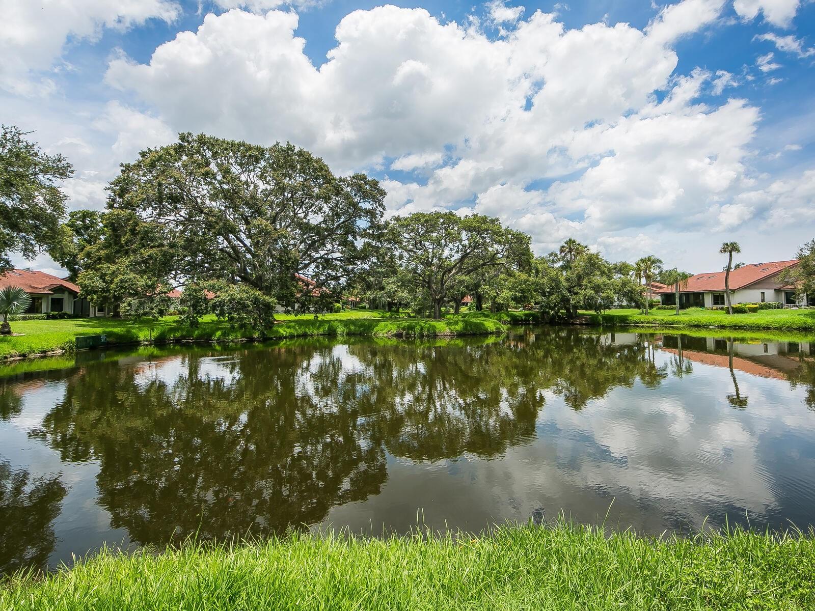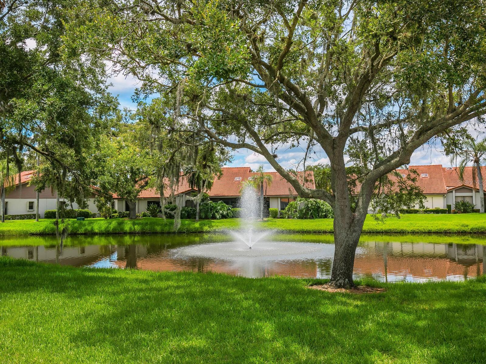 Spacious villa in a park-like setting with 2 large bedrooms, 2 full baths and a 2 car garage. The glassed in lanai with fantastic views provides extra space for an office or reading area. The eat-in kitchen has plenty of cabinets, a pantry, and stainless steel appliances. Separate laundry room with washer/dryer. Primary bedroom is bright and airy with a large walk-in closet plus a slider out to the lanai. En-suite extra large primary bathroom has a large vanity with dual sinks plus a large walk in closet and a separate tub. Guest bedroom has its own walk- in closet plus full bathroom with a tub/shower combo. Plenty of closet/ storage space throughout the house. As you enter, you have a direct line view of the beautiful green space behind the villa. Extra large living/dining area with two skylights. Bring your buyers with their imagination to create their special place in this active 55+ community. Community pool, clubhouse, tennis and pickleball courts plus many other activities. This beautifully maintained community is located in the heart of Sarasota close to shopping, houses of worship, medical facilities and cultural activities. Sorry no pets.