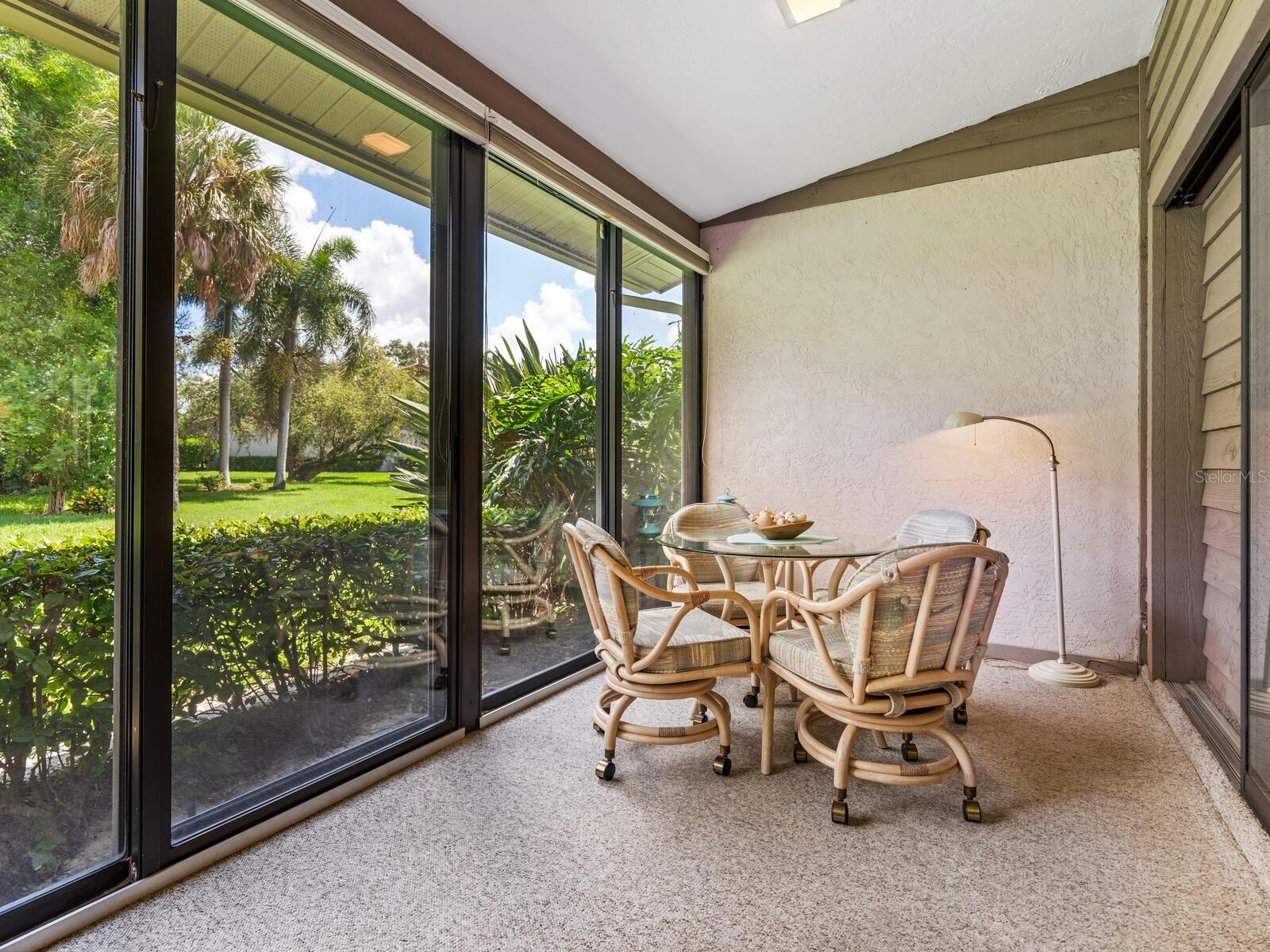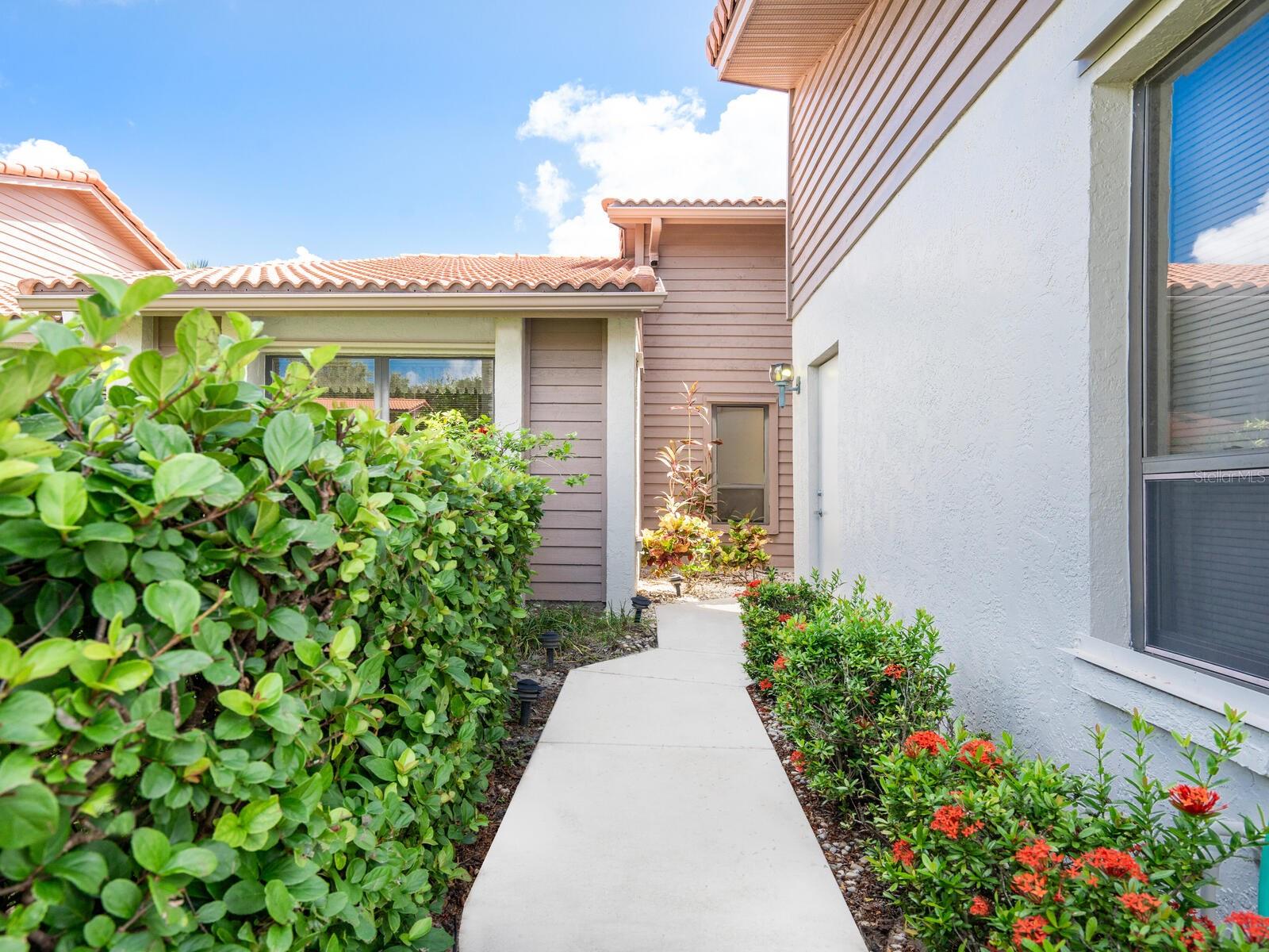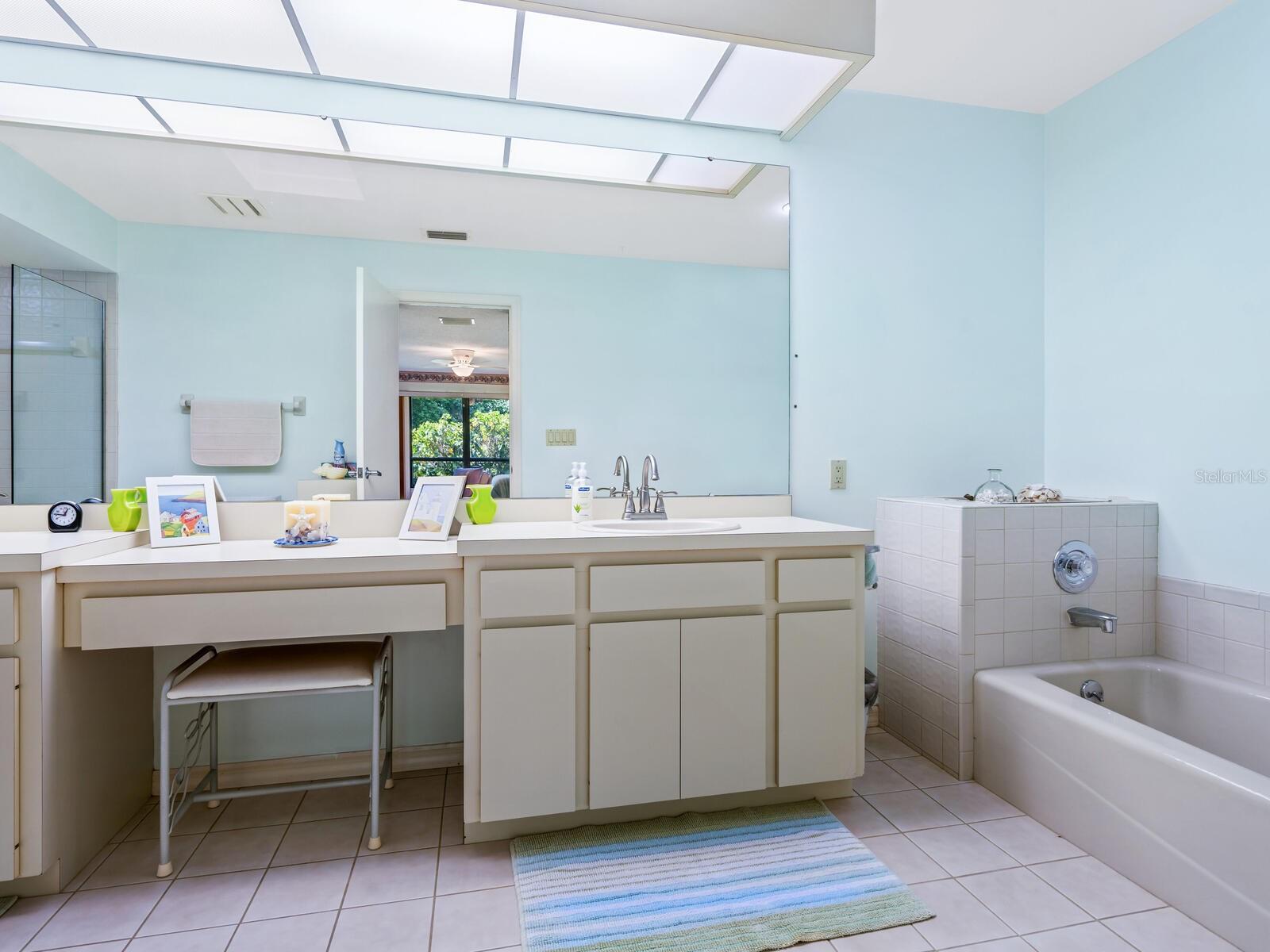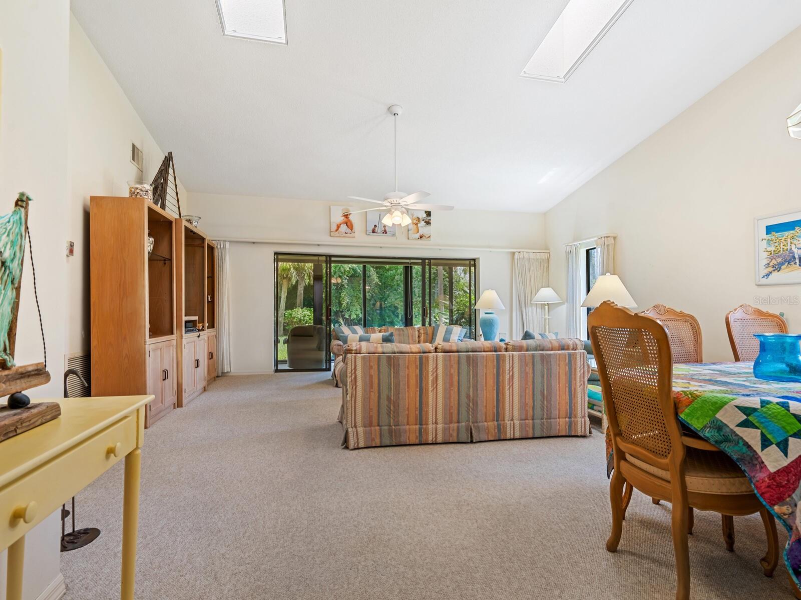 Spacious villa in a park-like setting with 2 large bedrooms, 2 full baths and a 2 car garage. The glassed in lanai with fantastic views provides extra space for an office or reading area. The eat-in kitchen has plenty of cabinets, a pantry, and stainless steel appliances. Separate laundry room with washer/dryer. Primary bedroom is bright and airy with a large walk-in closet plus a slider out to the lanai. En-suite extra large primary bathroom has a large vanity with dual sinks plus a large walk in closet and a separate tub. Guest bedroom has its own walk- in closet plus full bathroom with a tub/shower combo. Plenty of closet/ storage space throughout the house. As you enter, you have a direct line view of the beautiful green space behind the villa. Extra large living/dining area with two skylights. Bring your buyers with their imagination to create their special place in this active 55+ community. Community pool, clubhouse, tennis and pickleball courts plus many other activities. This beautifully maintained community is located in the heart of Sarasota close to shopping, houses of worship, medical facilities and cultural activities. Sorry no pets.
