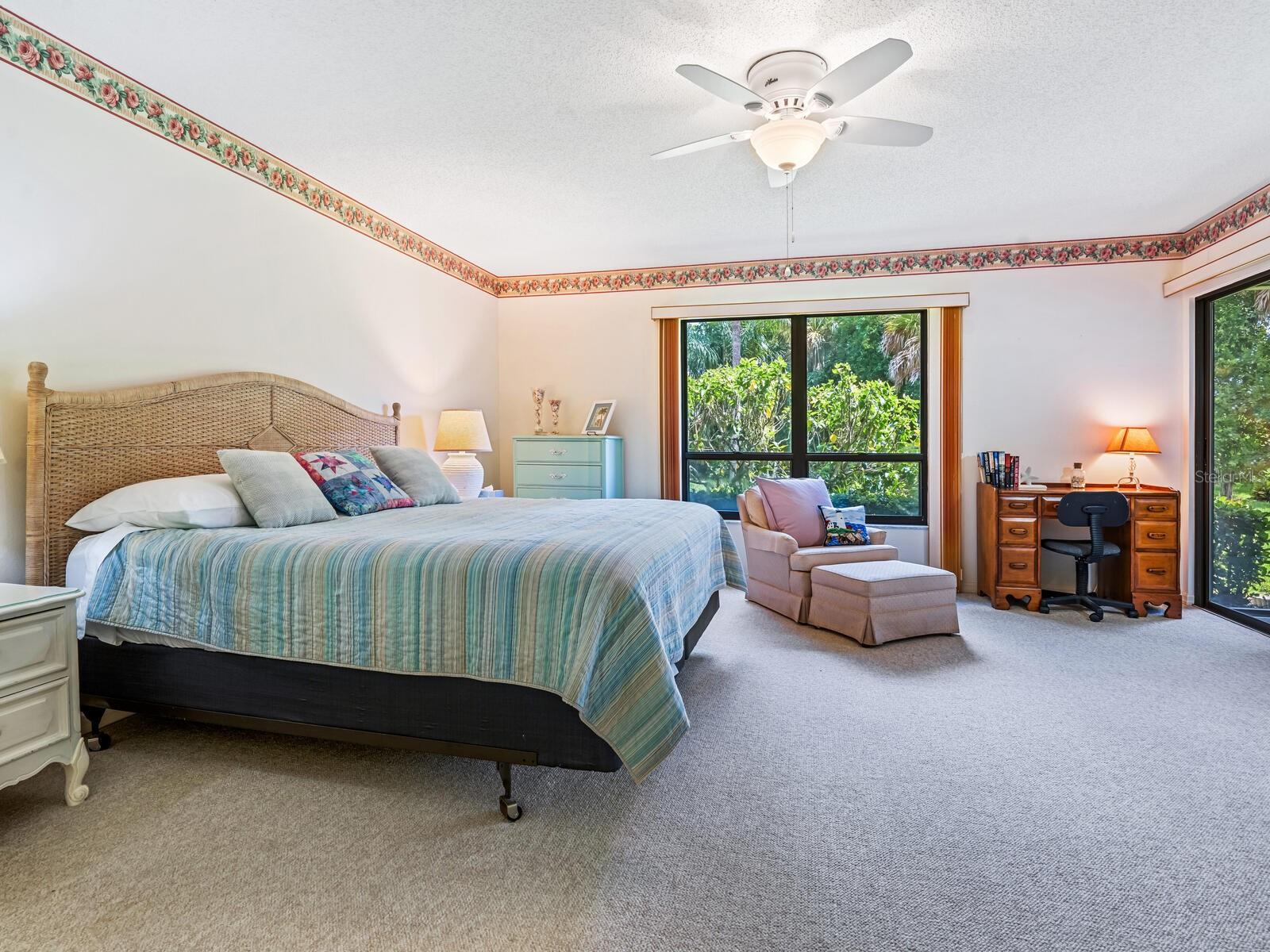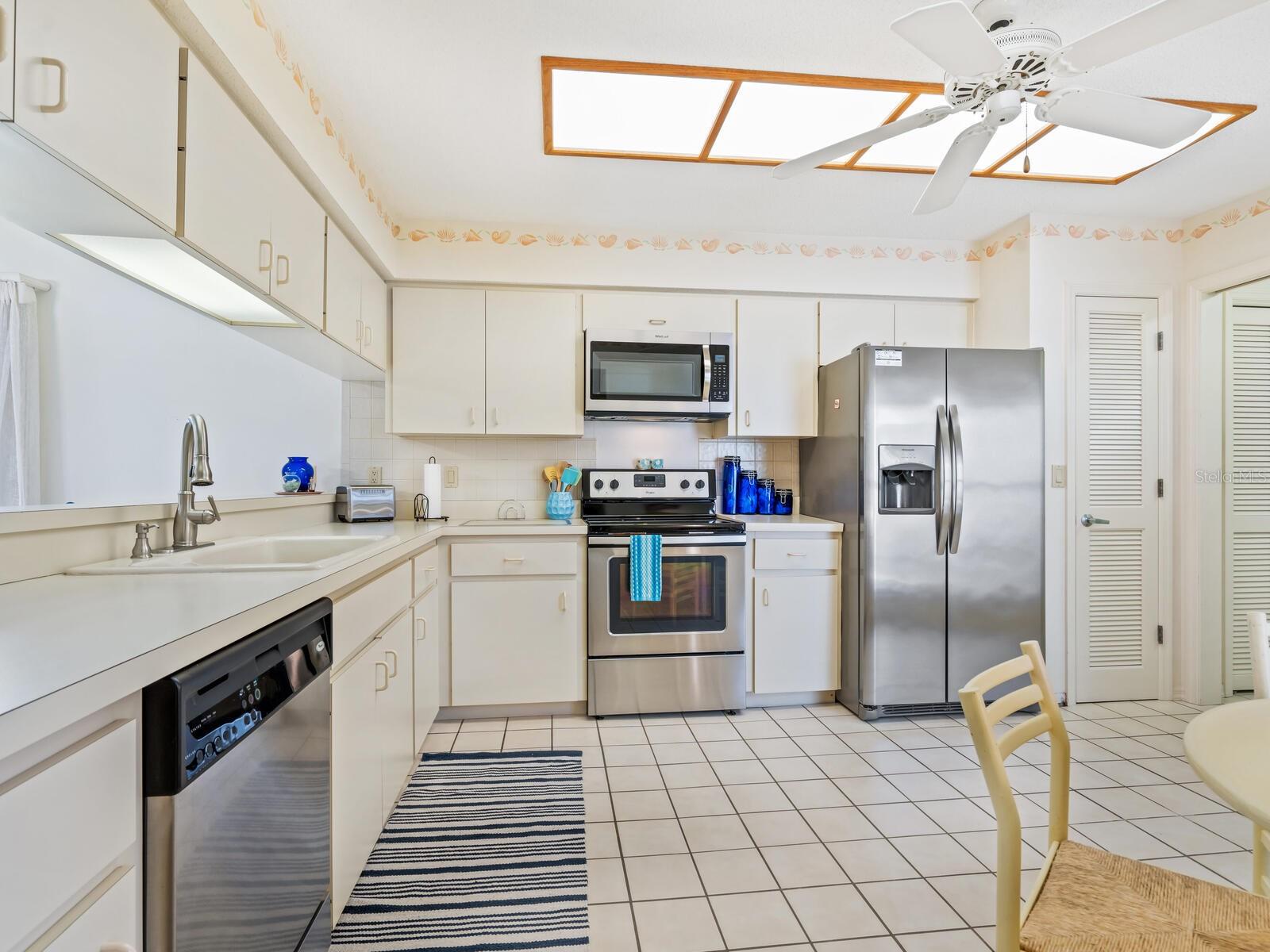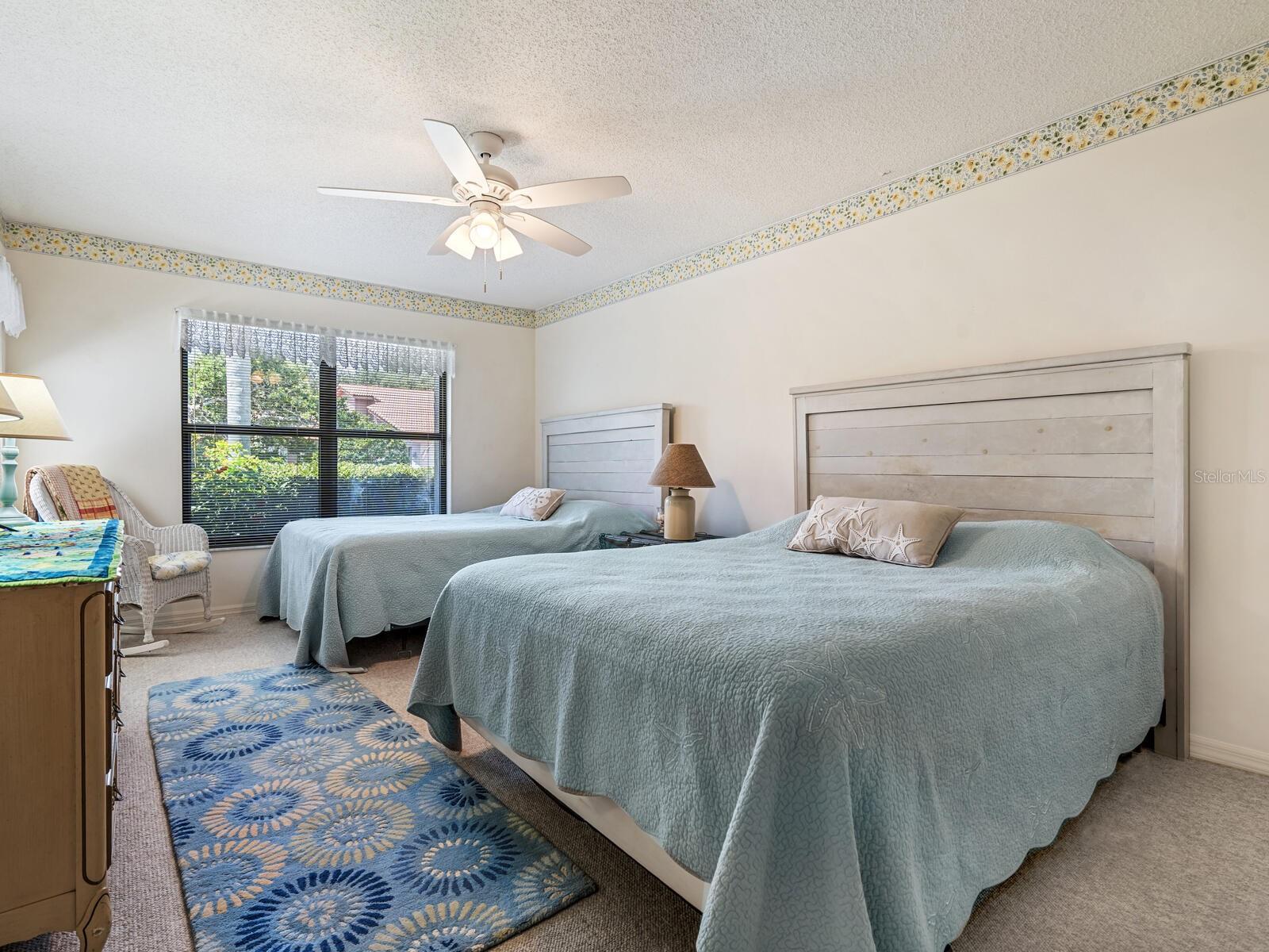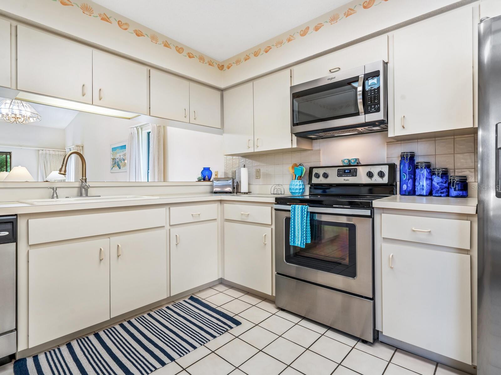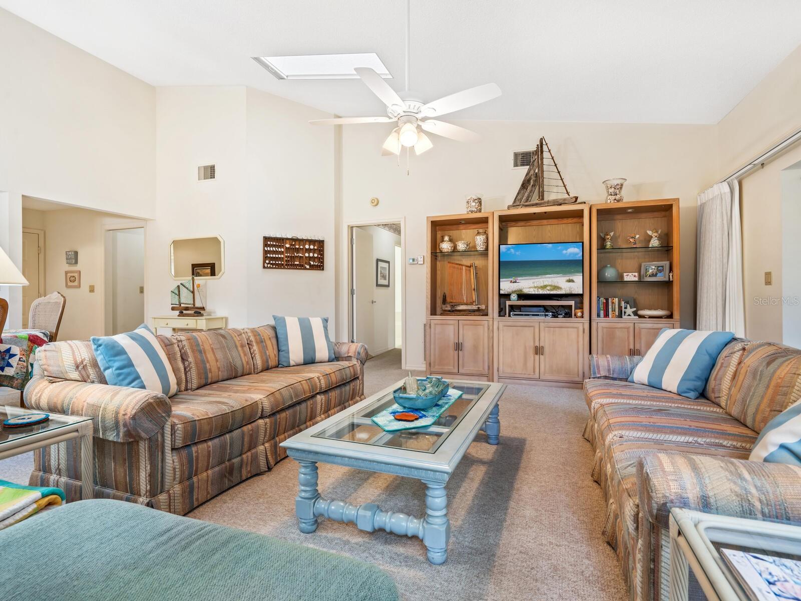 Spacious villa in a park-like setting with 2 large bedrooms, 2 full baths and a 2 car garage. The glassed in lanai with fantastic views provides extra space for an office or reading area. The eat-in kitchen has plenty of cabinets, a pantry, and stainless steel appliances. Separate laundry room with washer/dryer. Primary bedroom is bright and airy with a large walk-in closet plus a slider out to the lanai. En-suite extra large primary bathroom has a large vanity with dual sinks plus a large walk in closet and a separate tub. Guest bedroom has its own walk- in closet plus full bathroom with a tub/shower combo. Plenty of closet/ storage space throughout the house. As you enter, you have a direct line view of the beautiful green space behind the villa. Extra large living/dining area with two skylights. Bring your buyers with their imagination to create their special place in this active 55+ community. Community pool, clubhouse, tennis and pickleball courts plus many other activities. This beautifully maintained community is located in the heart of Sarasota close to shopping, houses of worship, medical facilities and cultural activities. Sorry no pets.