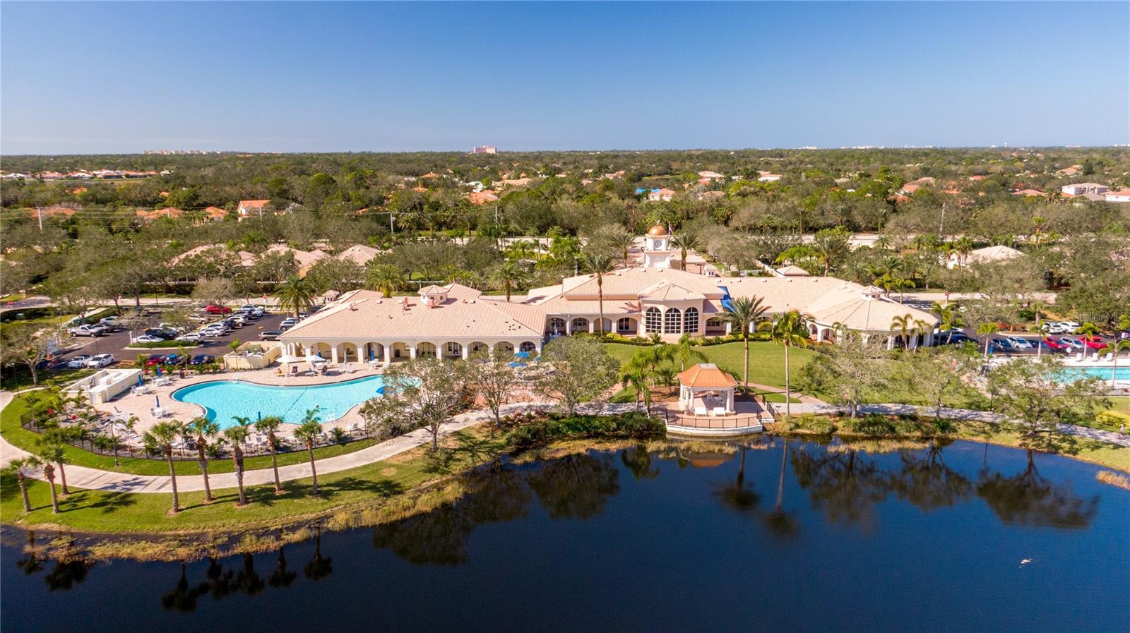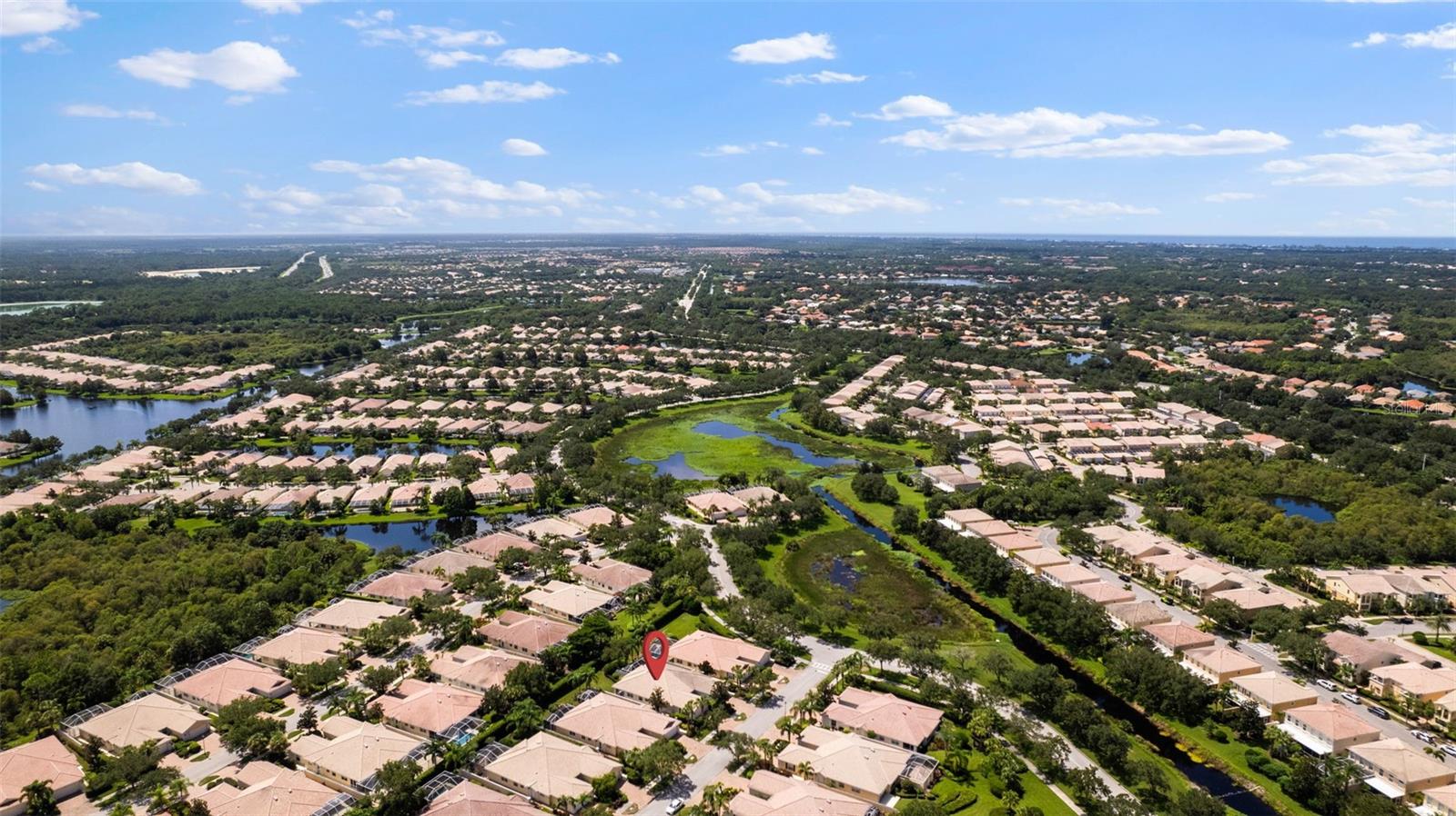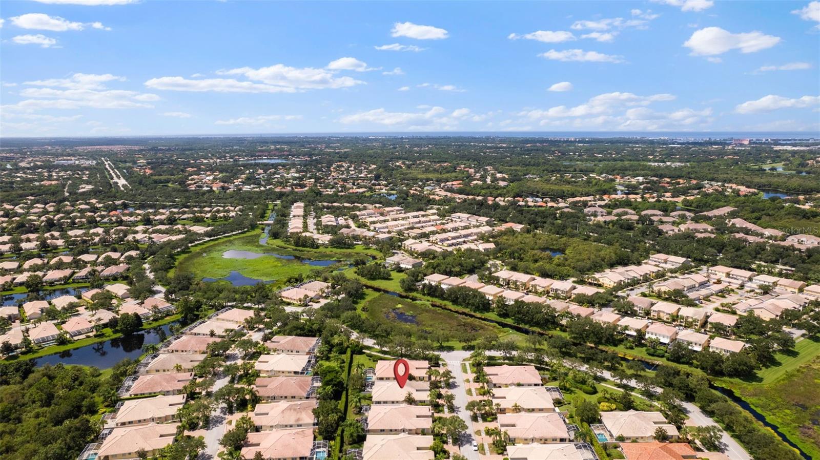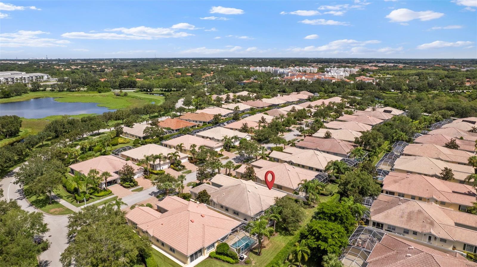 One or more photo(s) has been virtually staged. Start your next adventure here!! Impeccably maintained two bedroom, two bath villa perfectly set on a tropically landscaped lot. This well designed Capri III Villa has an open floor plan which includes a great room, dining area and open den. The great room has vaulted ceilings, carpet and neutral colors. The light and bright kitchen has plenty of cabinet space and a closet pantry. The primary bedroom has a walk in closet with built in organizers, bathroom with dual sink vanity and walk in shower. The guest bedroom has a walk in closet and full bathroom. The laundry room is well equipped with cabinets for storage and utility sink. Additional features include A/C 2020, a security system and hurricane shutters. Best of all is DiVosta's poured concrete reinforced construction for that "peace of mind". First class amenities including six har tru tennis courts, a geo thermal heated lagoon pool, a geo thermal heated lap pool, pickleball courts, and bocce ball. The clubhouse has a state of the art fitness center, event space and library. Enjoy the restaurant with bar and poolside Tiki Bar. The events calendar is full of fun activities. We have an onsite manager and event coordinator. Set on over five hundred acres of manicured grounds, great for walking and biking. A Rated School district. Close to Publix, Legacy bike trail, Costco, Siesta Key beach, doctors, dining and more.