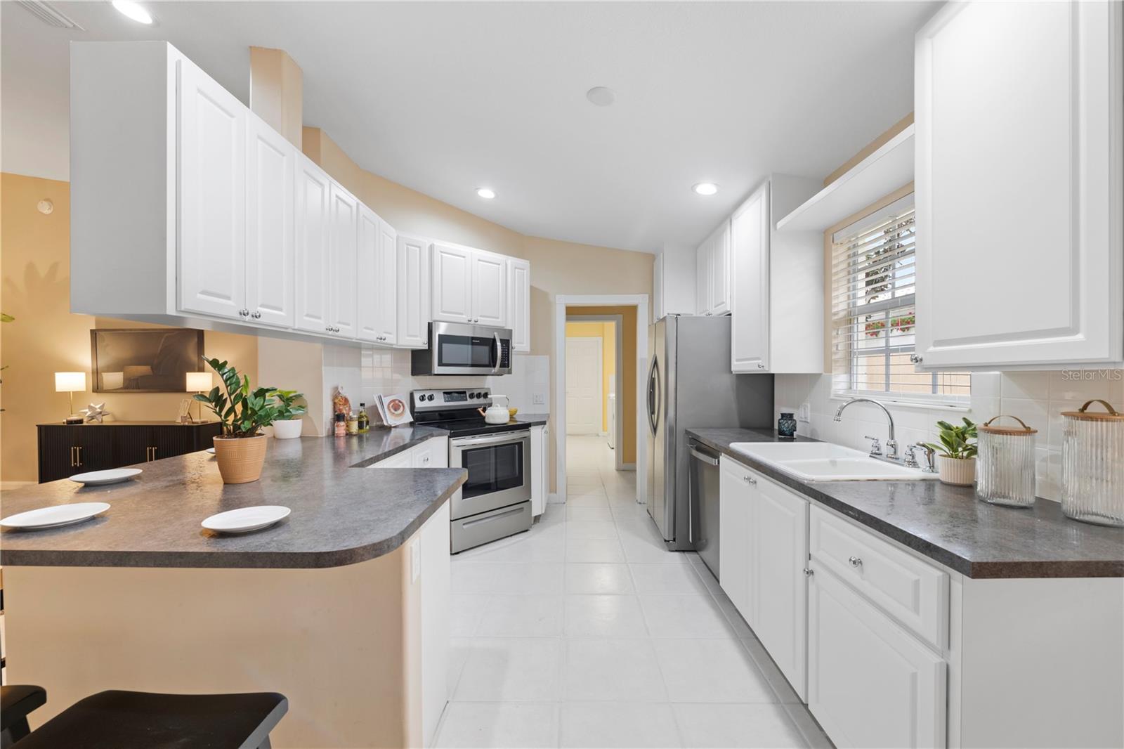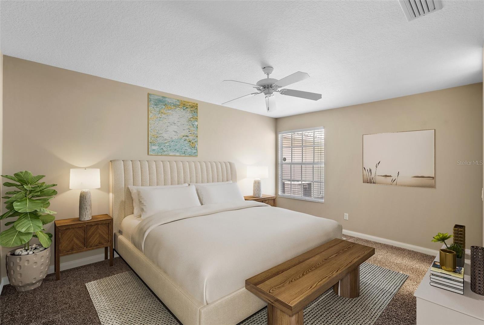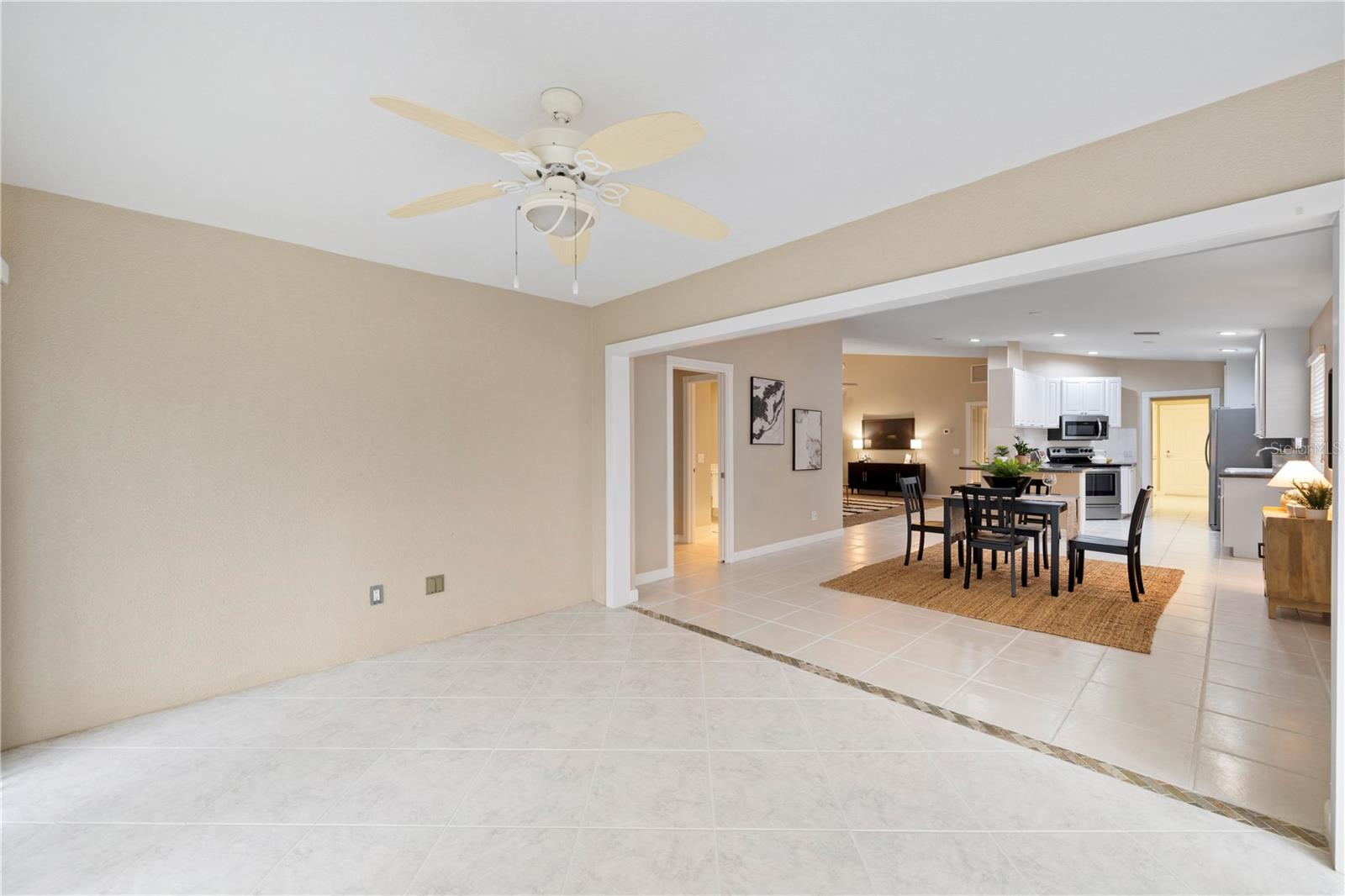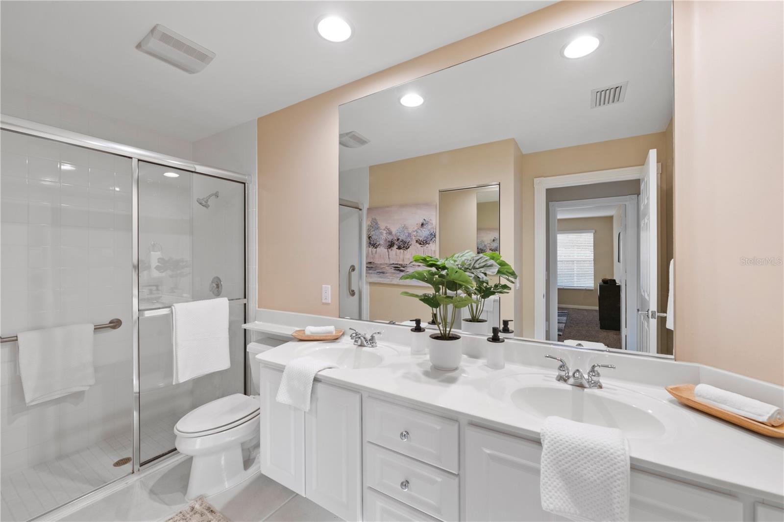 One or more photo(s) has been virtually staged. Start your next adventure here!! Impeccably maintained two bedroom, two bath villa perfectly set on a tropically landscaped lot. This well designed Capri III Villa has an open floor plan which includes a great room, dining area and open den. The great room has vaulted ceilings, carpet and neutral colors. The light and bright kitchen has plenty of cabinet space and a closet pantry. The primary bedroom has a walk in closet with built in organizers, bathroom with dual sink vanity and walk in shower. The guest bedroom has a walk in closet and full bathroom. The laundry room is well equipped with cabinets for storage and utility sink. Additional features include A/C 2020, a security system and hurricane shutters. Best of all is DiVosta's poured concrete reinforced construction for that "peace of mind". First class amenities including six har tru tennis courts, a geo thermal heated lagoon pool, a geo thermal heated lap pool, pickleball courts, and bocce ball. The clubhouse has a state of the art fitness center, event space and library. Enjoy the restaurant with bar and poolside Tiki Bar. The events calendar is full of fun activities. We have an onsite manager and event coordinator. Set on over five hundred acres of manicured grounds, great for walking and biking. A Rated School district. Close to Publix, Legacy bike trail, Costco, Siesta Key beach, doctors, dining and more.