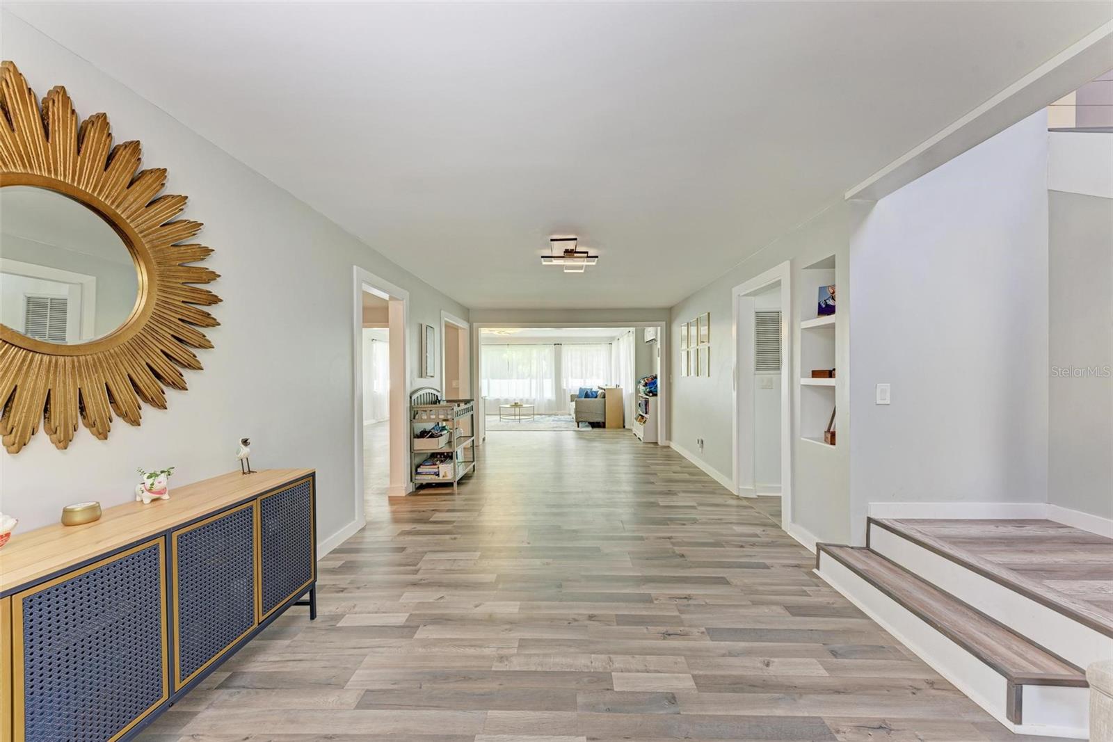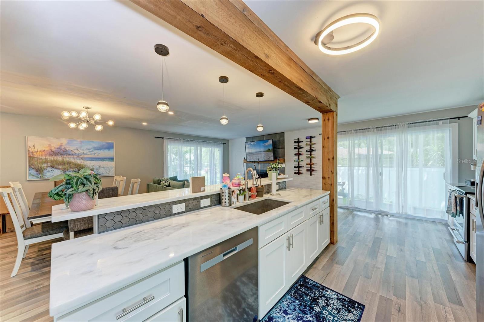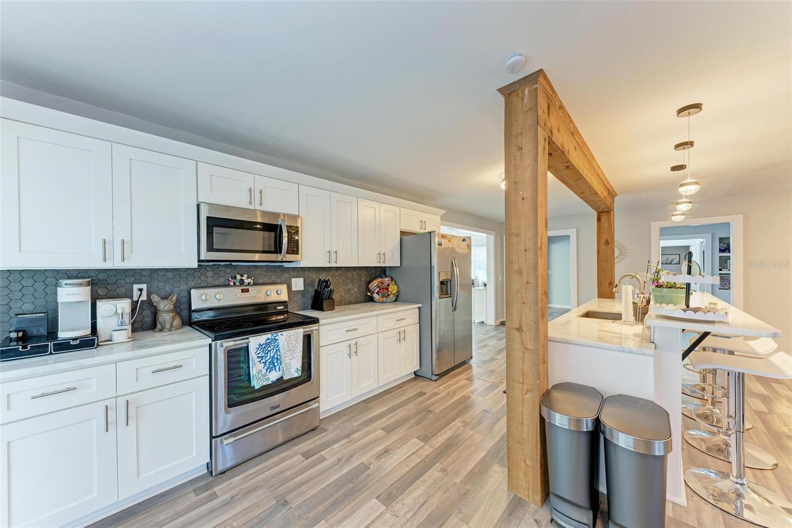 Short Sale. **Exquisite Updated Home = A Dream Come True!** Welcome to this stunning and elegant 5-bedroom, 5-bathroom residence that has been completely remodeled with all the up to date chic finishes and modern colors. Perfectly designed for comfort and style, four of the spacious 5 bedrooms includes it's own en-suite bath. As you enter, you’re greeted by a warm and welcoming atmosphere, highlighted by not one, but two expansive family rooms. One of these rooms boasts a cozy wood-burning fireplace and a stylish wine rack, perfect for entertaining. The heart of this home is the beautifully crafted kitchen, showcasing quartz countertops, stainless steel appliances, and elegant white shaker cabinets. The stylish backsplash and pendant lighting above the eat-in island/bar create an inviting space for family gatherings. Each guest bathroom has been thoughtfully updated with modern vanities, mirrors, and lighting, ensuring a luxurious experience for all. The third floor features a versatile loft, ideal for a bonus room, play area, or home office. Outside, the property is enclosed with vinyl fencing, providing direct access to the scenic Legacy Trail for biking or walking right from your backyard. Additional highlights include screened in patio and porch, circular driveway, a covered carport, and ample space for boat or RV parking. Recent updates include a new electrical system, plumbing, and a roof, all installed in 2023, while the AC units were updated in 2017. With its spacious layout and appealing amenities, this home is perfect for a large family or multi-generational living. Don’t miss your chance to make this exquisite property your own!