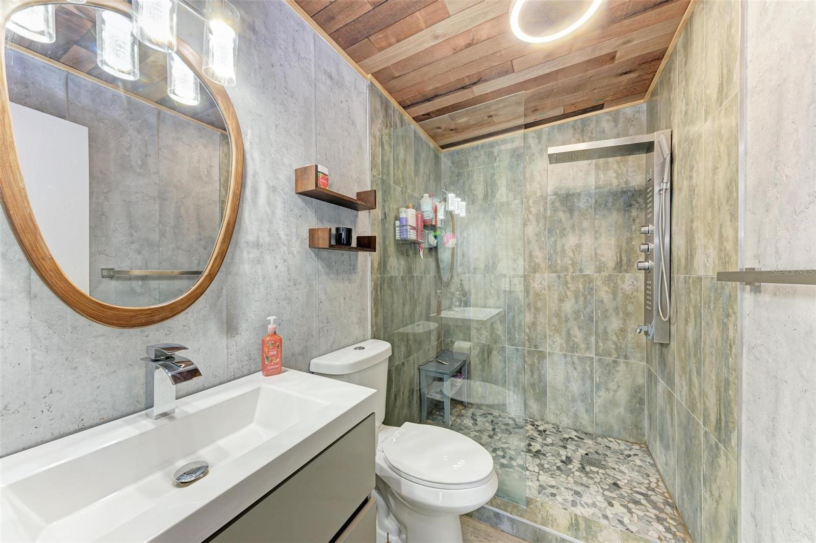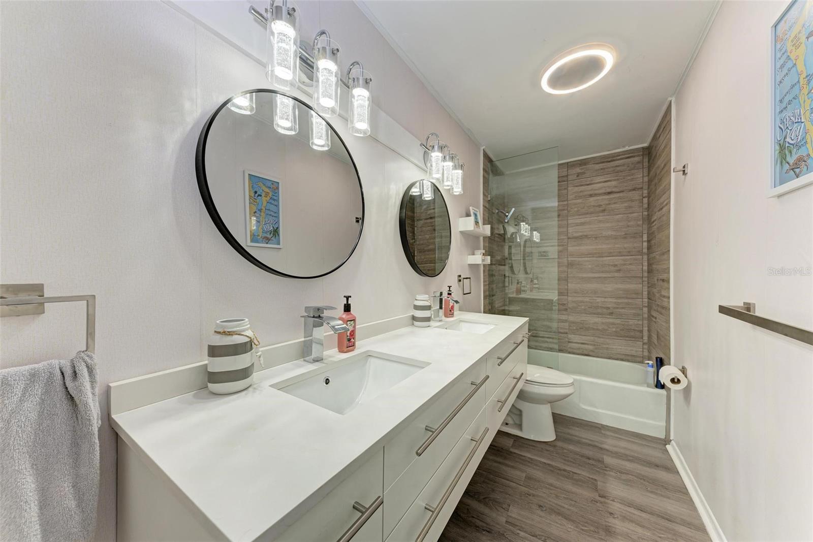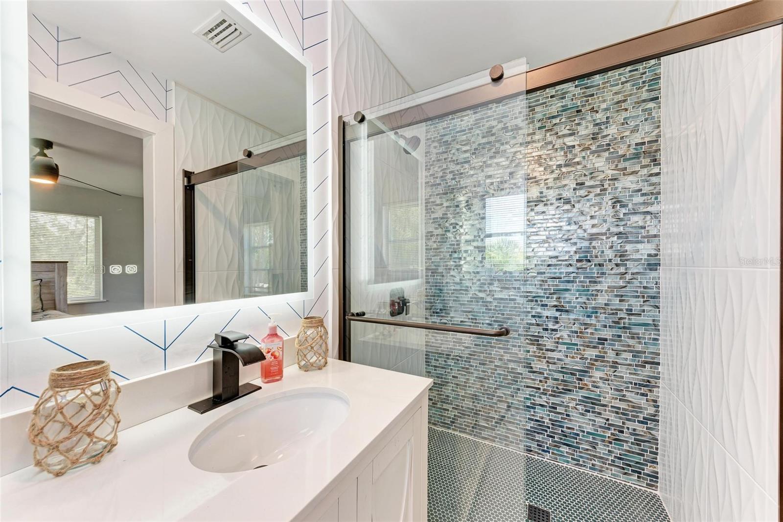 Short Sale. **Exquisite Updated Home = A Dream Come True!** Welcome to this stunning and elegant 5-bedroom, 5-bathroom residence that has been completely remodeled with all the up to date chic finishes and modern colors. Perfectly designed for comfort and style, four of the spacious 5 bedrooms includes it's own en-suite bath. As you enter, you’re greeted by a warm and welcoming atmosphere, highlighted by not one, but two expansive family rooms. One of these rooms boasts a cozy wood-burning fireplace and a stylish wine rack, perfect for entertaining. The heart of this home is the beautifully crafted kitchen, showcasing quartz countertops, stainless steel appliances, and elegant white shaker cabinets. The stylish backsplash and pendant lighting above the eat-in island/bar create an inviting space for family gatherings. Each guest bathroom has been thoughtfully updated with modern vanities, mirrors, and lighting, ensuring a luxurious experience for all. The third floor features a versatile loft, ideal for a bonus room, play area, or home office. Outside, the property is enclosed with vinyl fencing, providing direct access to the scenic Legacy Trail for biking or walking right from your backyard. Additional highlights include screened in patio and porch, circular driveway, a covered carport, and ample space for boat or RV parking. Recent updates include a new electrical system, plumbing, and a roof, all installed in 2023, while the AC units were updated in 2017. With its spacious layout and appealing amenities, this home is perfect for a large family or multi-generational living. Don’t miss your chance to make this exquisite property your own!