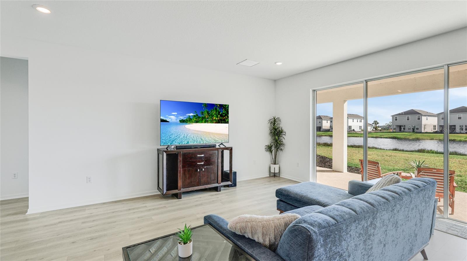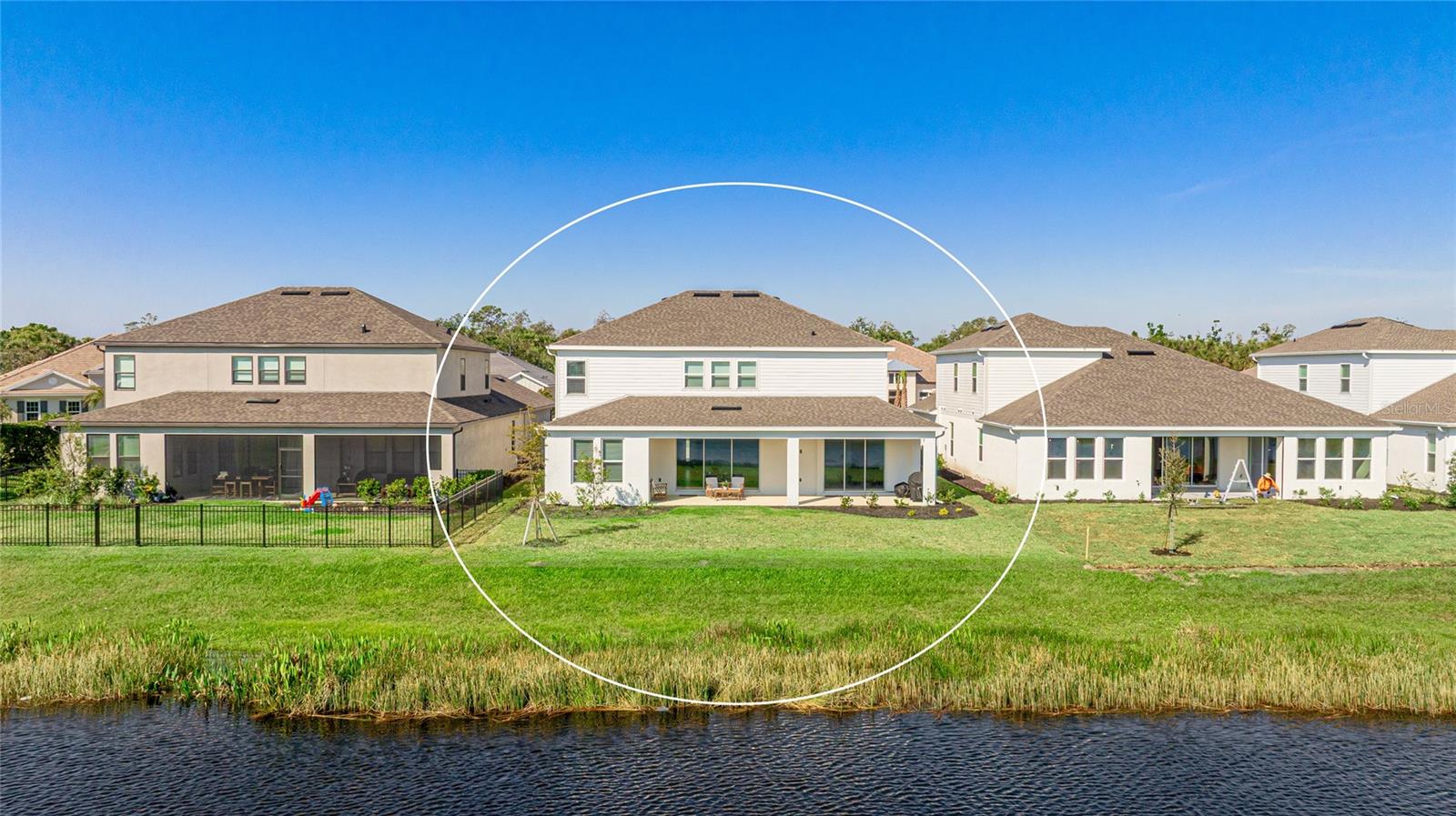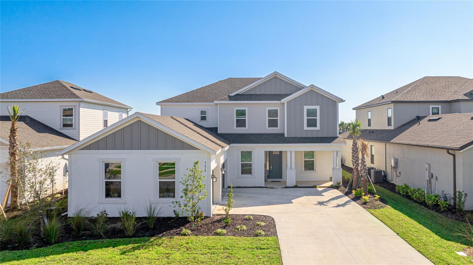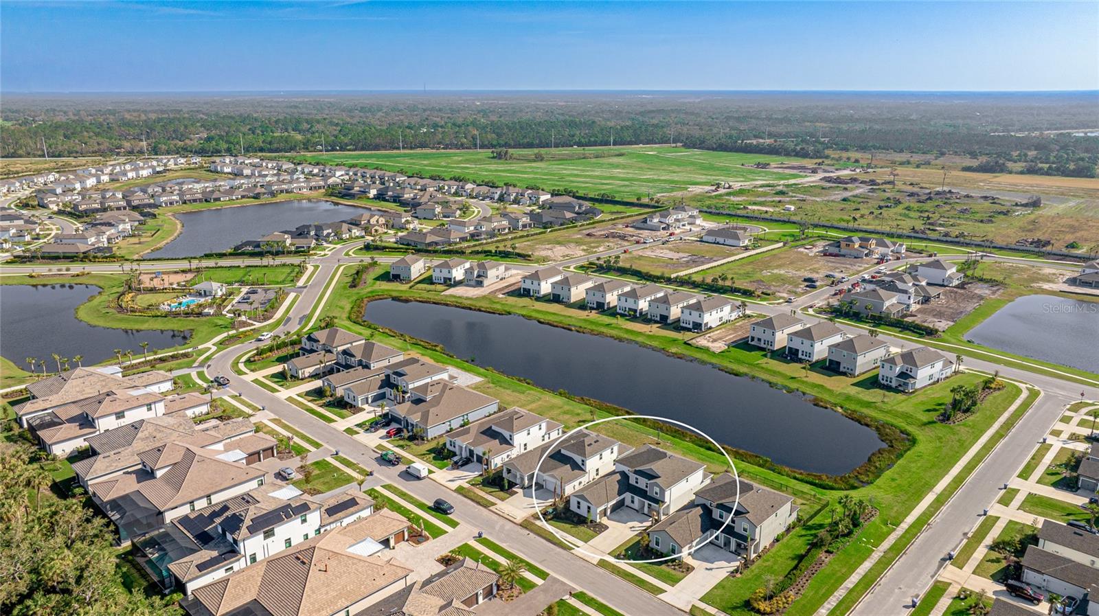 One or more photo(s) has been virtually staged. Welcome to the stunning, Sand Key model in the prestigious Skye Ranch community! Offering nearly 4,000 square feet of sophisticated lakefront living, this exceptional home features 5 bedrooms, 4.5 baths, a private office, a versatile bonus room, and a spacious 3-car side-entry garage. Why wait to build when you can enjoy this masterpiece today? From the moment you step inside, you’ll be captivated by the breathtaking grand staircase and soaring two-story foyer—an impressive introduction to the luxury that awaits. The sunlit private office, enclosed by elegant French doors, offers the perfect retreat for remote work or quiet reflection. The expansive foyer flows seamlessly into the formal dining area, with glimpses of serene lake views that set a tranquil tone throughout. Every detail has been thoughtfully curated—from the upgraded Gourmet Kitchen with GE Café appliances to the wide-plank flooring and designer tile selections. The chef’s kitchen is a true showpiece, featuring a striking center island, apron-front sink, quartz countertops, and a stylish full-height backsplash. The open-concept design effortlessly connects the kitchen to the living area and extended covered lanai—ideal for alfresco dining or relaxed gatherings with friends and family. The primary suite, conveniently located on the main floor, features private lanai access through glass sliders, inviting natural light and lake breezes. Its spa-inspired bath offers a frameless glass rain shower, Carrara tile floors, and a peaceful, modern aesthetic—a true owner’s sanctuary. A guest powder bath and a spacious laundry room with added storage complete the first level. Upstairs, nearly 1,600 additional square feet provide flexible living options, including four generously sized bedrooms—two with ensuite baths and expansive walk-in closets—and a 21’ x 19.5’ game room perfect for entertainment or relaxation. With ample space for a future pool, this home offers endless opportunities to elevate your lifestyle. Located in Skye Ranch, one of Sarasota’s premier gated communities, residents enjoy top-rated schools, scenic nature trails, and resort-style amenities including a magnificent clubhouse, multiple pools, splash pad, tennis courts, fitness center, basketball court, rock climbing wall, café, parks, and a new K–12 Skye Ranch School. Don’t miss this rare opportunity—schedule your private tour today and experience luxurious, lakefront living at its finest! Be sure to explore the 3D Matterport Interactive Tour for a full virtual experience.