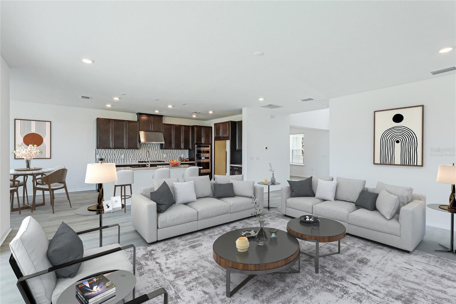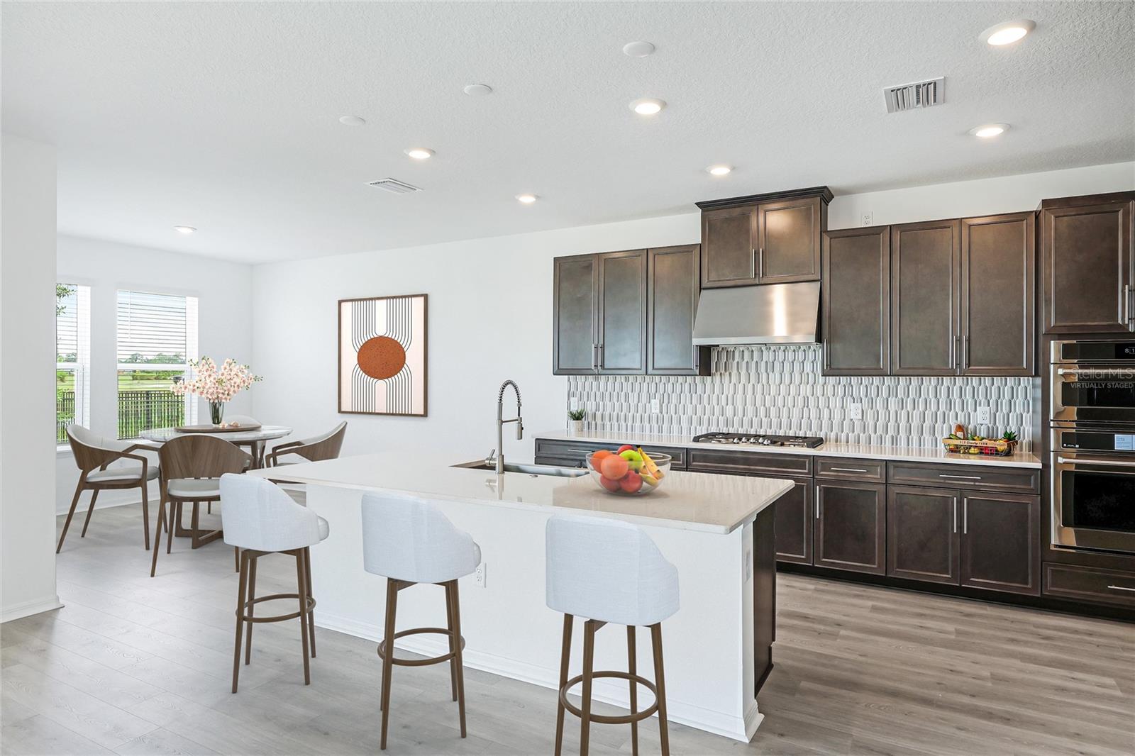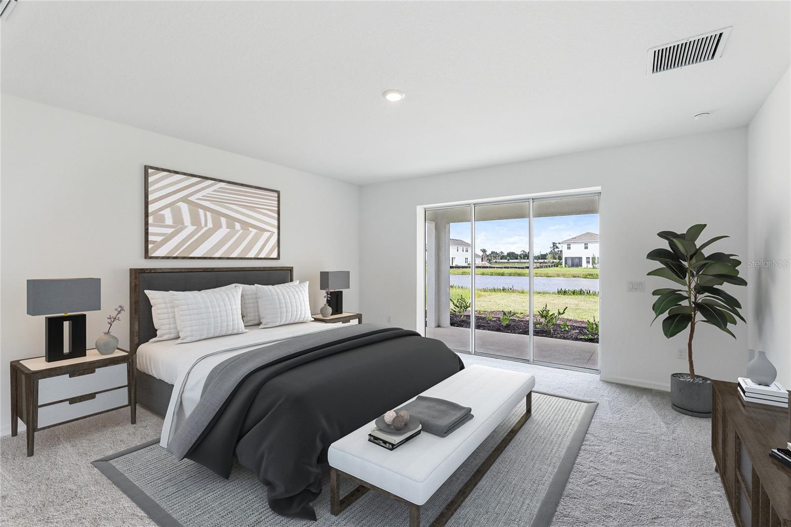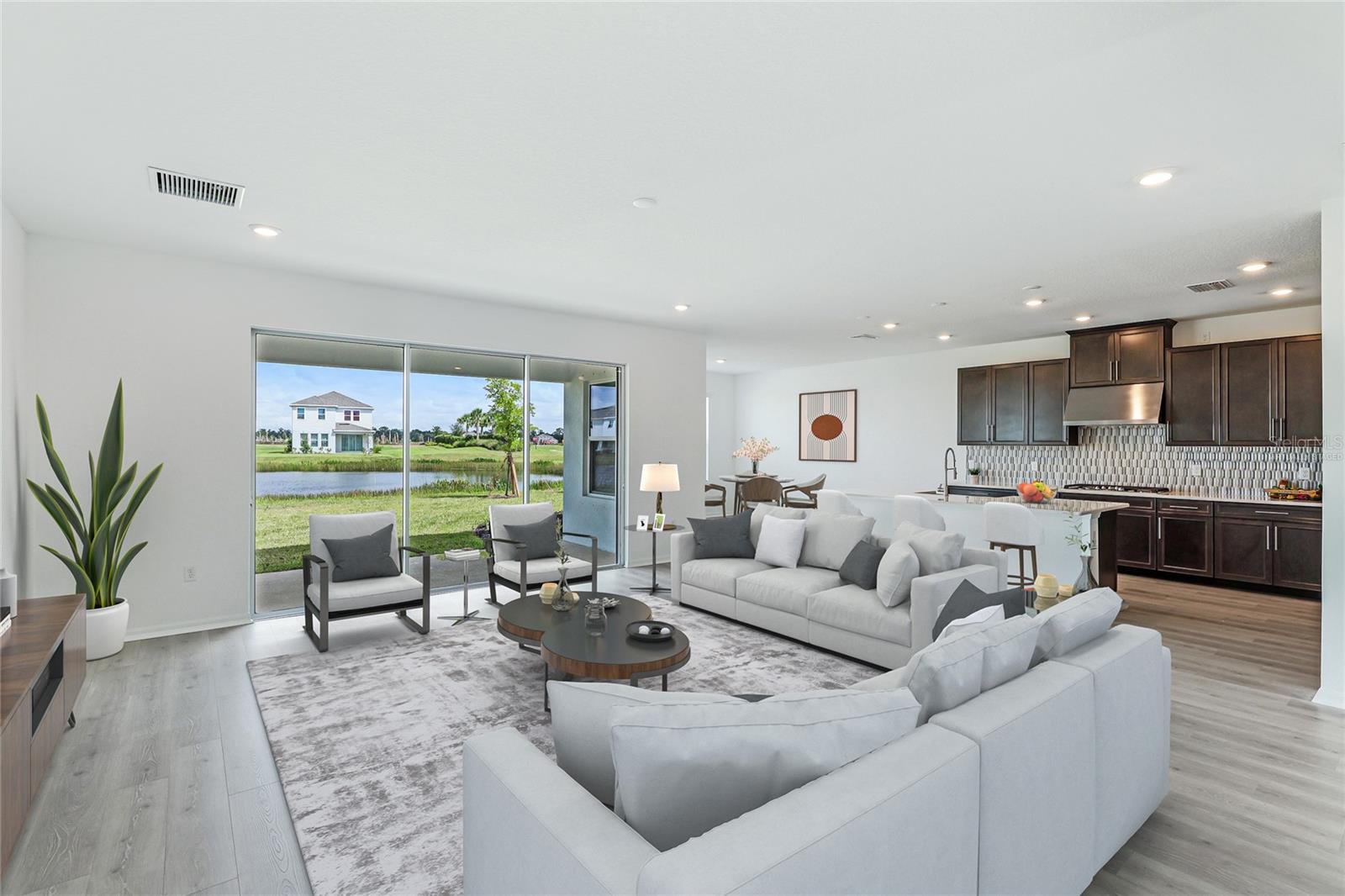 One or more photo(s) has been virtually staged. Welcome to the stunning, Sand Key model in the prestigious Skye Ranch community! Offering nearly 4,000 square feet of sophisticated lakefront living, this exceptional home features 5 bedrooms, 4.5 baths, a private office, a versatile bonus room, and a spacious 3-car side-entry garage. Why wait to build when you can enjoy this masterpiece today? From the moment you step inside, you’ll be captivated by the breathtaking grand staircase and soaring two-story foyer—an impressive introduction to the luxury that awaits. The sunlit private office, enclosed by elegant French doors, offers the perfect retreat for remote work or quiet reflection. The expansive foyer flows seamlessly into the formal dining area, with glimpses of serene lake views that set a tranquil tone throughout. Every detail has been thoughtfully curated—from the upgraded Gourmet Kitchen with GE Café appliances to the wide-plank flooring and designer tile selections. The chef’s kitchen is a true showpiece, featuring a striking center island, apron-front sink, quartz countertops, and a stylish full-height backsplash. The open-concept design effortlessly connects the kitchen to the living area and extended covered lanai—ideal for alfresco dining or relaxed gatherings with friends and family. The primary suite, conveniently located on the main floor, features private lanai access through glass sliders, inviting natural light and lake breezes. Its spa-inspired bath offers a frameless glass rain shower, Carrara tile floors, and a peaceful, modern aesthetic—a true owner’s sanctuary. A guest powder bath and a spacious laundry room with added storage complete the first level. Upstairs, nearly 1,600 additional square feet provide flexible living options, including four generously sized bedrooms—two with ensuite baths and expansive walk-in closets—and a 21’ x 19.5’ game room perfect for entertainment or relaxation. With ample space for a future pool, this home offers endless opportunities to elevate your lifestyle. Located in Skye Ranch, one of Sarasota’s premier gated communities, residents enjoy top-rated schools, scenic nature trails, and resort-style amenities including a magnificent clubhouse, multiple pools, splash pad, tennis courts, fitness center, basketball court, rock climbing wall, café, parks, and a new K–12 Skye Ranch School. Don’t miss this rare opportunity—schedule your private tour today and experience luxurious, lakefront living at its finest! Be sure to explore the 3D Matterport Interactive Tour for a full virtual experience.