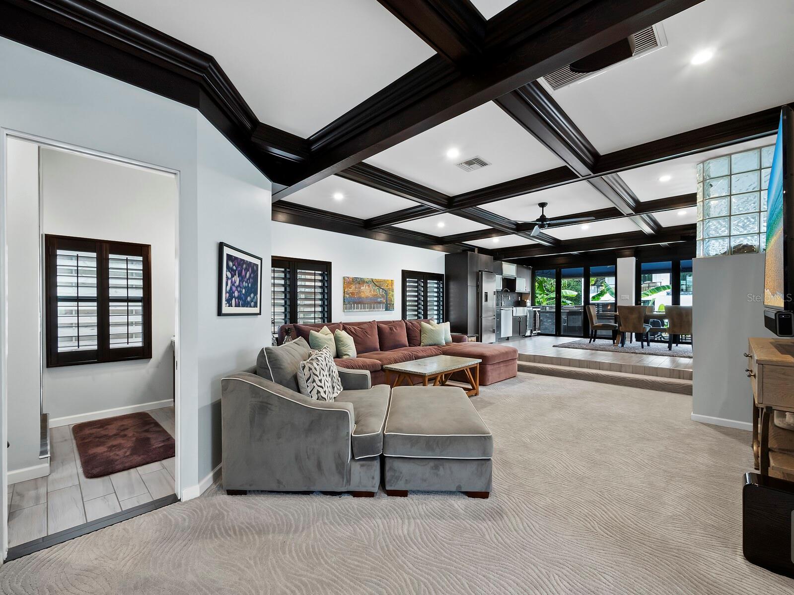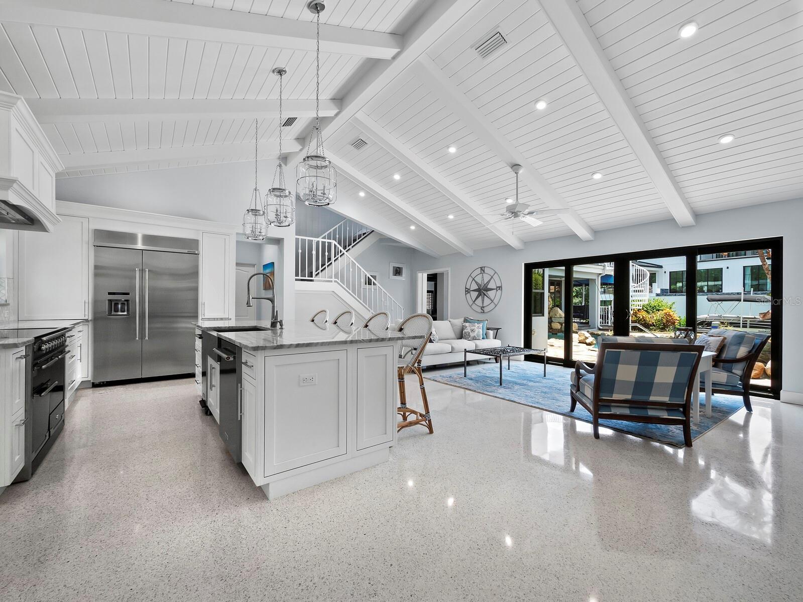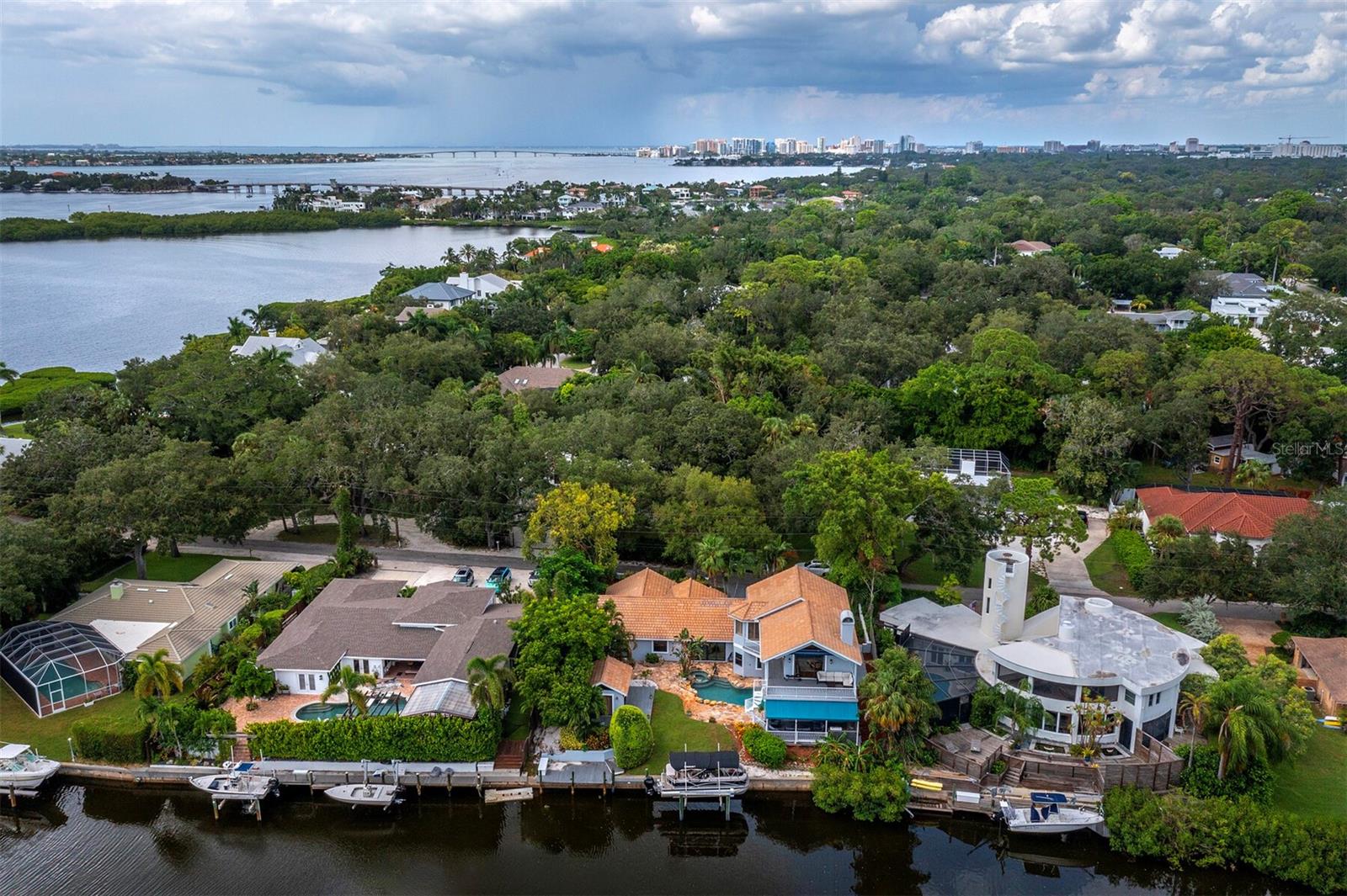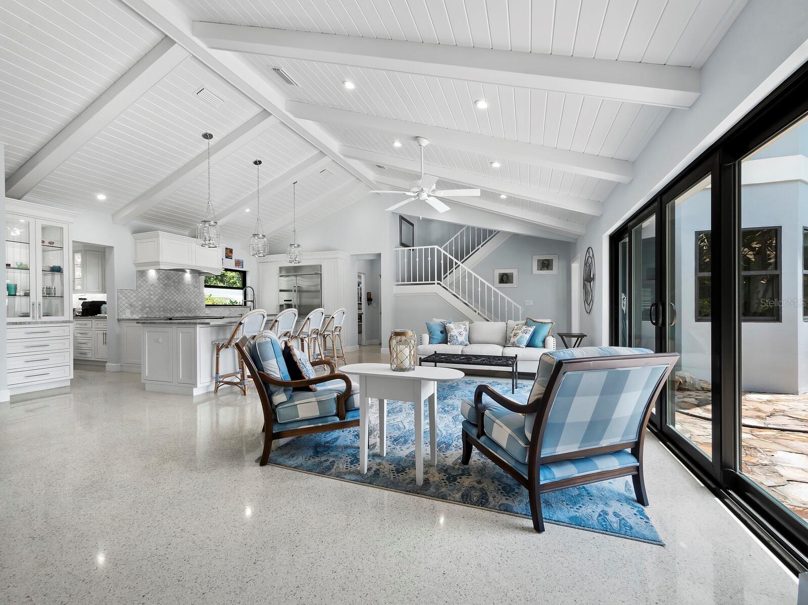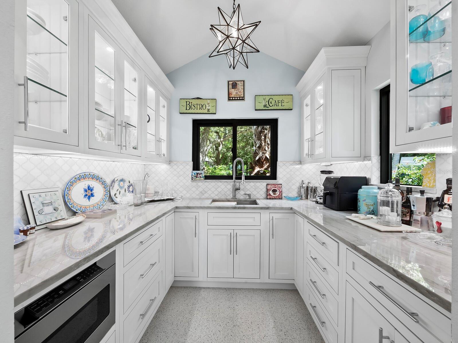 Discover unparalleled luxury in this exceptional waterfront estate, ideally located West of the Trail, offering direct bay access with no bridges. This stunning home features four spacious bedrooms and four beautifully appointed bathrooms, along with a private cabana that includes a bedroom and half bath, providing the perfect guest retreat. Designed for seamless entertaining, the home boasts a grand living area with a coffered ceiling, wet bar, wine cooler, and newly installed impact doors. The chef’s kitchen is a masterpiece, complete with vaulted ceilings, a large center island, custom wood cabinetry, an AGA induction range, and a butler’s pantry. Elegant, polished terrazzo floors flow throughout the kitchen and dining areas, adding a touch of sophistication. The expansive master suite, located on the second floor, offers a private sanctuary with a wraparound deck, sun awning, cozy fireplace, vaulted ceilings, walk-in closet, and a luxurious bath featuring a soaking tub and walk-in shower. Outdoors, the resort-style pool area is enhanced by a heated pool and spa, a rock waterfall, tropical landscaping, and a two-sided gas fireplace, perfect for relaxation and entertaining. The fully renovated dock includes water, electricity, and a 10,000-pound vertical lift, ideal for boating enthusiasts. Rest easy knowing this home was completely unaffected by the 2024 hurricane season—remaining high and dry with zero damage, ensuring peace of mind. Conveniently located near the Field Club, Red Rock Park, Publix, and premier dining, this residence combines waterfront elegance with unmatched convenience, offering the ultimate in luxury living.