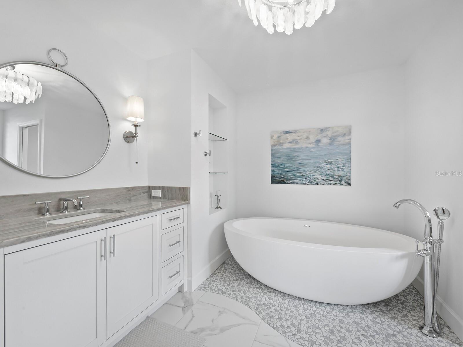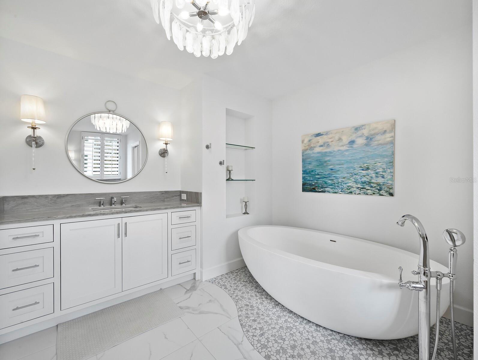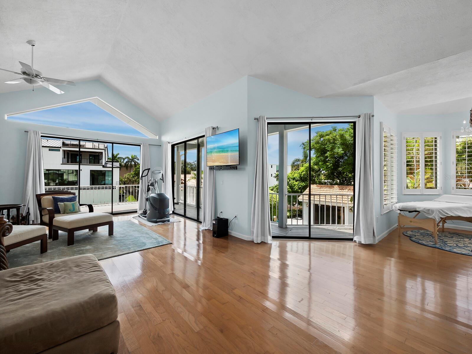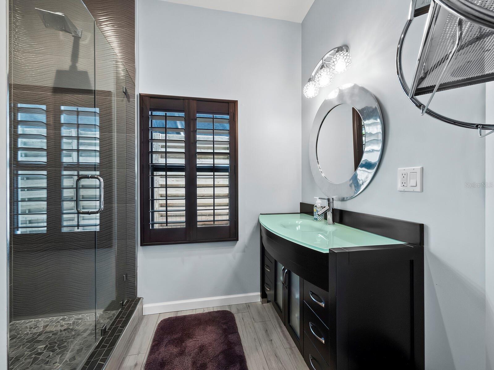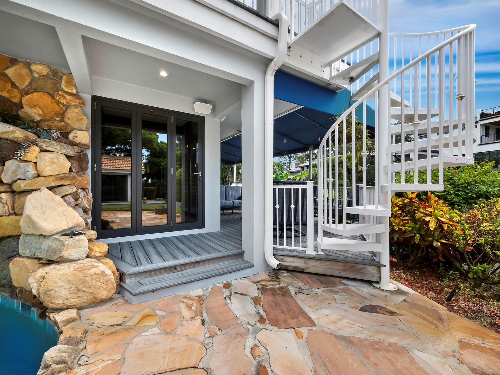 Discover unparalleled luxury in this exceptional waterfront estate, ideally located West of the Trail, offering direct bay access with no bridges. This stunning home features four spacious bedrooms and four beautifully appointed bathrooms, along with a private cabana that includes a bedroom and half bath, providing the perfect guest retreat. Designed for seamless entertaining, the home boasts a grand living area with a coffered ceiling, wet bar, wine cooler, and newly installed impact doors. The chef’s kitchen is a masterpiece, complete with vaulted ceilings, a large center island, custom wood cabinetry, an AGA induction range, and a butler’s pantry. Elegant, polished terrazzo floors flow throughout the kitchen and dining areas, adding a touch of sophistication. The expansive master suite, located on the second floor, offers a private sanctuary with a wraparound deck, sun awning, cozy fireplace, vaulted ceilings, walk-in closet, and a luxurious bath featuring a soaking tub and walk-in shower. Outdoors, the resort-style pool area is enhanced by a heated pool and spa, a rock waterfall, tropical landscaping, and a two-sided gas fireplace, perfect for relaxation and entertaining. The fully renovated dock includes water, electricity, and a 10,000-pound vertical lift, ideal for boating enthusiasts. Rest easy knowing this home was completely unaffected by the 2024 hurricane season—remaining high and dry with zero damage, ensuring peace of mind. Conveniently located near the Field Club, Red Rock Park, Publix, and premier dining, this residence combines waterfront elegance with unmatched convenience, offering the ultimate in luxury living.
