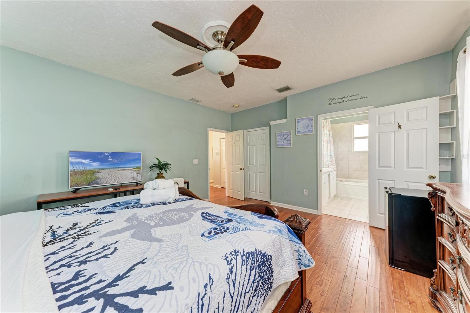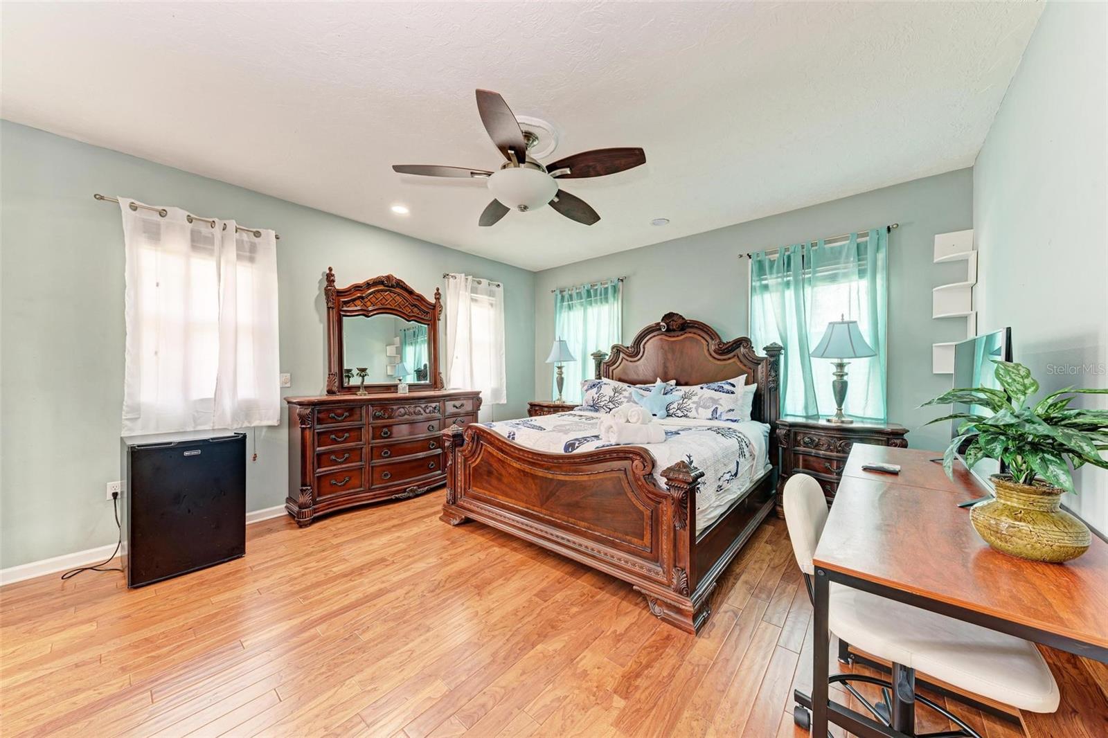 Discover the epitome of refined living with this distinguished pool home, situated in the highly coveted De Soto Lakes neighborhood. This residence features five bedrooms and three bathrooms and it is ideally located near near The University Park business and entertainment hub. Many parks near by and some of the best beaches in the state are only a few minutes away. New ceramic tiles(wow factor), new windows 2024, new roof 2023 new A/C 2017 . Additionally, a versatile detached building with electricity and A/C wall unit offers potential for use as a studio or workshop. The building is complemented by a covered wood deck overlooking the pool area and the expansive backyard. The front yard presents an inviting appeal with its meticulously maintained landscape and brick paver driveway. Upon entering, you are greeted by an open-concept living-dining-kitchen area. The dining space is highlighted by a charming bay window, while the living room is enhanced with built-in shelving and a ceiling fan, creating a bright and welcoming atmosphere. Recent updates include a new roof installed in April 2023 and an air conditioning system from 2017. The kitchen boasts a breakfast bar, new farmhouse light fixtures, stainless steel appliances, and ample cabinetry. French doors open to a covered patio and the pool area, perfect for Florida-style entertaining. The large, screened pool area ensures year-round enjoyment with new screening and abundant space for gatherings. The residence includes two en-suite bedrooms, with the main bedroom featuring a bathroom with a double vanity and a jetted garden tub. The guest bedroom offers privacy and comfort. The home is finished with new ceramic tiles downstairs and NuCore engineered wood flooring upstairs. With no HOA, this home offers flexibility and freedom. Air B and B your thing? Perfect for that!. Large Parties? Perfect for that! The UTC Mall, with its fine dining and upscale shopping, is less than a ten-minute drive away, and Benderson Park is nearby. Numerous golf courses, including the Palm Aire Country Club, are within close proximity. Longwood Run Park is a five-minute drive, while Downtown Sarasota is less than fifteen minutes away. Embrace the serene beauty of Siesta Key or Lido Beach, with their azure waters and sun-kissed sands. Seller will consider buyer concessions.