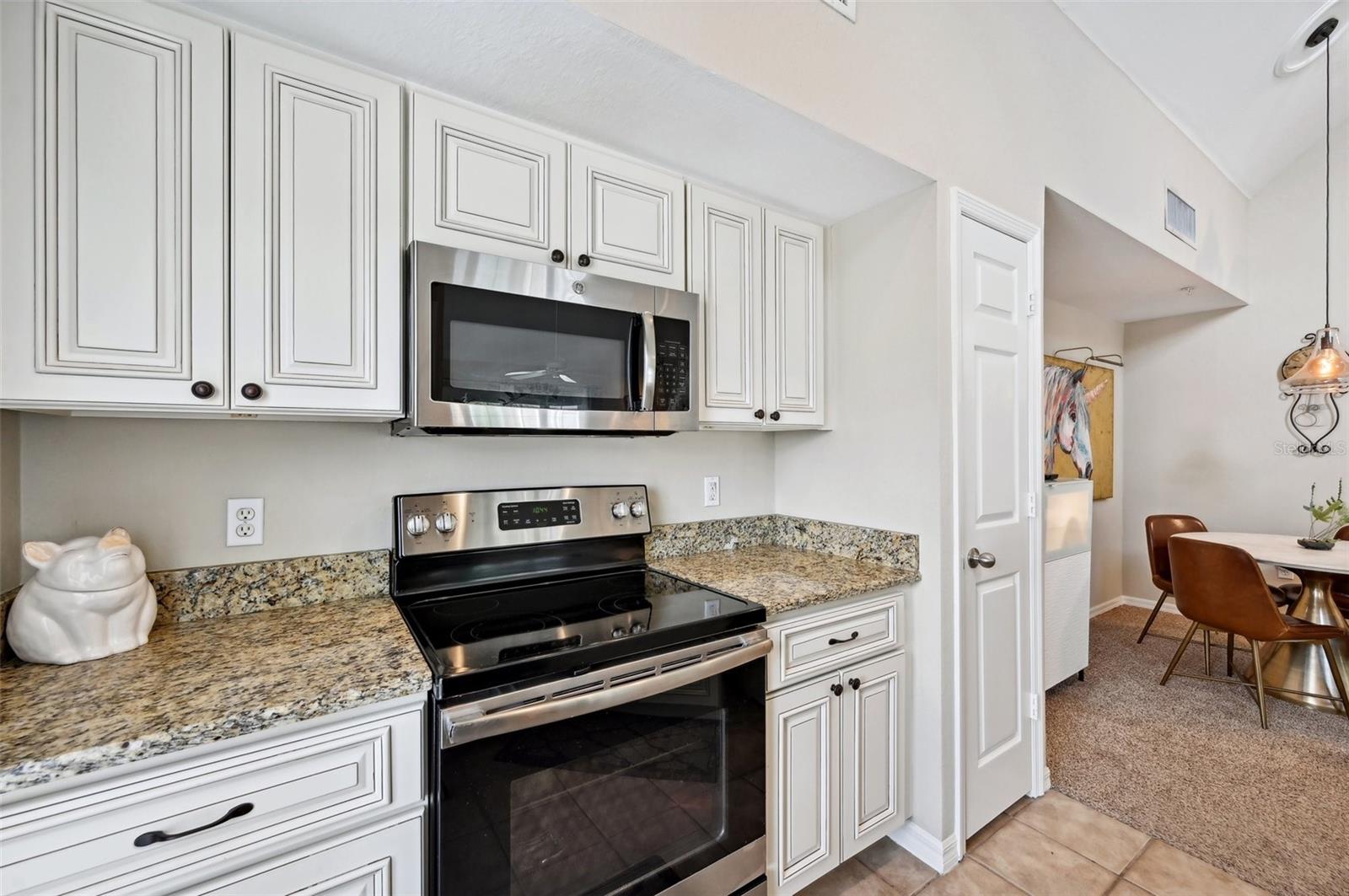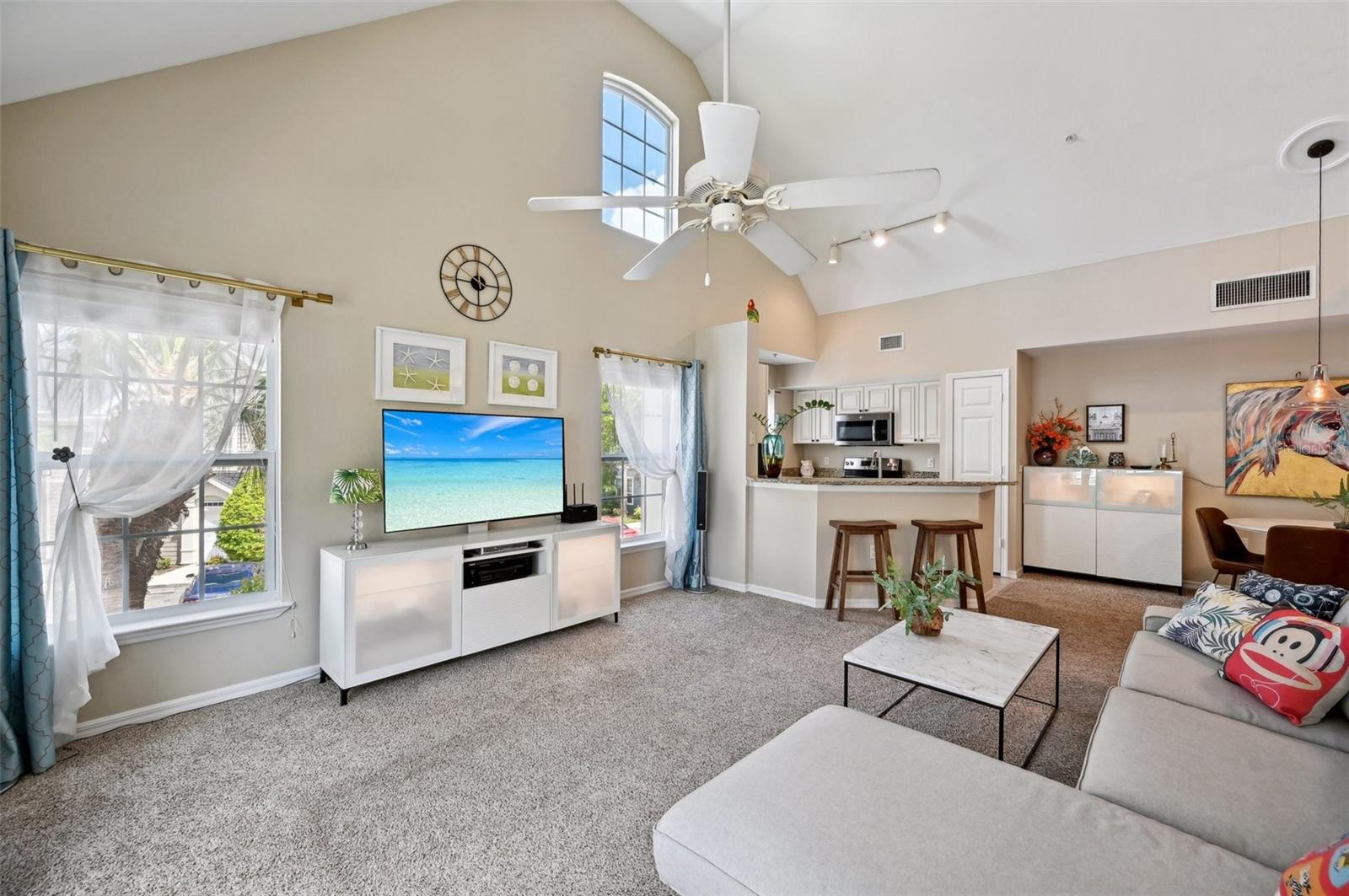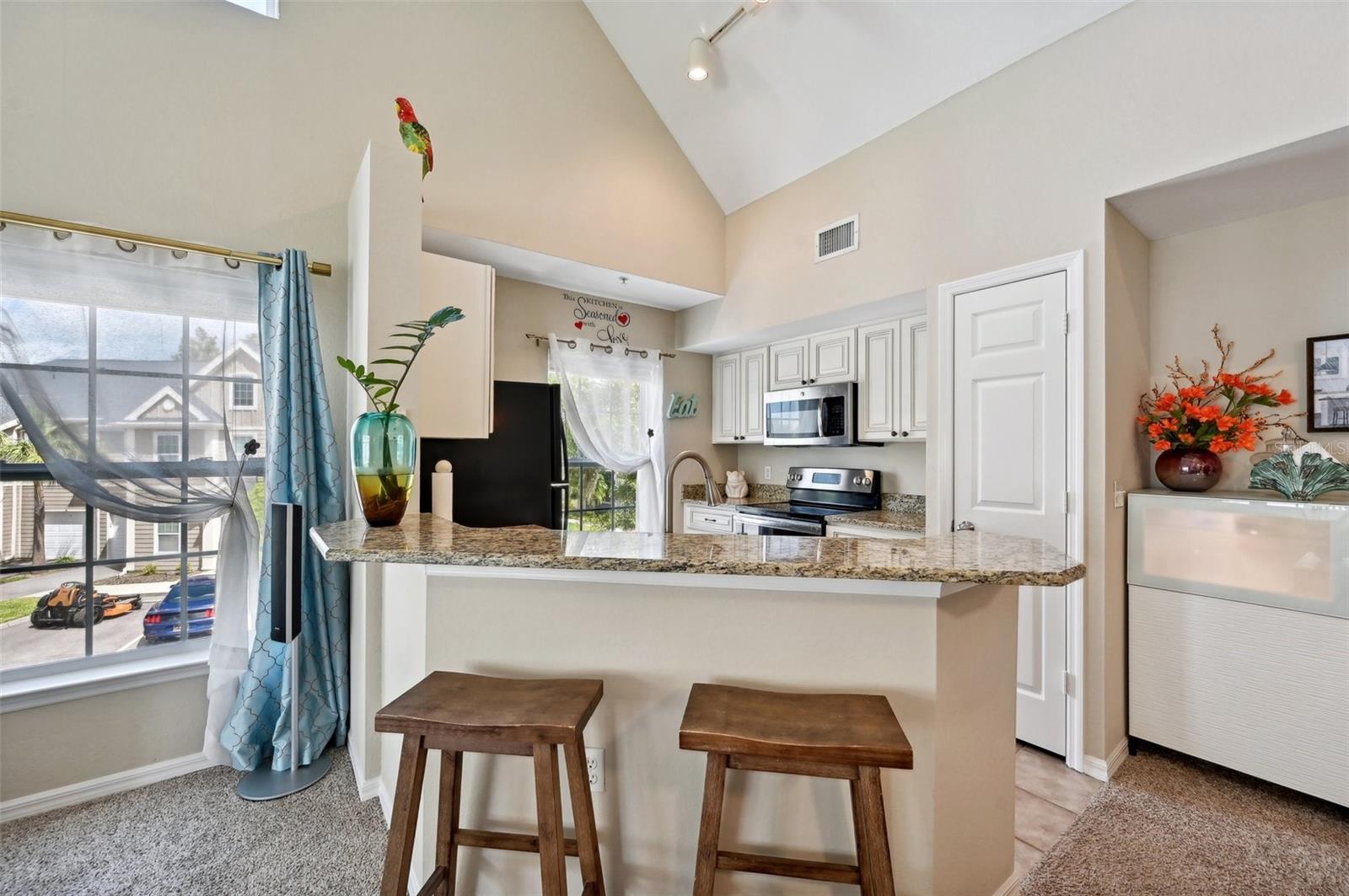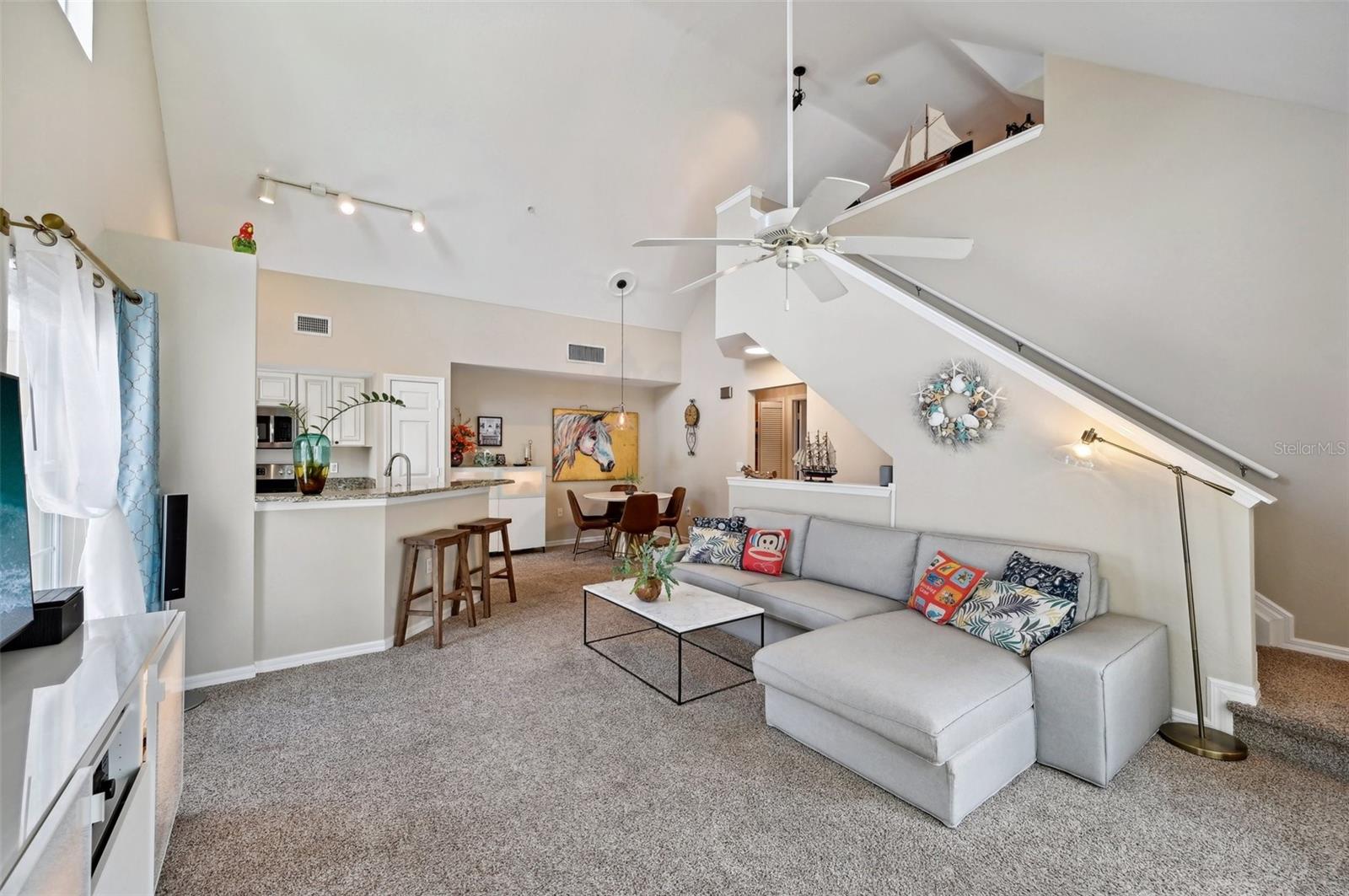 Move-in Ready! Discover the charm of this beautifully renovated 2-bedroom, 2-bath condo with a versatile loft/den. Enjoy tranquil lake views and modern upgrades, including granite countertops, a newer sink, a newer microwave, and a brand new AC system with a smart thermostat installed in 2023. Fresh paint, newer carpet, and new lighting features throughout add to the appeal. The living room, dining area, and chef’s kitchen are enhanced by soaring volume ceilings, creating an open and inviting atmosphere. Both bedrooms feature spacious walk-in closets, while the primary suite boasts a private bath with a relaxing garden tub. The loft area offers flexibility, perfect as a den, office, or even a third bedroom. Recent exterior updates include a new roof, siding, and paint, ensuring peace of mind. Nestled in the charming, gated community of Admirals Walk, this home offers a range of amenities, including a community pool, spa, recreational and billiard room, fitness center, playground, and on-site management. Conveniently located near I-75, shopping, medical facilities, restaurants, and just a short drive to Siesta Key Beach, this condo is the perfect blend of comfort and convenience.