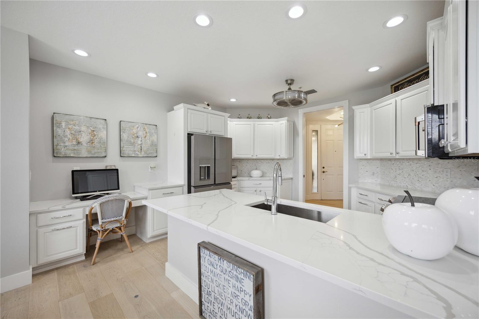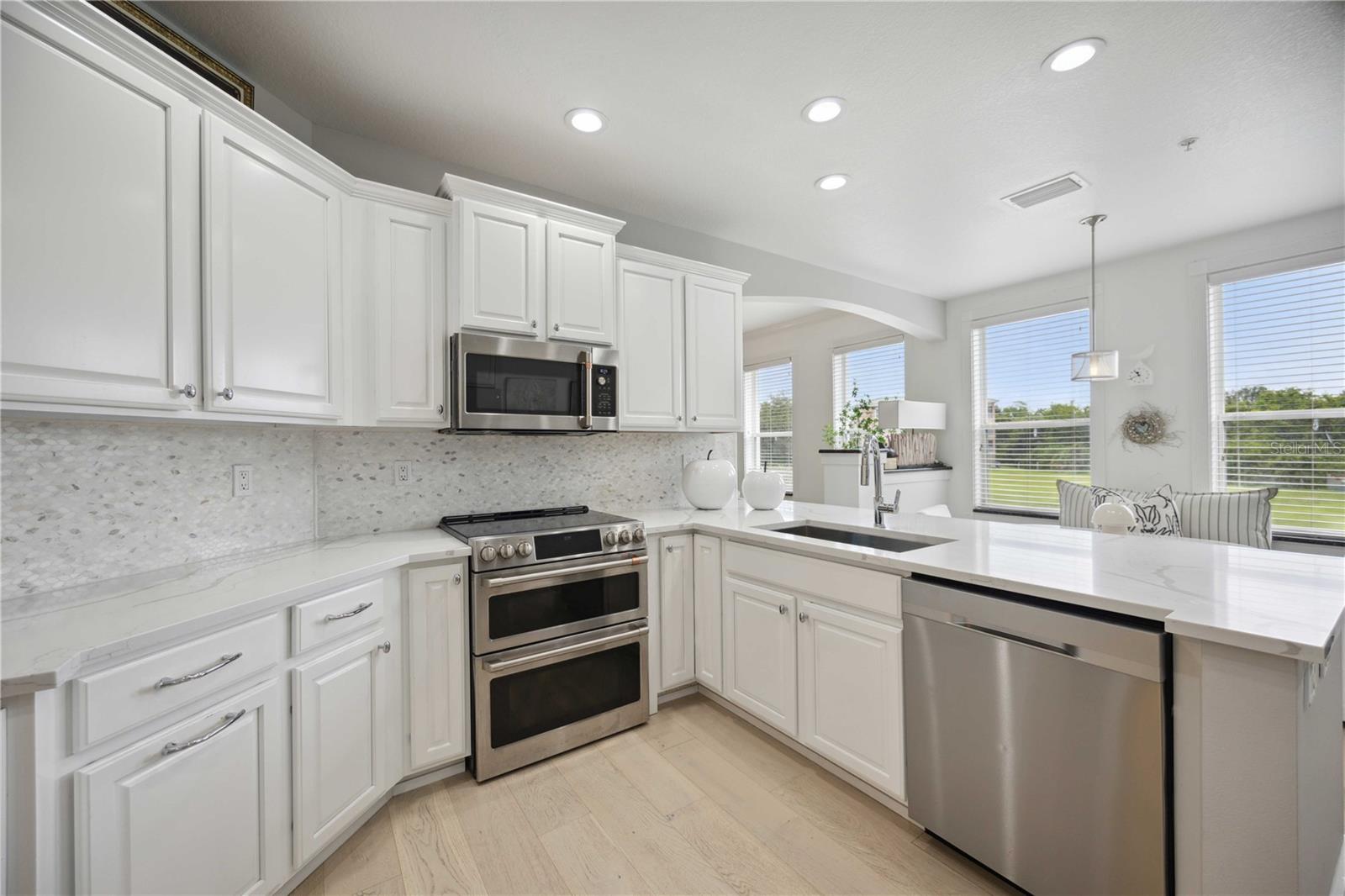 This meticulously updated residence nestled in the exclusive, gated community of Grande Oaks Preserve in Sarasota, FL. offers luxury and convenience in a prime location near the University Town Center, Nathan Benderson Park, and world-class dining and shopping options. Enjoy easy access to I-75, downtown Sarasota, and the beautiful Gulf Coast beaches. Step inside to discover an array of recent upgrades, including a new 18 SEER AC system (2023), beautiful wood flooring, fresh carpet (2022), and a remodeled kitchen featuring quartz countertops, custom-made handles, a stylish backsplash, and top-of-the-line GE Café Series appliances (2022). The home also includes a Samsung washer and dryer, all new in 2022. The master suite boasts a redesigned bathroom (2023) and a fully remodeled walk-in closet, while the hall and third bathrooms have been thoughtfully updated. The open floor plan extends to a spacious screened patio, ideal for enjoying the serene surroundings. Grande Oaks Preserve offers outstanding amenities, including a community pool, spa, workout room, two clay tennis courts, and beautifully maintained grounds. Recent community updates include exterior repainting (2023) and a thorough roof inspection and cleaning. The HOA covers Comcast TV, yard maintenance, roof and building repairs and replacements, water, sewer and garbage. With two garage parking spaces and additional storage, this property provides all the space you need. Don't miss the opportunity to make this exceptional home your own in one of Sarasota's most desirable communities.