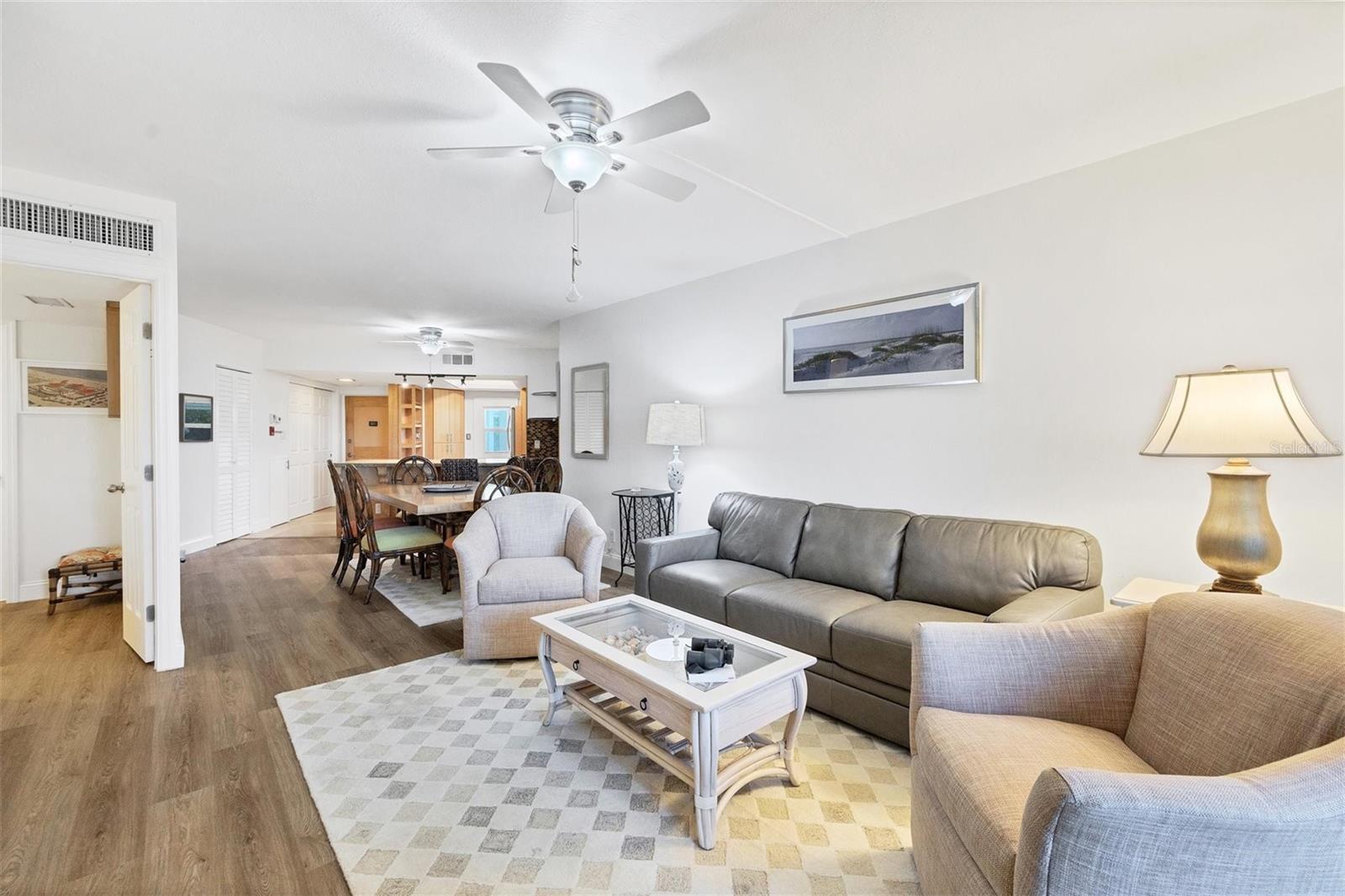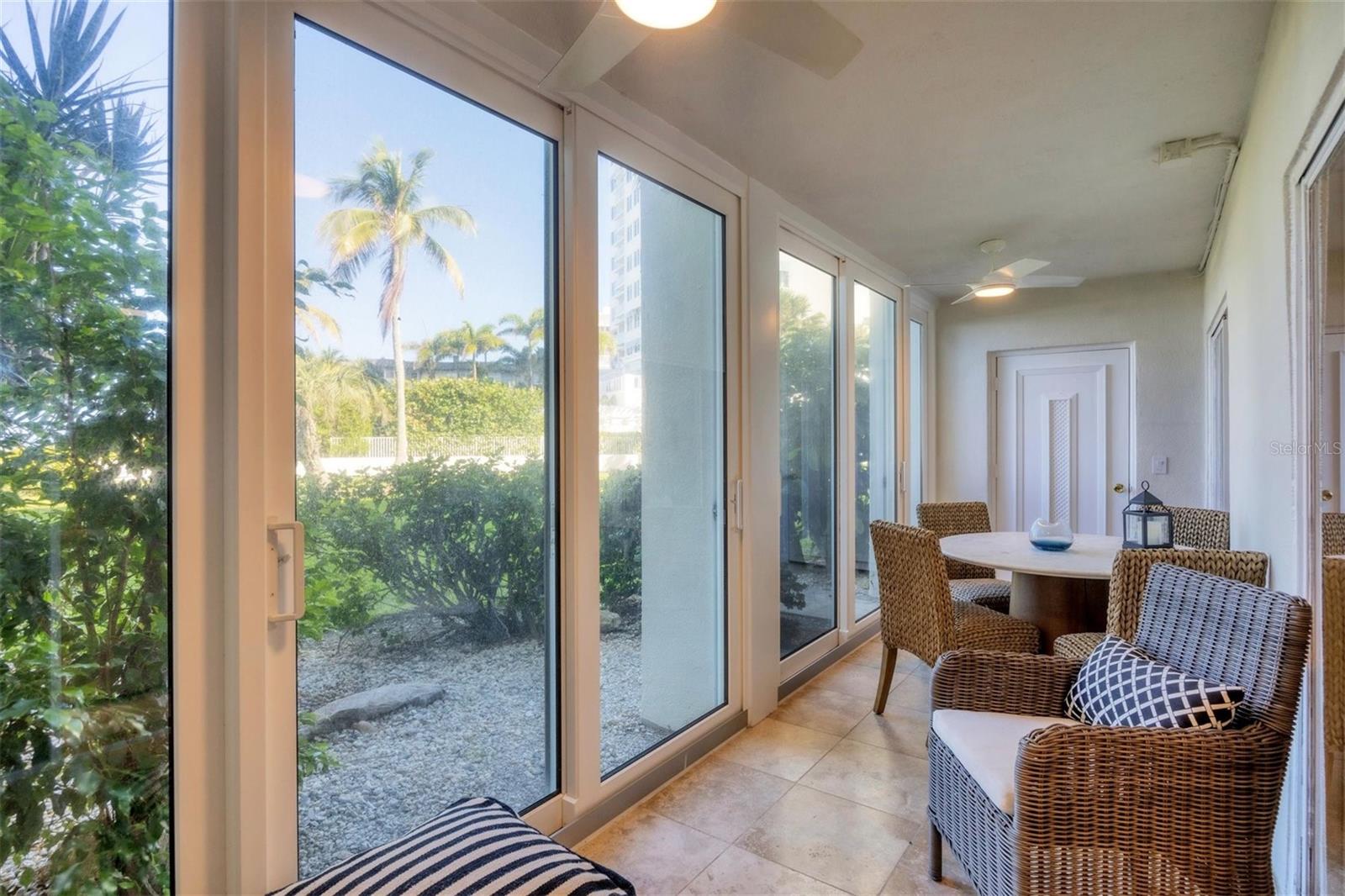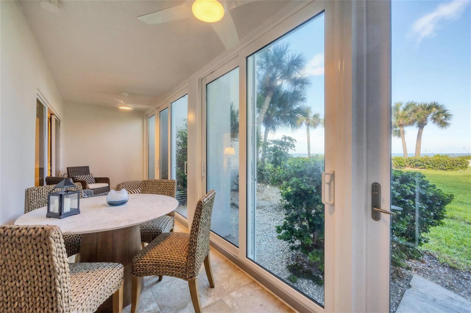 A unique opportunity to own a slice of Heaven. A first floor walkout with beach, sunset and garden views. Enjoy the white sandy beach, aquamarine water, and glorious sunrise and sunsets from this beach location. Over 1150 square feet of living space in this one bedroom plus den, two bath condo. Updates include the kitchen and baths, flooring in main living areas, impact sliders and doors on oversized glass enclosed lanai, custom built-ins, personal laundry unit and fresh paint throughout. This highly sought after great room floor plan allows this to live larger than one would think. The unit is being offered furnished. It has covered parking, a storage unit on the second floor in the building and a large lanai storage closet. Lido Harbour South is the last condominium located on Lido but one of the first built...thus creating this very special location. The Bay Runner trolley is steps away with access to Downtown Sarasota as well as St Armand's Circle. Ted Sperling Park is right out the entrance of this gated boutique condo. Enjoy kayaking or paddle boarding through the mangrove tunnels, a stroll through the nature park, stop at the Pass to see the Dolphins play, the Manatees graze and an occasional Sea Turtle nest. This place represents the saying... if you are Lucky enough to be here....You are Lucky enough. Don't miss the opportunity to own a piece of paradise. Association amenities include a clubhouse, a heated swimming pool and beach deck with direct access to the Lido Beach.