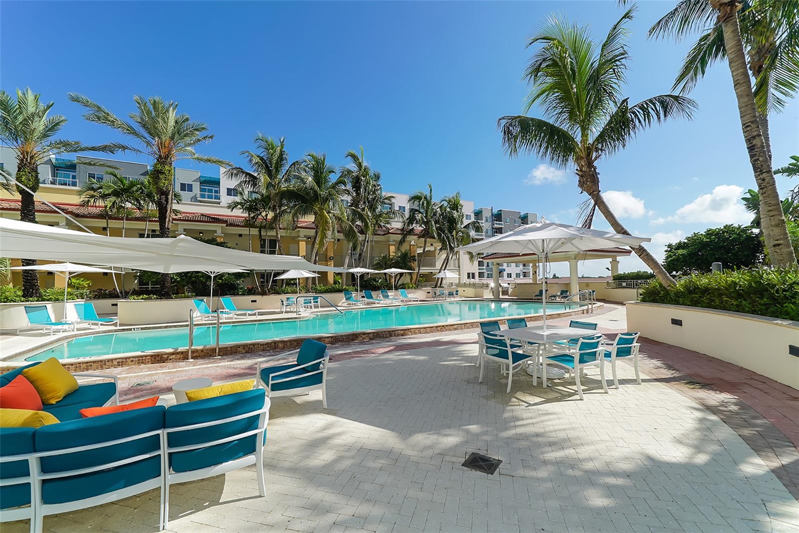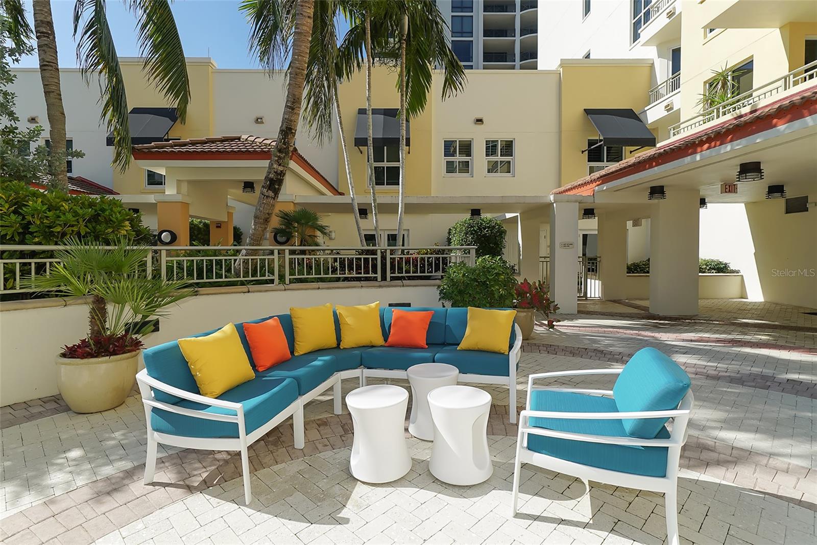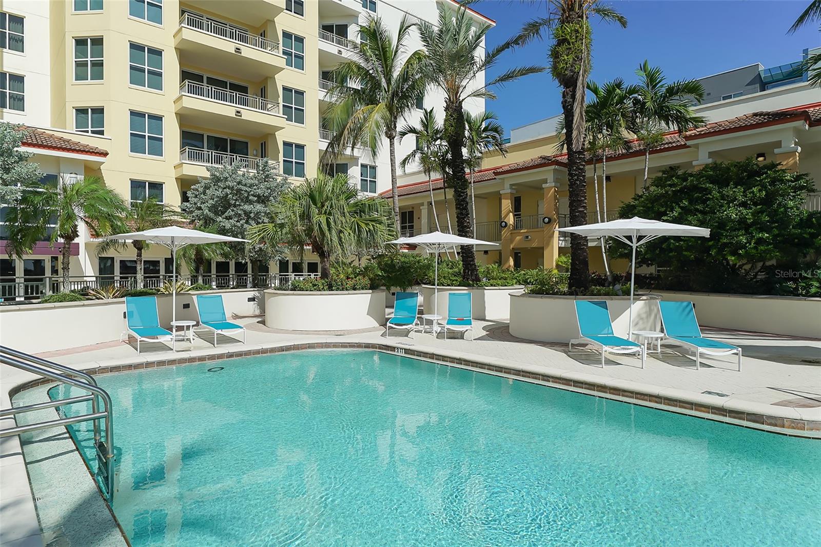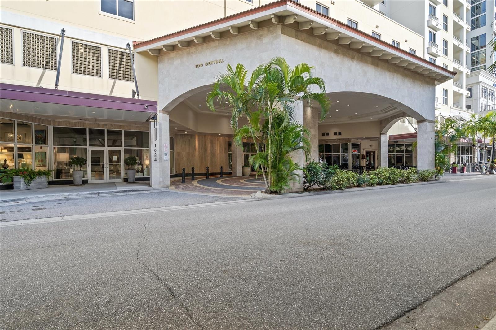 One or more photo(s) has been virtually staged. New Price Improvement! One Hundred Central is one of the most sought-after buildings in downtown Sarasota, a quick walk to the Opera, Theaters, shops, restaurants and the Bayfront three blocks away. The walkability factor for this building is off the charts. The complex has been beautifully redecorated with new paint, carpet and artwork and boasts secure, 24-hour concierge service. This exquisite two-bedroom, two-bath condominium includes two deeded garage parking spaces, a dedicated air-conditioned storage unit and access to private bike storage. From the terrace, there is a peek-a-boo view of Sarasota Bay on the north side and a view of the large swimming pool and garden from the condominium's south entrance on the other. The great room is for living and dining and has crown moldings, 9'4” tall ceilings, a custom-built entertainment center (in 2021, $14,000) and beautiful tile floors throughout the unit. Large sliding glass doors open to the 10-by-12-foot covered terrace that provides ample room for you and your guests to enjoy a relaxing evening on. The kitchen has granite countertops, wood cabinets and newer appliances. The en-suite master bedroom and bath opens to the terrace and have a generous walk-in and a linen closet. Next to the separated second bedroom that includes a custom-built murphy bed (in 2021, $15,000) that doubles as a desk/office space, there is a second bath with shower across from the laundry closet featuring a newly replaced full-size washer and dryer (in 2022, $5,000). The HVAC closet dedicated to the unit has a recently replaced and upgraded AC unit (in 2022, $7,000). And most recently a new quality water heater was installed at a price of $2,000. Near the heated lap pool, there is a large hot tub, new outdoor furniture, two gas grills, a guest suite, an art room, a media room and a modern gym. The fireplace community meeting room has a kitchen and bar that can be reserved for private owner events. Four elevators lead you to Whole Foods or Starbucks that are just steps away. The building is pet-friendly and well-maintained. If you’re looking for your piece of paradise on the Gulf Coast, it doesn’t get any better than this beautiful condo! One Hundred Central offers all the fun and amenities of a world-class resort in addition to a maintenance-free lifestyle.