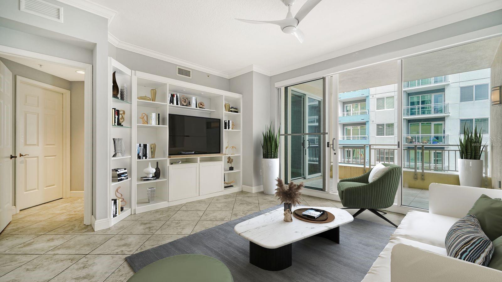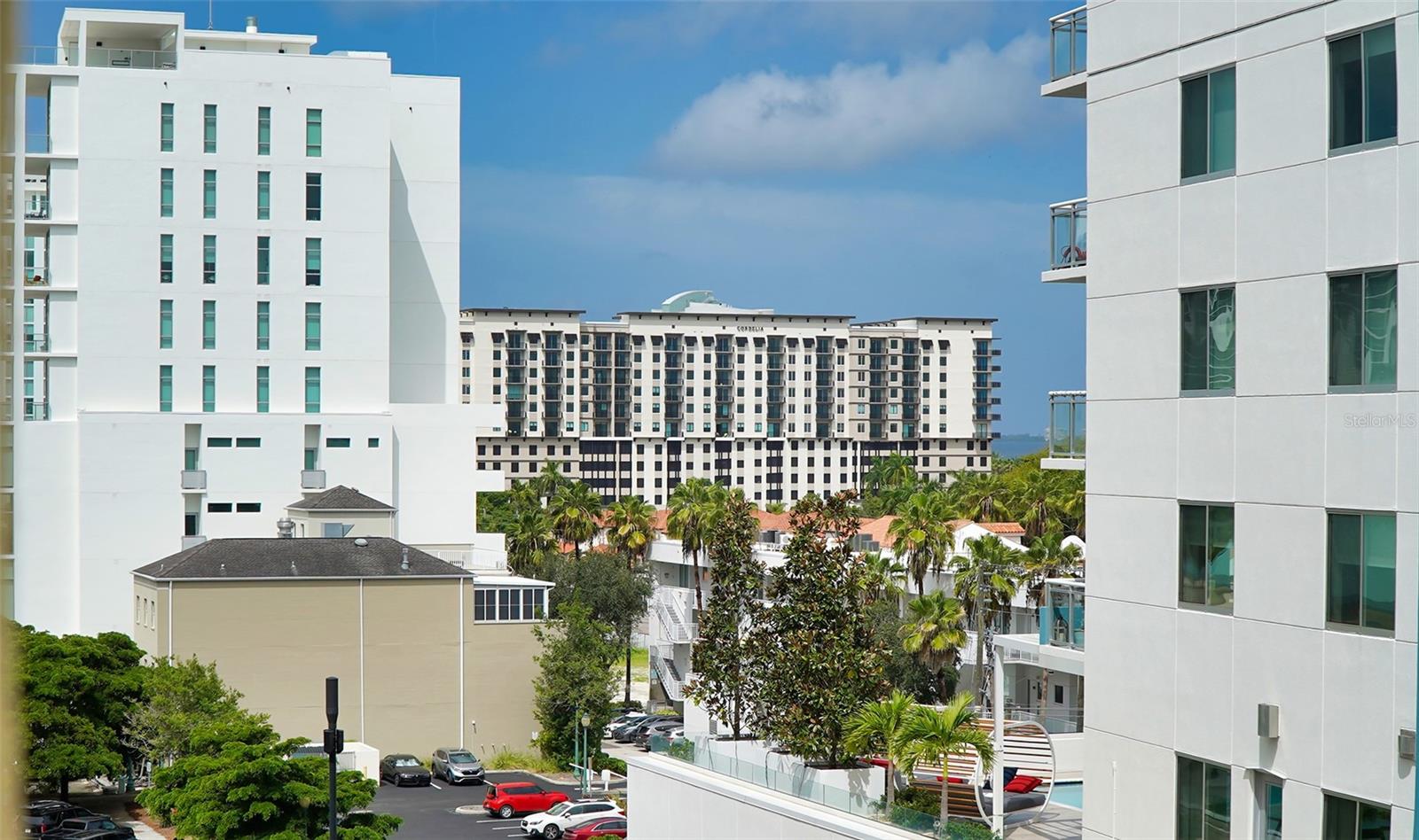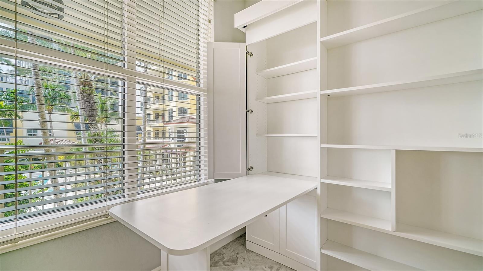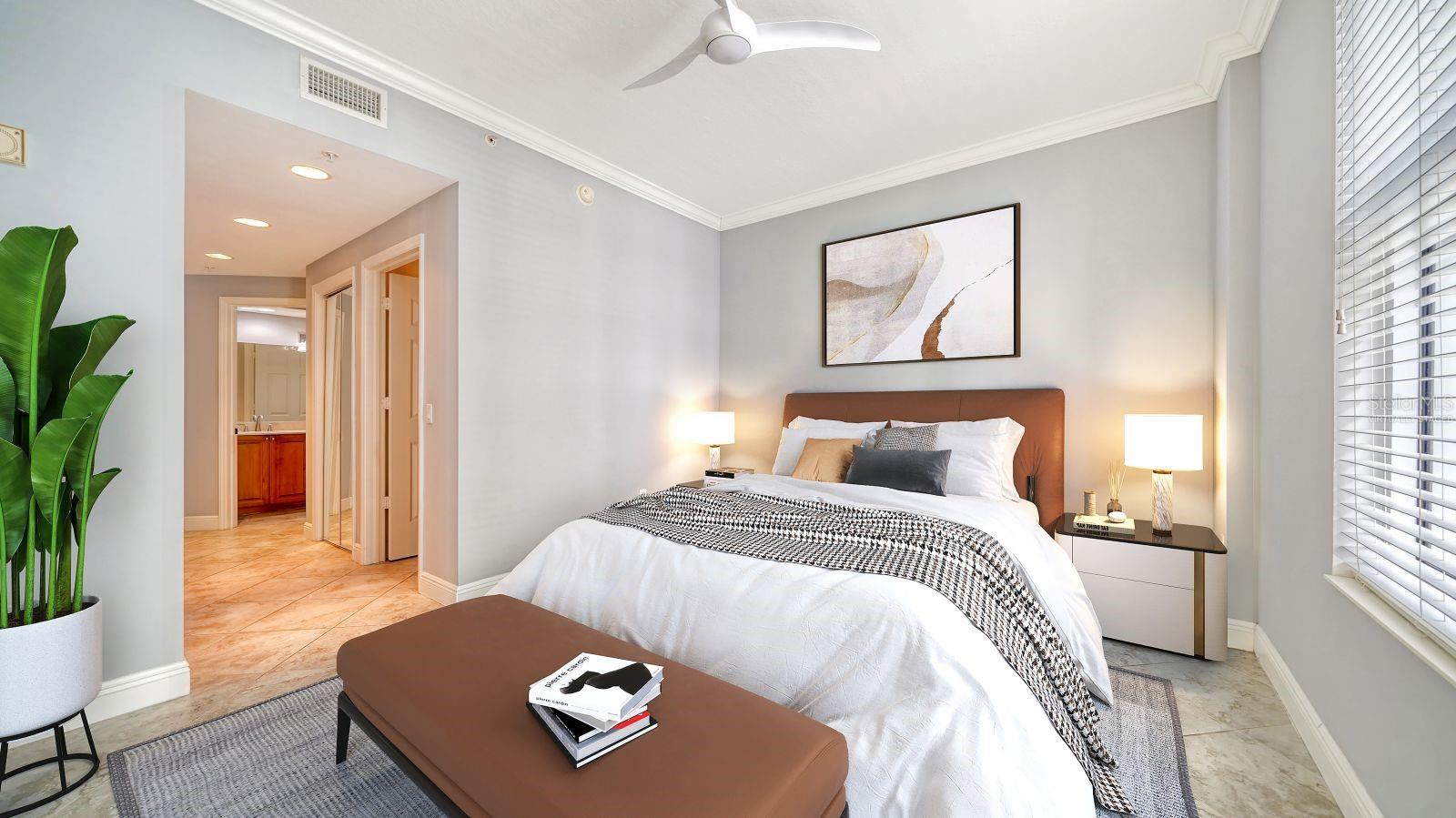 One or more photo(s) has been virtually staged. New Price Improvement! One Hundred Central is one of the most sought-after buildings in downtown Sarasota, a quick walk to the Opera, Theaters, shops, restaurants and the Bayfront three blocks away. The walkability factor for this building is off the charts. The complex has been beautifully redecorated with new paint, carpet and artwork and boasts secure, 24-hour concierge service. This exquisite two-bedroom, two-bath condominium includes two deeded garage parking spaces, a dedicated air-conditioned storage unit and access to private bike storage. From the terrace, there is a peek-a-boo view of Sarasota Bay on the north side and a view of the large swimming pool and garden from the condominium's south entrance on the other. The great room is for living and dining and has crown moldings, 9'4” tall ceilings, a custom-built entertainment center (in 2021, $14,000) and beautiful tile floors throughout the unit. Large sliding glass doors open to the 10-by-12-foot covered terrace that provides ample room for you and your guests to enjoy a relaxing evening on. The kitchen has granite countertops, wood cabinets and newer appliances. The en-suite master bedroom and bath opens to the terrace and have a generous walk-in and a linen closet. Next to the separated second bedroom that includes a custom-built murphy bed (in 2021, $15,000) that doubles as a desk/office space, there is a second bath with shower across from the laundry closet featuring a newly replaced full-size washer and dryer (in 2022, $5,000). The HVAC closet dedicated to the unit has a recently replaced and upgraded AC unit (in 2022, $7,000). And most recently a new quality water heater was installed at a price of $2,000. Near the heated lap pool, there is a large hot tub, new outdoor furniture, two gas grills, a guest suite, an art room, a media room and a modern gym. The fireplace community meeting room has a kitchen and bar that can be reserved for private owner events. Four elevators lead you to Whole Foods or Starbucks that are just steps away. The building is pet-friendly and well-maintained. If you’re looking for your piece of paradise on the Gulf Coast, it doesn’t get any better than this beautiful condo! One Hundred Central offers all the fun and amenities of a world-class resort in addition to a maintenance-free lifestyle.