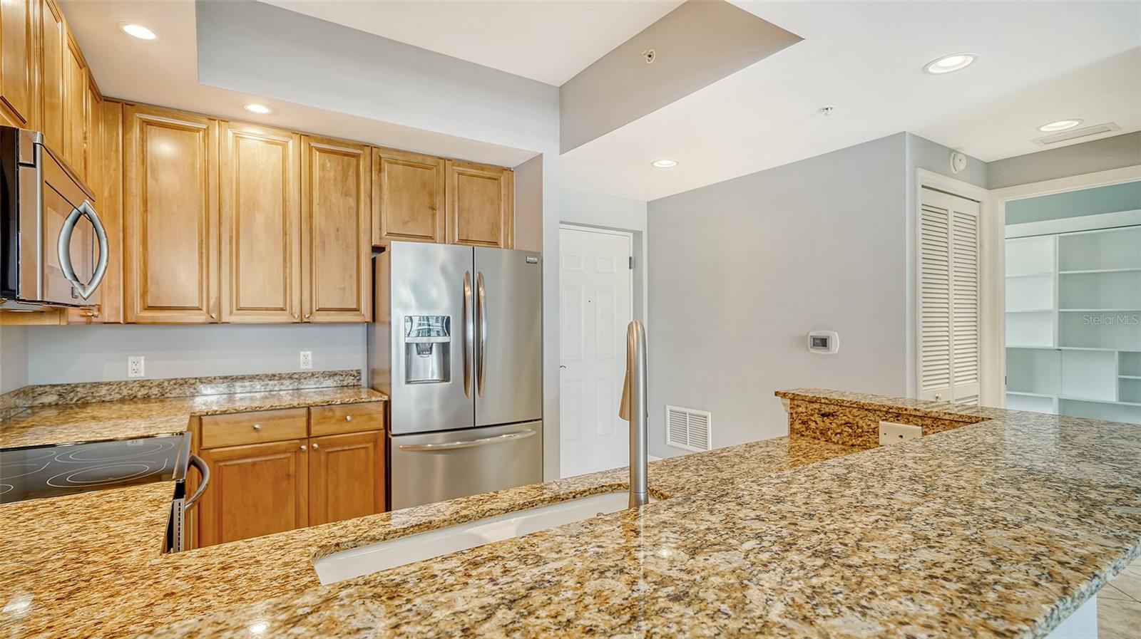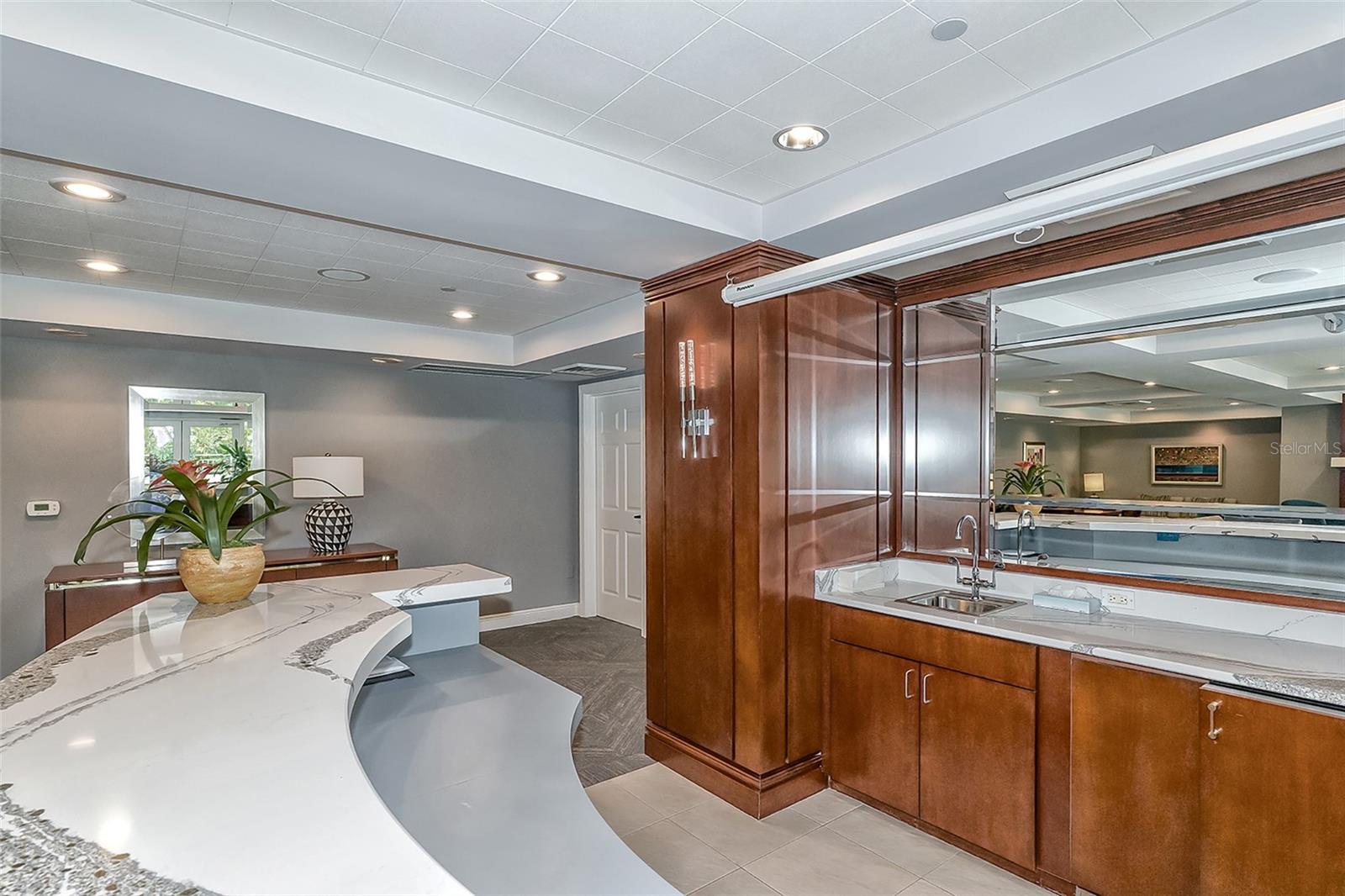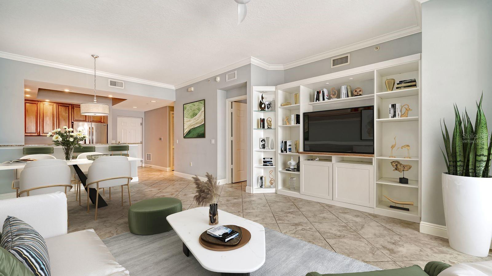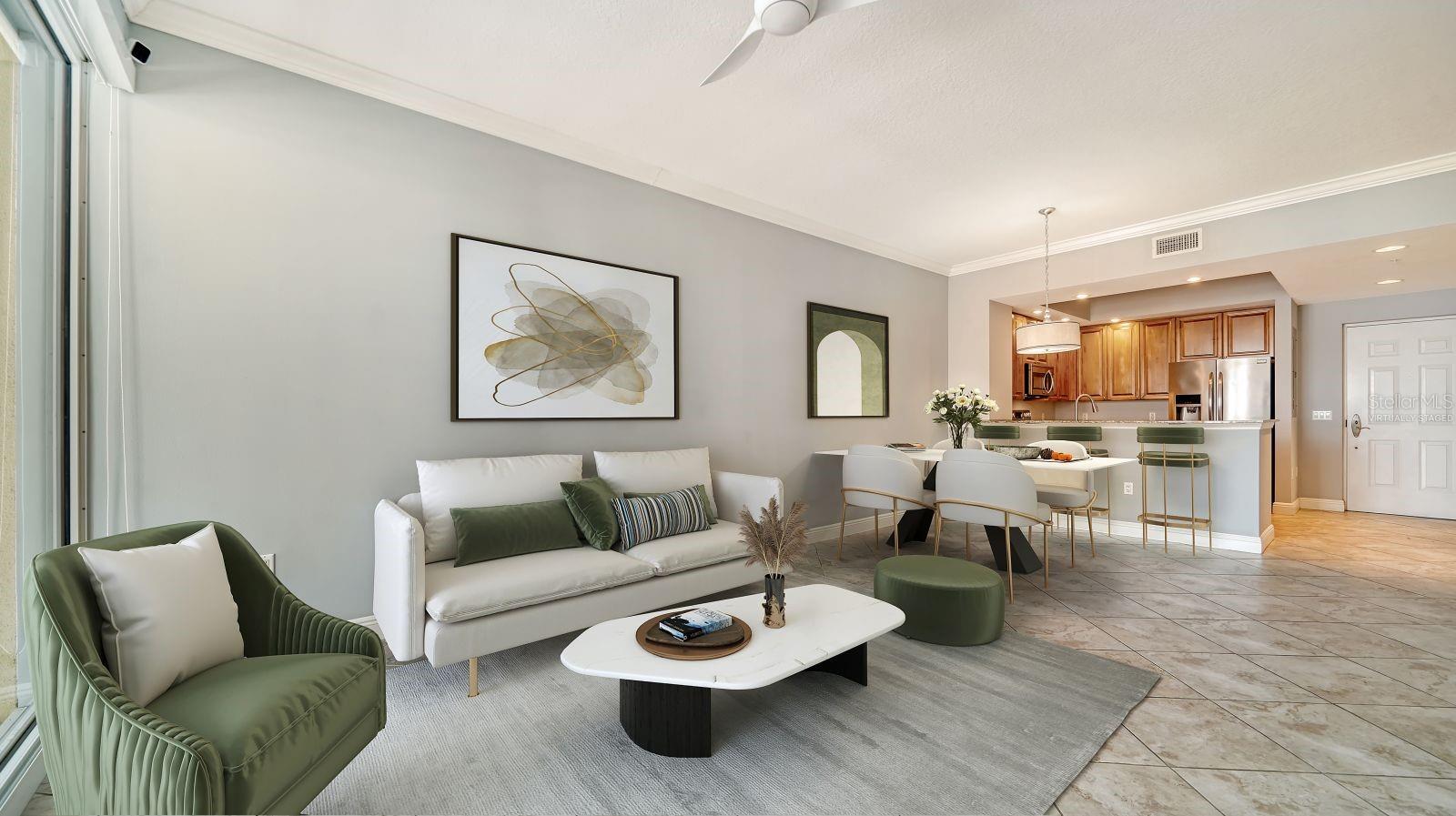 One or more photo(s) has been virtually staged. New Price Improvement! One Hundred Central is one of the most sought-after buildings in downtown Sarasota, a quick walk to the Opera, Theaters, shops, restaurants and the Bayfront three blocks away. The walkability factor for this building is off the charts. The complex has been beautifully redecorated with new paint, carpet and artwork and boasts secure, 24-hour concierge service. This exquisite two-bedroom, two-bath condominium includes two deeded garage parking spaces, a dedicated air-conditioned storage unit and access to private bike storage. From the terrace, there is a peek-a-boo view of Sarasota Bay on the north side and a view of the large swimming pool and garden from the condominium's south entrance on the other. The great room is for living and dining and has crown moldings, 9'4” tall ceilings, a custom-built entertainment center (in 2021, $14,000) and beautiful tile floors throughout the unit. Large sliding glass doors open to the 10-by-12-foot covered terrace that provides ample room for you and your guests to enjoy a relaxing evening on. The kitchen has granite countertops, wood cabinets and newer appliances. The en-suite master bedroom and bath opens to the terrace and have a generous walk-in and a linen closet. Next to the separated second bedroom that includes a custom-built murphy bed (in 2021, $15,000) that doubles as a desk/office space, there is a second bath with shower across from the laundry closet featuring a newly replaced full-size washer and dryer (in 2022, $5,000). The HVAC closet dedicated to the unit has a recently replaced and upgraded AC unit (in 2022, $7,000). And most recently a new quality water heater was installed at a price of $2,000. Near the heated lap pool, there is a large hot tub, new outdoor furniture, two gas grills, a guest suite, an art room, a media room and a modern gym. The fireplace community meeting room has a kitchen and bar that can be reserved for private owner events. Four elevators lead you to Whole Foods or Starbucks that are just steps away. The building is pet-friendly and well-maintained. If you’re looking for your piece of paradise on the Gulf Coast, it doesn’t get any better than this beautiful condo! One Hundred Central offers all the fun and amenities of a world-class resort in addition to a maintenance-free lifestyle.