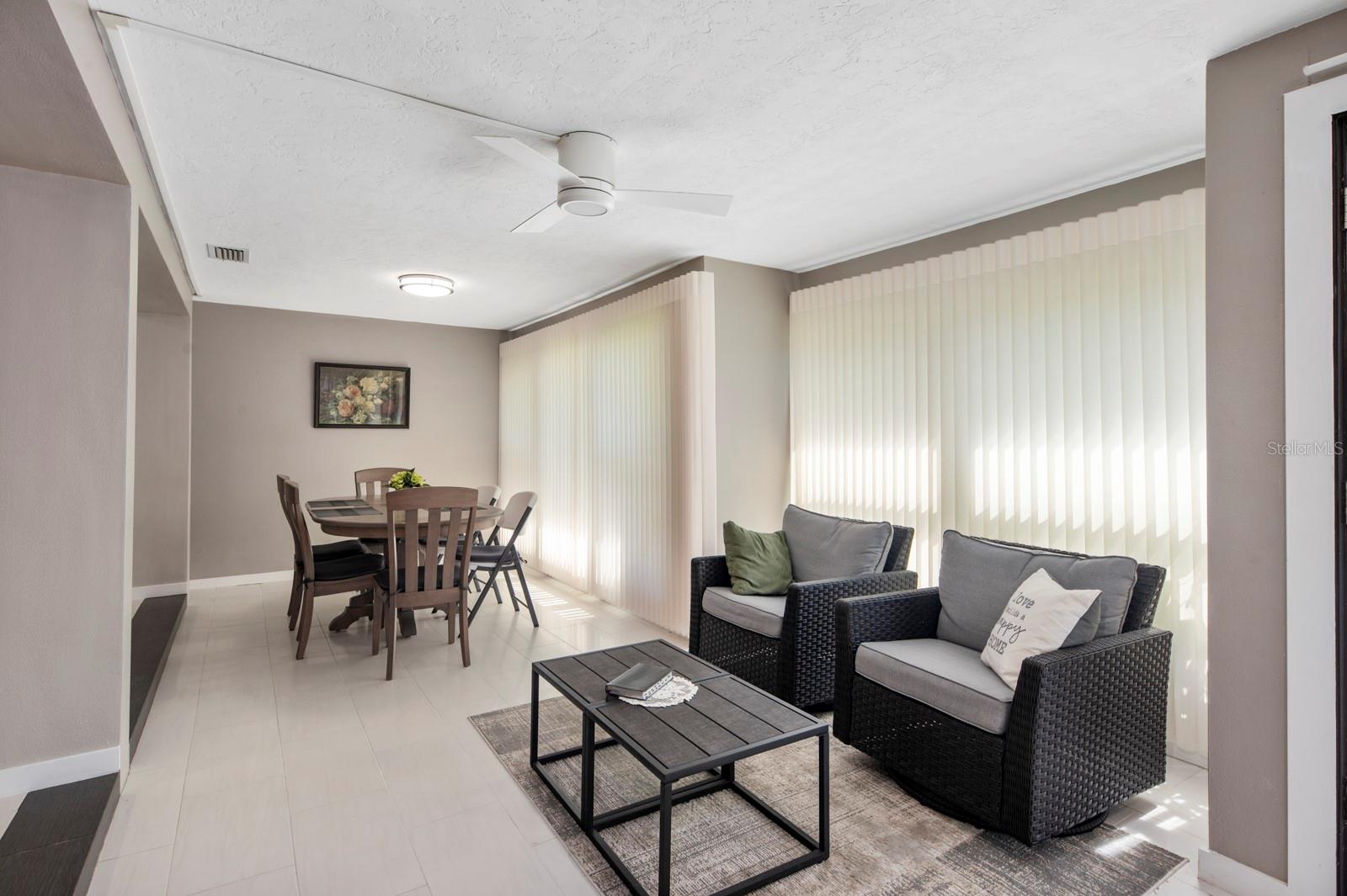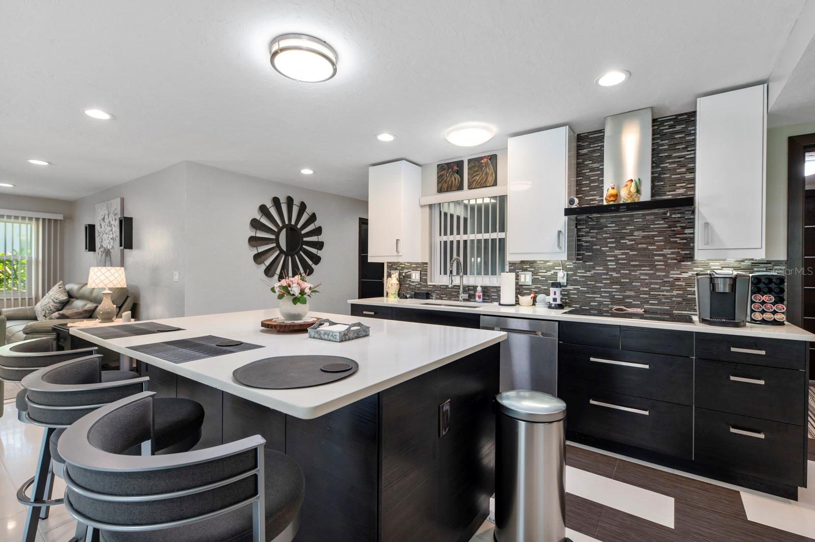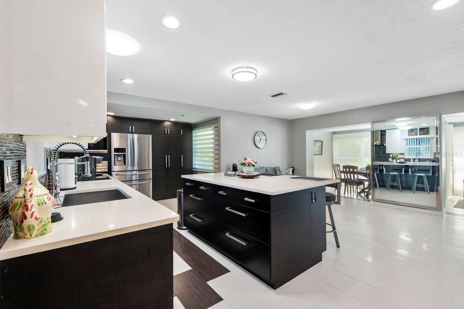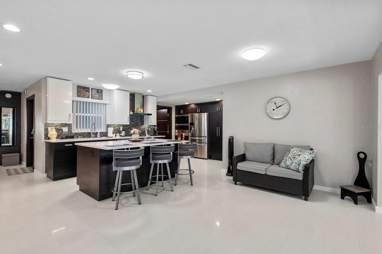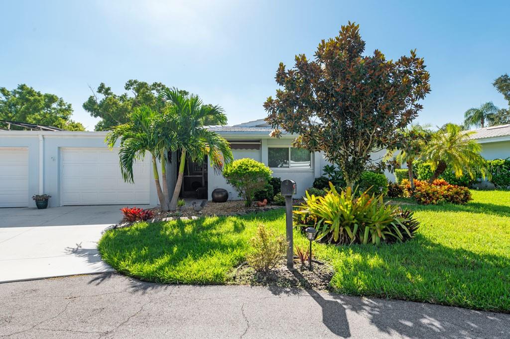 Maintenance Free 55+ Living in Sarasota can be found at Village Green. Villa living at its best! This home has been completely remolded to create an open living experience. The owner’s suite bathroom has been enlarged, to create an oversized custom shower and dual sinks. Custom designed cabinetry is found throughout the home. Clean cabinetry lines and colors used to decorate facilitates a fresh and bright living experience. Plenty of Florida sunshine throughout this home. Only the best materials and appliances were used in this remodel: Wolfe appliances, new quartz countertops, designer porcelain tile throughout, impact windows, LED lights, and Hunter Douglas Blinds. The A/C was replaced in 2022, water heater 2020 and a new roof, plus gutters in 2017. Privacy is paramount within this home. You have the view of the community pool…but not right on top of the pool area. In 1972 the construction of these units was superior and sound. No noise is heard inside your unit from villa neighbor. These units have withstood many hurricanes and storms. Built to last! The Villa is tucked away among the serene beautiful tropical foliage and located at the end of a private road on a cul-de-sac. Close by are several Sarasota famous restaurants. The discerning buyer will fall in love with this home.