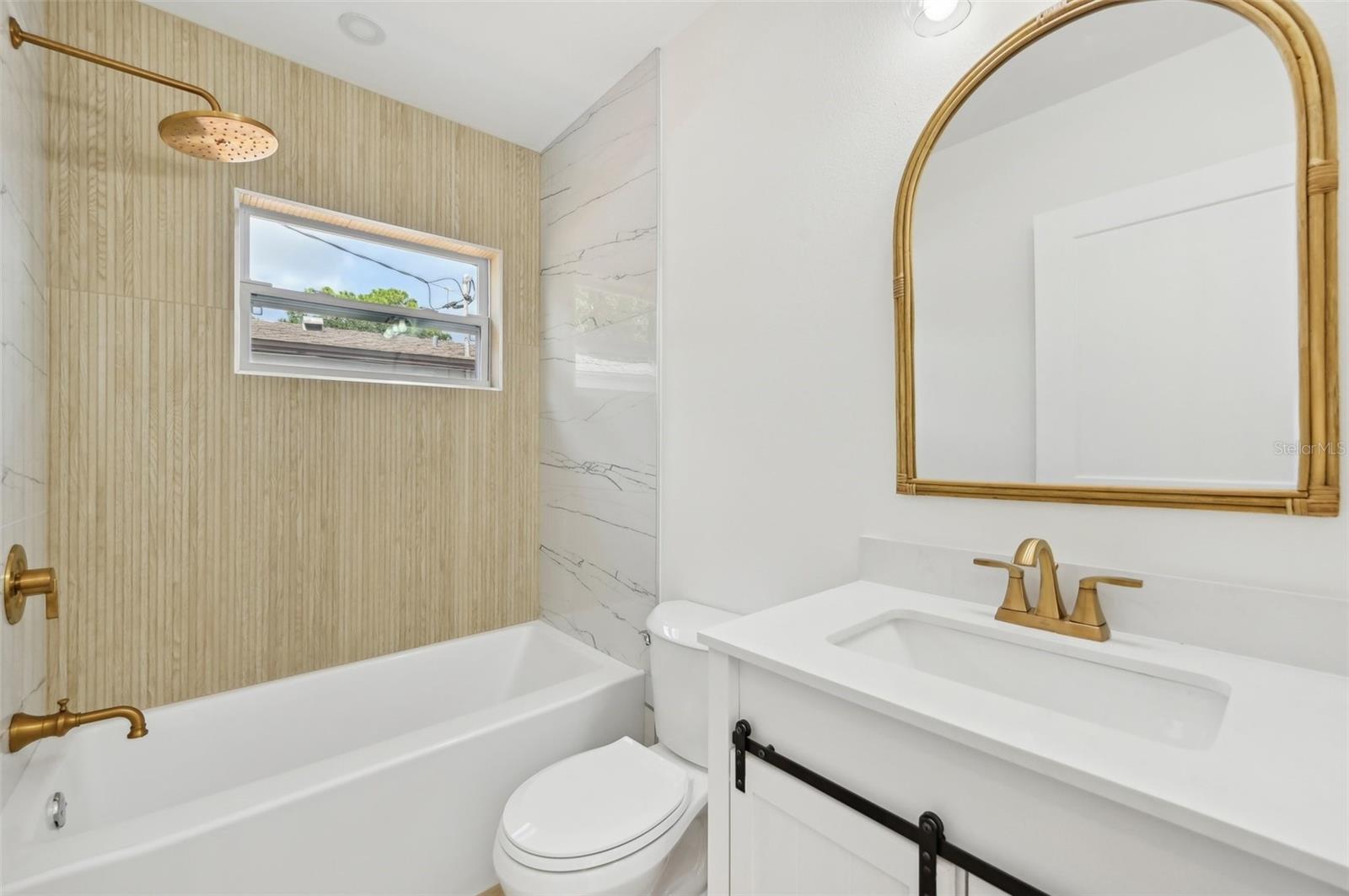 Nestled in the heart of the vibrant Gillespie Park neighborhood, this beautifully restored Florida-style home offers the perfect blend of historic charm and modern convenience. With its picturesque front porch, the property invites you to enjoy the serene surroundings while being just minutes from downtown Sarasota. This welcoming residence boasts a beautifully updated living space in a prime location. Step inside to discover an open-concept layout with abundant natural light, highlighting the beautiful porcelain tile floors and high ceilings. The spacious living room flows seamlessly into the dining area and gourmet kitchen, complete with Samsung stainless steel appliances, custom cabinetry, quartz countertops, and a versatile eat-in island that combines a traditional kitchen island with a dining area. The primary suite offers a tranquil retreat with walk-in closet and a luxurious en-suite bathroom featuring walk-in glass-enclosed shower and dual sink vanity with Moen fixtures. Two additional bedrooms provide ample space for family or guests, each with generous closet space. Both the primary and secondary bathrooms have been elegantly updated with new Moen fixtures, designer tiles, and plenty of storage space with the second bathroom also having a bathtub. A laundry closet is positioned in the hallway designed to maximize space and efficiency. Enjoy the sunrise from the beautiful lanai located in the front on the house. Relax in your own private yard with fresh landscaping, an area for your pets, and garden. The new circular paver driveway includes space for two or more cars offering convenience and functionality. This home was fully remodeled in 2024 and features new impact windows and doors, a metal roof, spray foam insulation, updated plumbing and electrical, paint, flooring, and a high-efficiency HVAC system to reduce energy costs and increase comfort year-round. On the investment side, short term rentals such as VRBO and AIRBNB perfect for the area as well. With many thriving short term rentals nearby this one is sure to stick out with it's fresh remodel and proximity to local attractions. Located in the vibrant Gillespie Park neighborhood, known for its walkable streets, dog-friendly parks, and a strong sense of community. Just a short stroll from local parks, trendy cafes, and boutique shops. Enjoy the best of Sarasota living with nearby cultural attractions, pristine beaches, and top-rated schools.