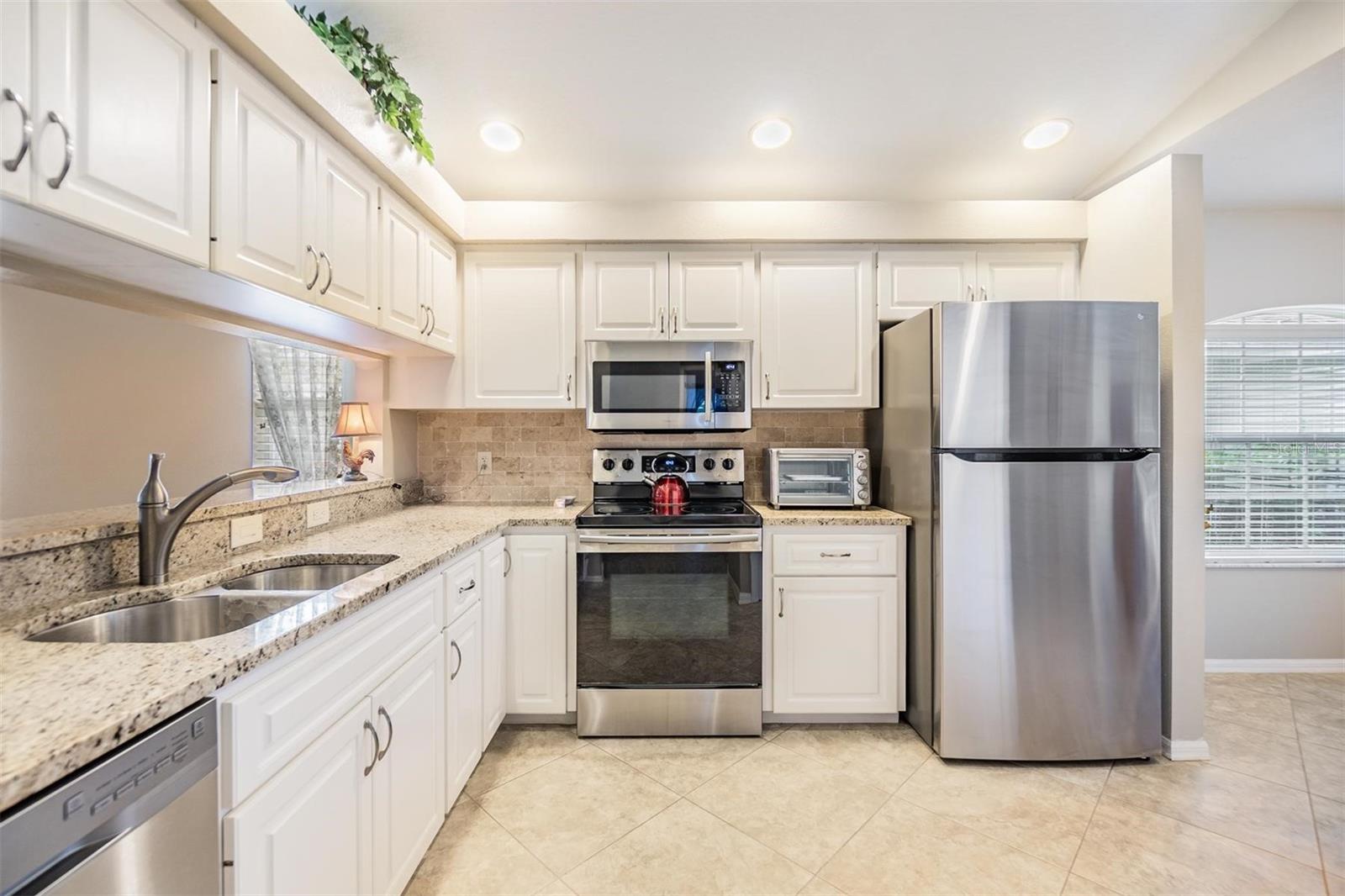 This remarkable home has proven its resilience by standing strong through the recent hurricanes, highlighting its outstanding construction and safety features! Location, Location, Location! Ashley Oaks is a boutique community centrally located close to Siesta Key beach, shopping, restaurants, downtown, and entertainment. Discover this beautiful 2-bedroom, 2-bath home with a generous office/den featuring custom built-ins that could easily be turned into a third bedroom. The split floor plan offers ten-foot ceilings, a spacious great room with a pass-through from the bright, updated kitchen adorned with granite countertops and plenty of cabinets. Enjoy your mornings in the charming dinette area flooded with natural light. Nestled on a quiet, canopied street in an enclave of just 26 homes, this residence is located in an A-rated school district and offers maintenance-free living along with a heated community pool just steps away. With mature landscaping and a 2-car garage, this home is a special place to call your own.