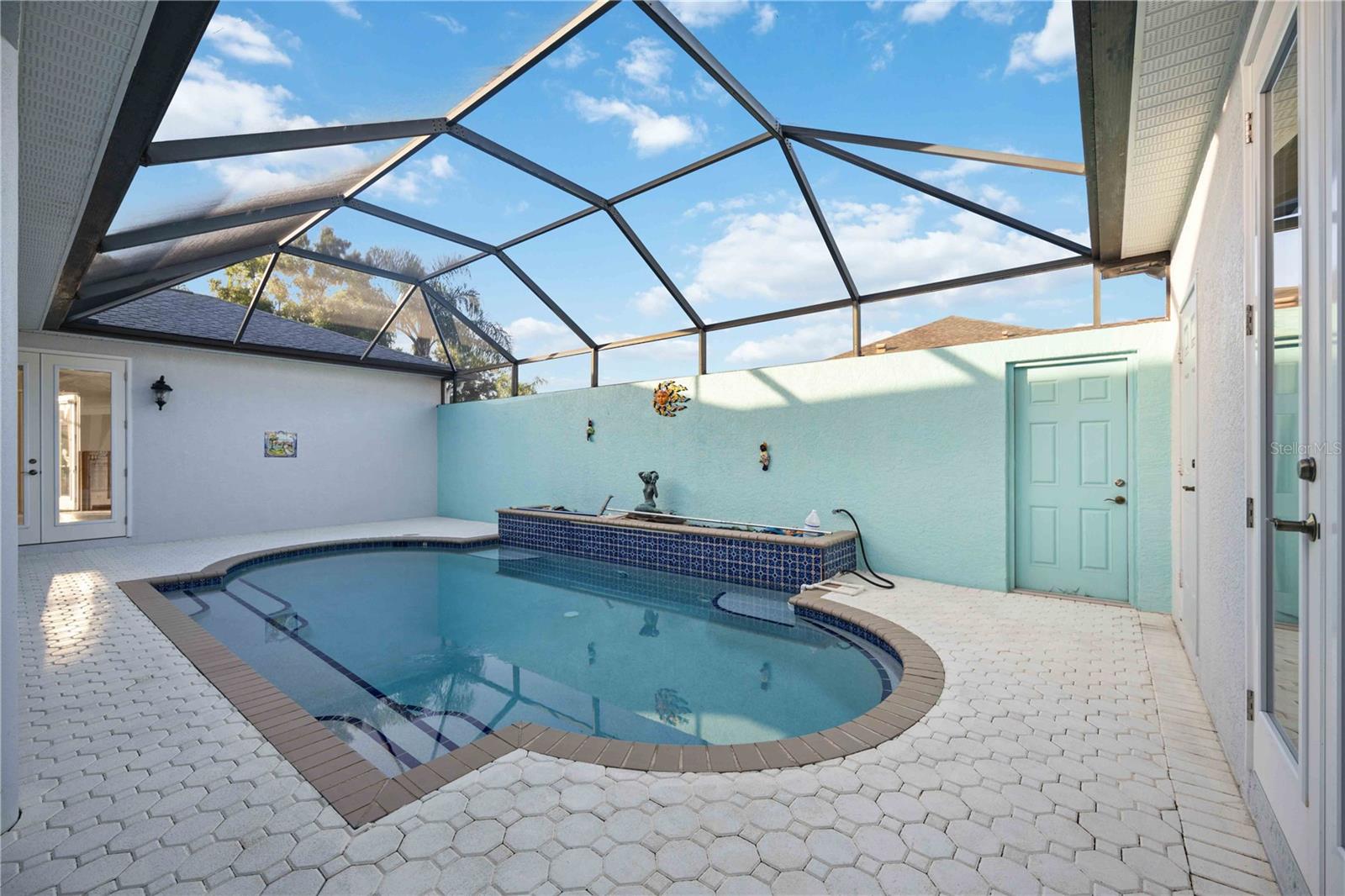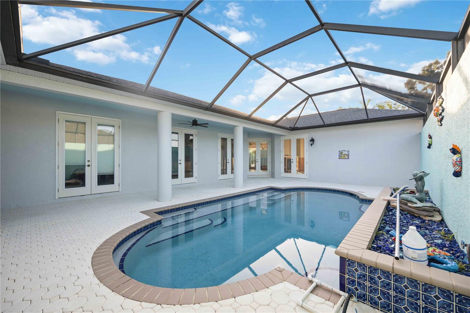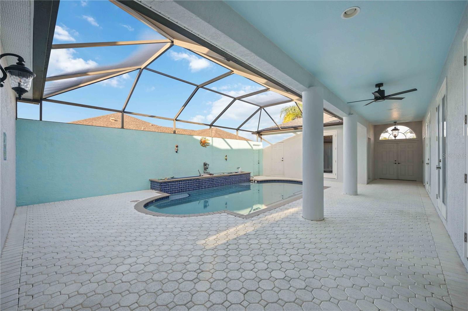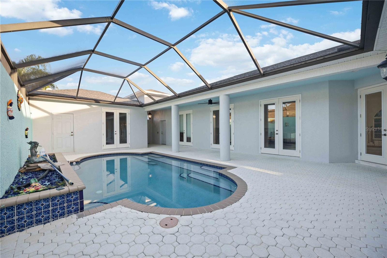 One or more photo(s) has been virtually staged. Desirable courtyard ranch with separate private in-law suite "casita" now available in Laurel Meadows. FLOOD POLICY HAS BEEN RENEWED AND PAID IN FULL, see attachments for policy documents. Minutes to Lakewood Ranch, I75, and golf/shopping. New 4-Ton Carrier AC in 2019. New shingle roof in 2020. New pool cage in 2019 surrounds courtyard pool and fountain. All new impact, full light french doors installed throughout the home and casita, in 2021. See attachments for full permit history. Open floor plan with bright natural light that floods each room. Courtyard is completely enclosed, offering utmost privacy upon entry and at poolside. Enjoy Florida's natural beauty right here in Laurel Meadows.