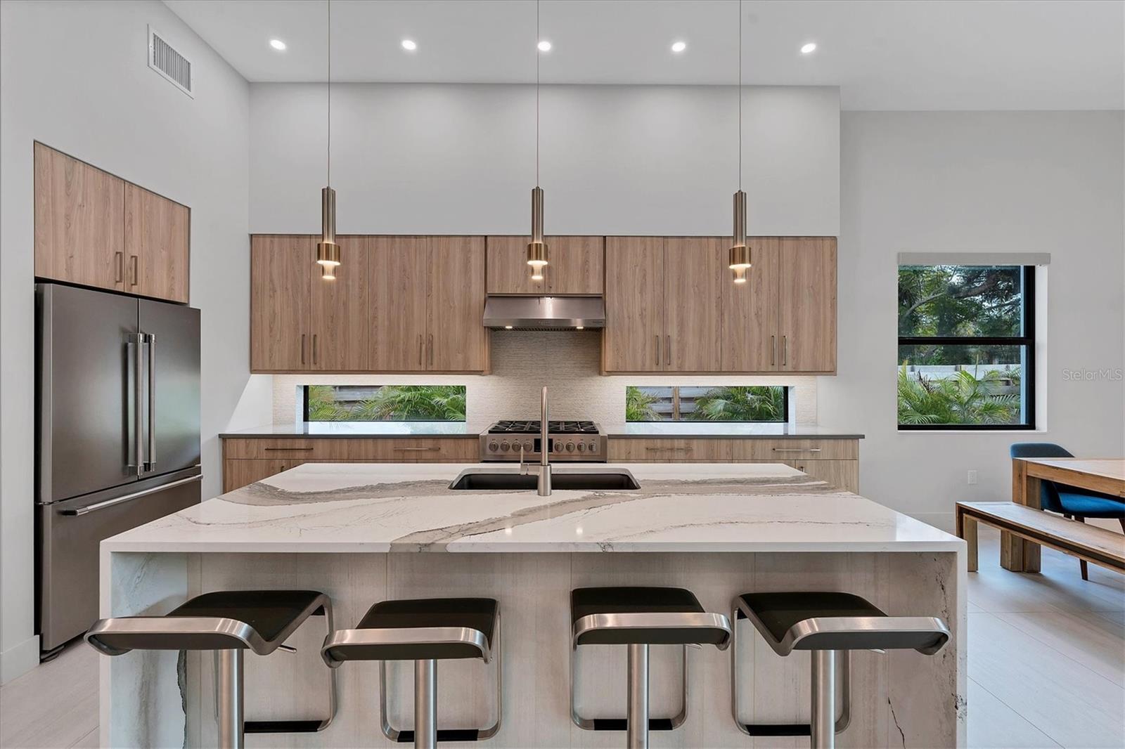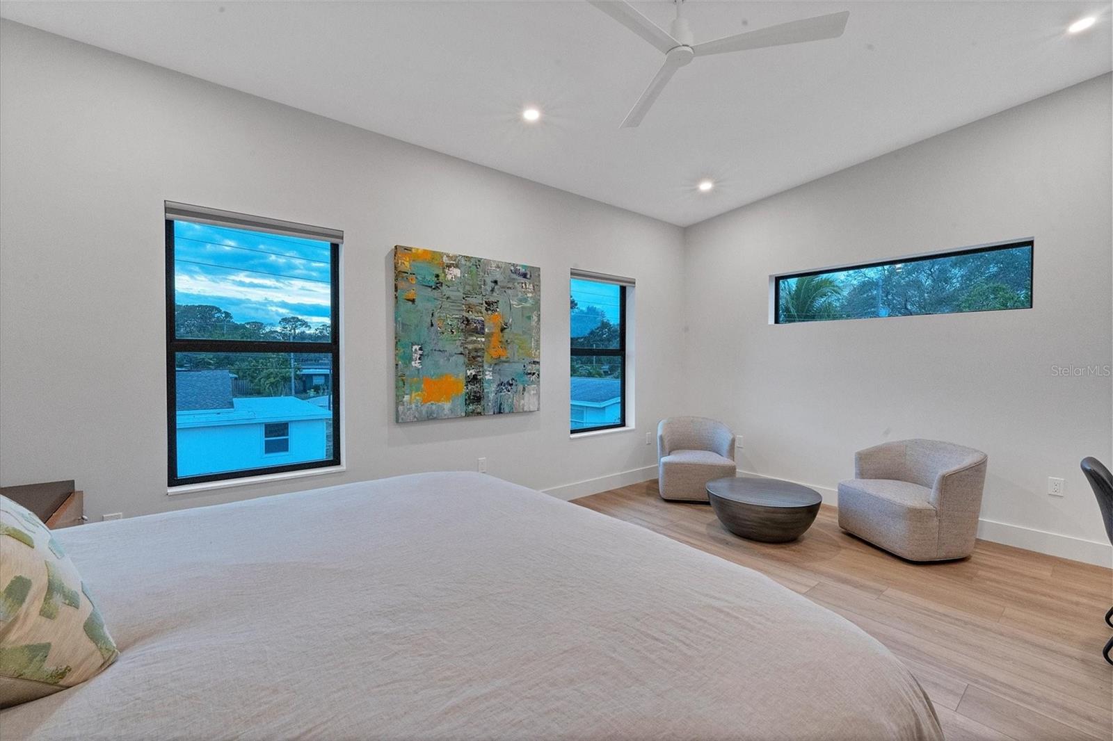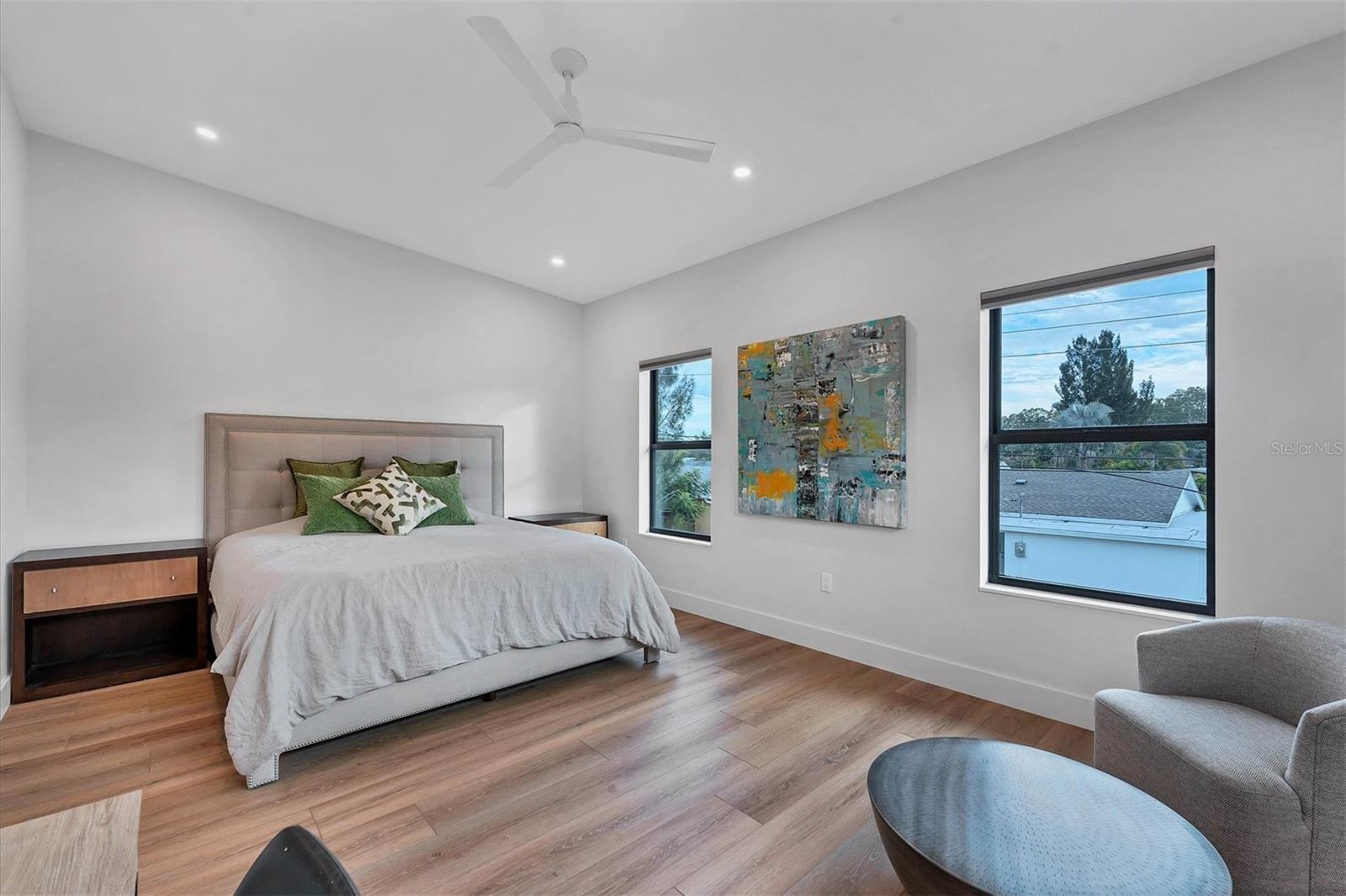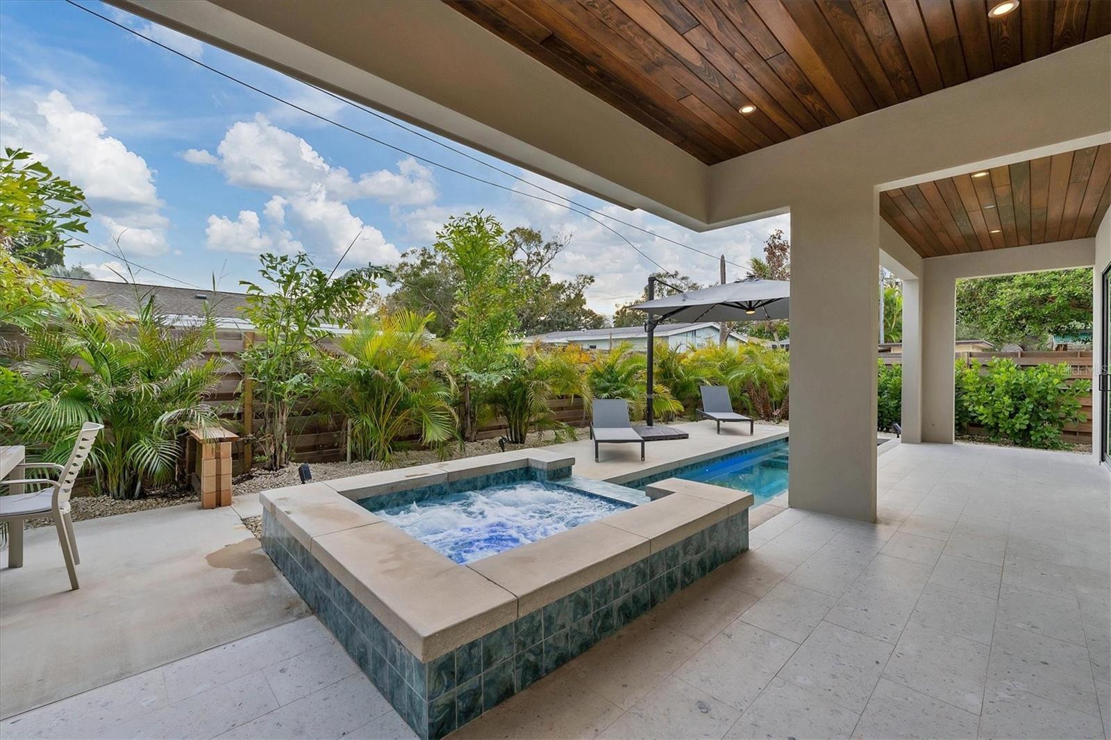 Welcome to your contemporary masterpiece in Sarasota's coveted Arlington Park! Crafted by renowned builder Russ Beckwith, this luxury home showcases modern living at its finest. Inside, an open-plan design seamlessly blends style and functionality, with volume ceilings and a faux fireplace exuding warmth and elegance. The indoor-outdoor flow ensures you enjoy ample covered space for year-round relaxation and entertainment. This isn't just a house, it's a lifestyle. With two bedrooms on the main level, an owner’s retreat, and a possible fourth bedroom upstairs, which is being used as a home gym and office, it offers versatile living. The kitchen boasts a three-centimeter Cambria Skara Brae quartz island, and top-tier appliances including a 36-inch six-burner Fulgor gas range. Italian 24-by-48-inch Cemento Cassero Bianco tiles grace the downstairs floors. As you arrive, a spacious driveway accommodates up to seven cars, making entertaining friends and family a breeze. Eco-conscious xeriscape landscaping reduces water usage, with every tree and shrub linked to an advanced irrigation system. Step into your private oasis with a horizontal shadow box Cypress fence for added privacy. The outdoor shower and pool bath complement the cocktail pool and sun decks, inviting you to bask in Florida's sunshine and luxury. Minutes from downtown Sarasota, Southside Village and Sarasota Memorial Hospital, this prime location offers unrivaled convenience. Siesta Key Beach, renowned for its white sands and crystal-clear waters, is just five miles away. Explore upscale shopping and dining at St. Armands Circle or unwind at Lido Beach, all within four miles. With its modern design, unbeatable location and thoughtful amenities, this home epitomizes the best of Sarasota living. Don't miss your chance to claim this contemporary masterpiece as your paradise.