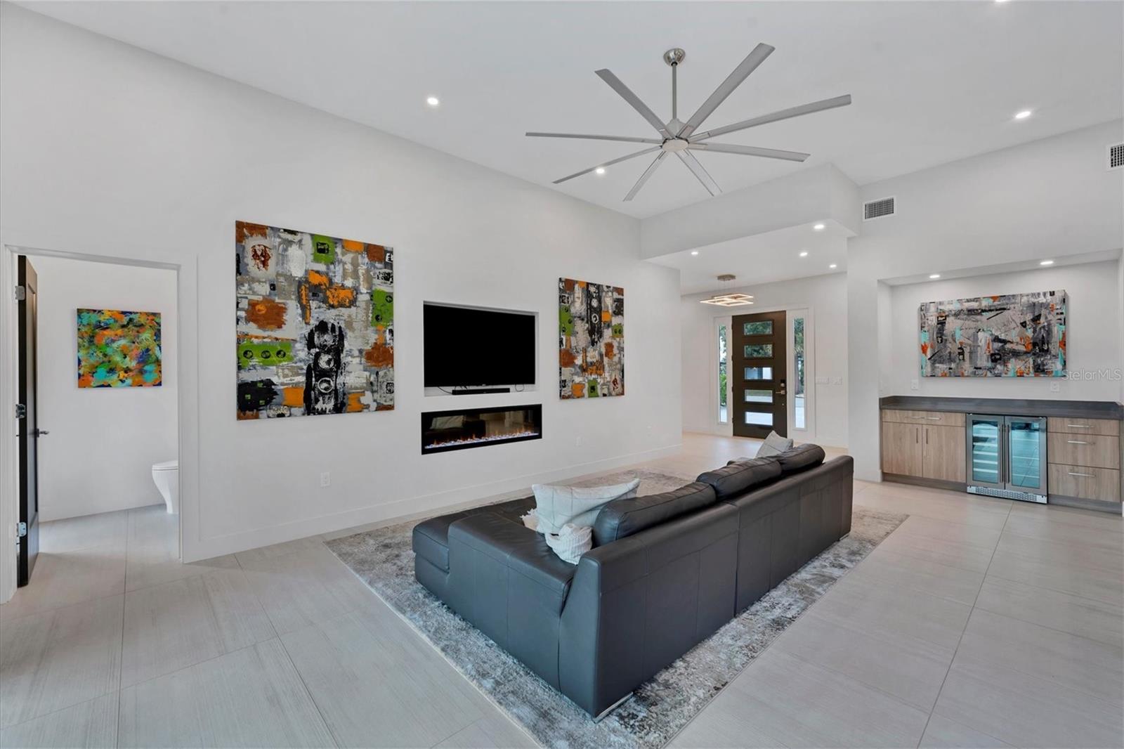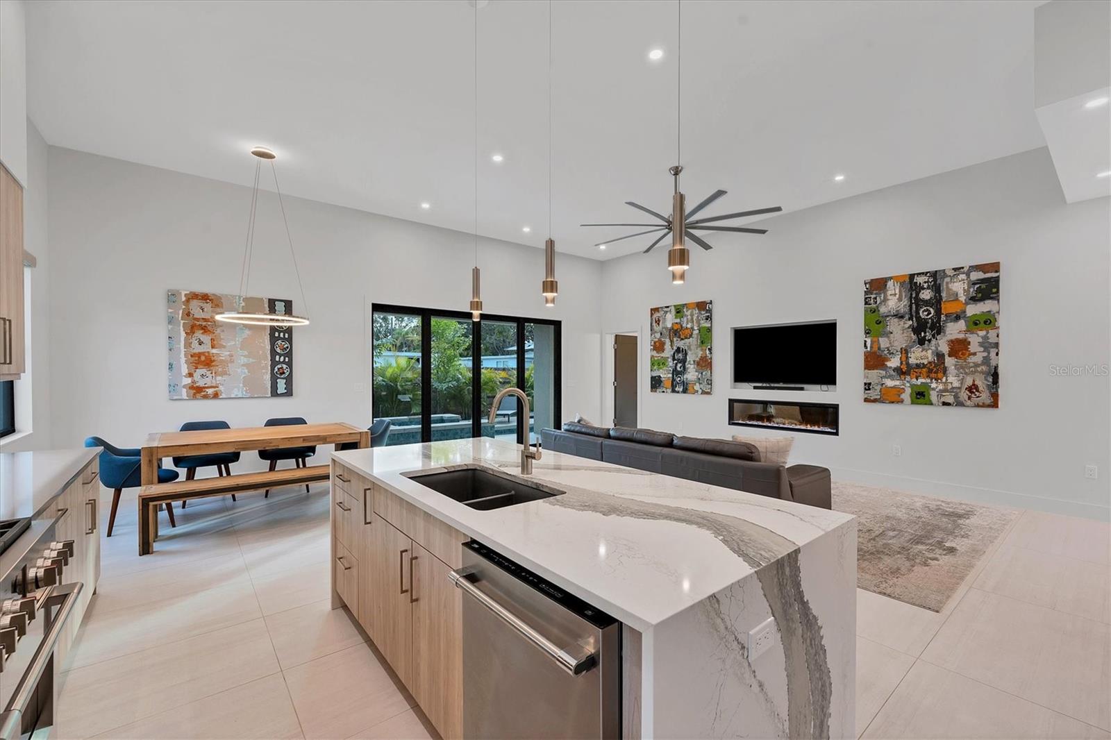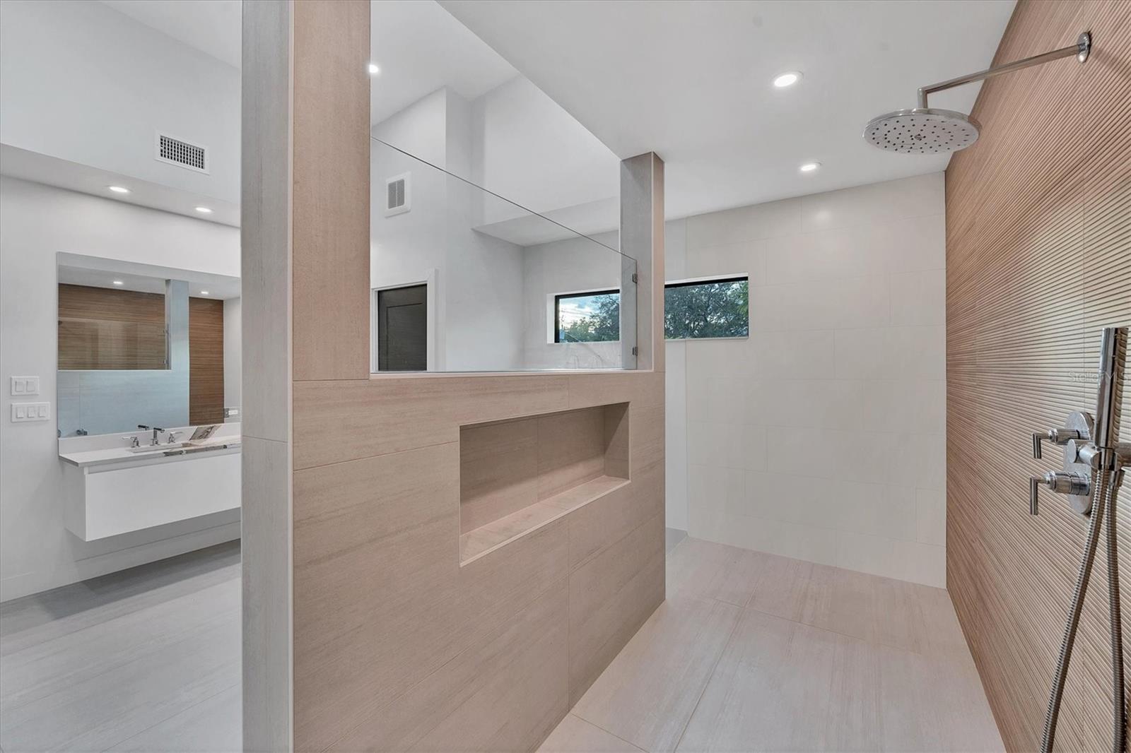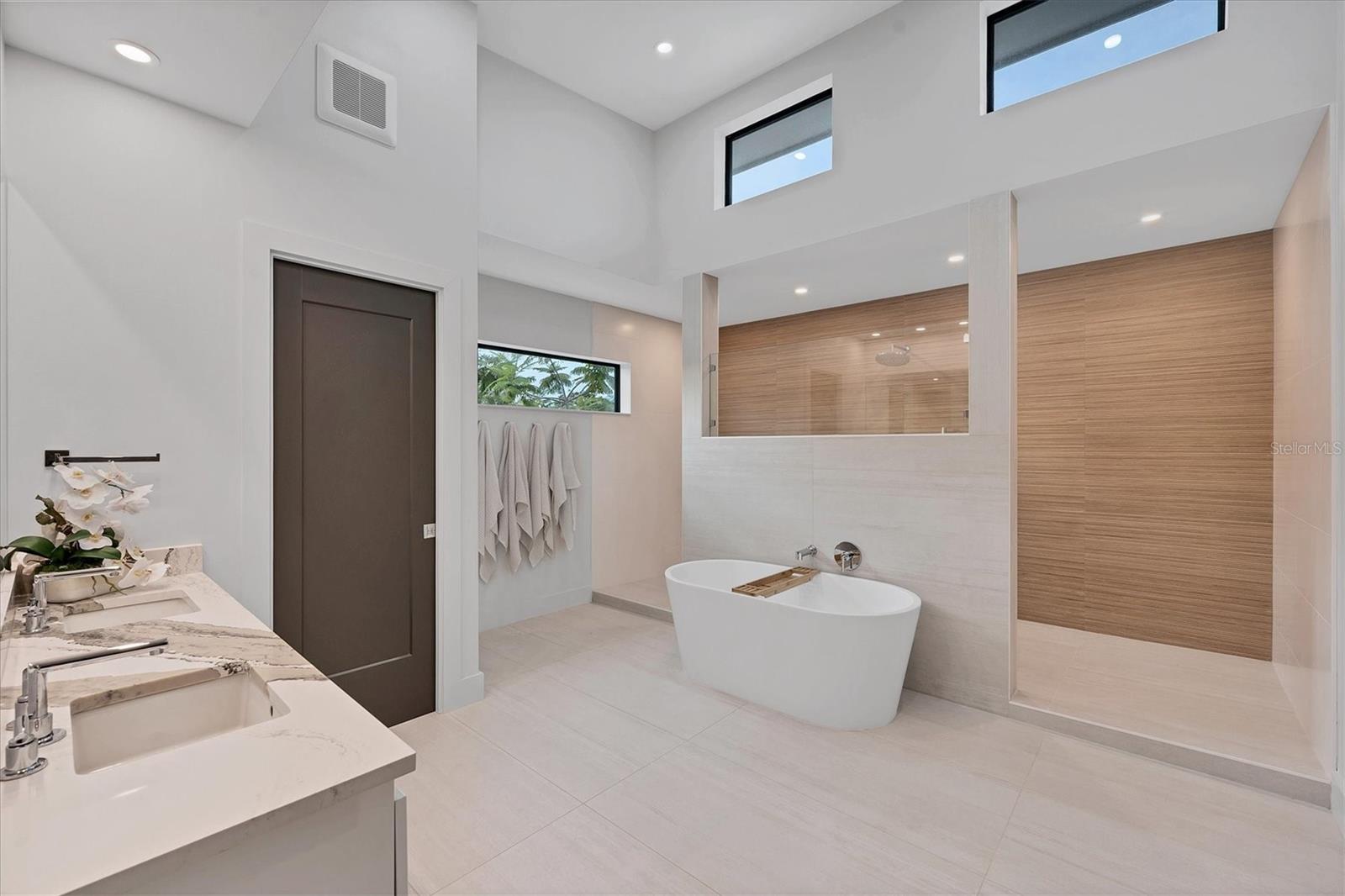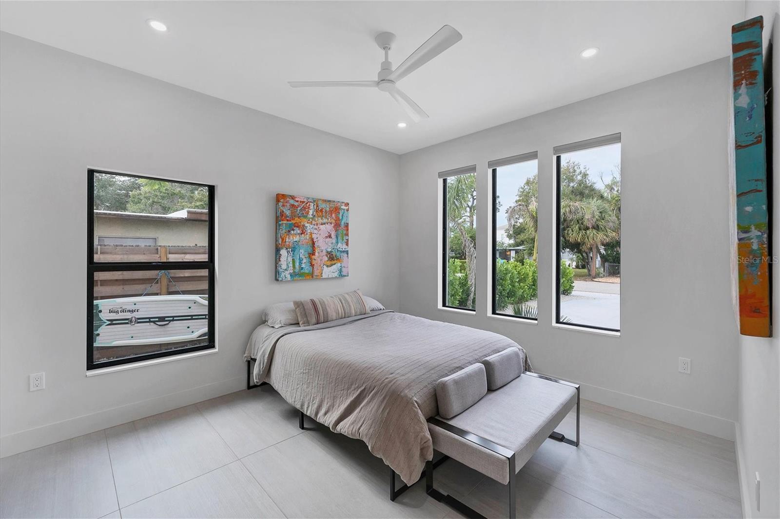 Welcome to your contemporary masterpiece in Sarasota's coveted Arlington Park! Crafted by renowned builder Russ Beckwith, this luxury home showcases modern living at its finest. Inside, an open-plan design seamlessly blends style and functionality, with volume ceilings and a faux fireplace exuding warmth and elegance. The indoor-outdoor flow ensures you enjoy ample covered space for year-round relaxation and entertainment. This isn't just a house, it's a lifestyle. With two bedrooms on the main level, an owner’s retreat, and a possible fourth bedroom upstairs, which is being used as a home gym and office, it offers versatile living. The kitchen boasts a three-centimeter Cambria Skara Brae quartz island, and top-tier appliances including a 36-inch six-burner Fulgor gas range. Italian 24-by-48-inch Cemento Cassero Bianco tiles grace the downstairs floors. As you arrive, a spacious driveway accommodates up to seven cars, making entertaining friends and family a breeze. Eco-conscious xeriscape landscaping reduces water usage, with every tree and shrub linked to an advanced irrigation system. Step into your private oasis with a horizontal shadow box Cypress fence for added privacy. The outdoor shower and pool bath complement the cocktail pool and sun decks, inviting you to bask in Florida's sunshine and luxury. Minutes from downtown Sarasota, Southside Village and Sarasota Memorial Hospital, this prime location offers unrivaled convenience. Siesta Key Beach, renowned for its white sands and crystal-clear waters, is just five miles away. Explore upscale shopping and dining at St. Armands Circle or unwind at Lido Beach, all within four miles. With its modern design, unbeatable location and thoughtful amenities, this home epitomizes the best of Sarasota living. Don't miss your chance to claim this contemporary masterpiece as your paradise.