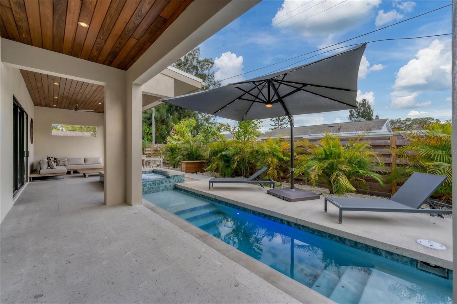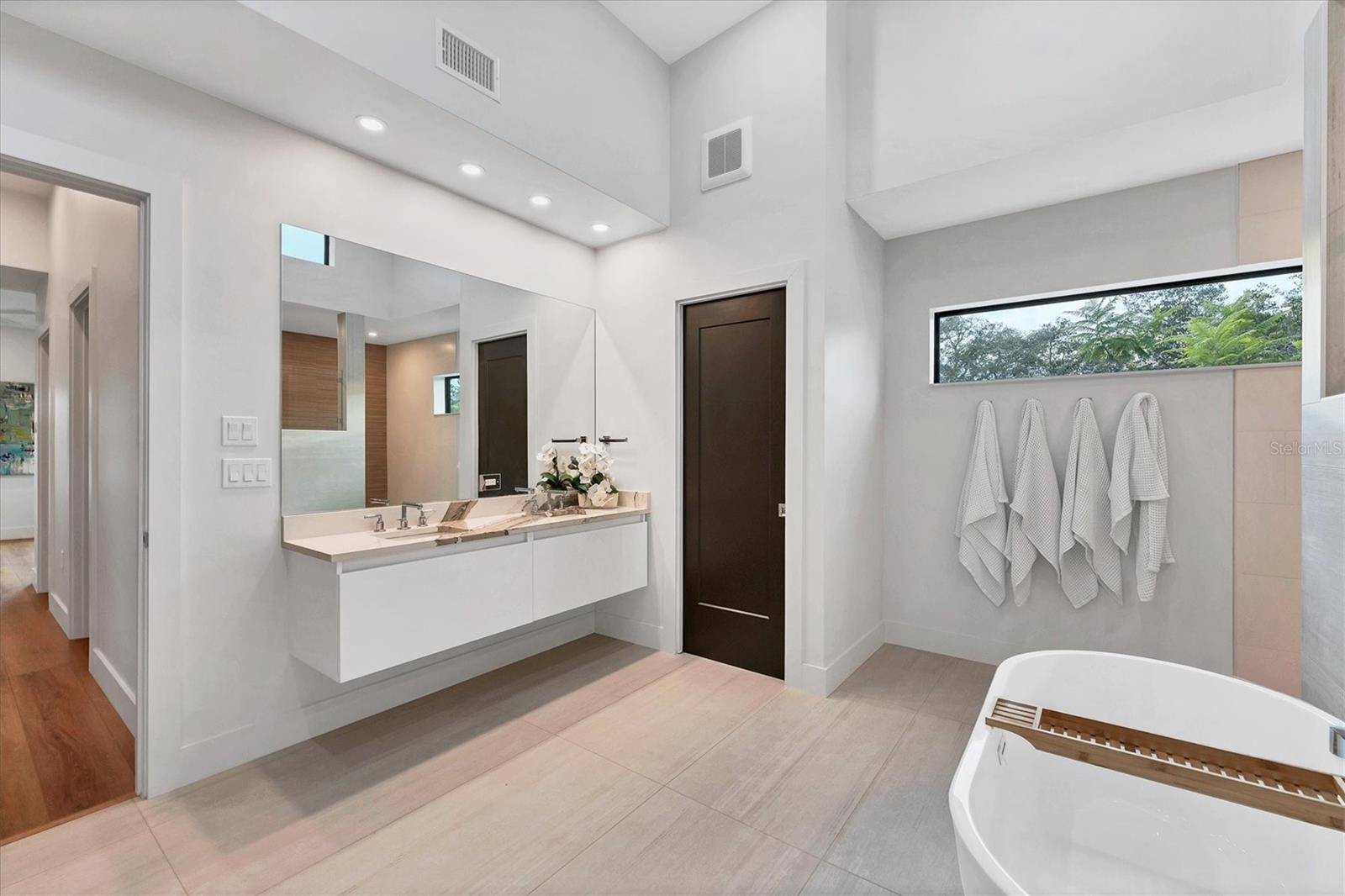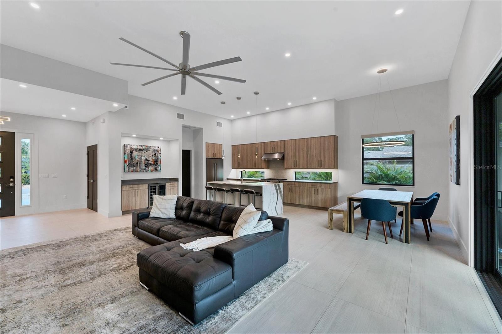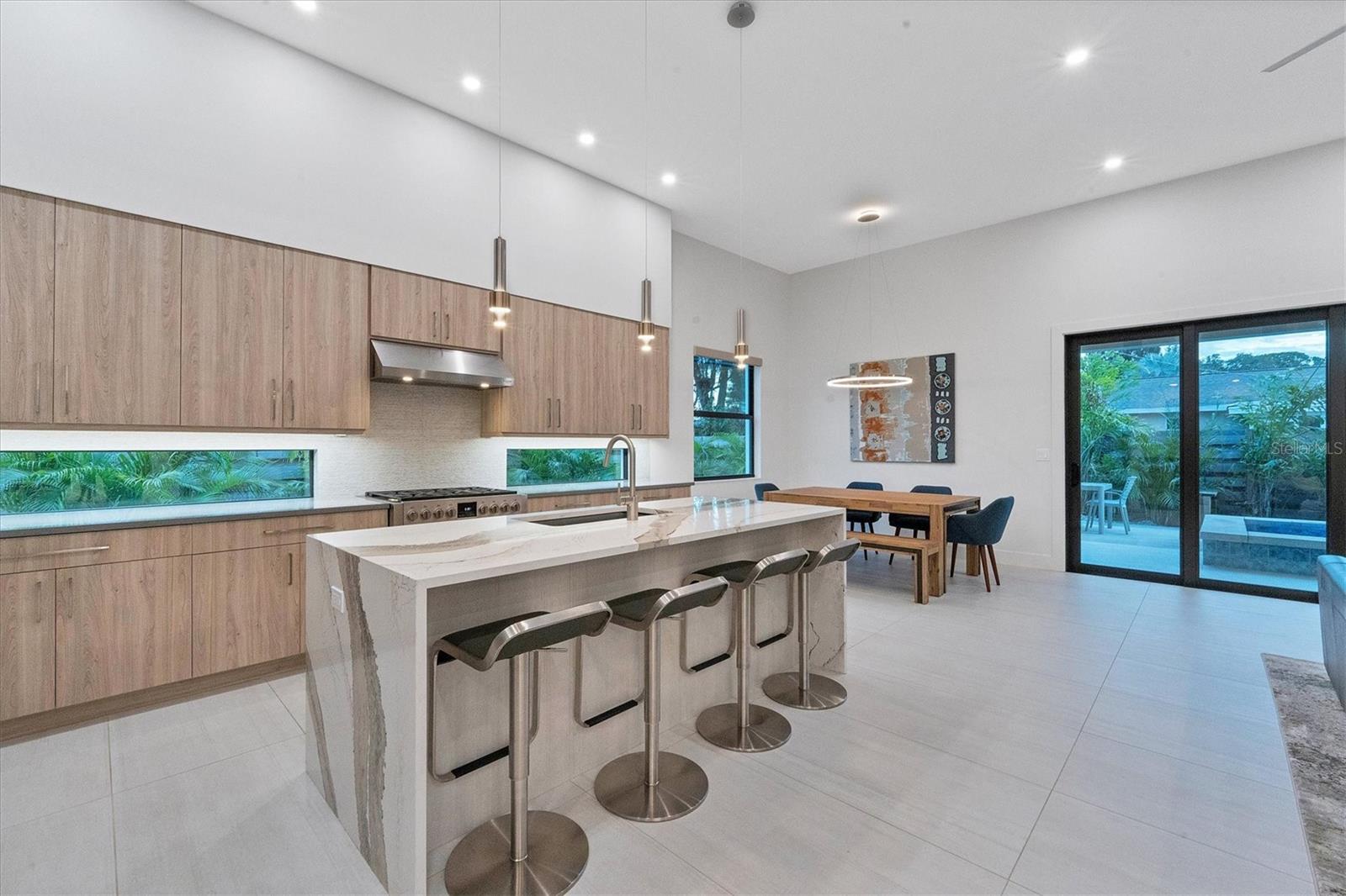 Welcome to your contemporary masterpiece in Sarasota's coveted Arlington Park! Crafted by renowned builder Russ Beckwith, this luxury home showcases modern living at its finest. Inside, an open-plan design seamlessly blends style and functionality, with volume ceilings and a faux fireplace exuding warmth and elegance. The indoor-outdoor flow ensures you enjoy ample covered space for year-round relaxation and entertainment. This isn't just a house, it's a lifestyle. With two bedrooms on the main level, an owner’s retreat, and a possible fourth bedroom upstairs, which is being used as a home gym and office, it offers versatile living. The kitchen boasts a three-centimeter Cambria Skara Brae quartz island, and top-tier appliances including a 36-inch six-burner Fulgor gas range. Italian 24-by-48-inch Cemento Cassero Bianco tiles grace the downstairs floors. As you arrive, a spacious driveway accommodates up to seven cars, making entertaining friends and family a breeze. Eco-conscious xeriscape landscaping reduces water usage, with every tree and shrub linked to an advanced irrigation system. Step into your private oasis with a horizontal shadow box Cypress fence for added privacy. The outdoor shower and pool bath complement the cocktail pool and sun decks, inviting you to bask in Florida's sunshine and luxury. Minutes from downtown Sarasota, Southside Village and Sarasota Memorial Hospital, this prime location offers unrivaled convenience. Siesta Key Beach, renowned for its white sands and crystal-clear waters, is just five miles away. Explore upscale shopping and dining at St. Armands Circle or unwind at Lido Beach, all within four miles. With its modern design, unbeatable location and thoughtful amenities, this home epitomizes the best of Sarasota living. Don't miss your chance to claim this contemporary masterpiece as your paradise.