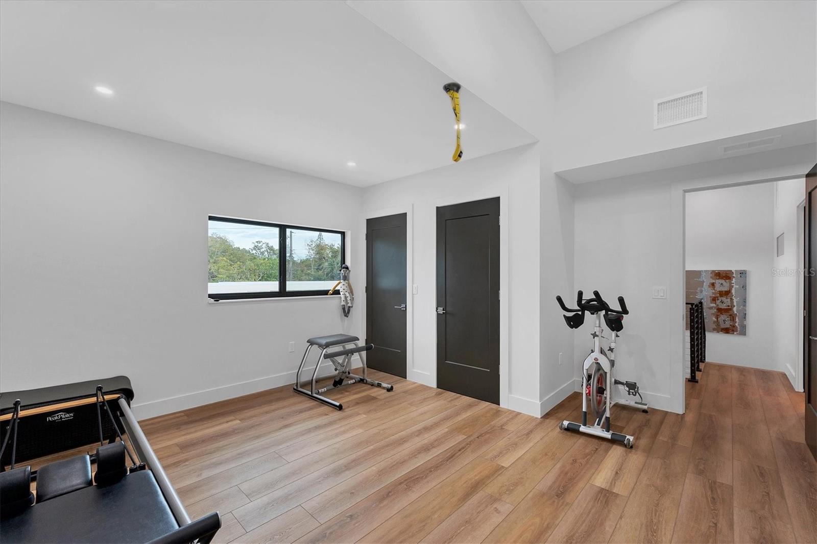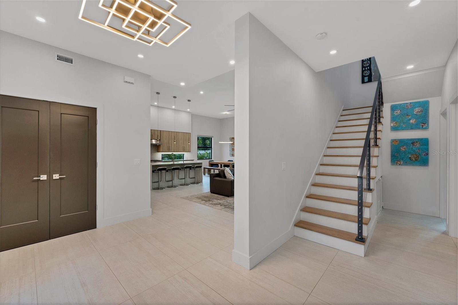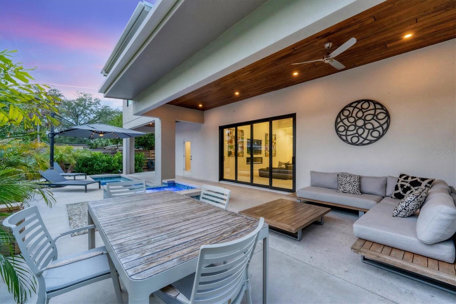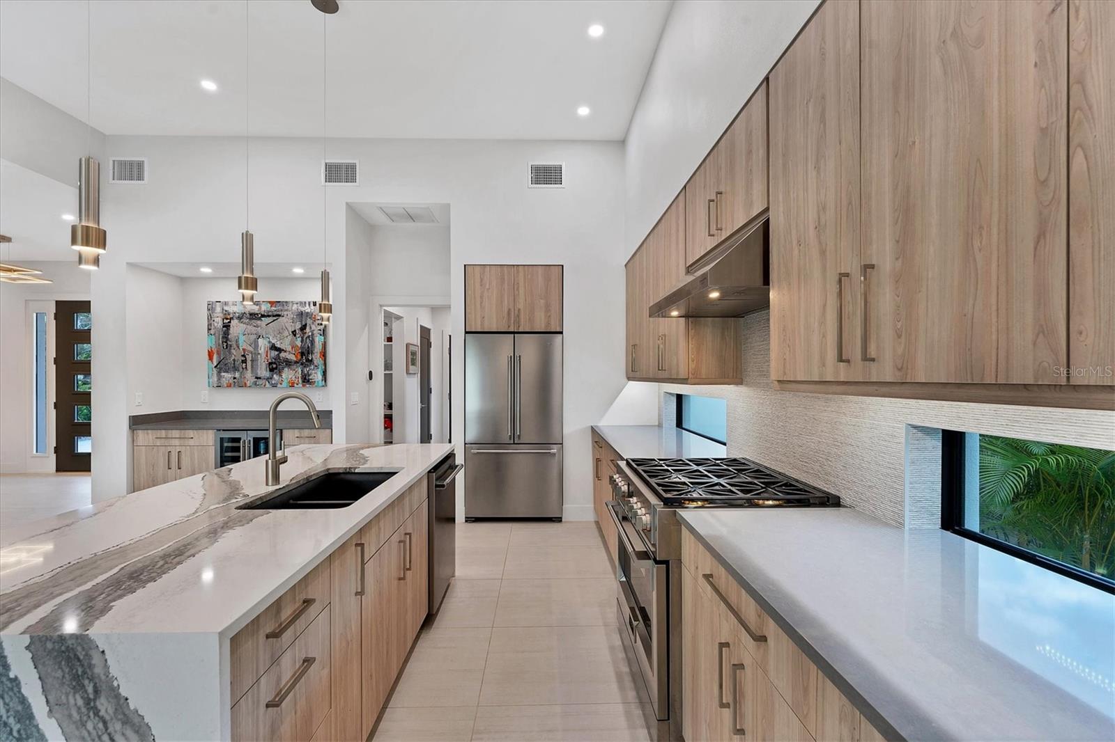 Welcome to your contemporary masterpiece in Sarasota's coveted Arlington Park! Crafted by renowned builder Russ Beckwith, this luxury home showcases modern living at its finest. Inside, an open-plan design seamlessly blends style and functionality, with volume ceilings and a faux fireplace exuding warmth and elegance. The indoor-outdoor flow ensures you enjoy ample covered space for year-round relaxation and entertainment. This isn't just a house, it's a lifestyle. With two bedrooms on the main level, an owner’s retreat, and a possible fourth bedroom upstairs, which is being used as a home gym and office, it offers versatile living. The kitchen boasts a three-centimeter Cambria Skara Brae quartz island, and top-tier appliances including a 36-inch six-burner Fulgor gas range. Italian 24-by-48-inch Cemento Cassero Bianco tiles grace the downstairs floors. As you arrive, a spacious driveway accommodates up to seven cars, making entertaining friends and family a breeze. Eco-conscious xeriscape landscaping reduces water usage, with every tree and shrub linked to an advanced irrigation system. Step into your private oasis with a horizontal shadow box Cypress fence for added privacy. The outdoor shower and pool bath complement the cocktail pool and sun decks, inviting you to bask in Florida's sunshine and luxury. Minutes from downtown Sarasota, Southside Village and Sarasota Memorial Hospital, this prime location offers unrivaled convenience. Siesta Key Beach, renowned for its white sands and crystal-clear waters, is just five miles away. Explore upscale shopping and dining at St. Armands Circle or unwind at Lido Beach, all within four miles. With its modern design, unbeatable location and thoughtful amenities, this home epitomizes the best of Sarasota living. Don't miss your chance to claim this contemporary masterpiece as your paradise.