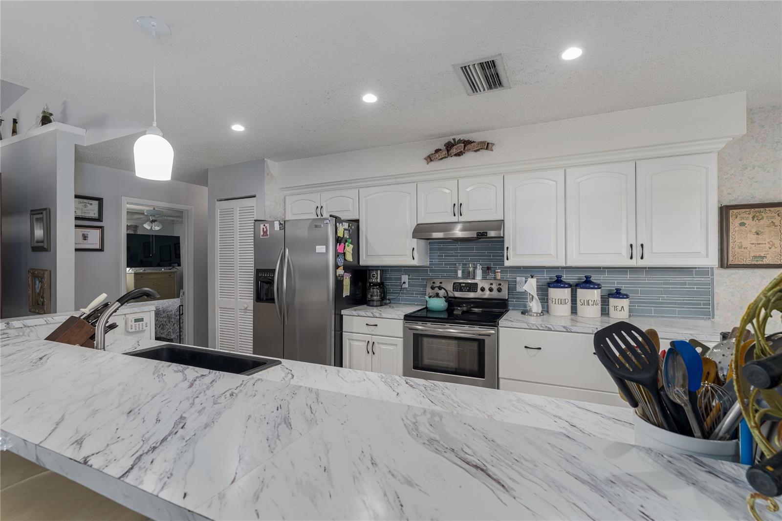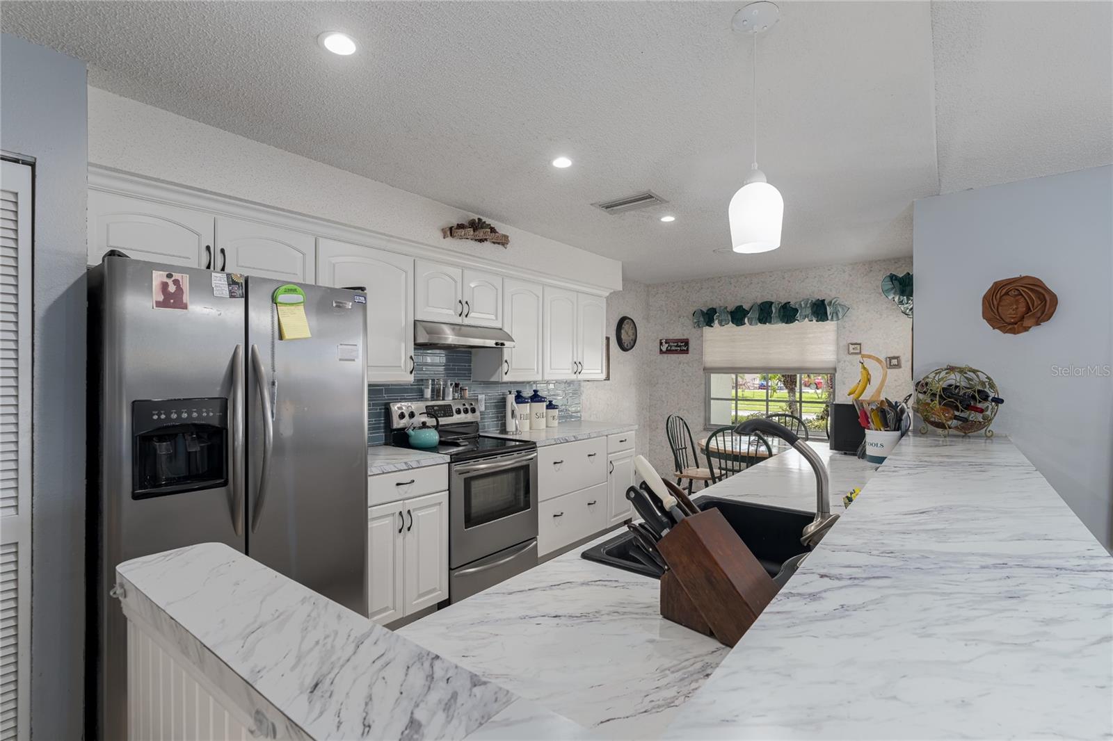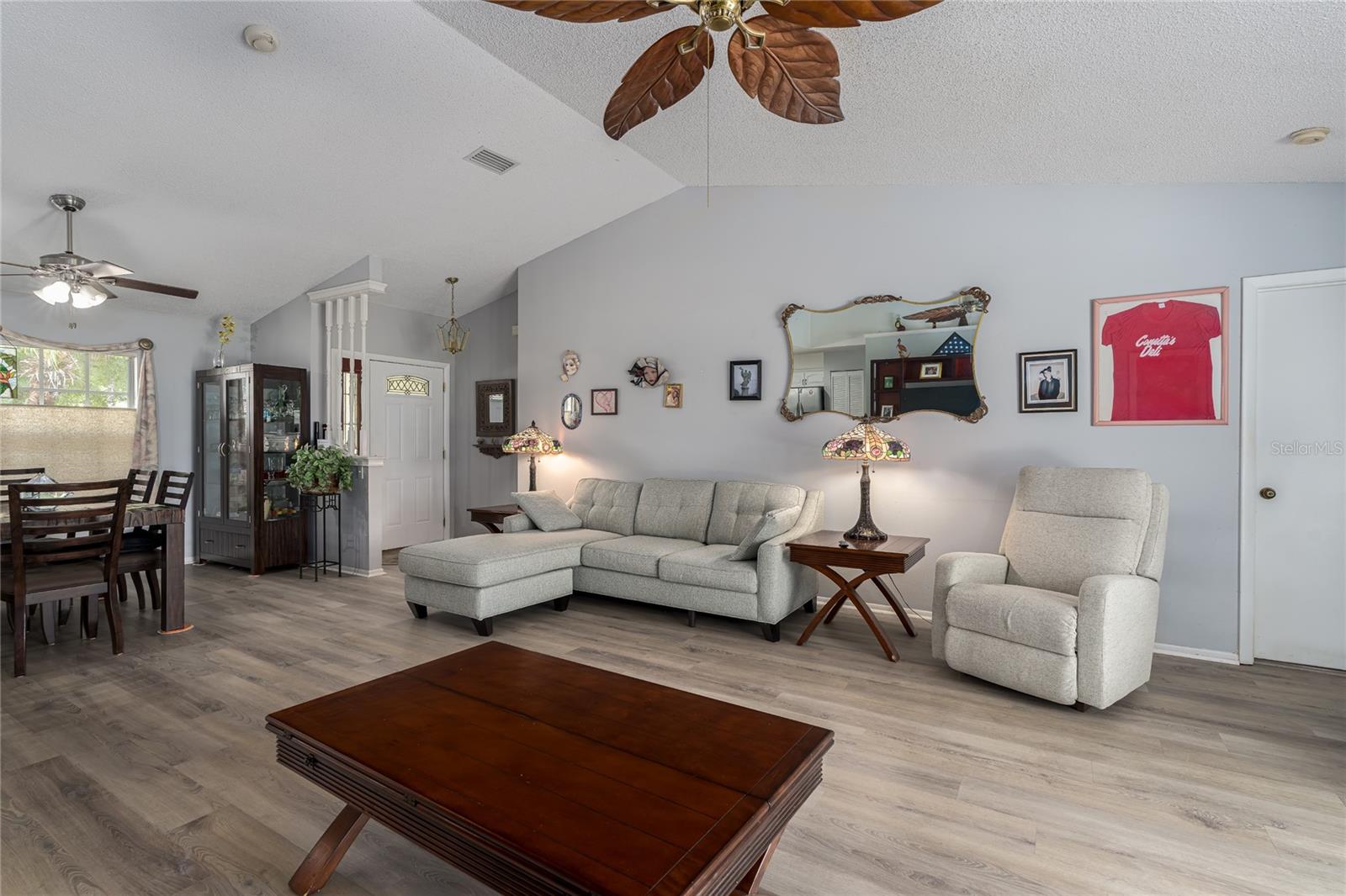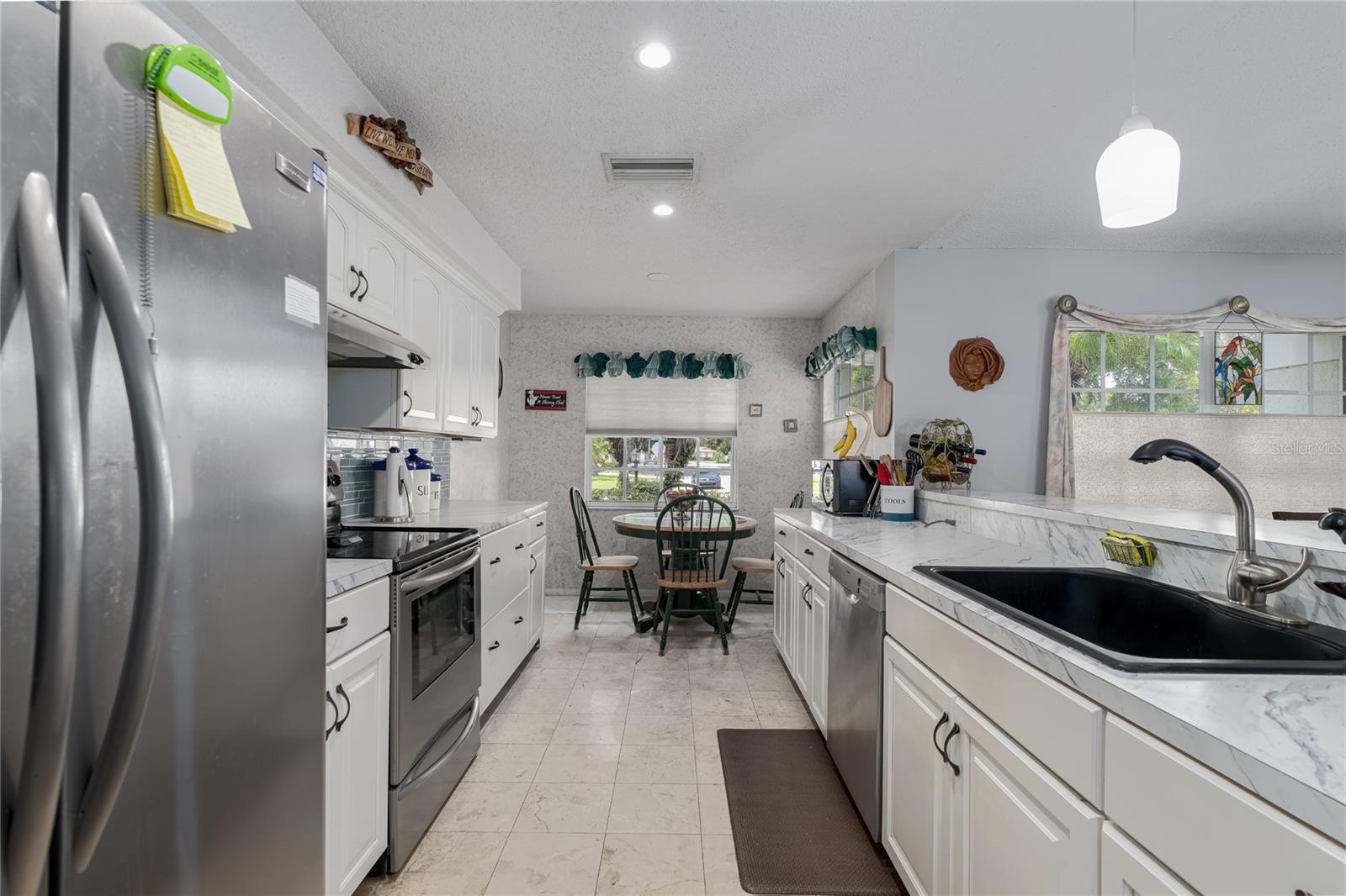 Welcome to your new home in Sarabay Woods, Sarasota, boasting excellent curb appeal. This residence exudes a sense of pride in ownership. Upon entry, the vaulted ceilings in the spacious living room catch your eye, along with the modern laminate flooring and access to the pool area. To your right, find the dining room and inviting kitchen. With a split floor plan, beyond the kitchen lie two bedrooms, the guest bathroom, laundry room, and garage access. The home's open floor plan is perfect for hosting, allowing the cook to engage with guests and family during meal preparation. At the kitchen's end, a quaint dinette provides a pleasant spot for morning coffee or tea, perusing the newspaper, browsing social media, or using your cell phone. Living room sliders open to a screened lanai and an in-ground swimming pool. Recent updates include a new HVAC system in April 2021, roof replacement in February 2016, an electrical panel upgrade in November 2022 including generator wiring. The pool underwent resurfacing in August 2023, with a new pump and filter installed in November 2023. Hurricane shutters added in December 2022 provide added security. The property's location is ideal, just minutes from downtown Sarasota, cultural landmarks, educational institutions, shopping centers, a variety of dining options, and the pristine beaches of Anna Maria Island and Saint Armands Circle. Proximity to Sarasota-Bradenton International Airport and Whitfield Park, as well as backing up to Abel Elementary School, adds to the convenience. Drive by and arrange your private tour soon!