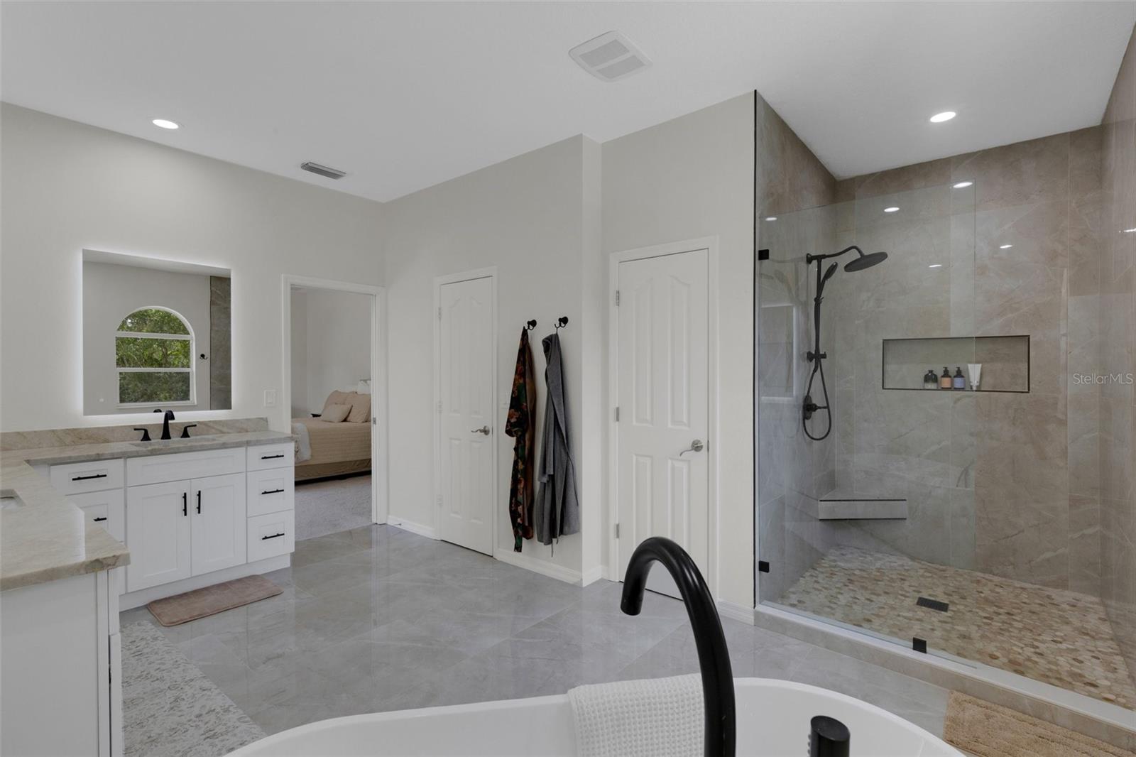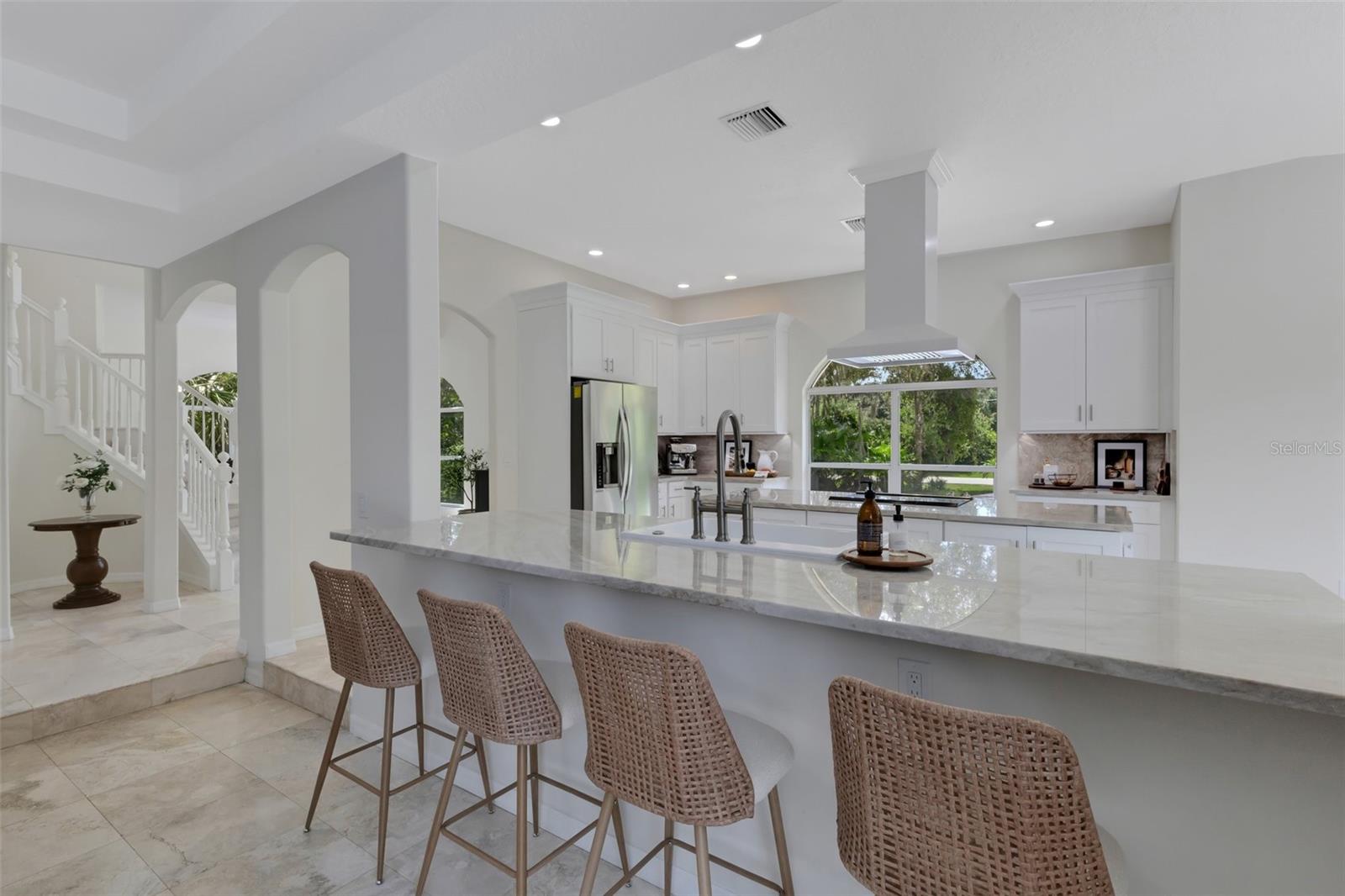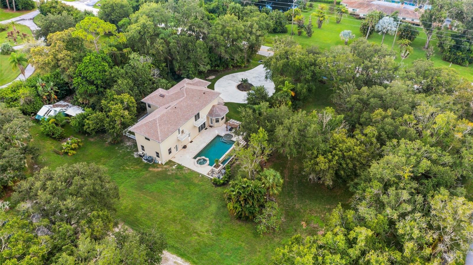 One or more photo(s) has been virtually staged. Have you been looking for a home that will WOW you? Welcome to this 1.9 acre oasis of Desoto Acres located in the center of Sarasota! This home has been tastefully renovated on the interior, freshly painted exterior, added lanai & fenced in area off the main floor bedroom and a BRAND NEW ROOF! Driving up to the home, you will be greeted by natural oak trees, a circular driveway and a grand step up entry that will certainly make a memorable first impression. This modern, yet classic, home features over 4,300 square feet of living space with 4 oversized bedrooms, 3.5 bathrooms and a bonus space on the rear of the home that can be used as a home theatre, additional living space, golf simulation room or anything that fits your desires! As you enter the home, you’ll be greeted by a a grand stairway and formal dining to your right along with your kitchen with the step down living area to the left; the access to your infinity edge pool is a breeze with 4 access points - kitchen, living, laundry room OR movie theatre room! Speaking of the pool, this is where tranquility and old Florida collide. The luscious landscaping and ancient oak trees makes reality an easy escape. Downstairs has a guest en-suite while upstairs has the oversized primary suite, two additional bedrooms and shared bath; did I mention the oversized bedrooms? The location doesn’t get more convenient - nearly 2 acres and only minutes away from the UTC mall and town center, Sarasota Airport, downtown Sarasota, Lakewood Ranch and so much more all at your fingertips! Schedule your private showing today of this turn-key private oasis of Desoto Acres! Although there is no current garage space, there are architectural drawings made up to add a garage to the rear North side of the home. Will share upon request!
