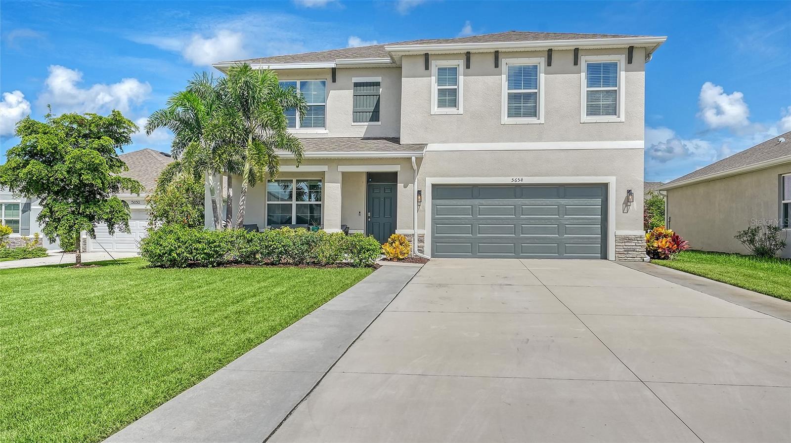 Welcome to the PRIME cul-de-sac location in the gated, amenity-rich community of Promenade Estates on Palmer Ranch. This oversized lot (146’ deep) features quintessential front porch living with peaceful sunsets on the quiet cul-de-sac or private gatherings in the expansive fenced back yard. This premier homesite provides unique privacy and curb appeal with extended setbacks from the street and neighboring homes, which allows for the impressive 60’+ driveway for plenty of off-street parking or play space. The home features five bedrooms, three full bathrooms, a loft, plus a flex room perfect for an extra office area or additional dining space. Along with the abundance of space and storage you get the peace of mind of newer (2020) solid block construction in an ‘X’ flood zone - standing strong and dry in recent hurricanes with the power on. The first floor features numerous entertaining and dining areas and flows seamlessly out to the expansive outdoor patio with spacious, fenced backyard. The first level also features a bedroom and full bath for your convenience. Tucked privately upstairs is the vast owners' suite, three additional bedrooms, a loft with beautiful lake views, and the laundry room. Better than brand new, take advantage of upgraded lighting fixtures and fans installed in all bedrooms, plus the downstairs living room and versatile loft upstairs. This home boasts a functional floor plan for families, anyone working from home with multiple home office options, or plenty of space to host overnight guests. A two-car garage with overhead storage racks and professionally installed epoxy floor covering complement the already impressive parking capacity of the extended driveway. A smart panel offers added comfort and security including an alarm system with access to emergency services, keyless entry, wireless garage access, and temperature controls. Community amenities include a fitness center, volleyball court, basketball court, tot playground, splash park, community pool, and dog park with small and large dog fenced areas. No CDD fees and a low monthly HOA make this prime location even more desirable. Enjoy quick access (7-8 miles) to the area’s finest gulf beaches (Siesta Key or Nokomis) and only 3 miles to a Tiki Bar on the water (Evie’s Spanish Point). Bike the nearby Legacy Trail, search for Florida Scrub Jays at Oscar Scherer State Park, kayak the Thaxton Scherer Nature Preserve or explore Selby Gardens’ Historic Spanish Point campus. When seeking a night on the town, enjoy an easy drive to Downtown Sarasota, Venice or the expansive shopping and dining of the UTC District. Numerous great school options as well with convenient bus routes to the A-rated zoned schools (Laurel Nokomis School, K-8 and Venice High School) and only 3 miles to the nationally acclaimed Pine View School. This home is truly a unique mix of quiet cul-de-sac living in a vibrant community with activities for all ages. The seller will entertain reasonable concessions for interest rate buydowns, etc., so don’t hesitate to book your tour today and make this home your reality!