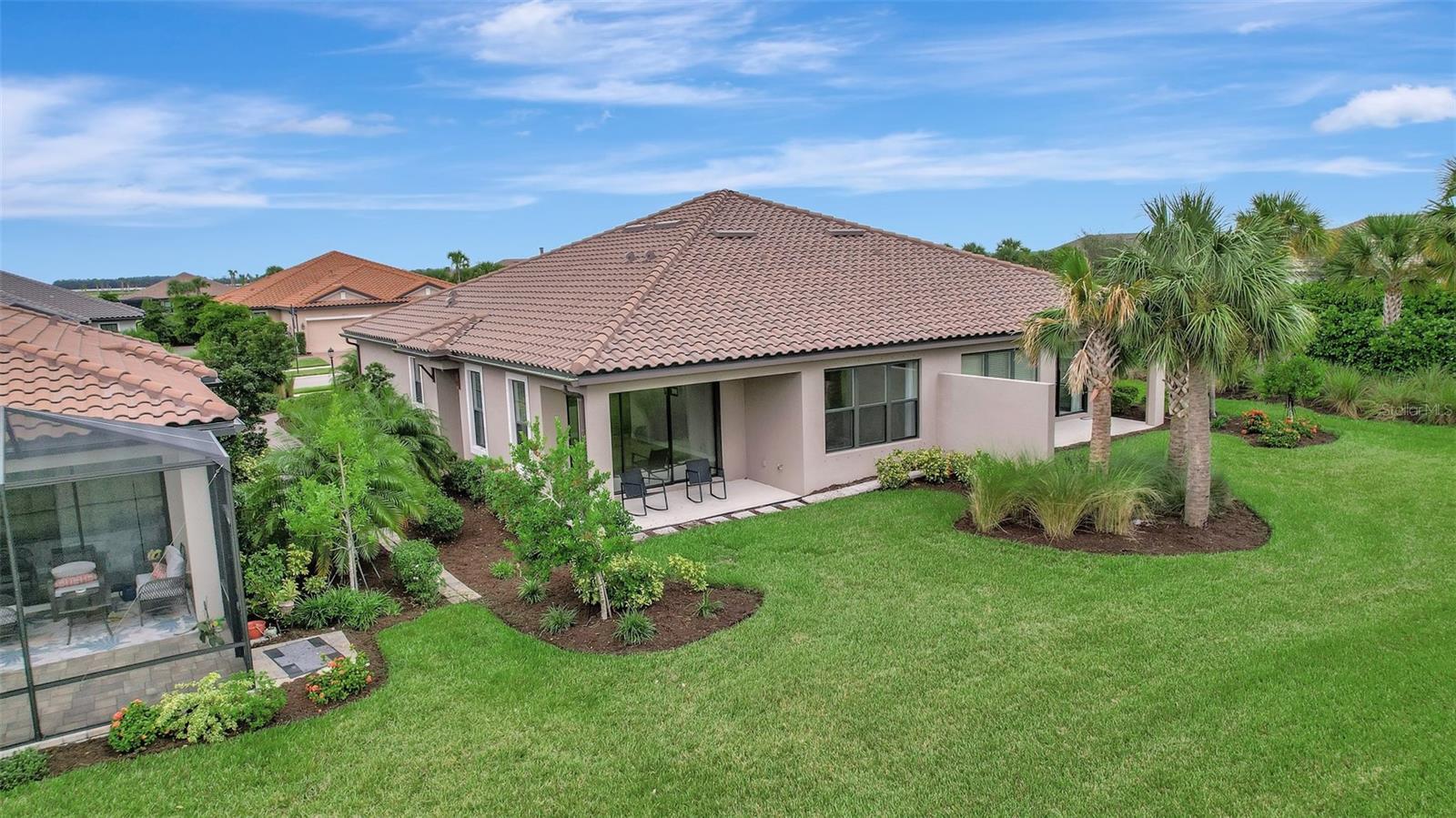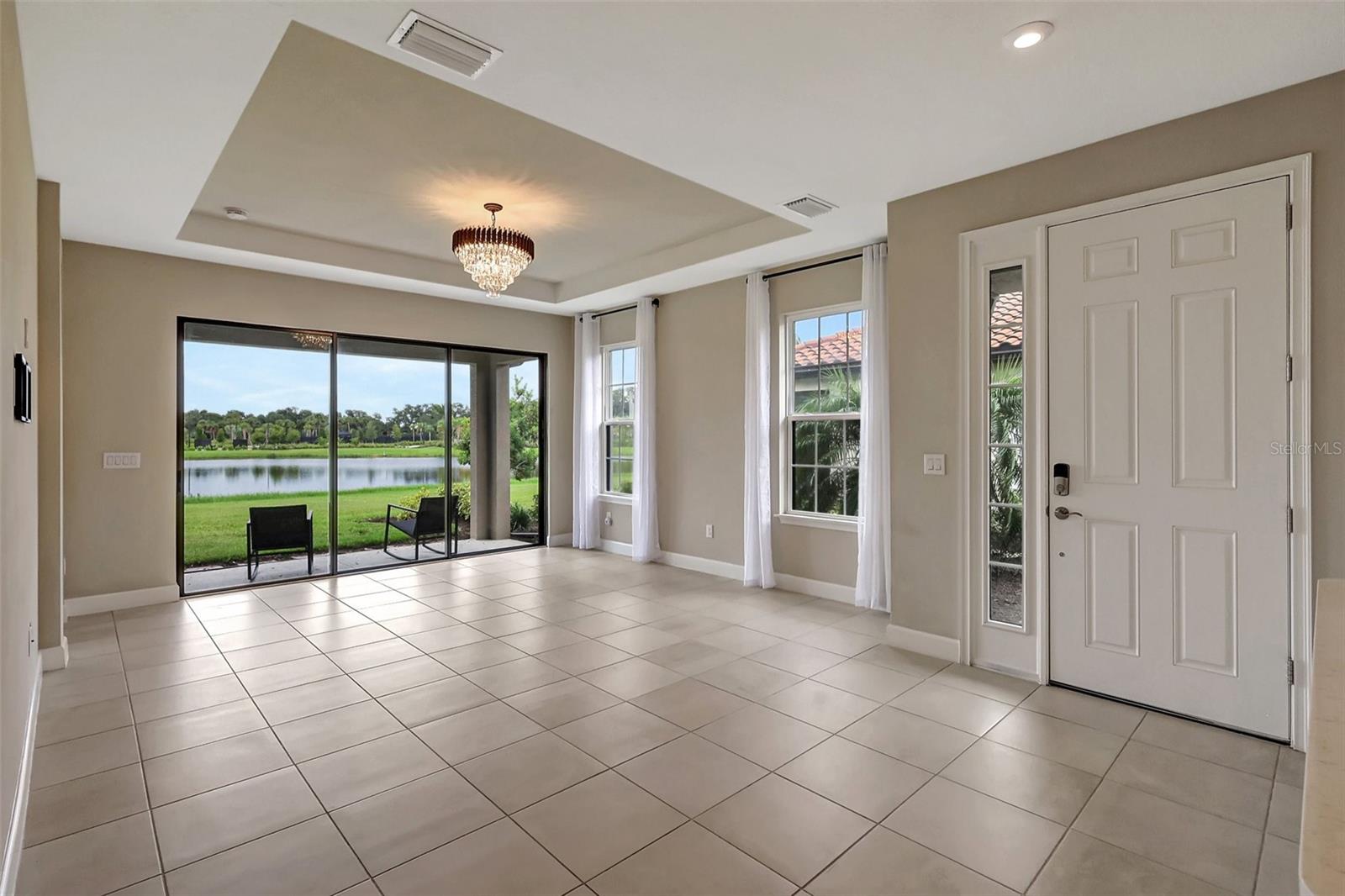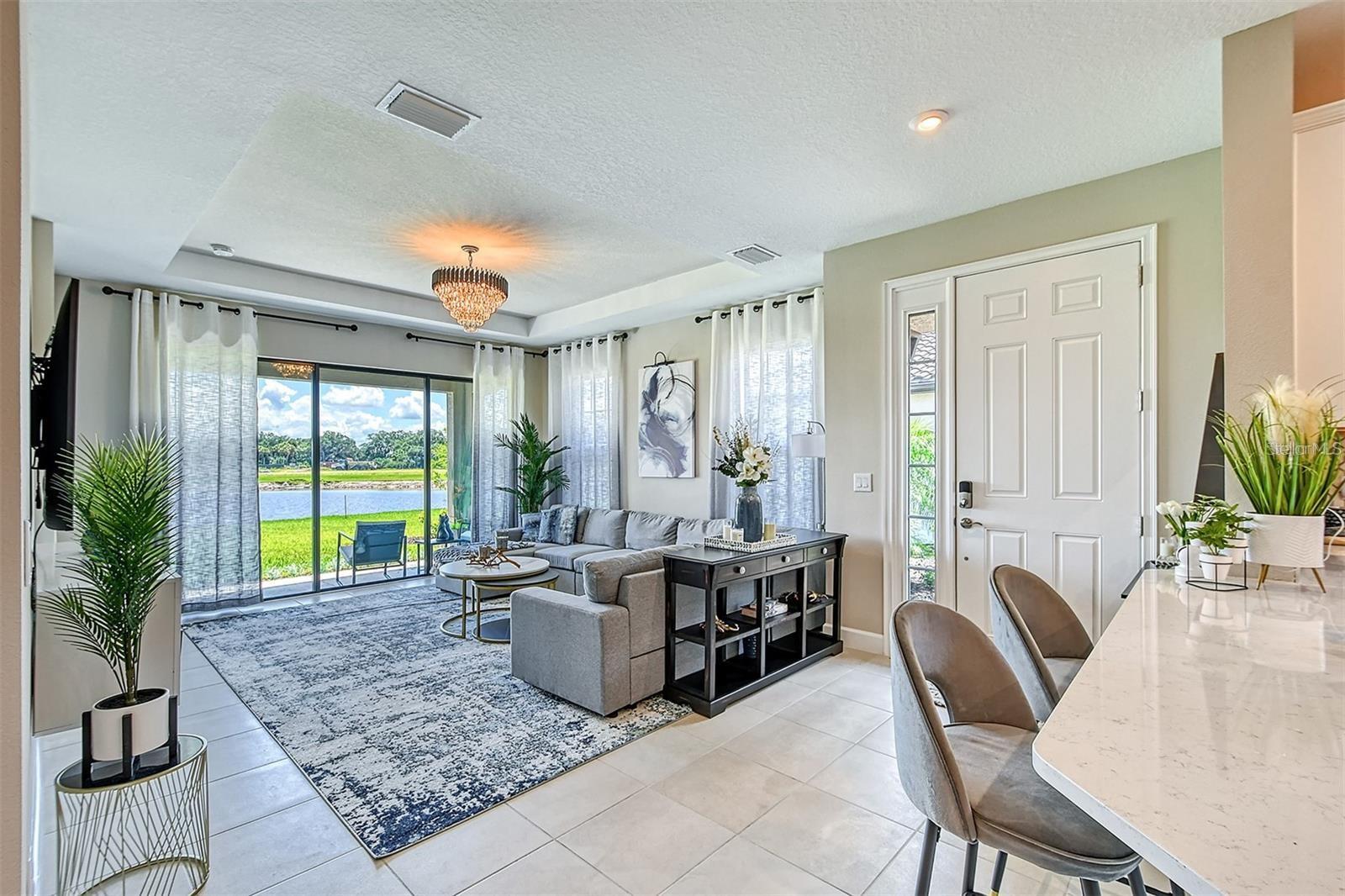 Welcome to 10254 Morning Mist Lane, an exquisite 2 bed / 2 bath / + Den + Formal Dining property which exemplifies luxury villa living in the heart of Skye Ranch, Esplanade. This spacious 1533 sq ft, 2-car garage, home is a masterpiece of modern design, offering high-end finishes, a spacious interior, and breathtaking lake views. It makes excellent use of space with its open-concept layout and is perfect for entertaining. The carefully curated details—from the gourmet kitchen with top-tier appliances to the spa-like master bath—enhance the sense of sophistication. Every corner of this home reflects quality and elegance, making it one of the most luxurious villas available in the area. The furnishings shown are no longer at the property (sellers removed), but are included in these images to help illustrate what can be created in this beautiful space. So much additional value of this home lies in what it offers beyond it's outstanding property aesthetics. Located at a competitive price point, this property stands out among other high-end villas in Skye Ranch Esplanade. A discerning buyer will appreciate not only its upscale features but also the financial wisdom behind this investment. Positioned in an area that is steadily growing in demand, this home promises both immediate enjoyment and long-term appreciation. For those who want a new home feel without having to wait for builder delays, this is your property. It is ready for immediate occupancy. Its proximity to vibrant shopping centers, diverse restaurants, and Nokomis and Siesta Key Beaches makes it ideal for those seeking both convenience and a vibrant coastal lifestyle—essential for a savvy buyer who understands the importance of location and value retention. Additionally, setting this home apart is its direct view, and a couple minute stroll, across the lake of the community's pool and clubhouse. Add to that the HUB which is a magnificent huge community center to the entire complex. Imagine the ease of enjoying a resort-like experience without leaving the neighborhood—whether it’s lounging by the pool, swimming laps in the second lap pool, engaging in a fitness class, playing tennis or pickleball, or attending social events at the clubhouse, the amenities are unmatched. There is even a Climbing Wall INSIDE the community center!! This property offers more than just a home; it grants access to a lifestyle brimming with recreational perks and community connections. For the wise buyer, this combination of luxury, value, and location makes this stunning property an extraordinary and smart investment in Sarasota's thriving real estate market.
