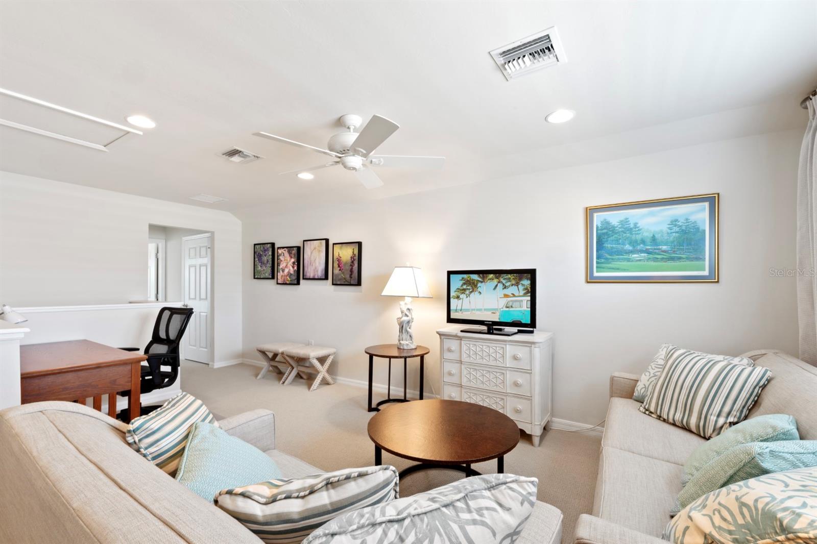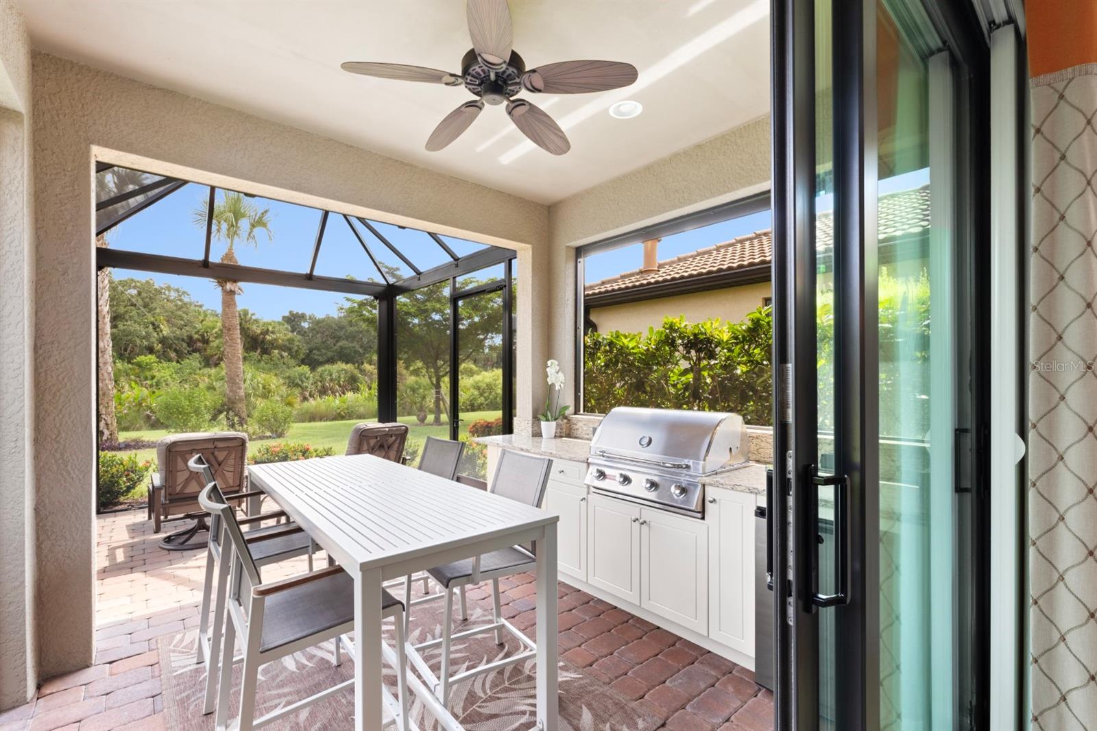 Three bedrooms, three full baths, PLUS a den/office/media room! All this in a two-story home with location, location, location! Located in Sandhill Preserve of Palmer Ranch, it is on a quiet cul-de-sac with a nature preserve behind it that can never be developed. This stand-out home has spacious open-concept living areas and a gourmet kitchen with wood cabinetry and modern appliances. Two bedrooms with walk-in showers on the main floor. The master bedroom has an en-suite bathroom. The other bedroom has the addition of a frosted glass barn door, creating the ambiance of a private suite. Plus, a den/office/media room on the first floor makes this home very livable. The second floor provides a lovely surprise of a private guest suite complete with a bedroom, bath, and living area. Must see! The backyard lanai has a state-of-the-art outdoor kitchen with a natural gas-powered grill, refrigerator, granite countertops, and motorized roll screen. Since the original date of occupancy, the sole owner has systematically enhanced its desirability by installing upgrades throughout the home. Plantation shutters, PGT Hurricane Impact Windows, all upgraded closets and pantry, new 10-year battery smoke detectors, freshly painted exterior of the house, and a new gas hot water heater. The garage has built-in floor-to-ceiling cabinets, plus an additional storage area installed from the ceiling. The home is beautifully appointed, and the owner is amenable to selling it under a separate contract, furnished or partially furnished. The popular community center offers a pool, hot tub, gym, tennis courts, pickleball courts, and, of course, mega sunshine. A new shopping plaza with Publix, the world-famous Siesta Key Beach, and the popular Legacy Bike Trail are minutes from a home that begs attention and undoubtedly will not remain on the for-sale list very long. Words alone cannot convey the true appeal of this property. Contact me soon! Seeing is believing!