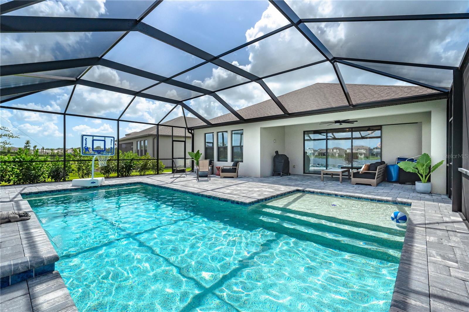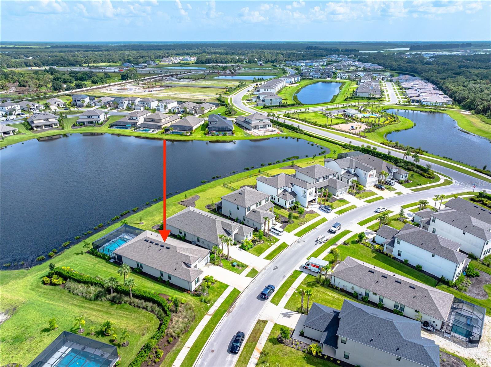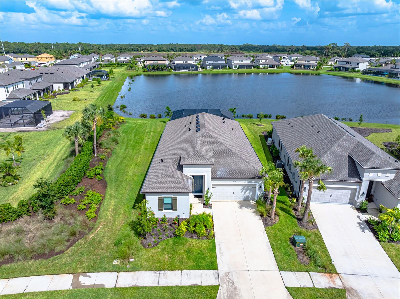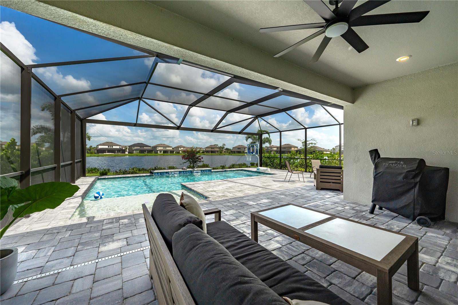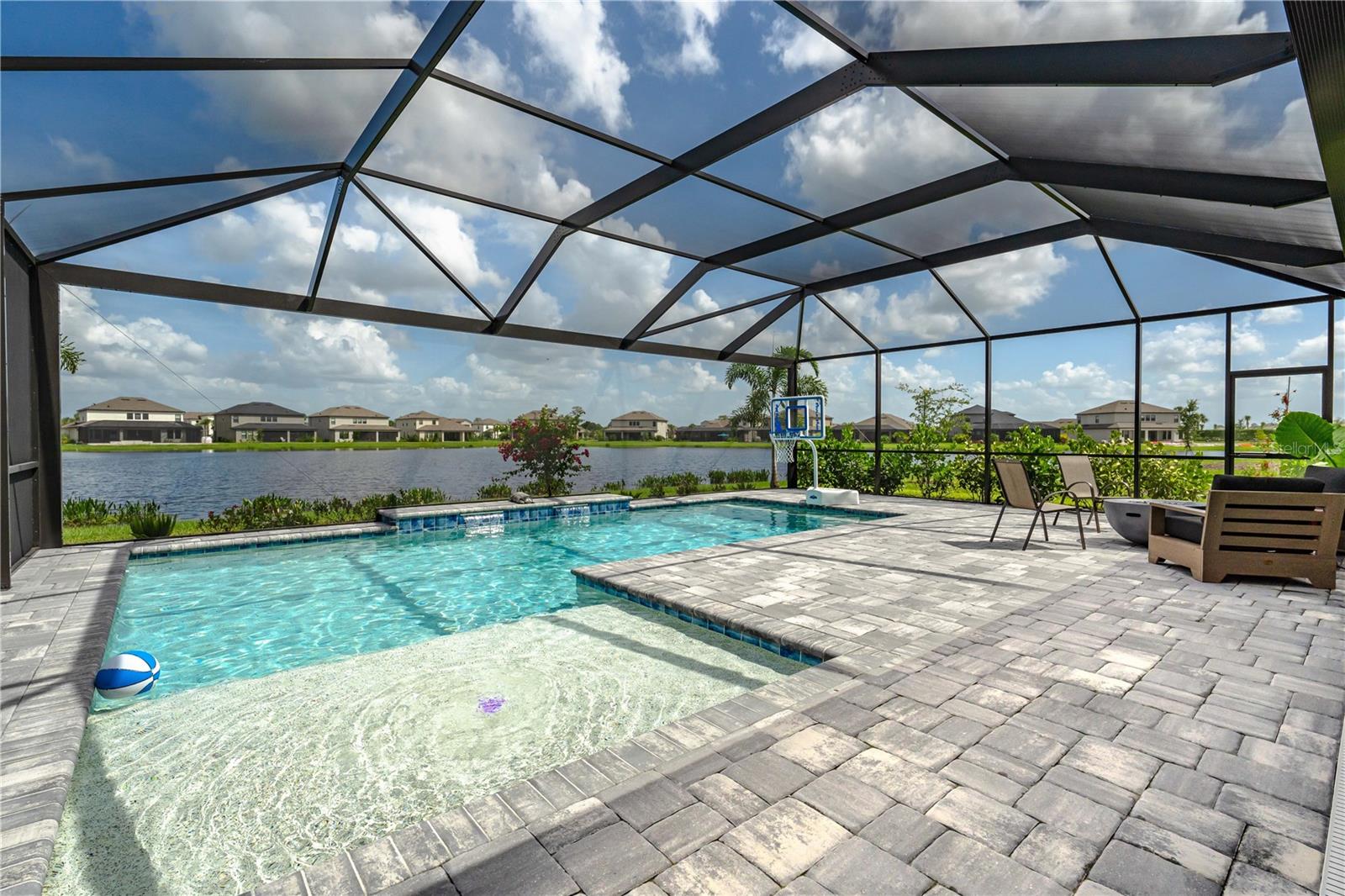 This is the One! *Located on a premium lakefront lot with incredible views, this newly constructed Antigua model boasts an open-concept highly functional single-level floor plan with four bedrooms and three bathrooms*It is perfectly situated in the sought-after Cassia section of the Skye Ranch community in Sarasota*Featuring thousands of dollars in builder upgrades, including premium faux laminate flooring for a sophisticated and durable finish*All closets, including the pantry and laundry room, are equipped with custom-built shelving and storage solutions for optimal organization and convenience*Enjoy the luxury of a screened 18x30 foot saltwater pool, complete with tranquil waterfalls, enhanced lighting, and a spacious sun deck for ultimate relaxation*"The community offers exceptional amenities at the state-of-the-art HUB recreational center, featuring a full-size gym, indoor basketball courts, a sprawling lagoon pool, an Olympic lap pool, a café, a climbing wall, a cozy lounge, tennis and pickleball courts, full-size soccer fields, a children’s playground, dog runs, and much more*Skye Ranch is just minutes away from the world-renowned Siesta Key Beach, the scenic Legacy Trail, and the natural beauty of Myakka River State Park*Located at the intersection of Clark Road and Lorraine Road, Skye Ranch is a premier destination offering endless opportunities to explore, experience, and enjoy life*