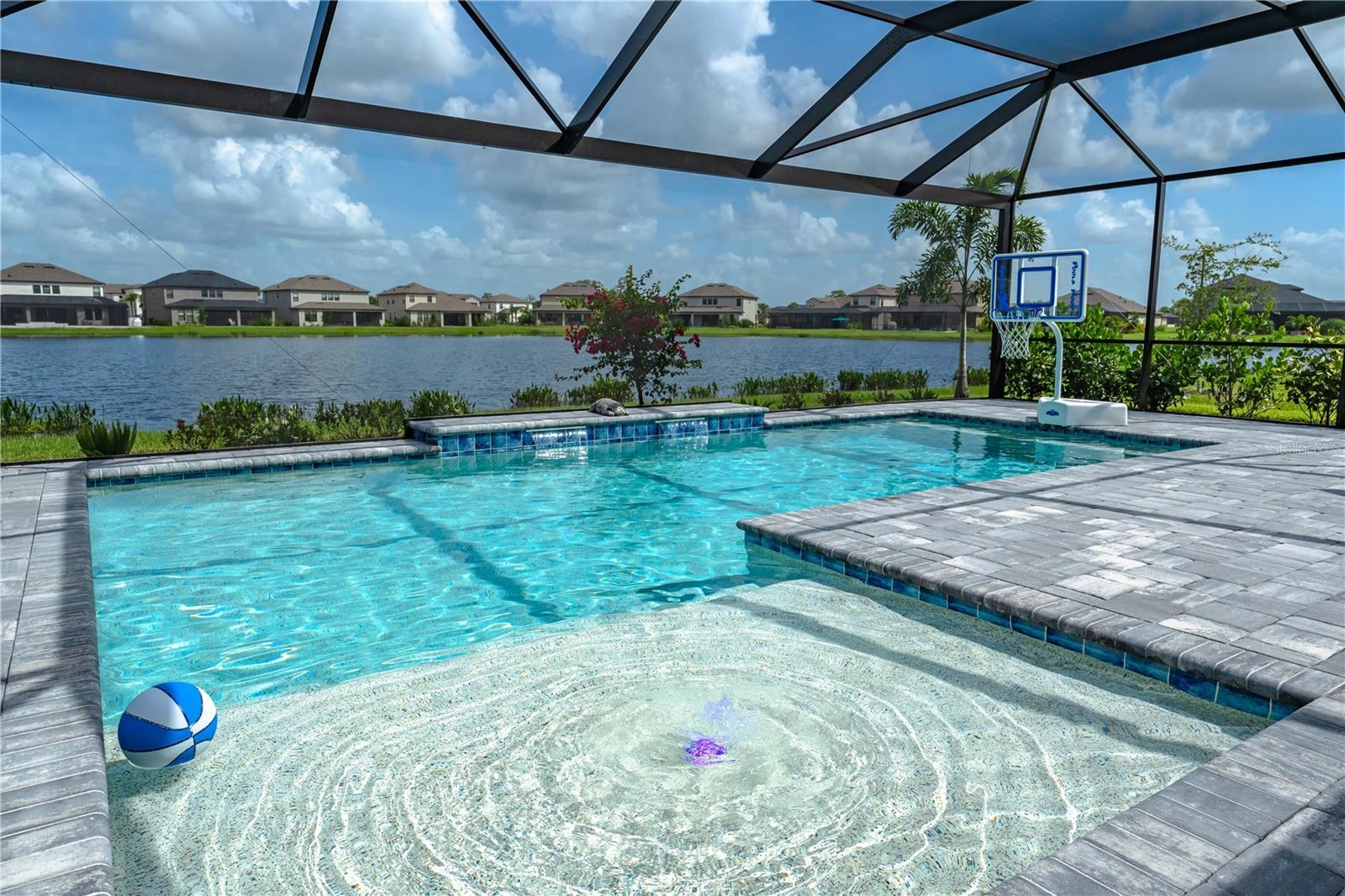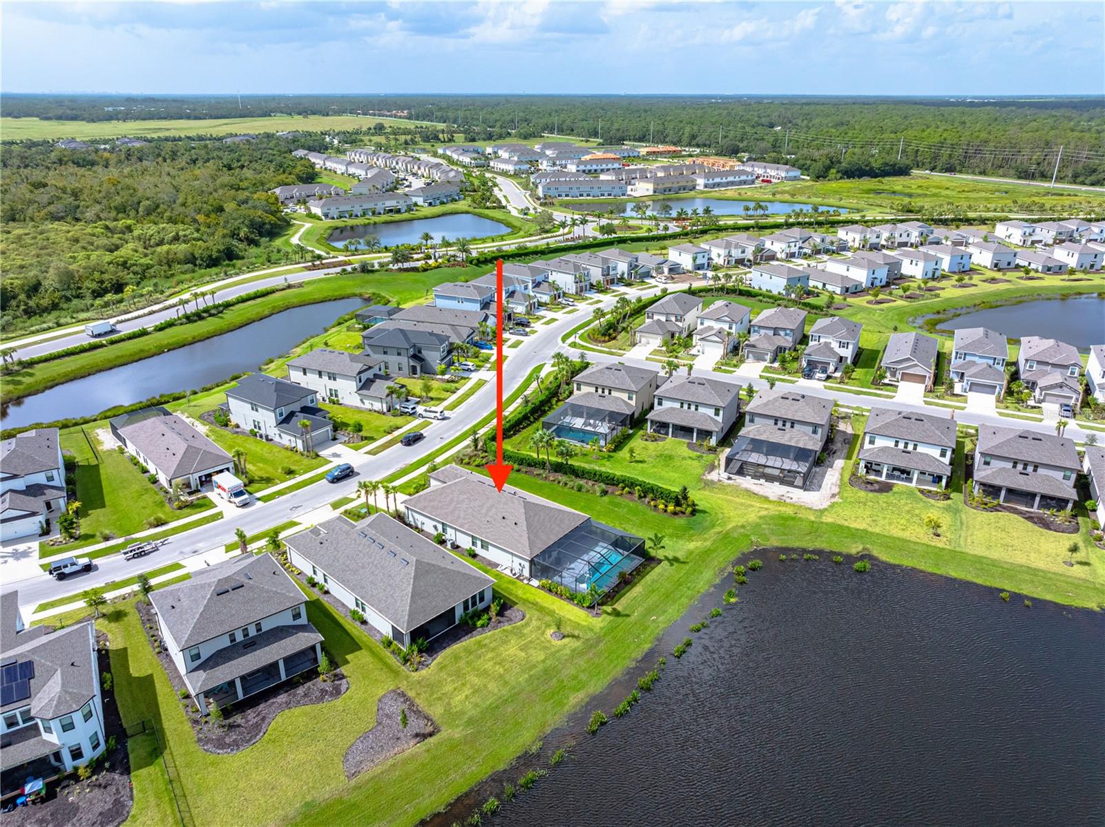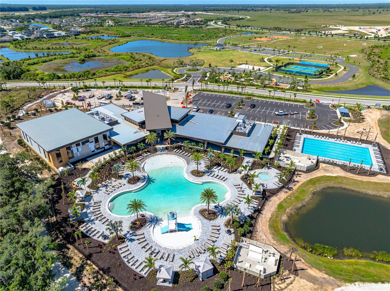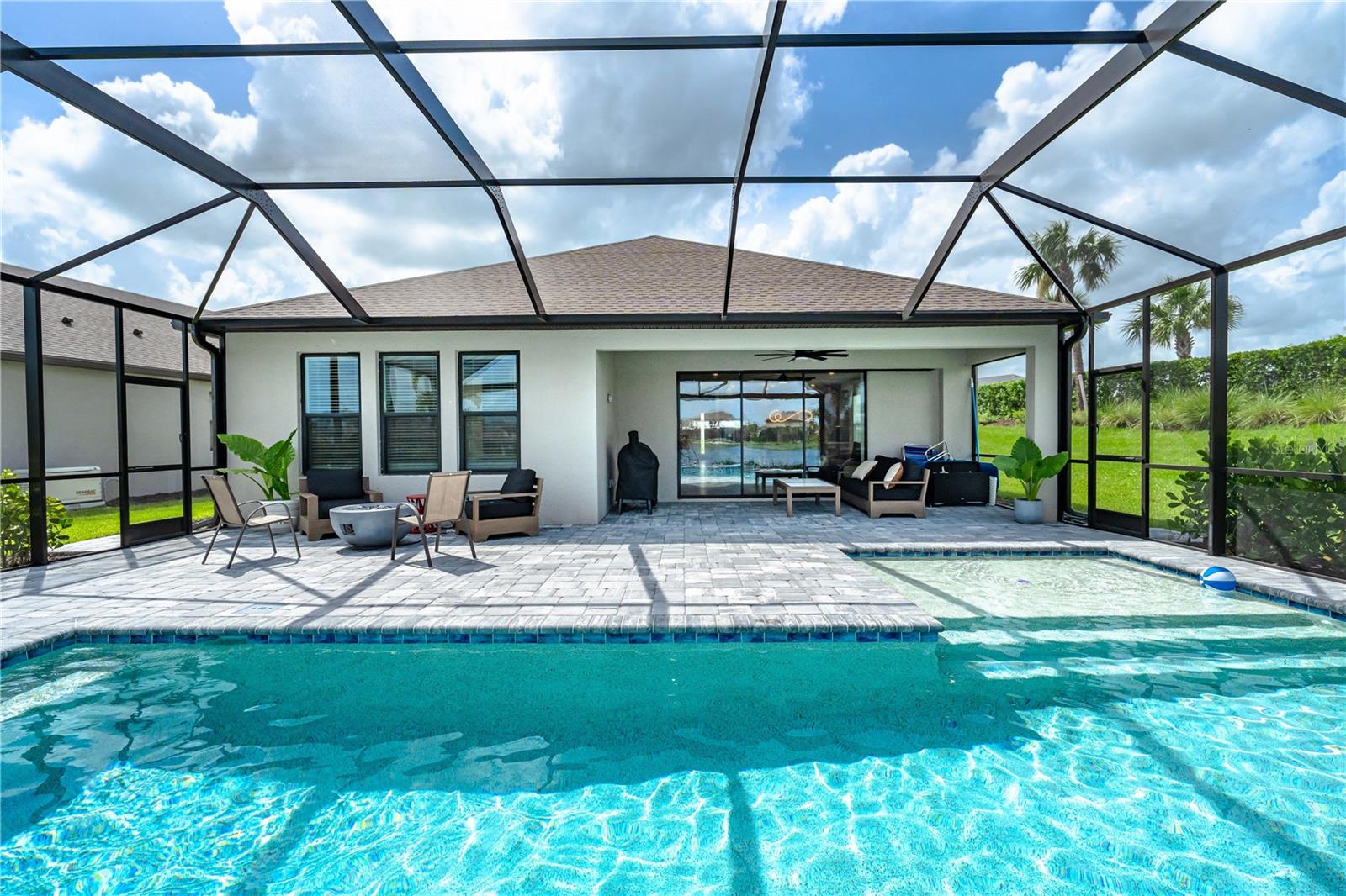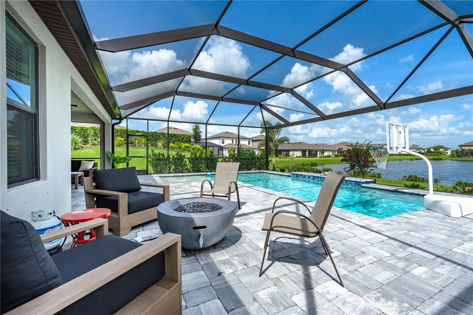 This is the One! *Located on a premium lakefront lot with incredible views, this newly constructed Antigua model boasts an open-concept highly functional single-level floor plan with four bedrooms and three bathrooms*It is perfectly situated in the sought-after Cassia section of the Skye Ranch community in Sarasota*Featuring thousands of dollars in builder upgrades, including premium faux laminate flooring for a sophisticated and durable finish*All closets, including the pantry and laundry room, are equipped with custom-built shelving and storage solutions for optimal organization and convenience*Enjoy the luxury of a screened 18x30 foot saltwater pool, complete with tranquil waterfalls, enhanced lighting, and a spacious sun deck for ultimate relaxation*"The community offers exceptional amenities at the state-of-the-art HUB recreational center, featuring a full-size gym, indoor basketball courts, a sprawling lagoon pool, an Olympic lap pool, a café, a climbing wall, a cozy lounge, tennis and pickleball courts, full-size soccer fields, a children’s playground, dog runs, and much more*Skye Ranch is just minutes away from the world-renowned Siesta Key Beach, the scenic Legacy Trail, and the natural beauty of Myakka River State Park*Located at the intersection of Clark Road and Lorraine Road, Skye Ranch is a premier destination offering endless opportunities to explore, experience, and enjoy life*